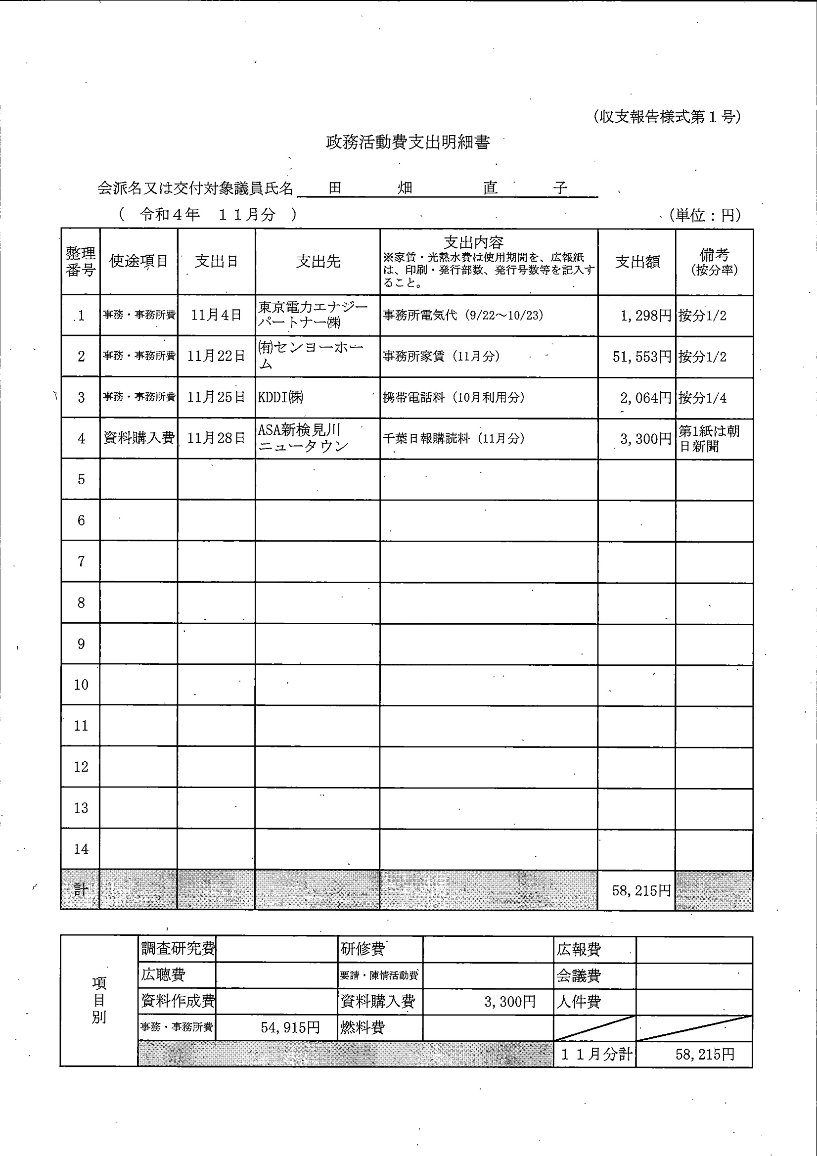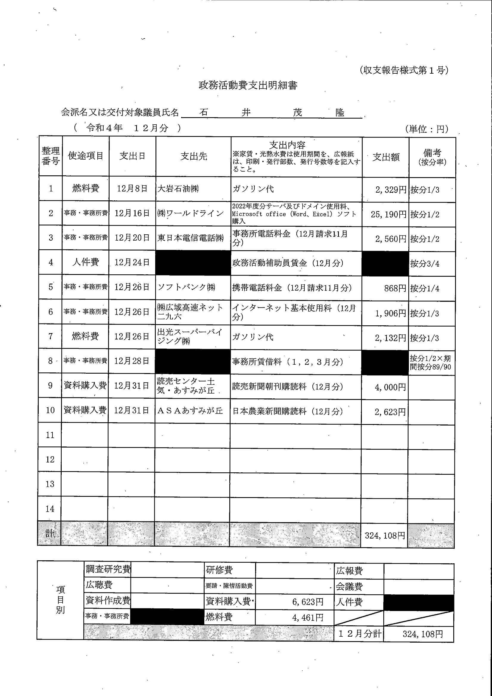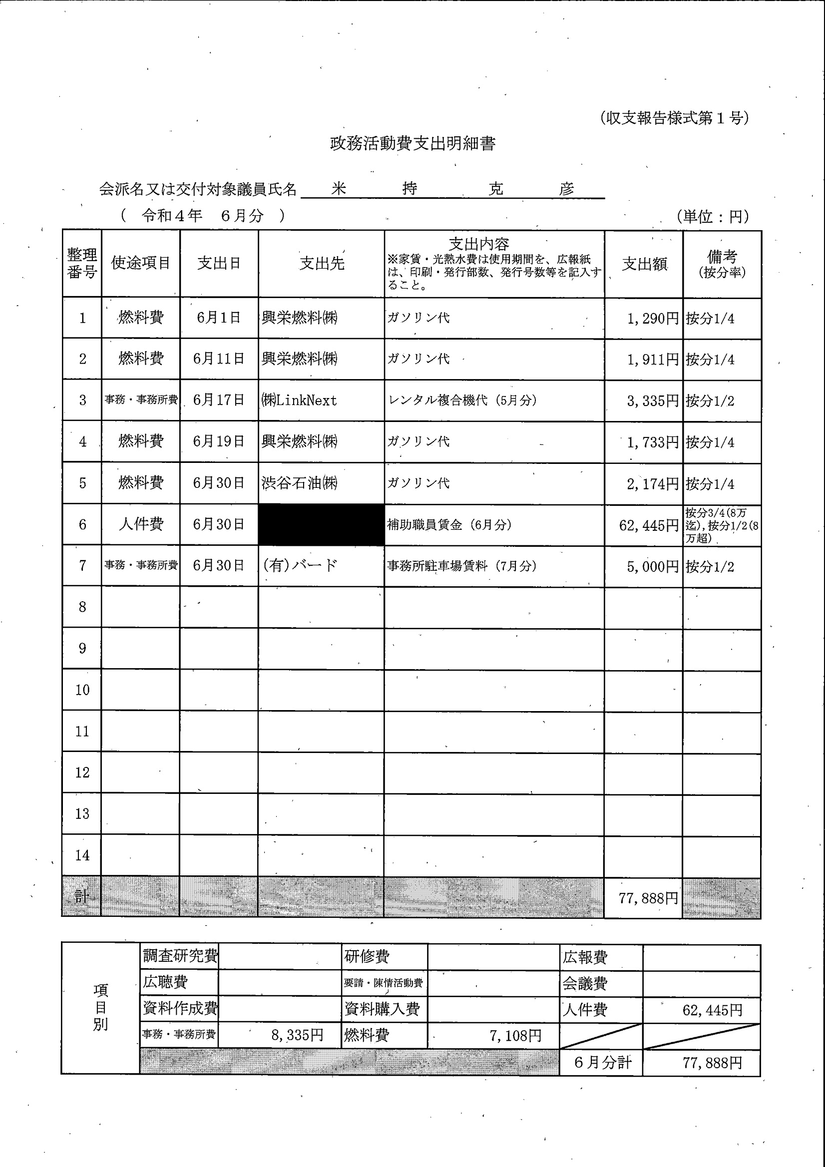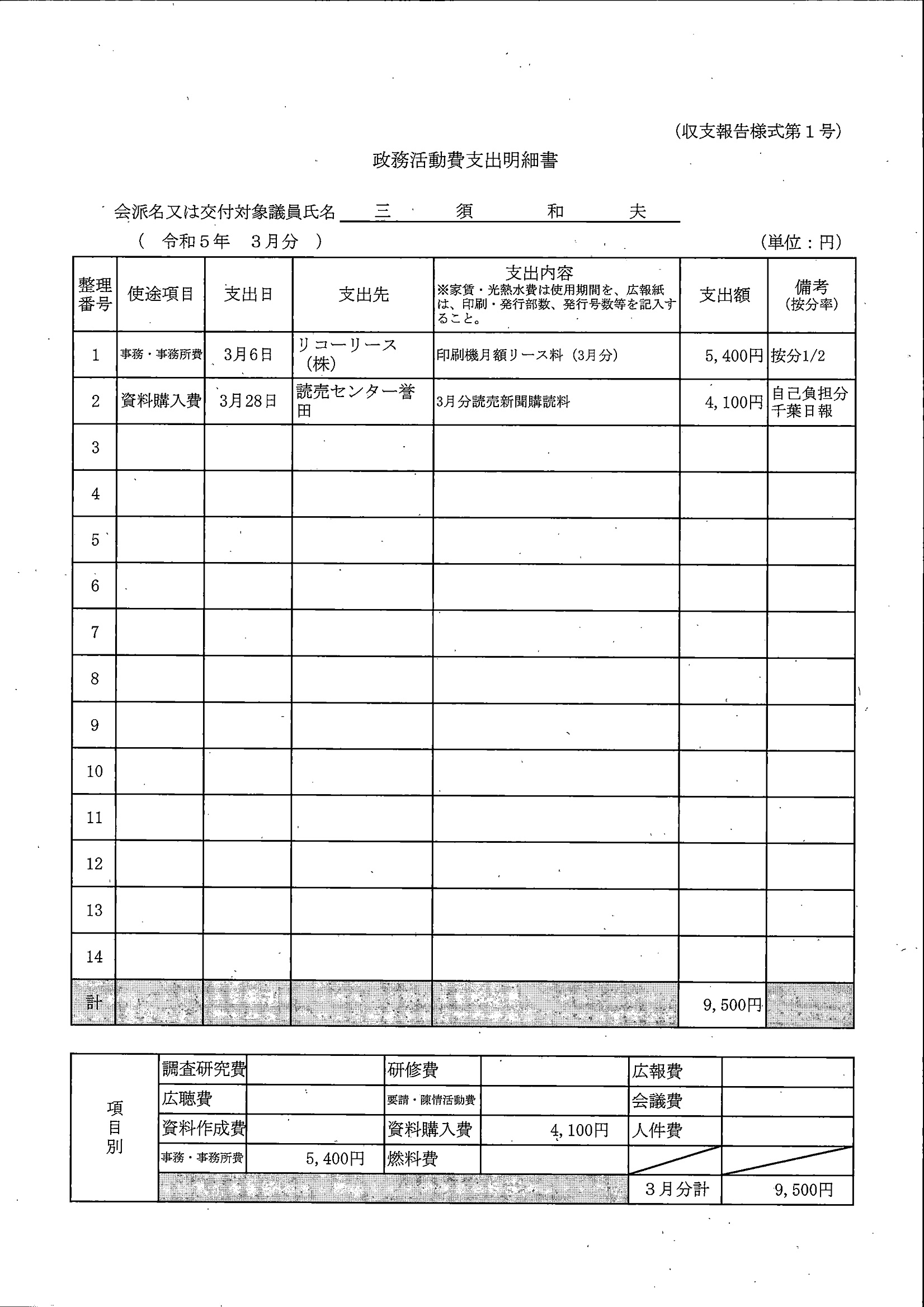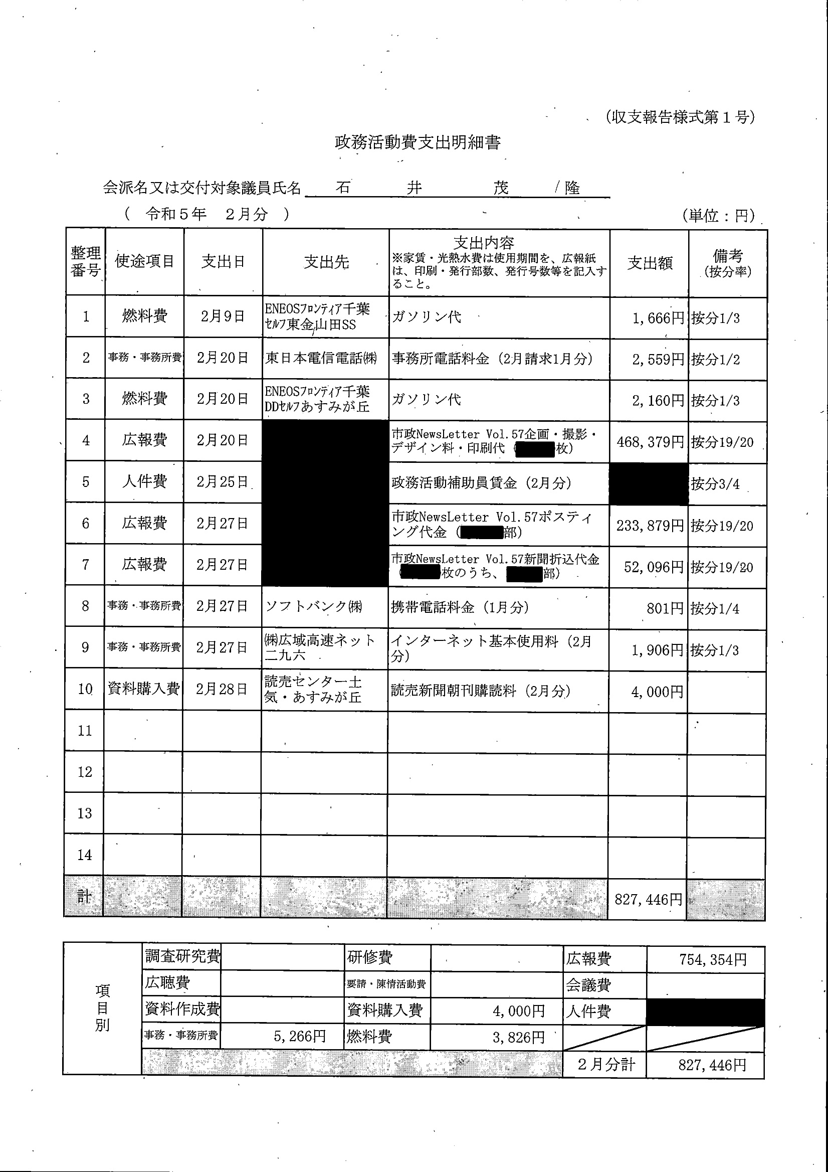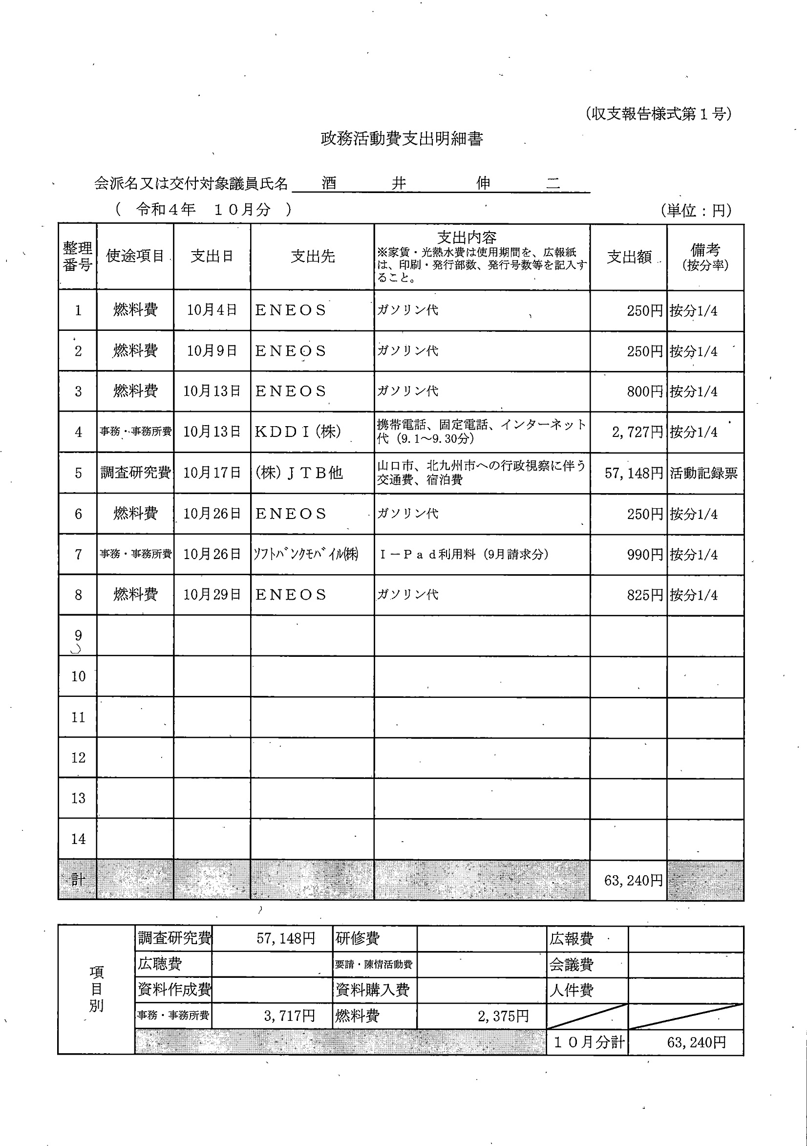 千葉市議会トップページ > 広報・情報公開 > 政務活動費 > 令和4年度交付分(政務活動費収支報告書)