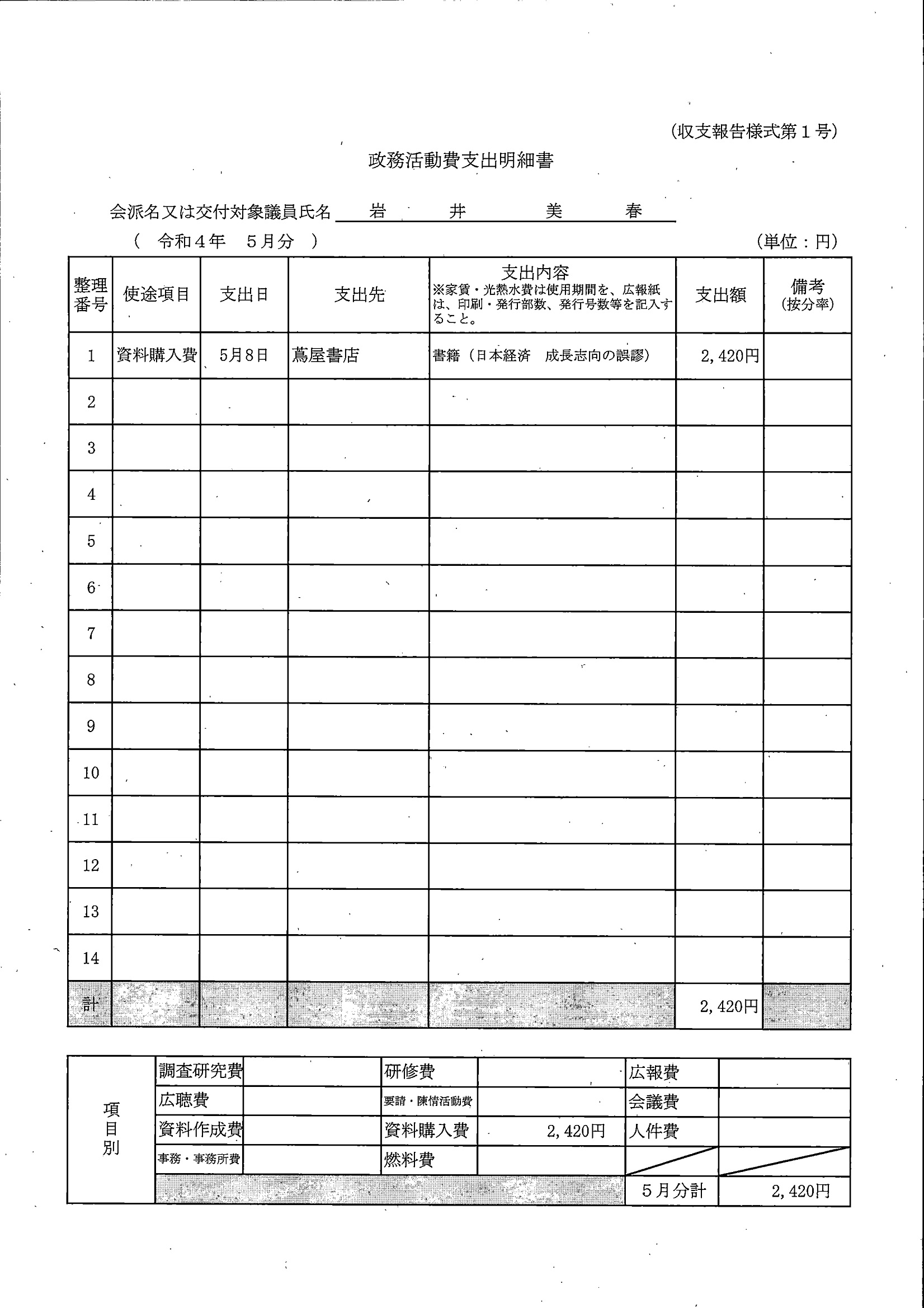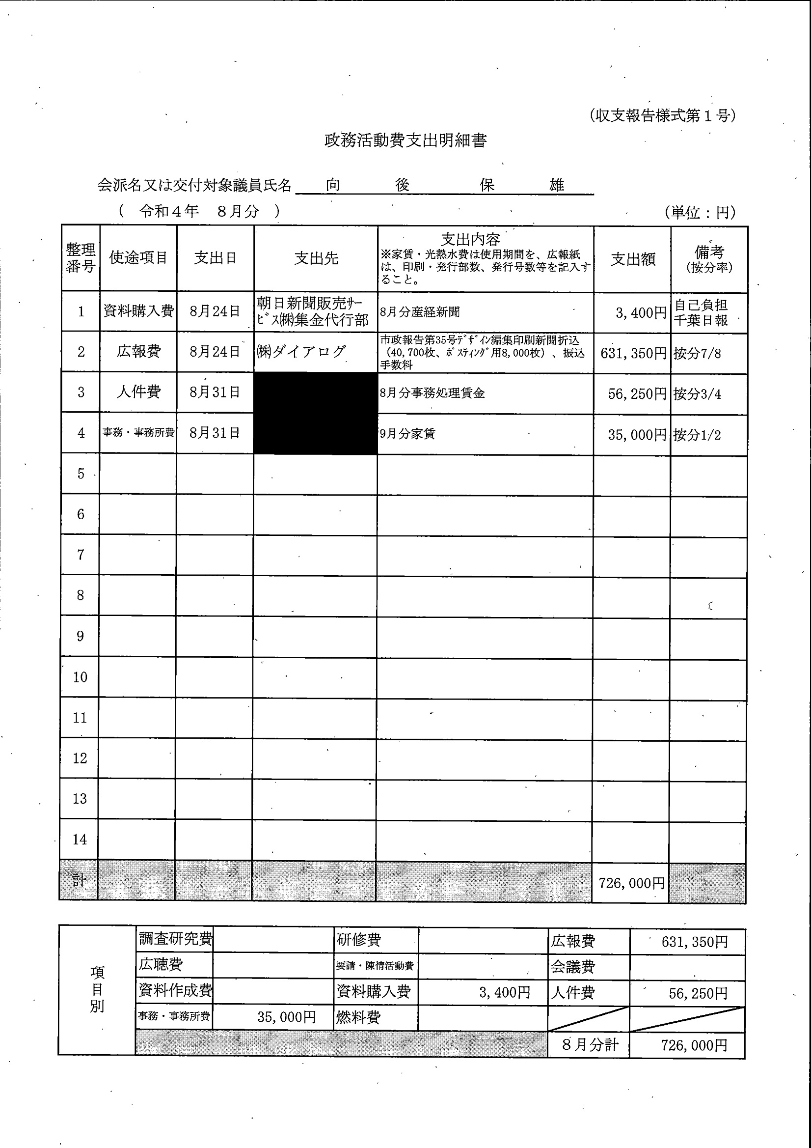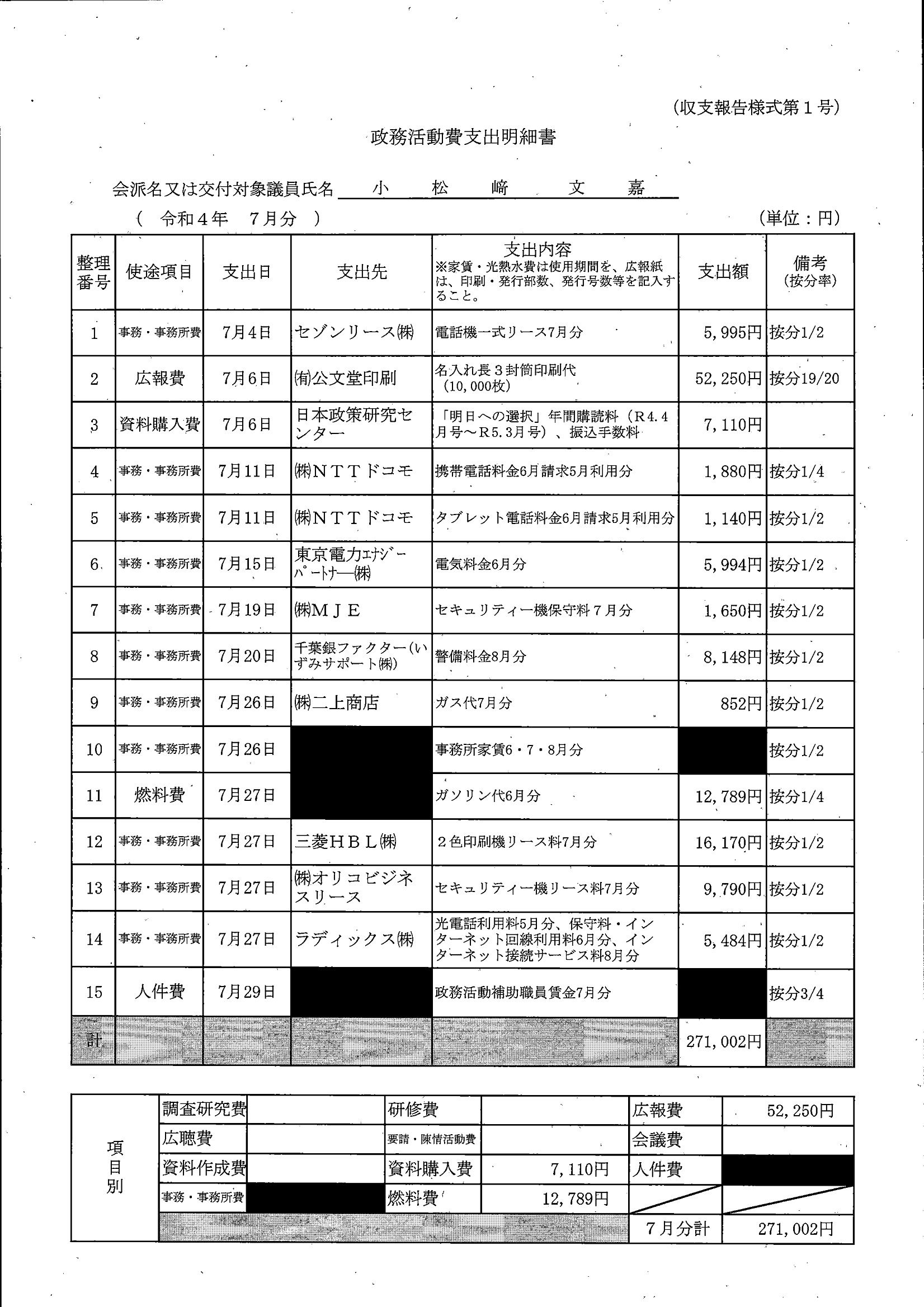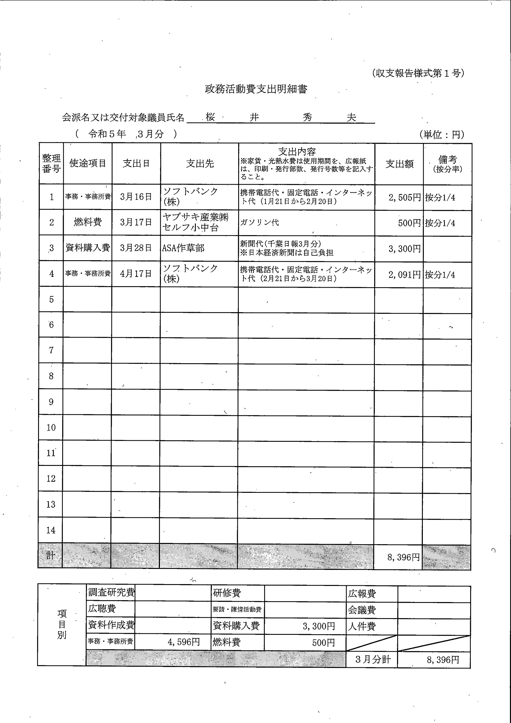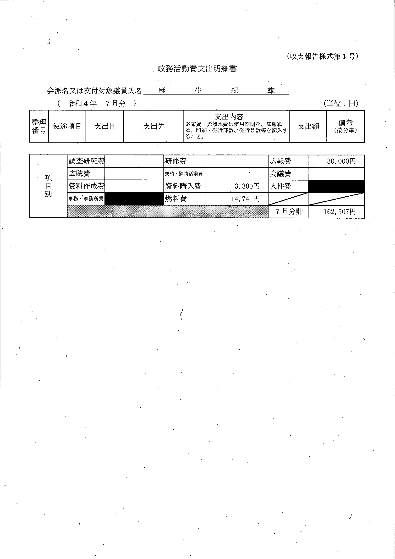 千葉市議会トップページ > 広報・情報公開 > 政務活動費 > 令和4年度交付分(政務活動費収支報告書)