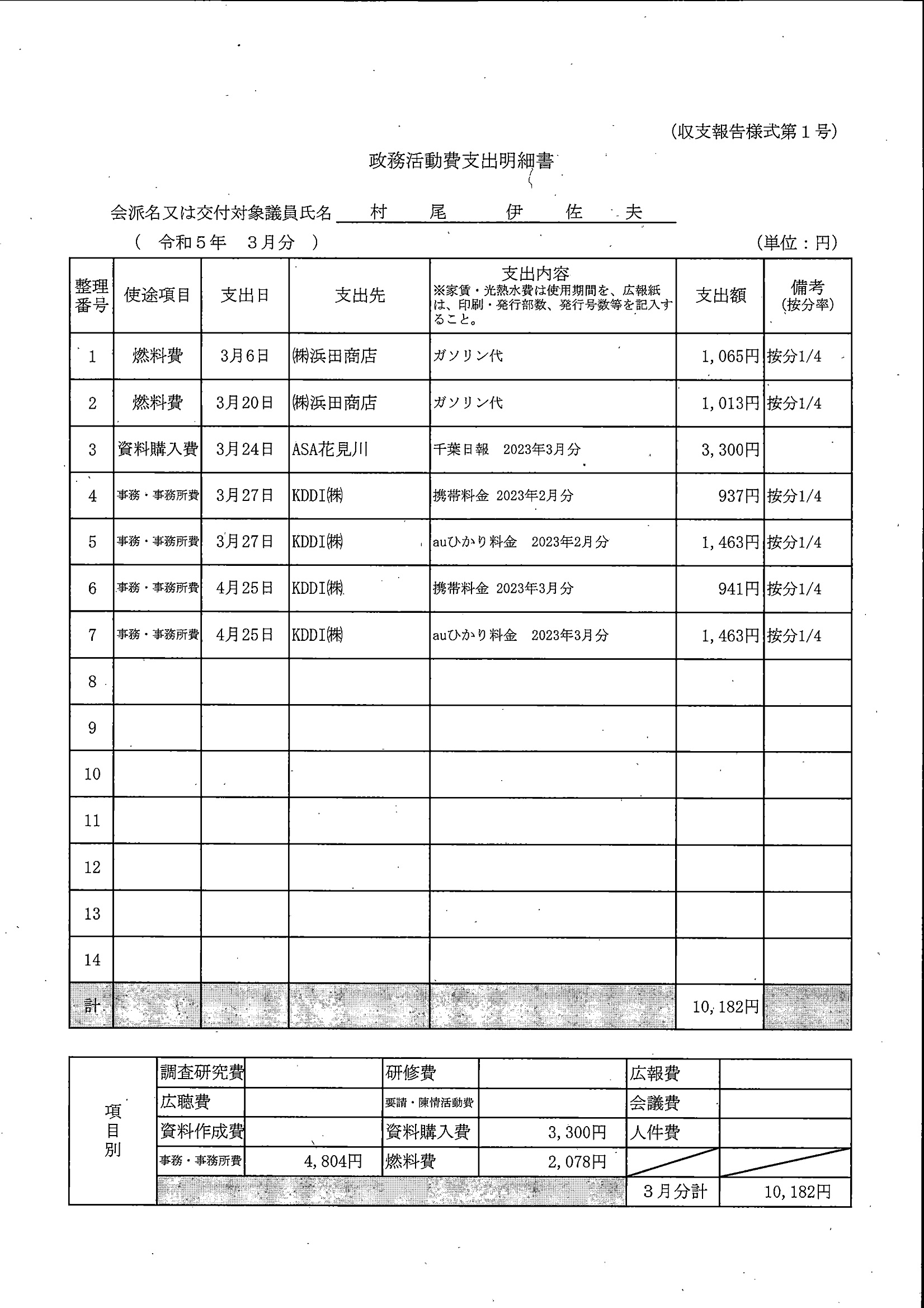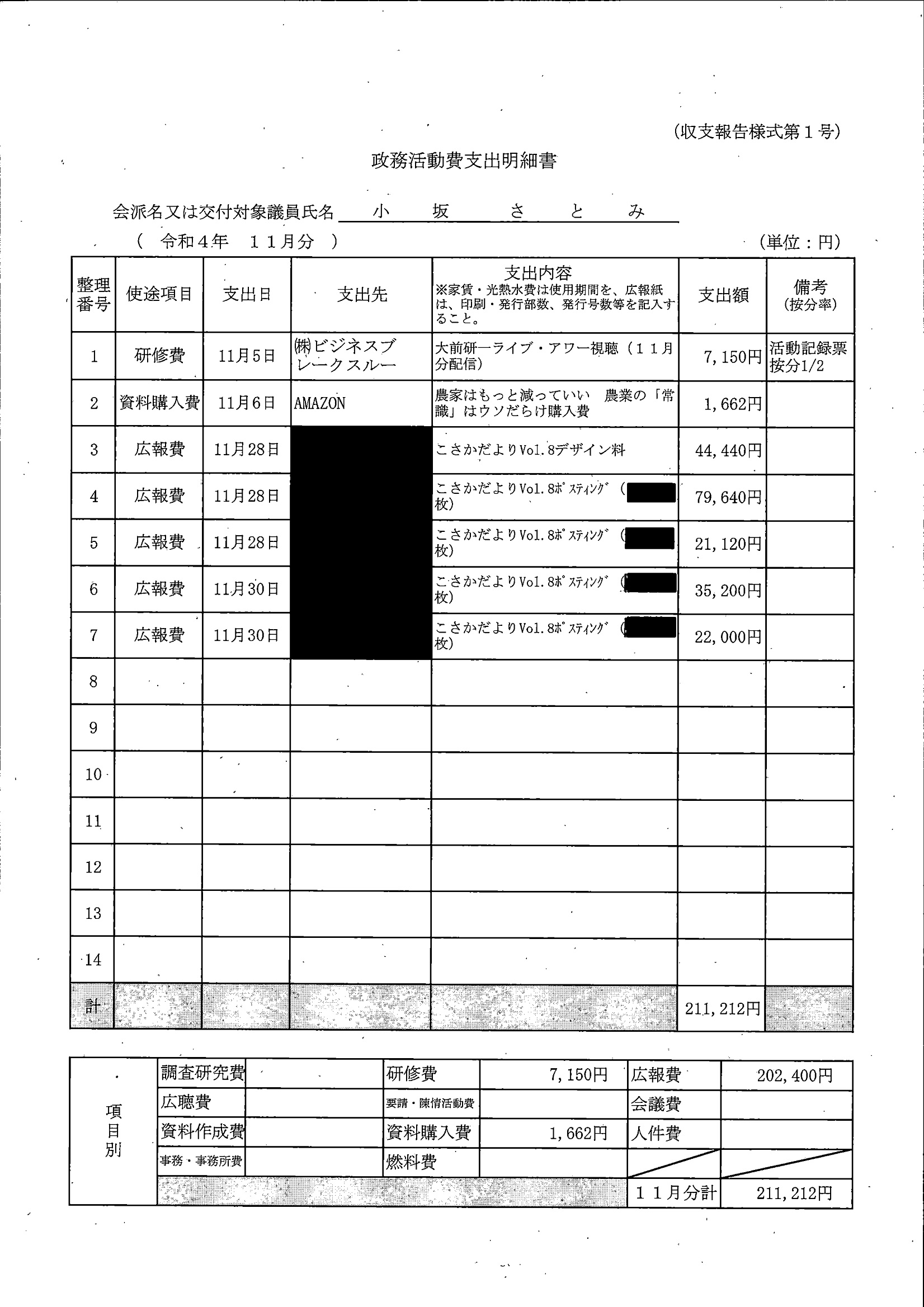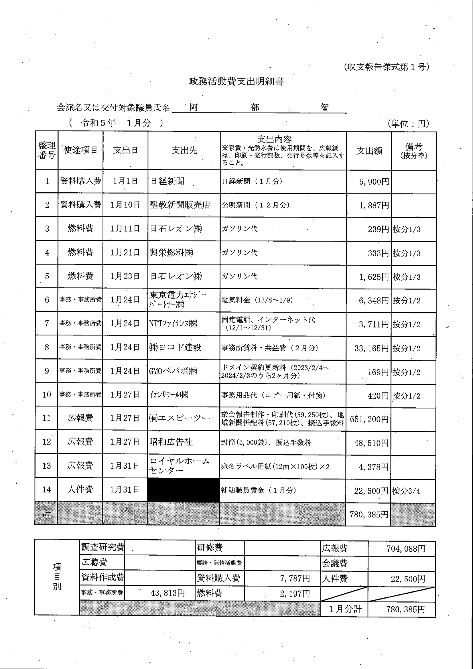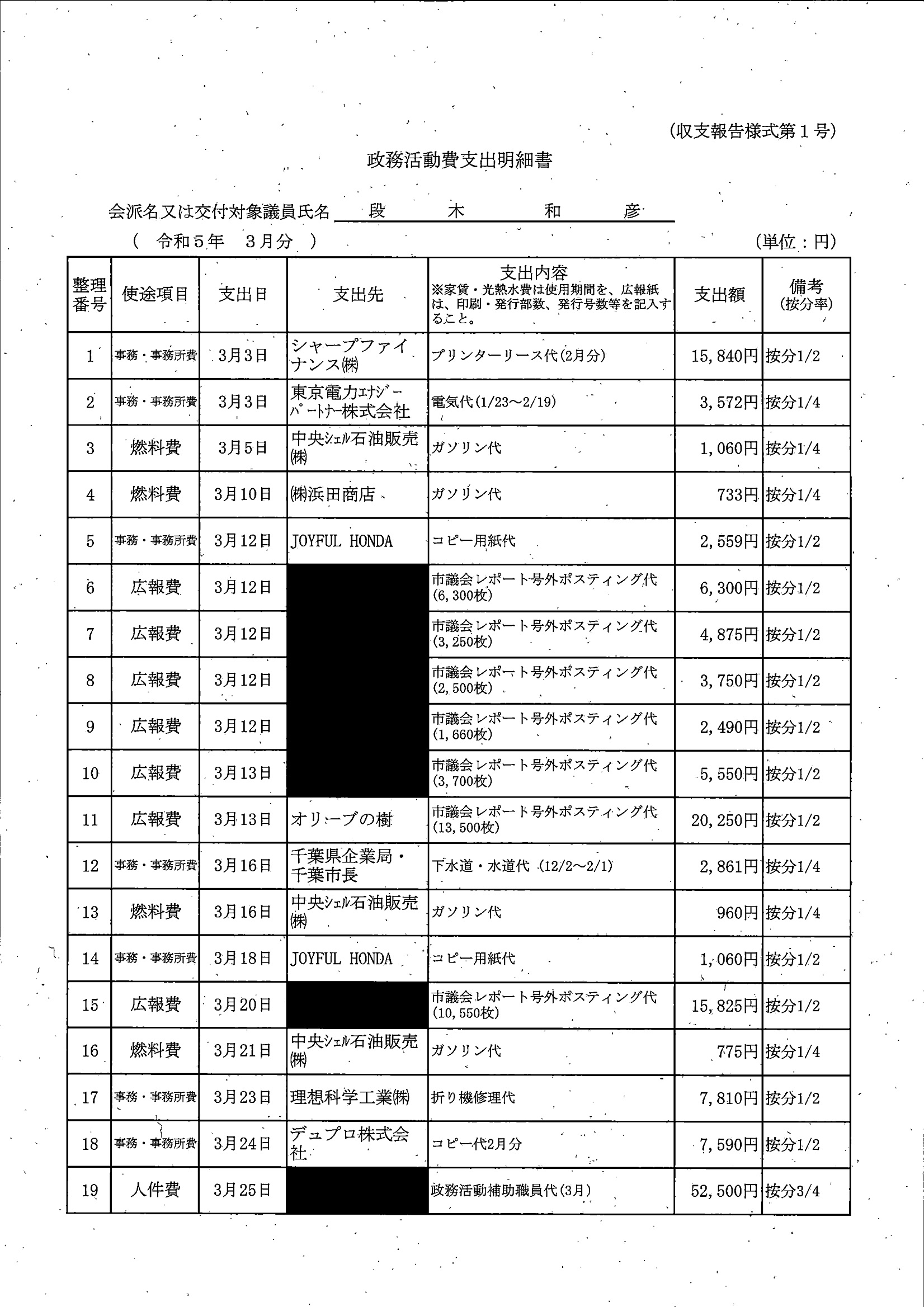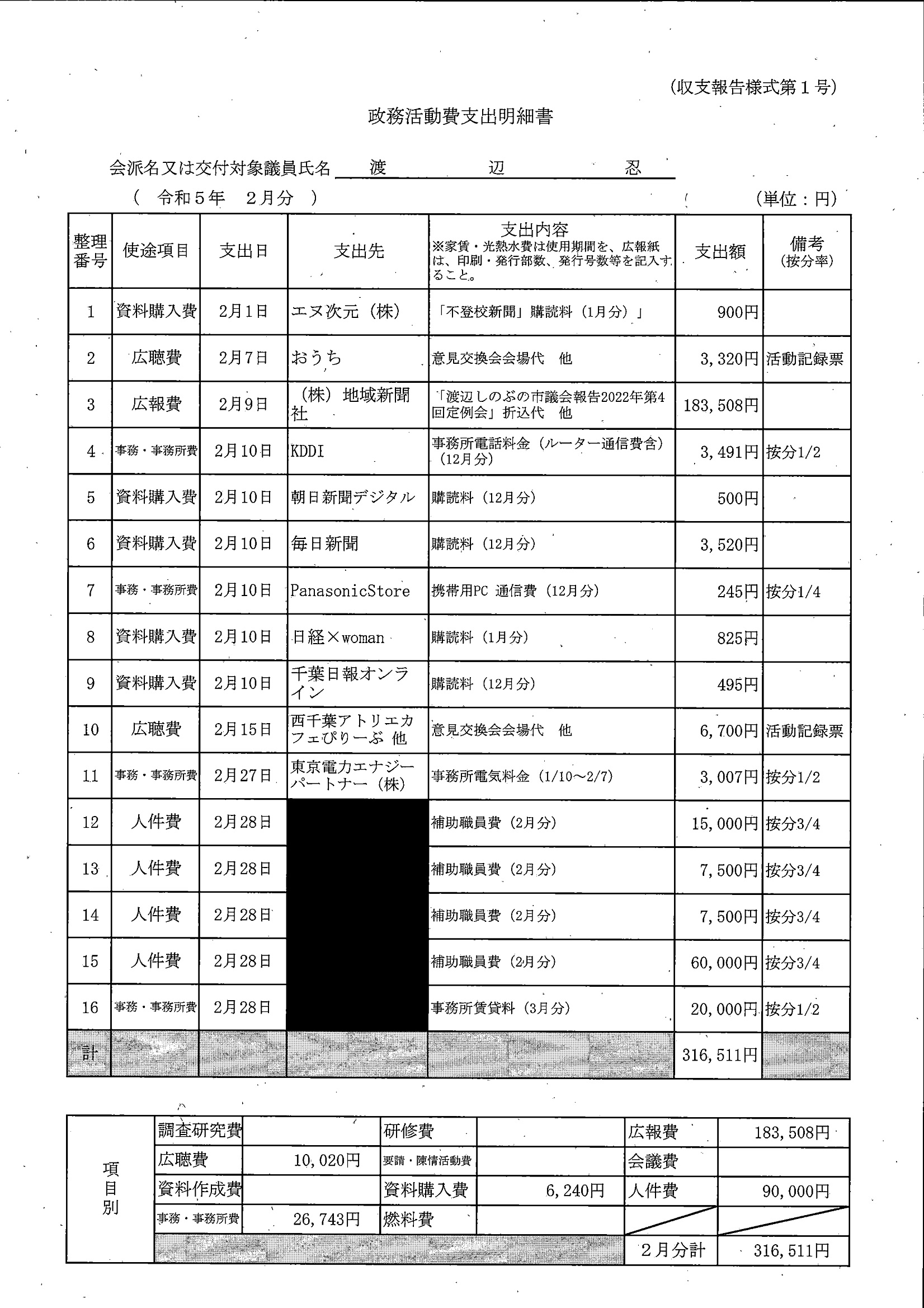 千葉市議会トップページ > 広報・情報公開 > 政務活動費 > 令和4年度交付分(政務活動費収支報告書)