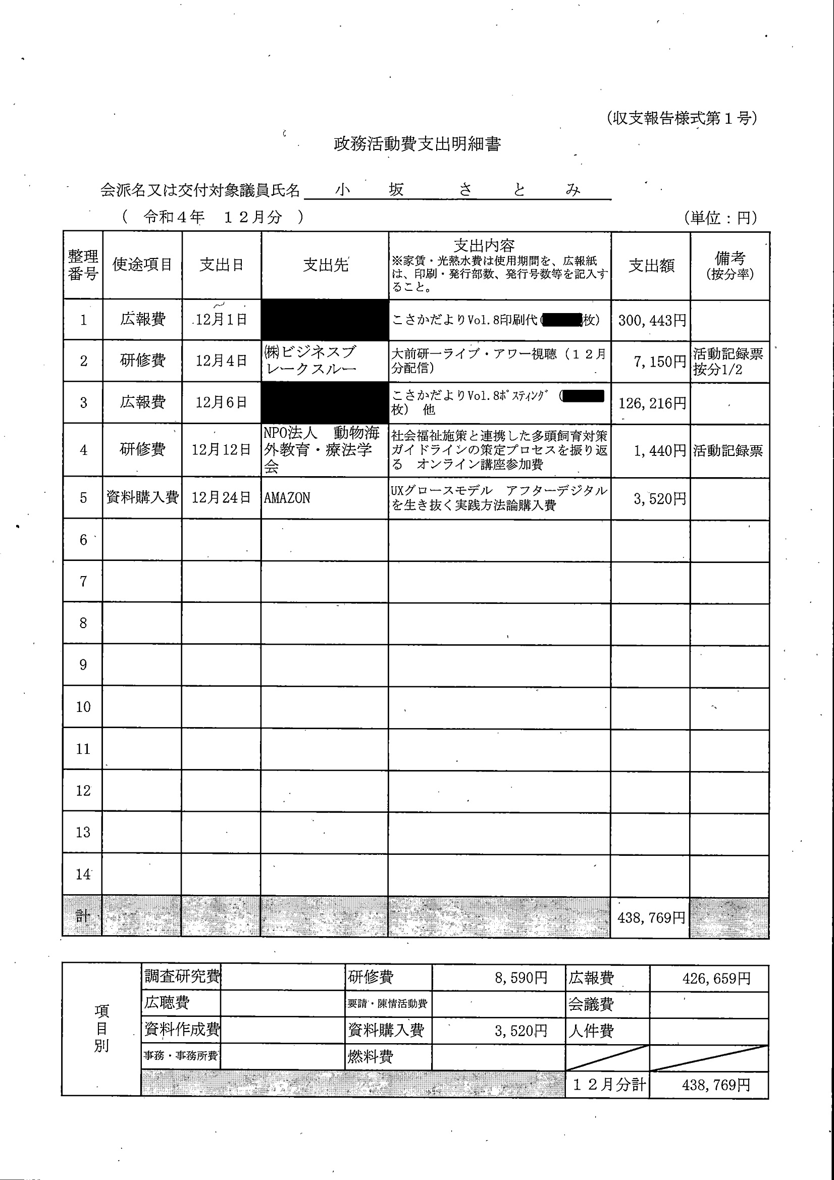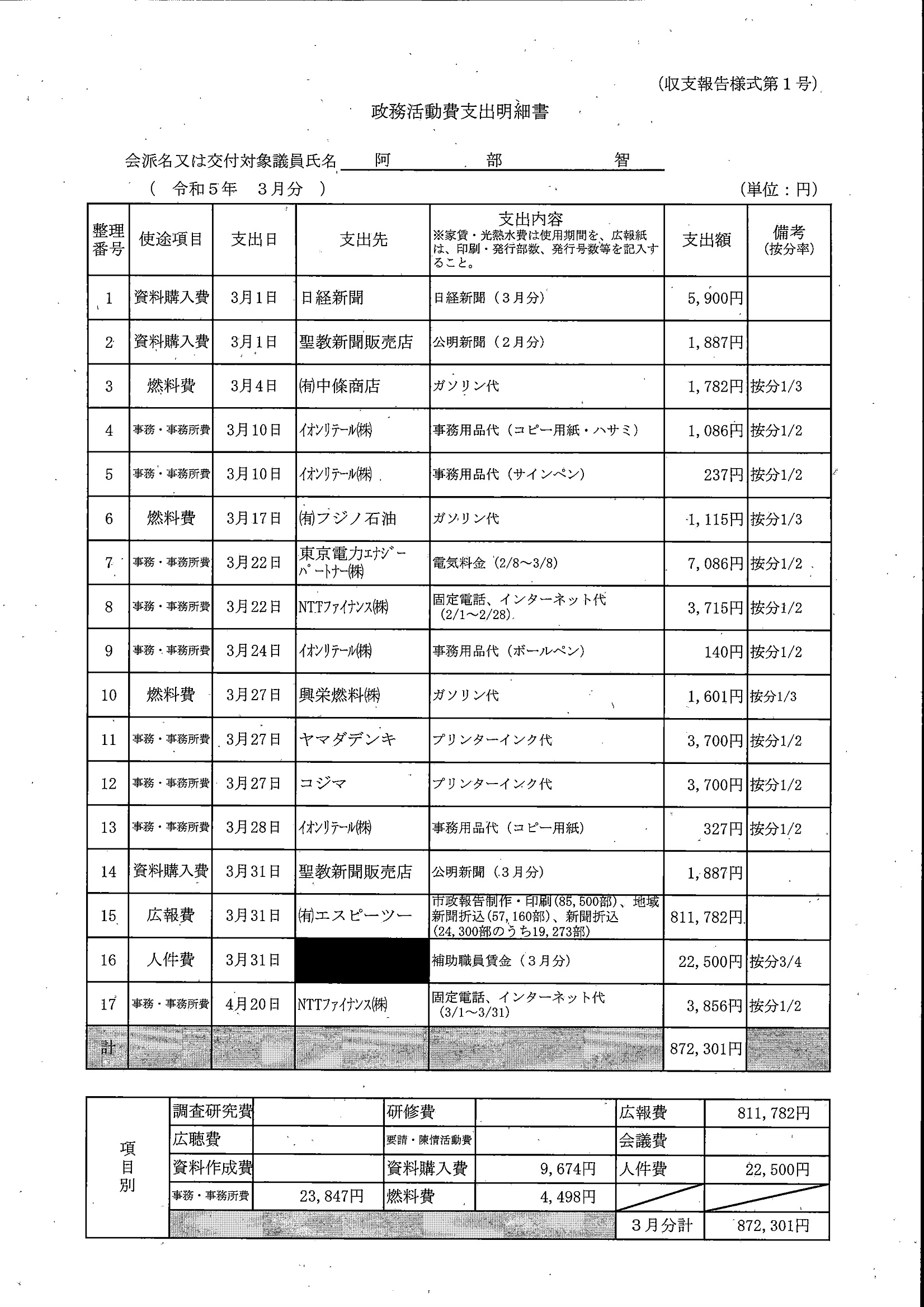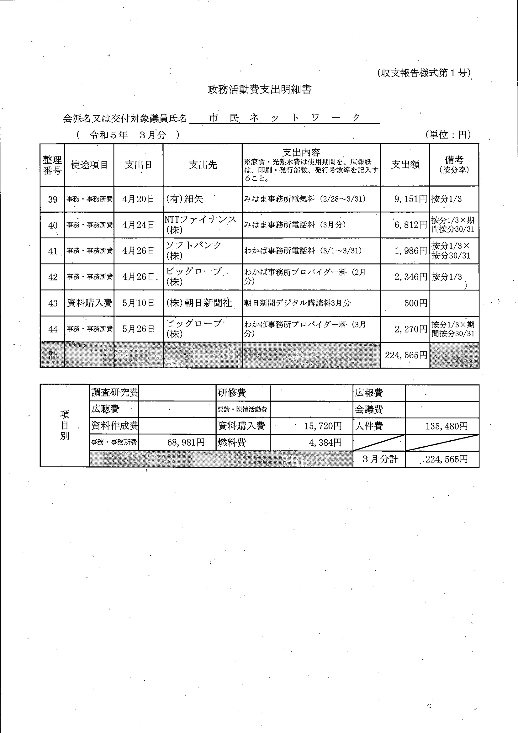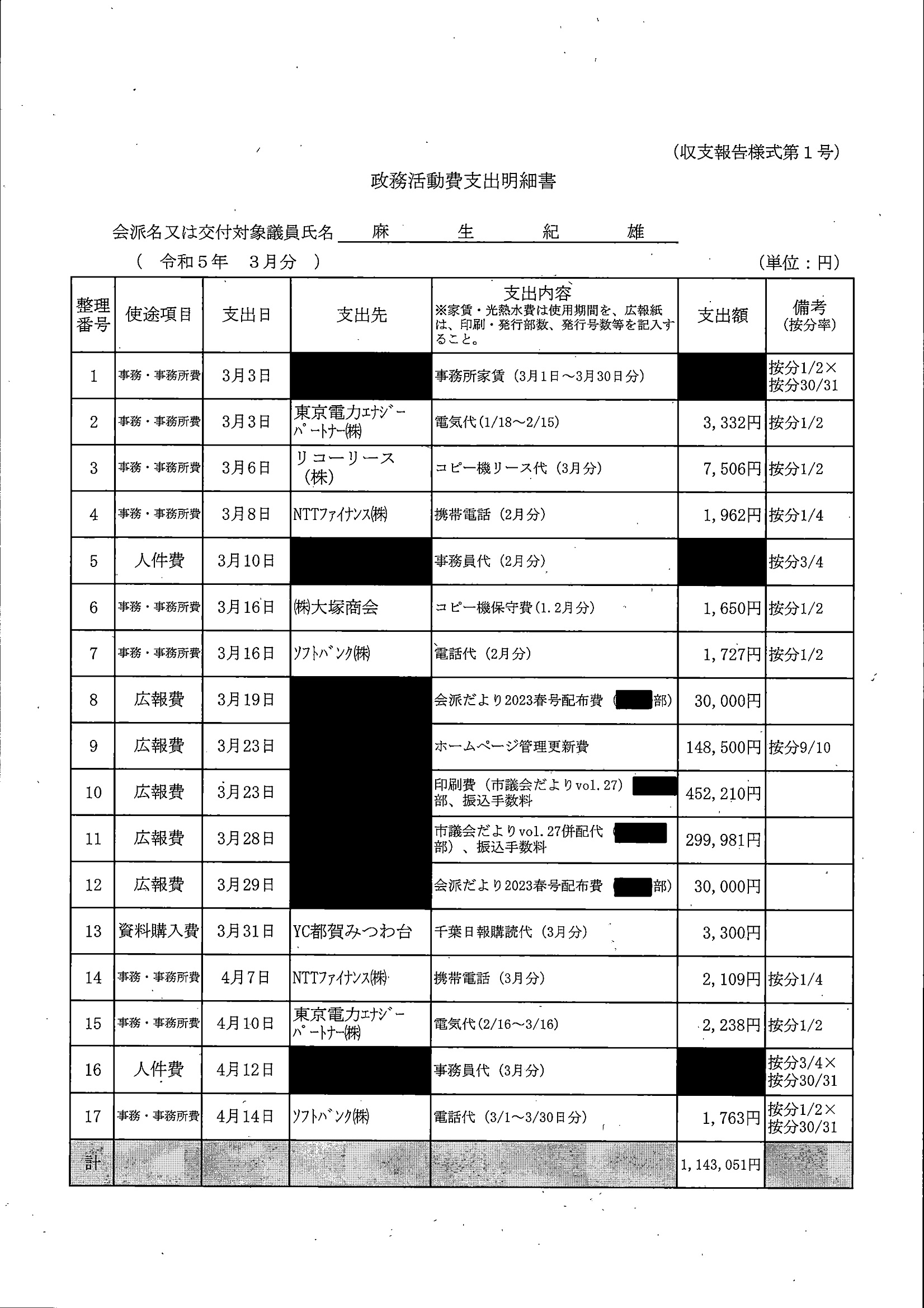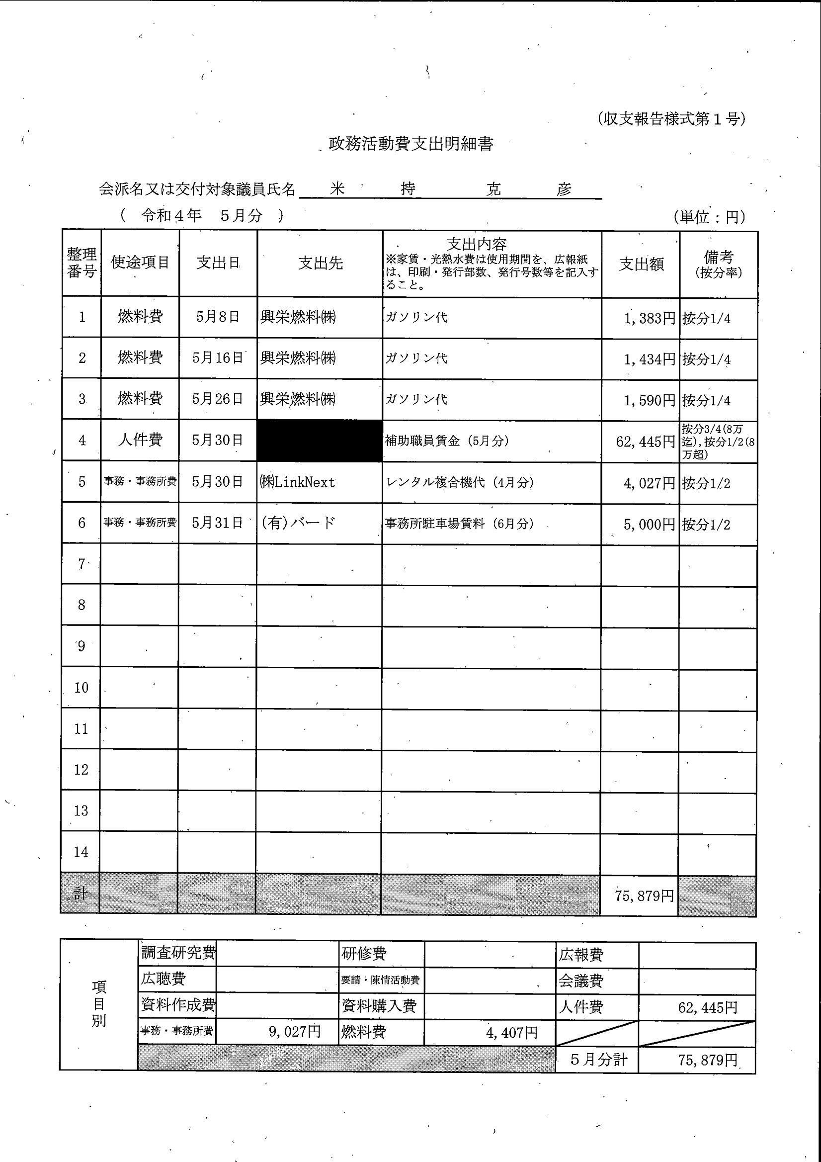 千葉市議会トップページ > 広報・情報公開 > 政務活動費 > 令和4年度交付分(政務活動費収支報告書)