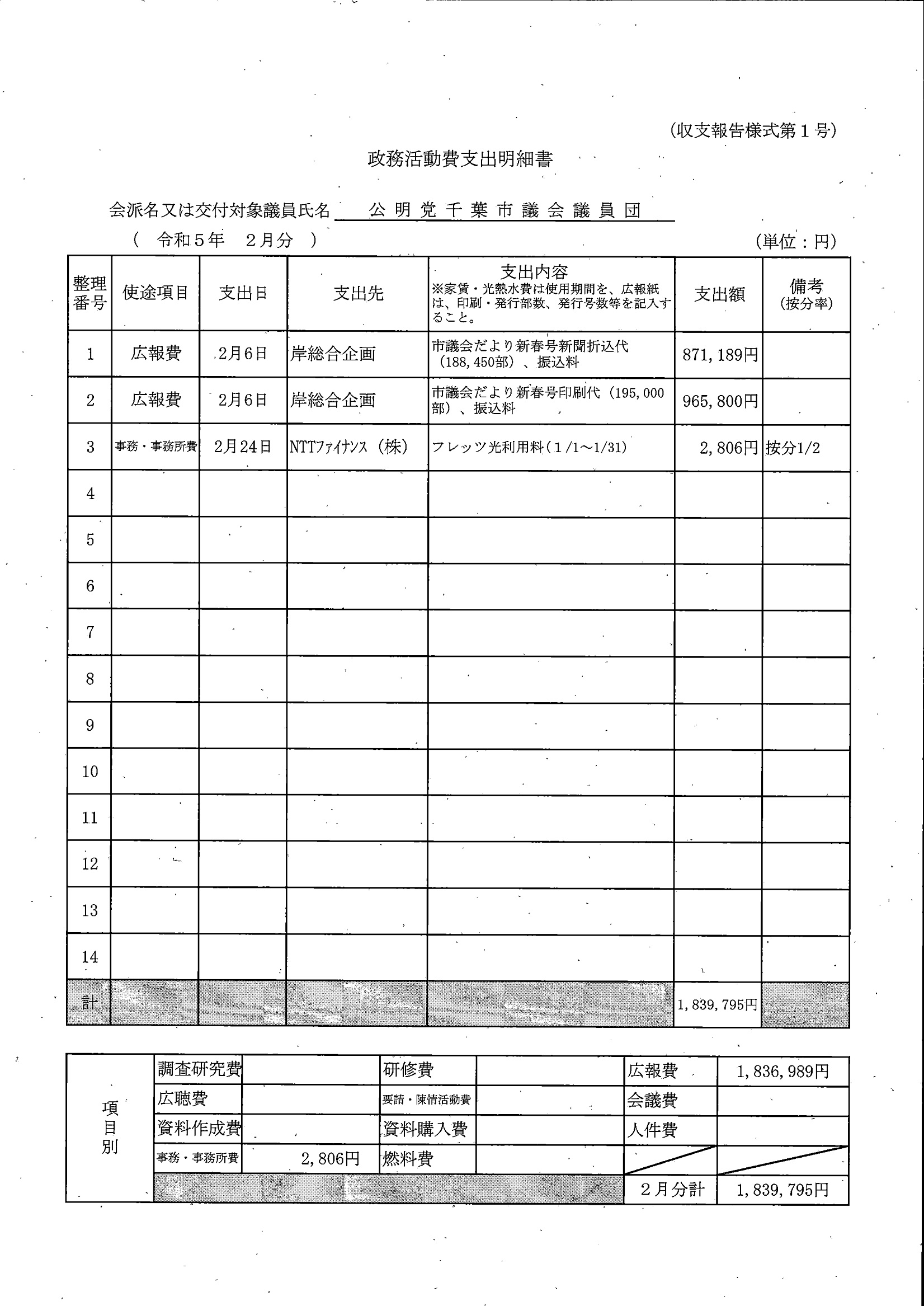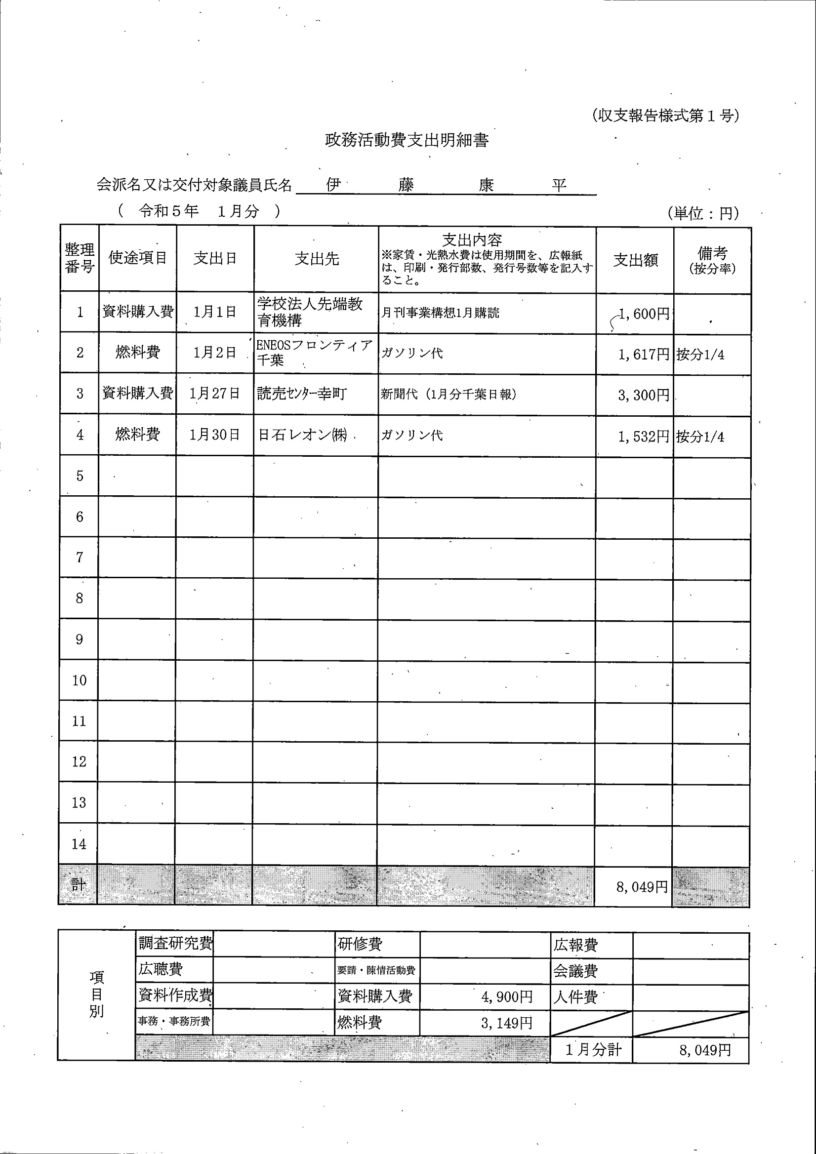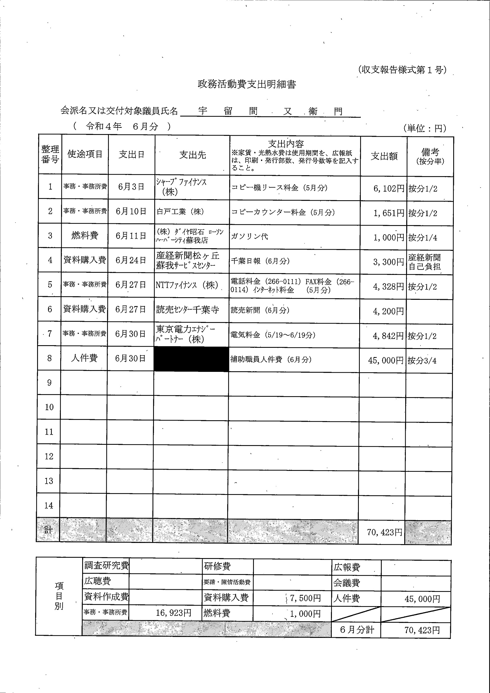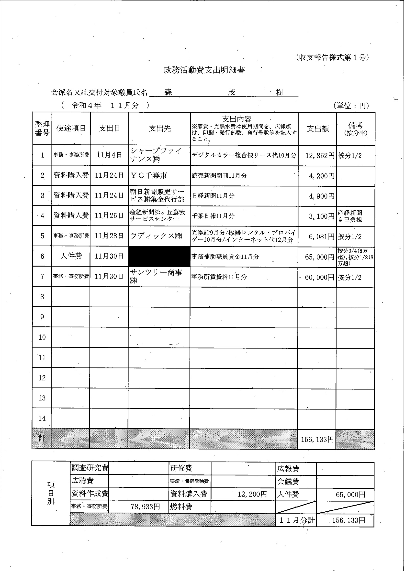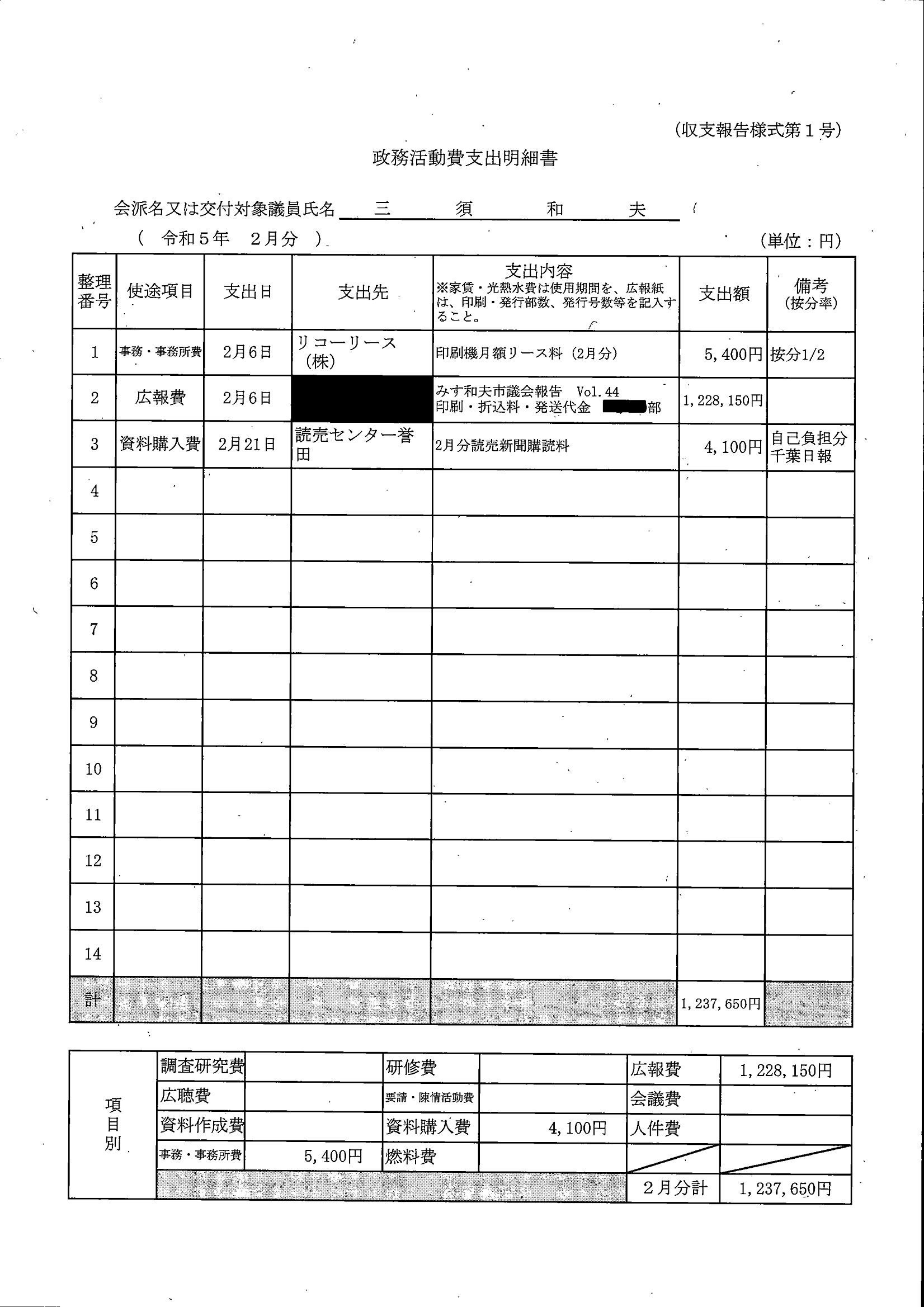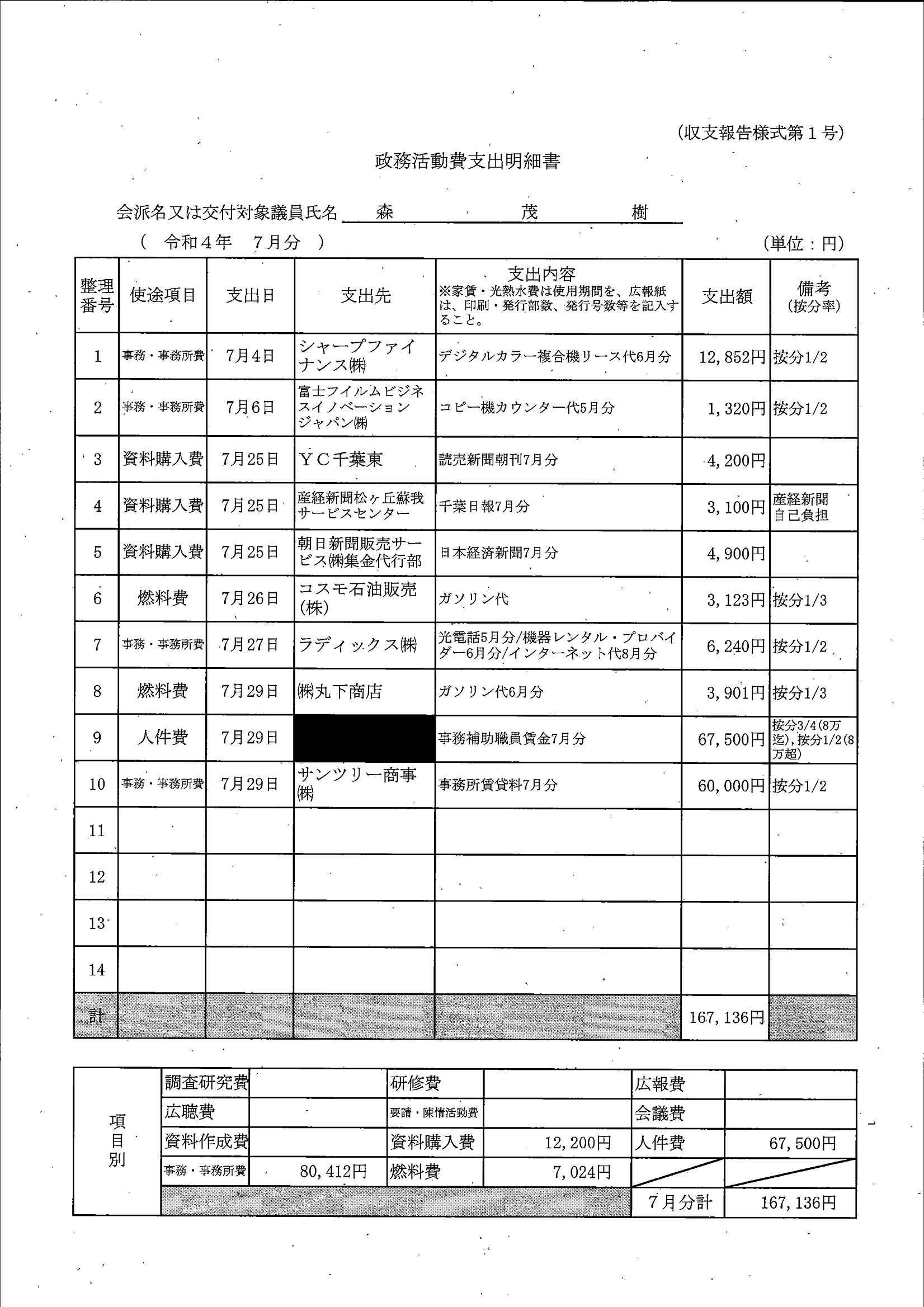 千葉市議会トップページ > 広報・情報公開 > 政務活動費 > 令和4年度交付分(政務活動費収支報告書)