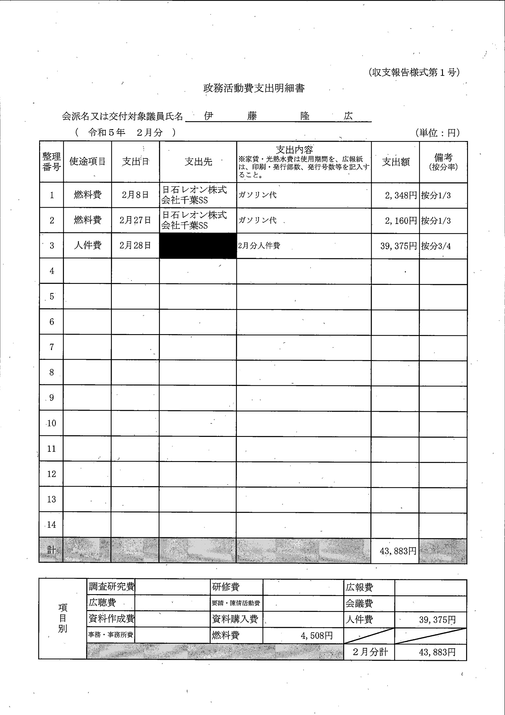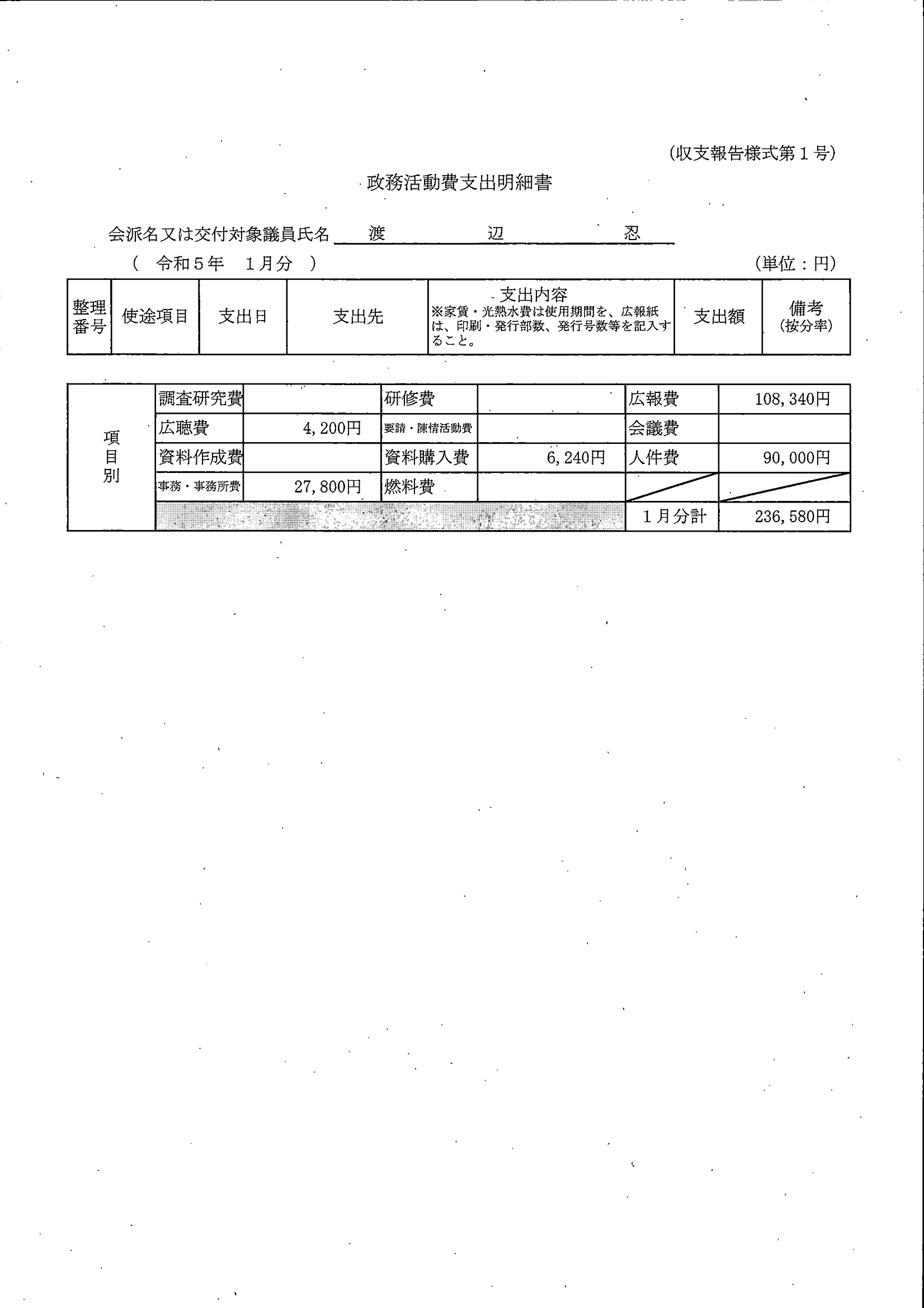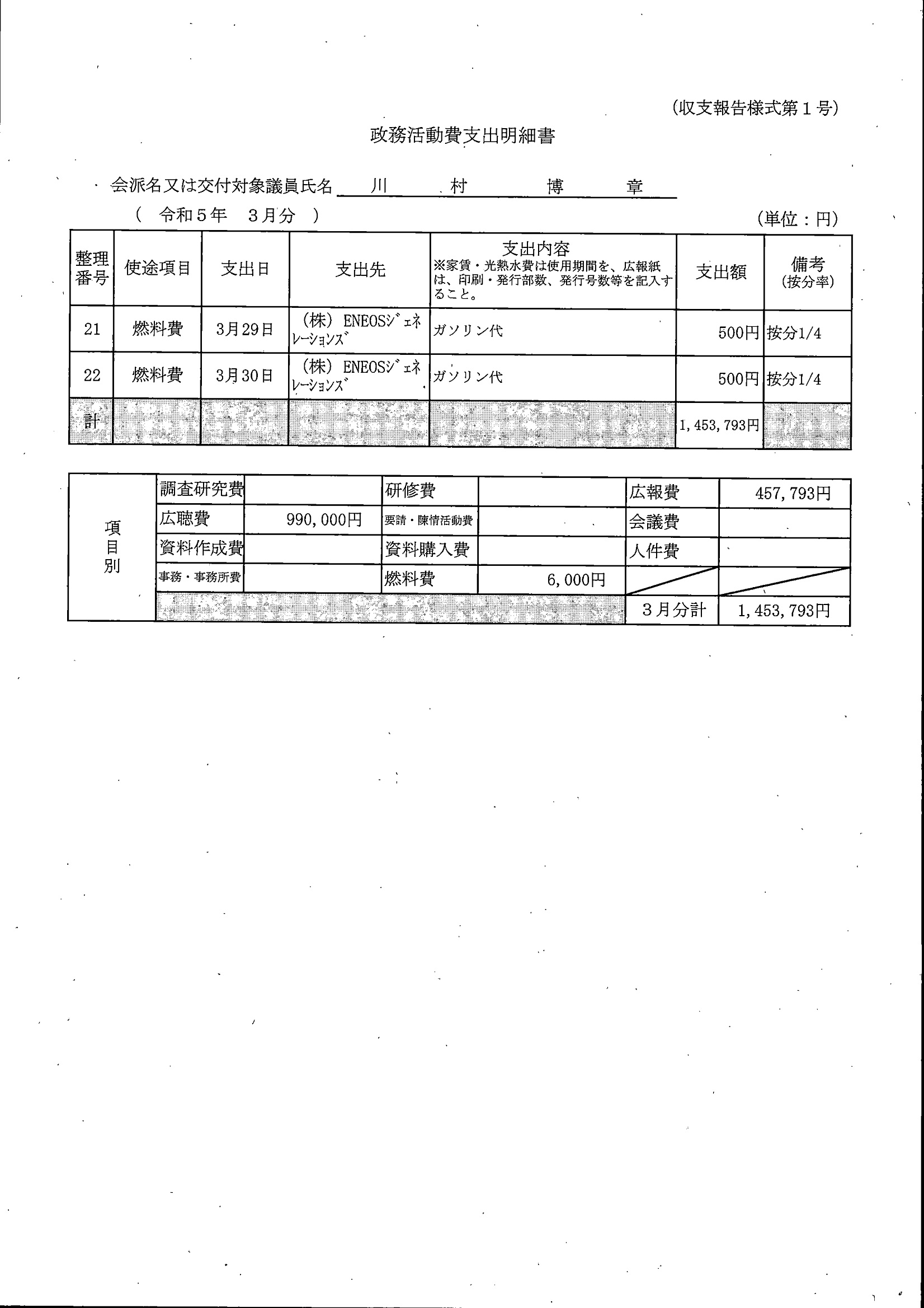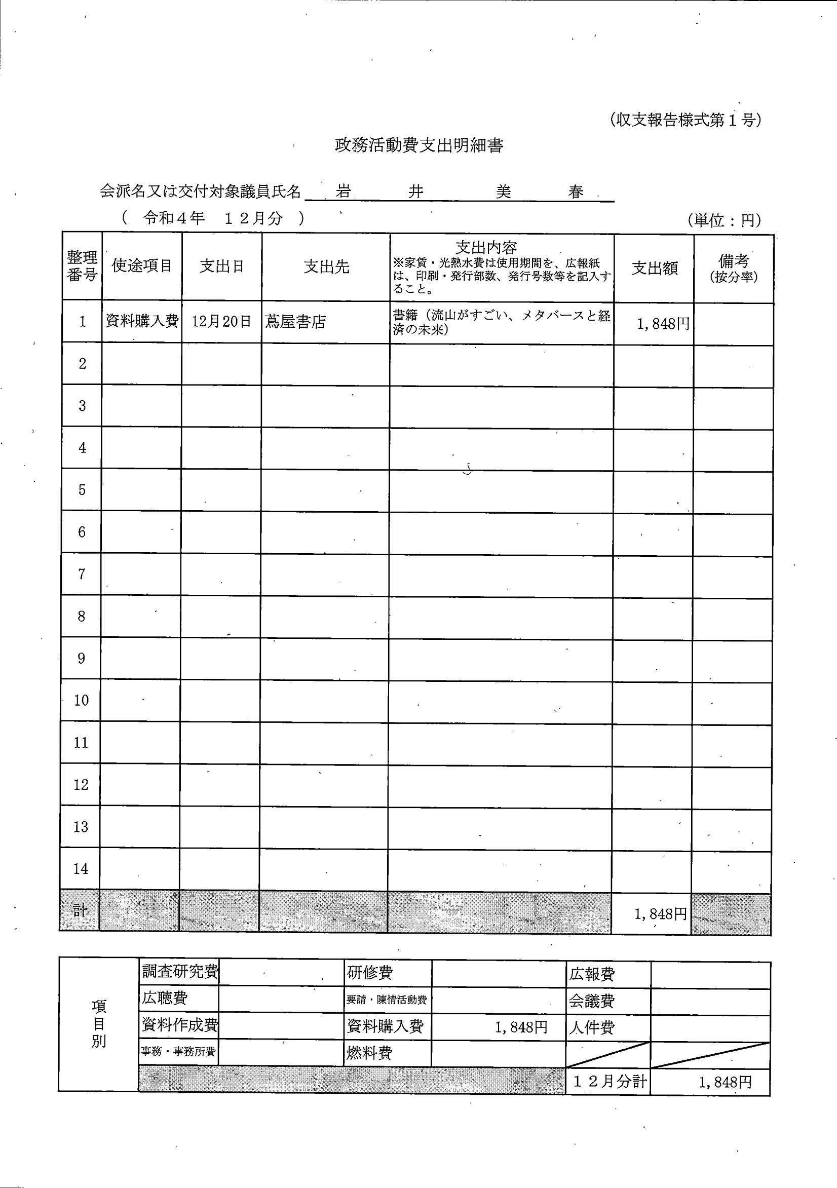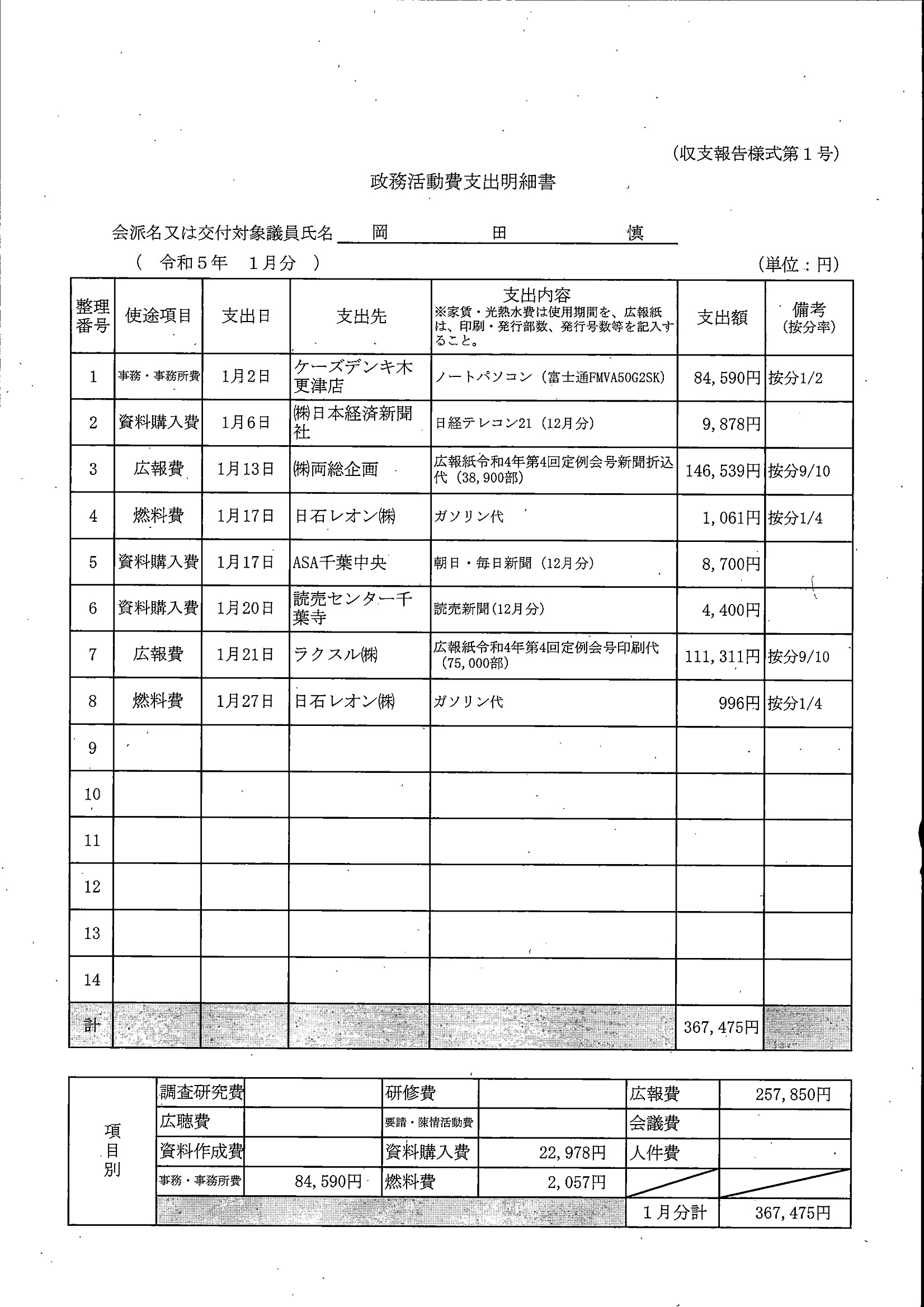 千葉市議会トップページ > 広報・情報公開 > 政務活動費 > 令和4年度交付分(政務活動費収支報告書)