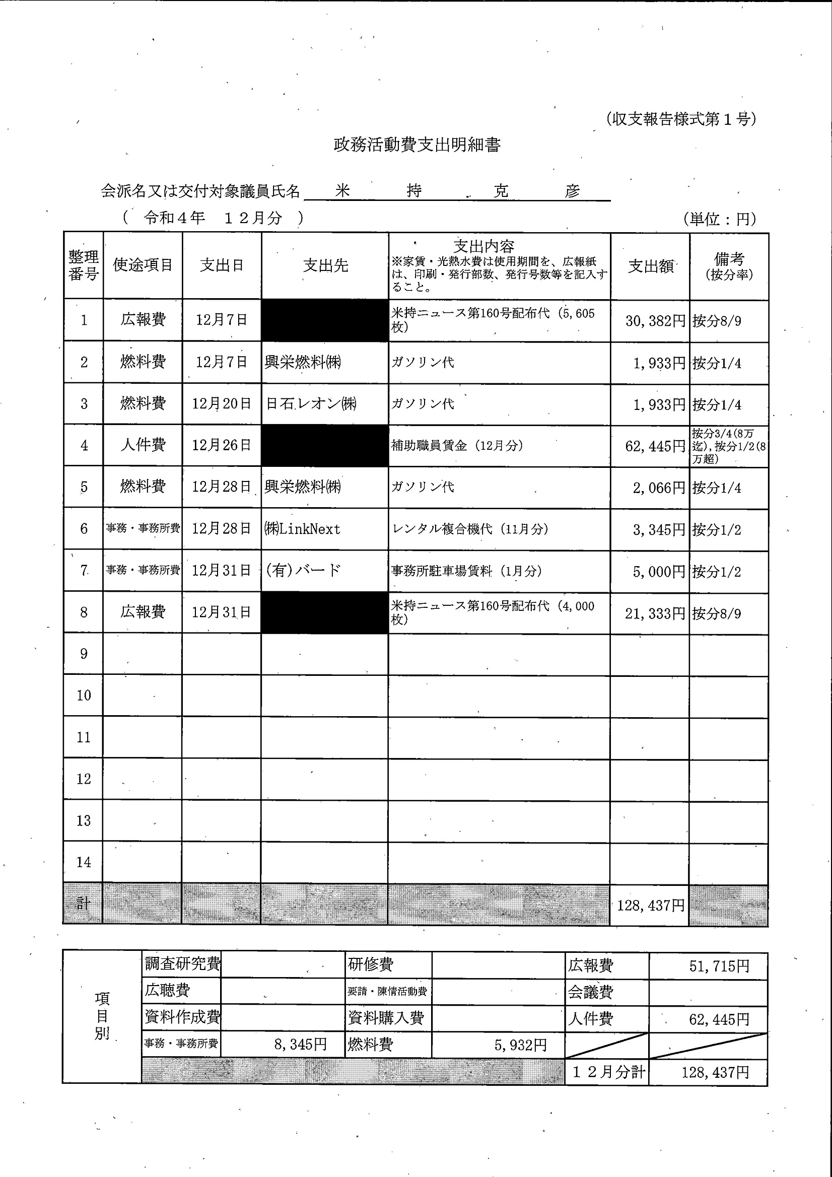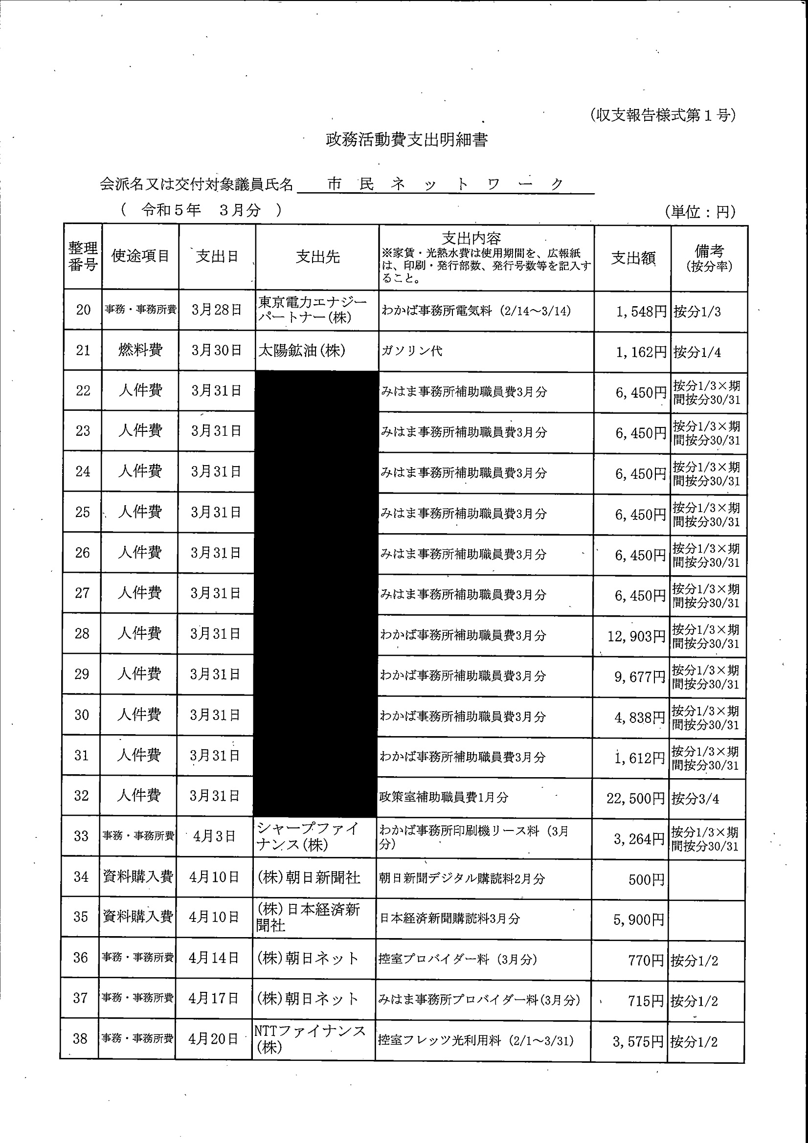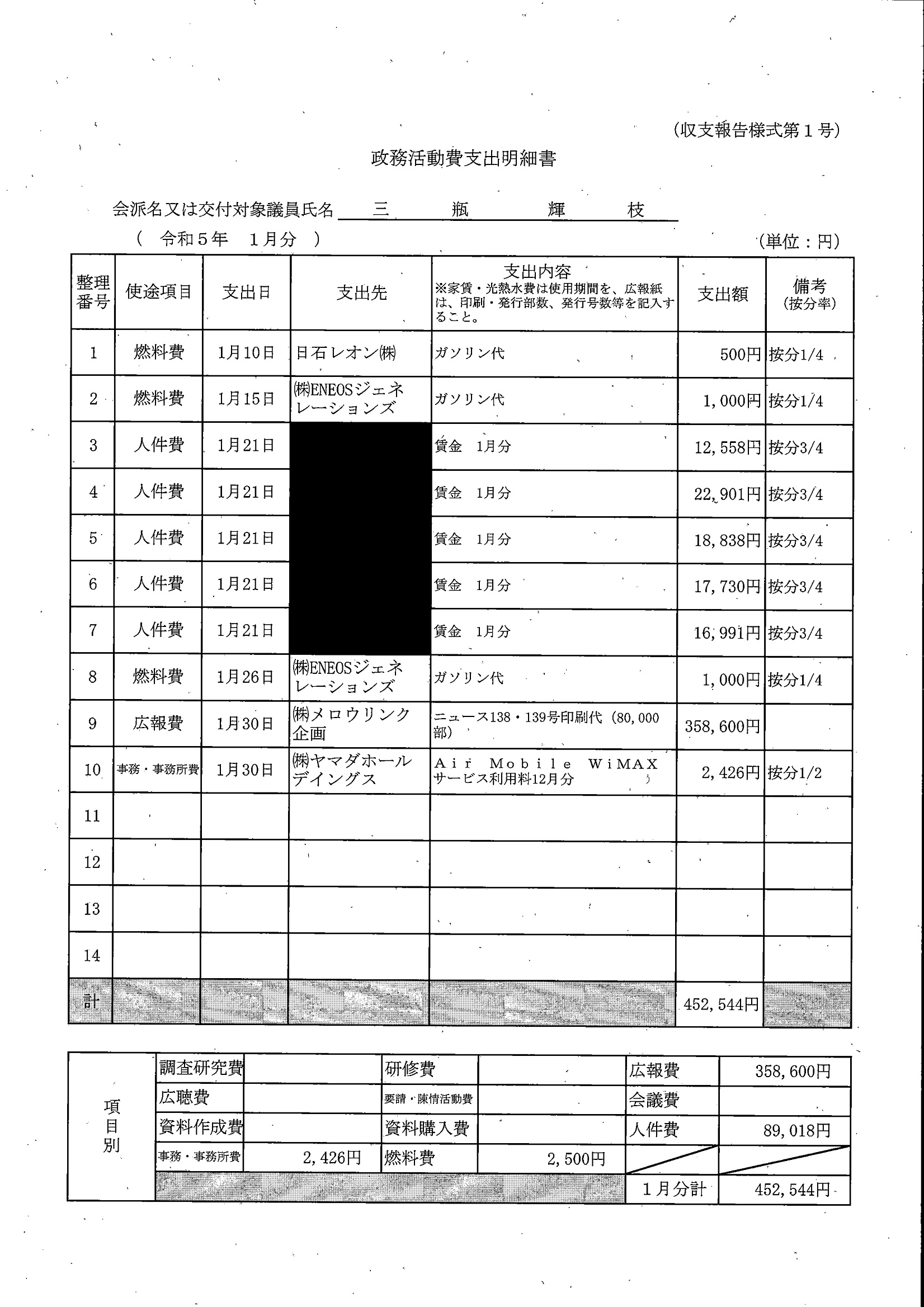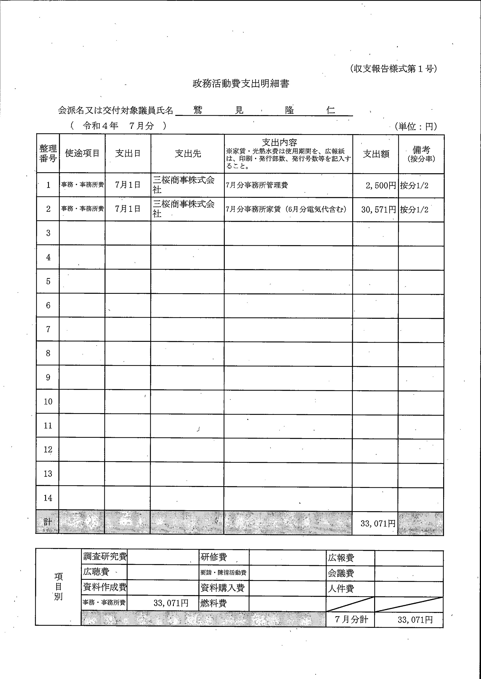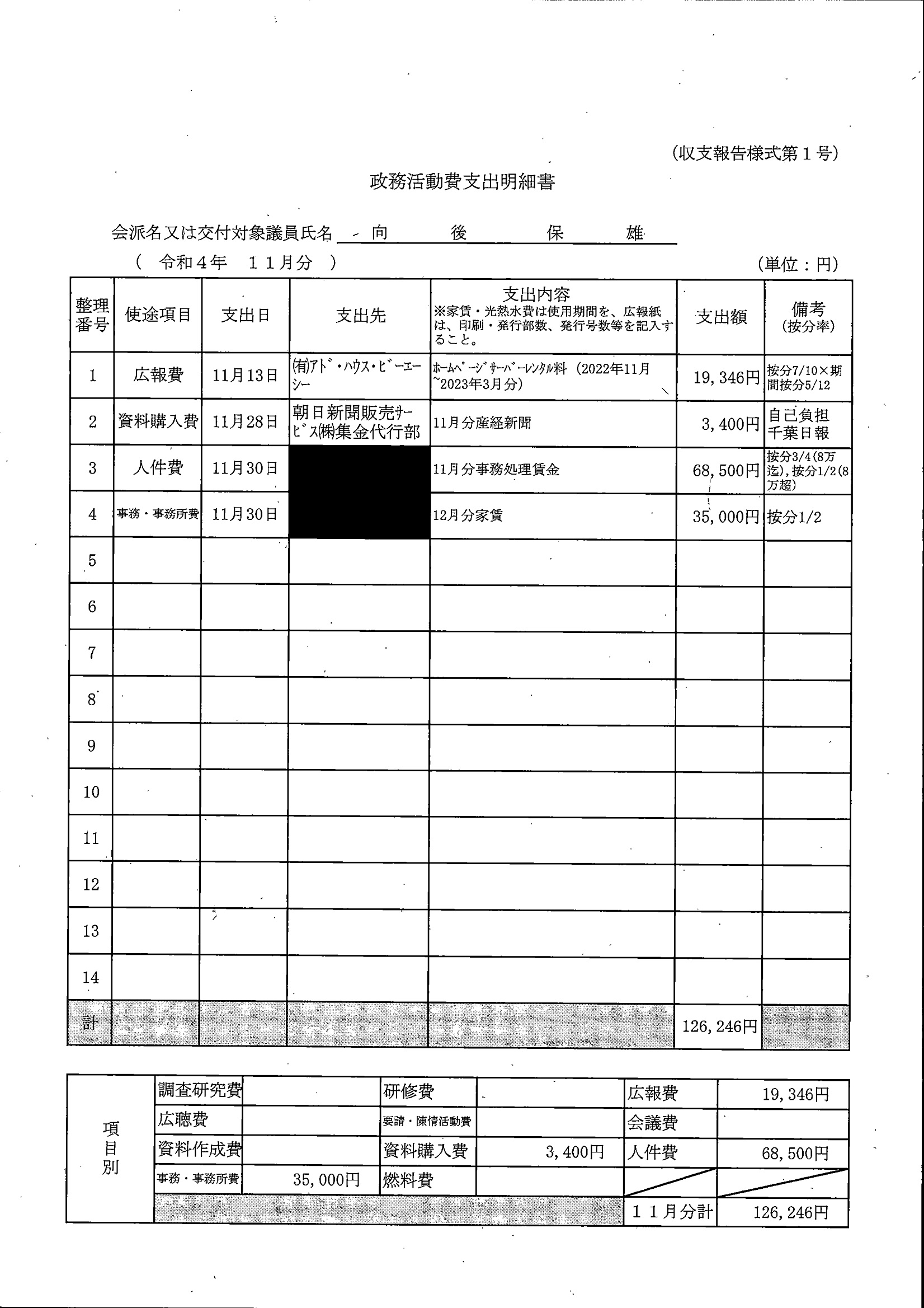 千葉市議会トップページ > 広報・情報公開 > 政務活動費 > 令和4年度交付分(政務活動費収支報告書)