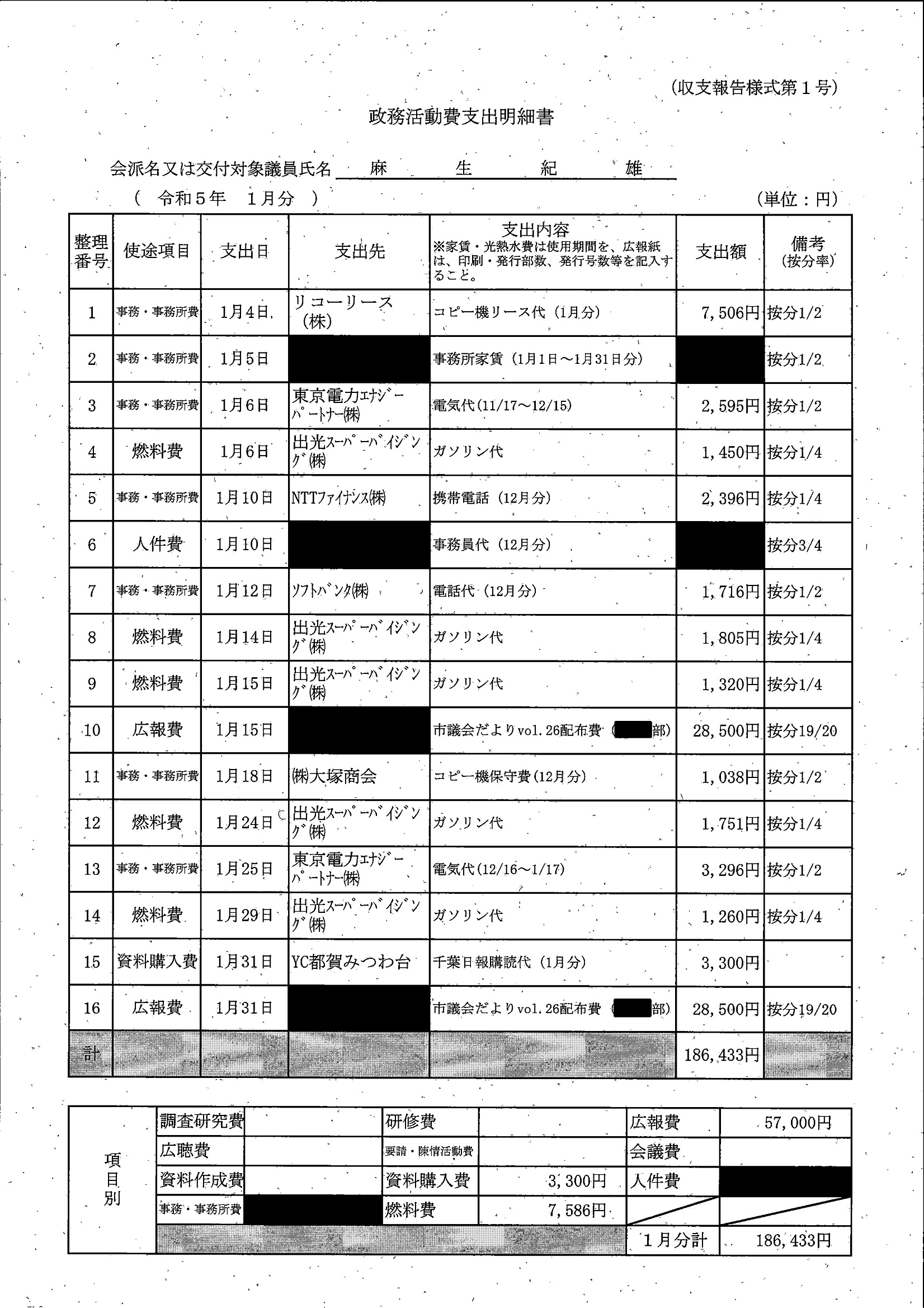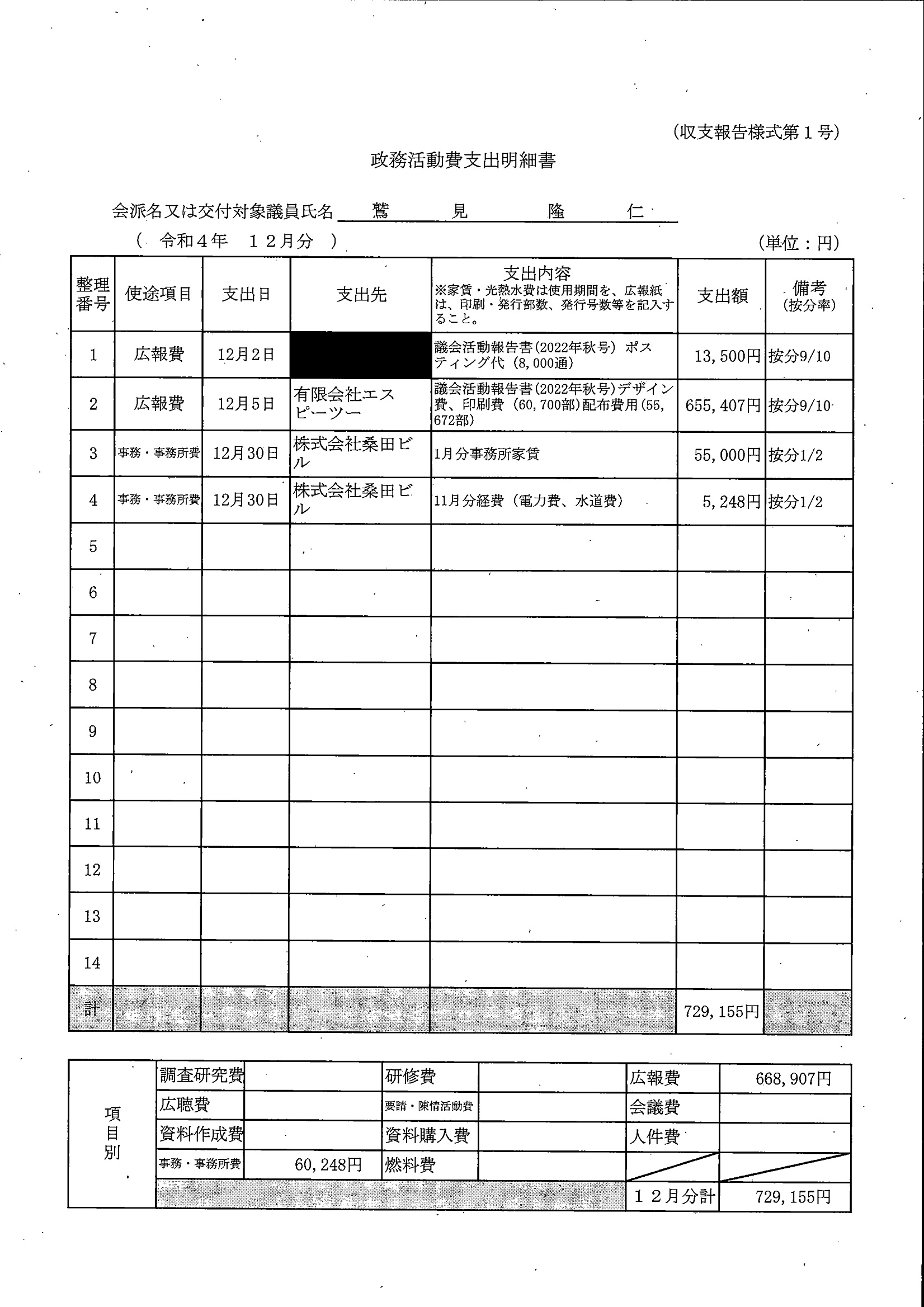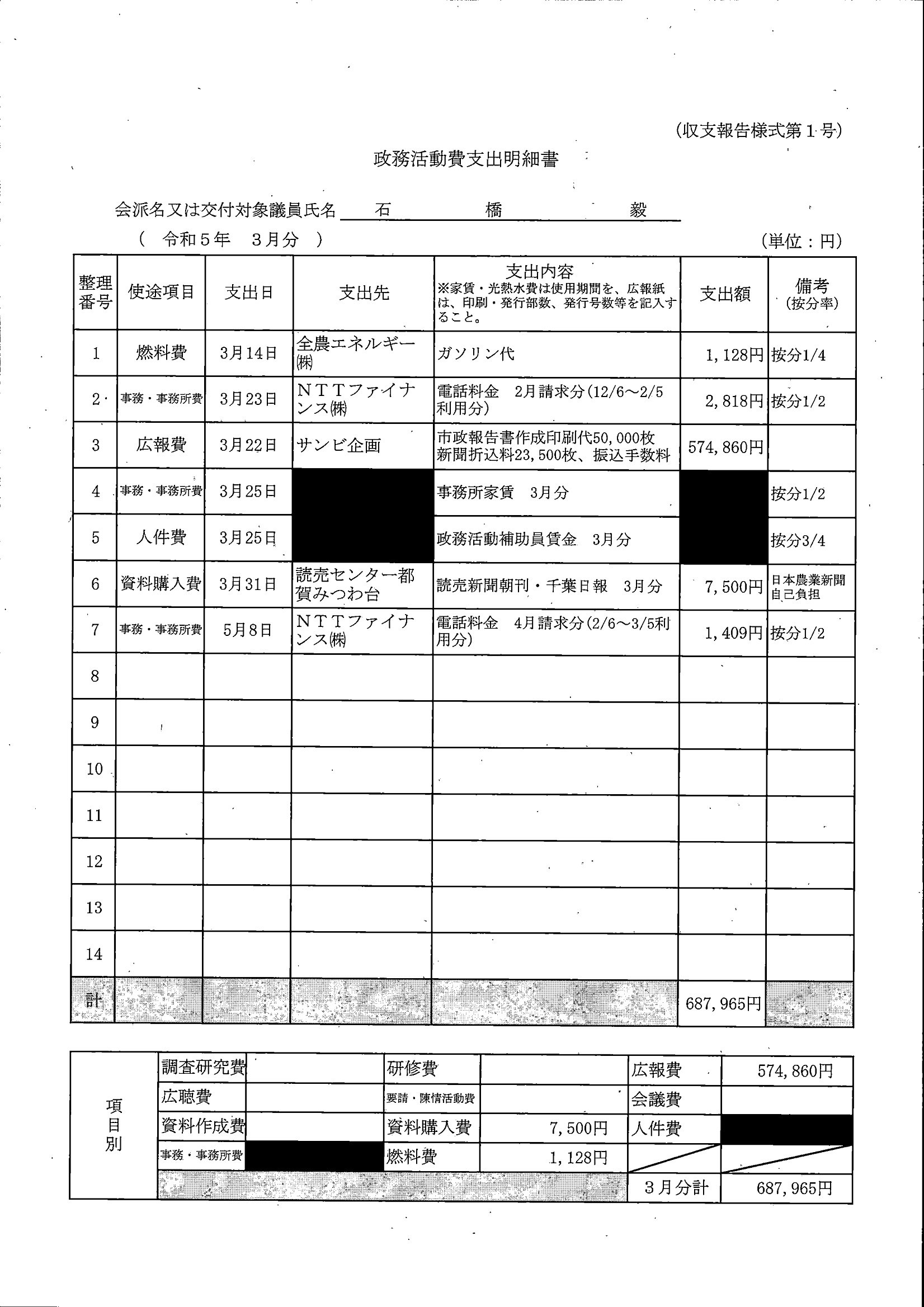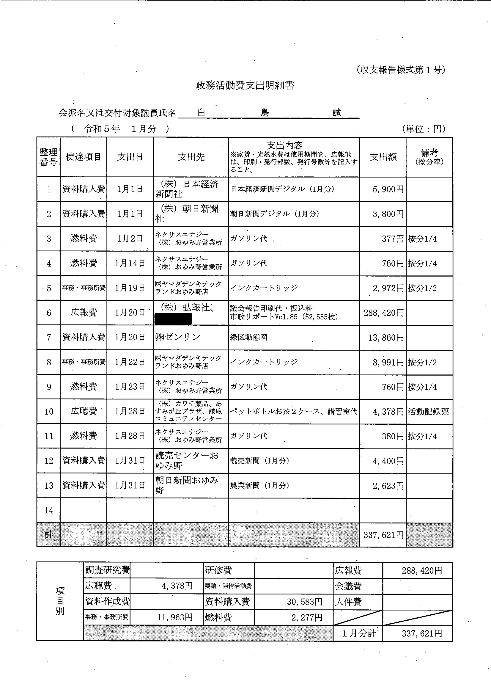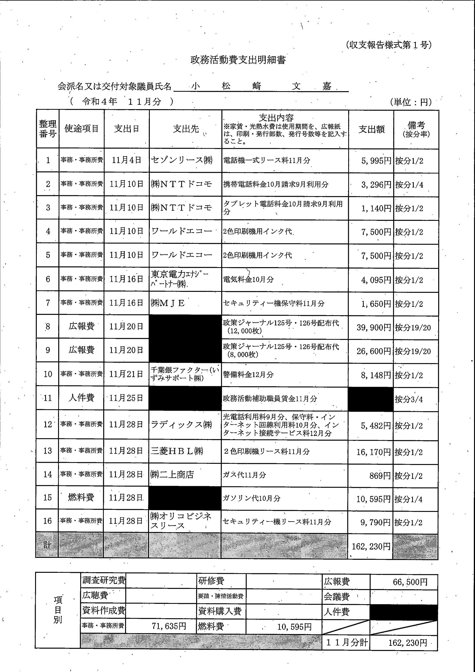 千葉市議会トップページ > 広報・情報公開 > 政務活動費 > 令和4年度交付分(政務活動費収支報告書)