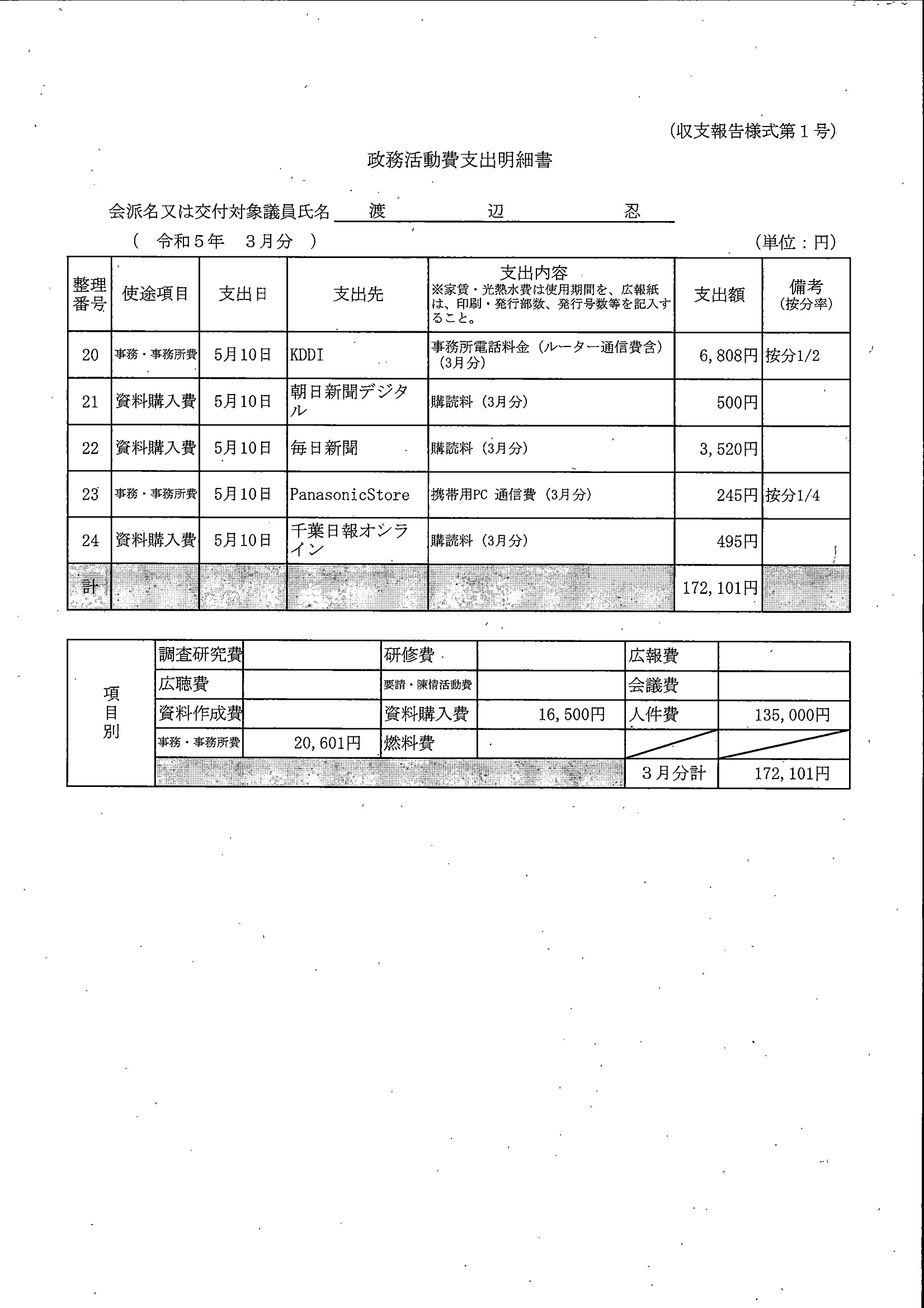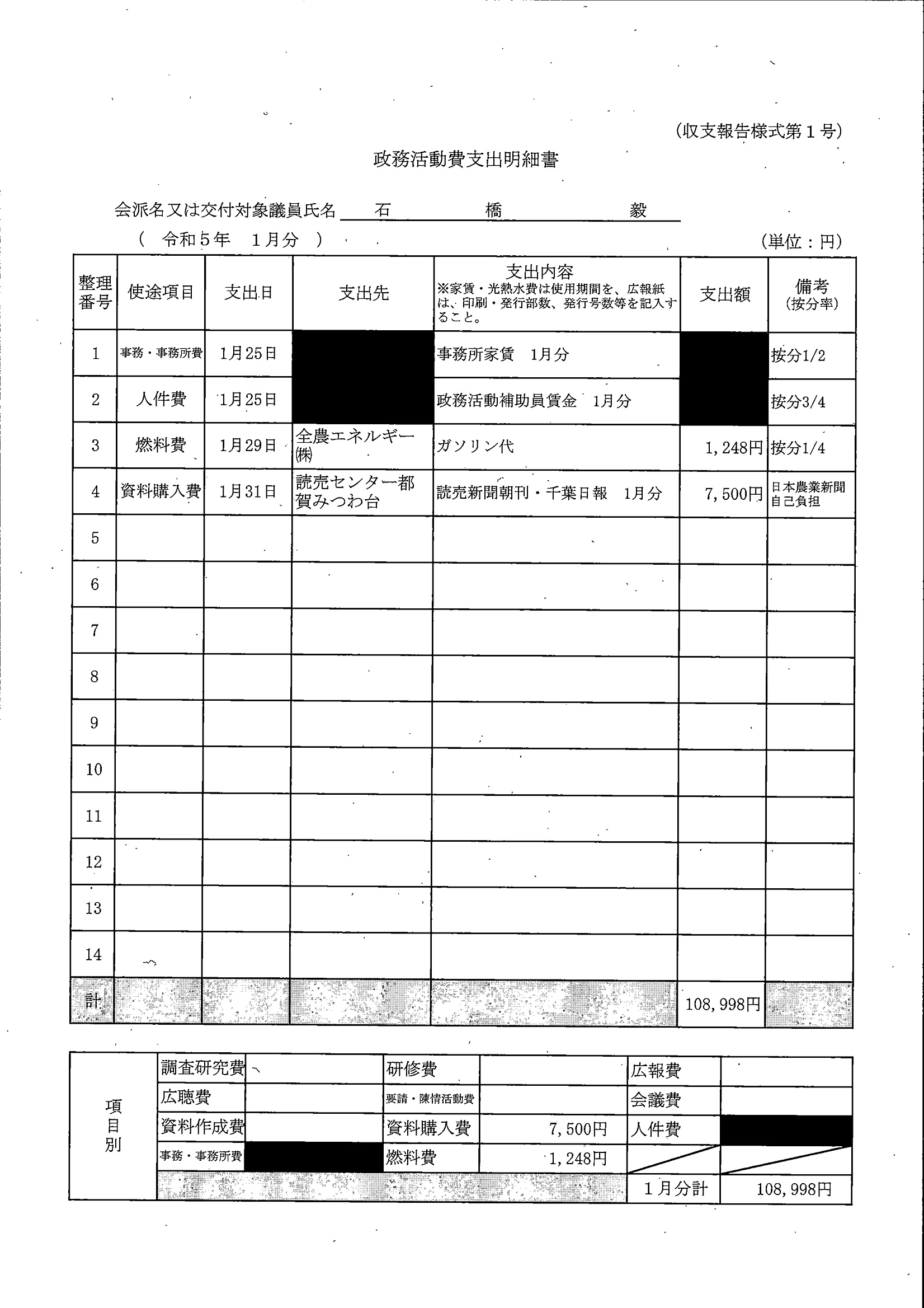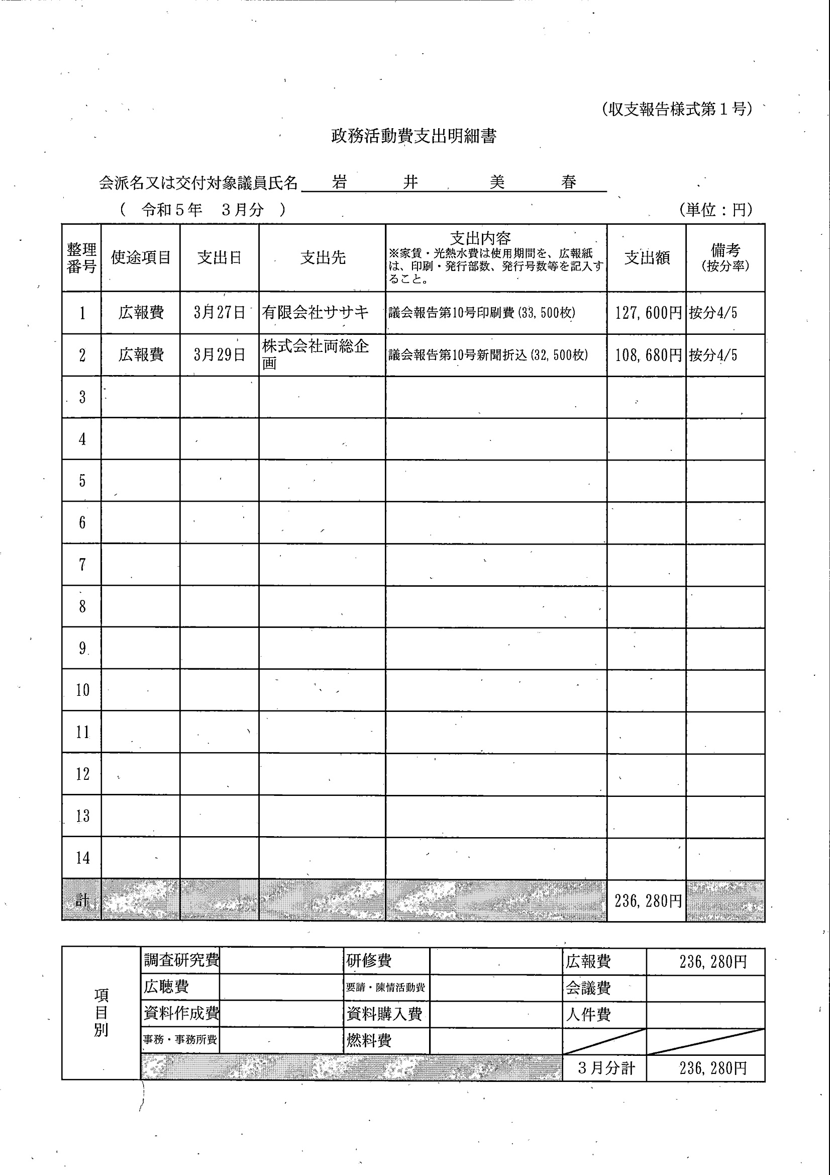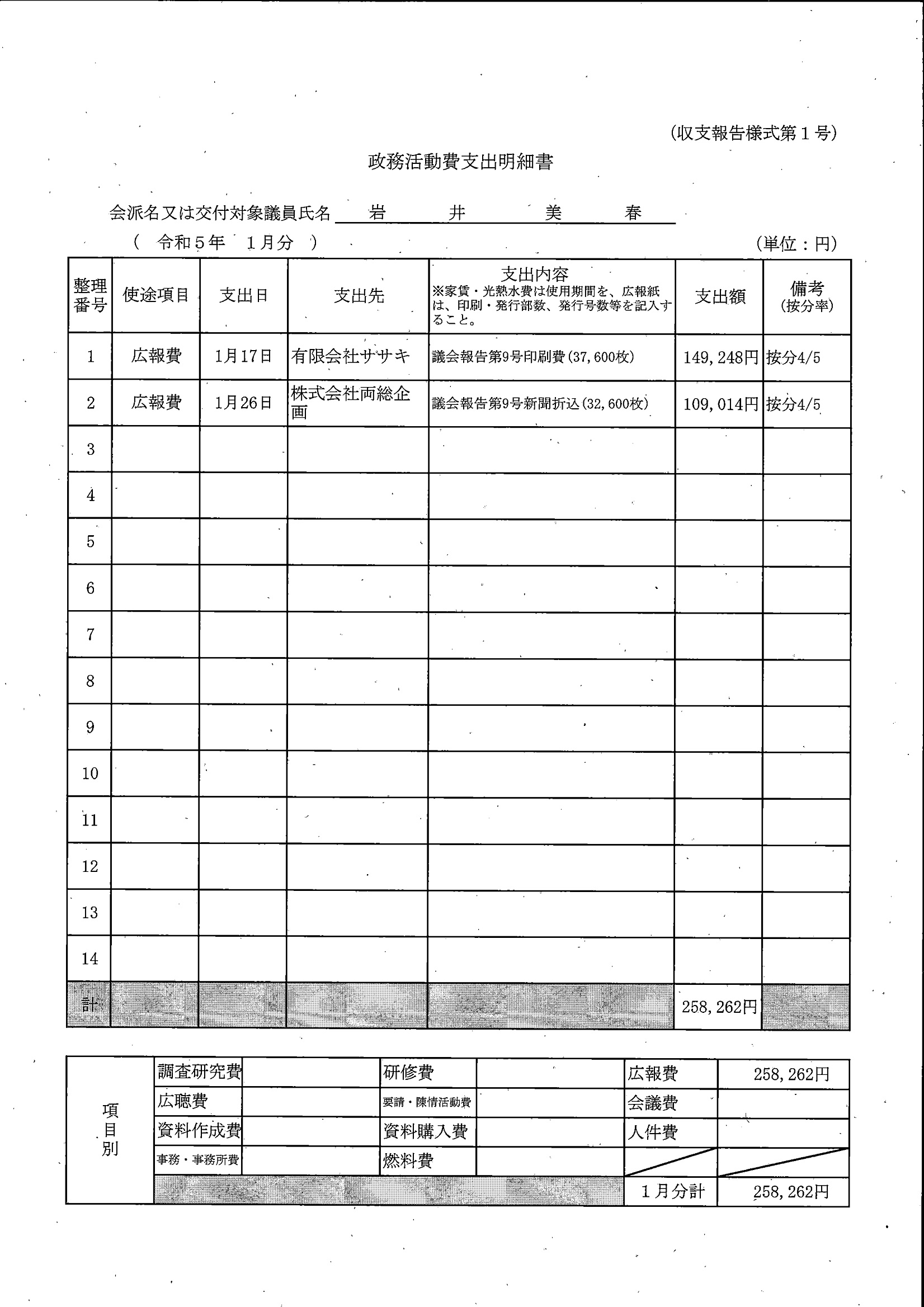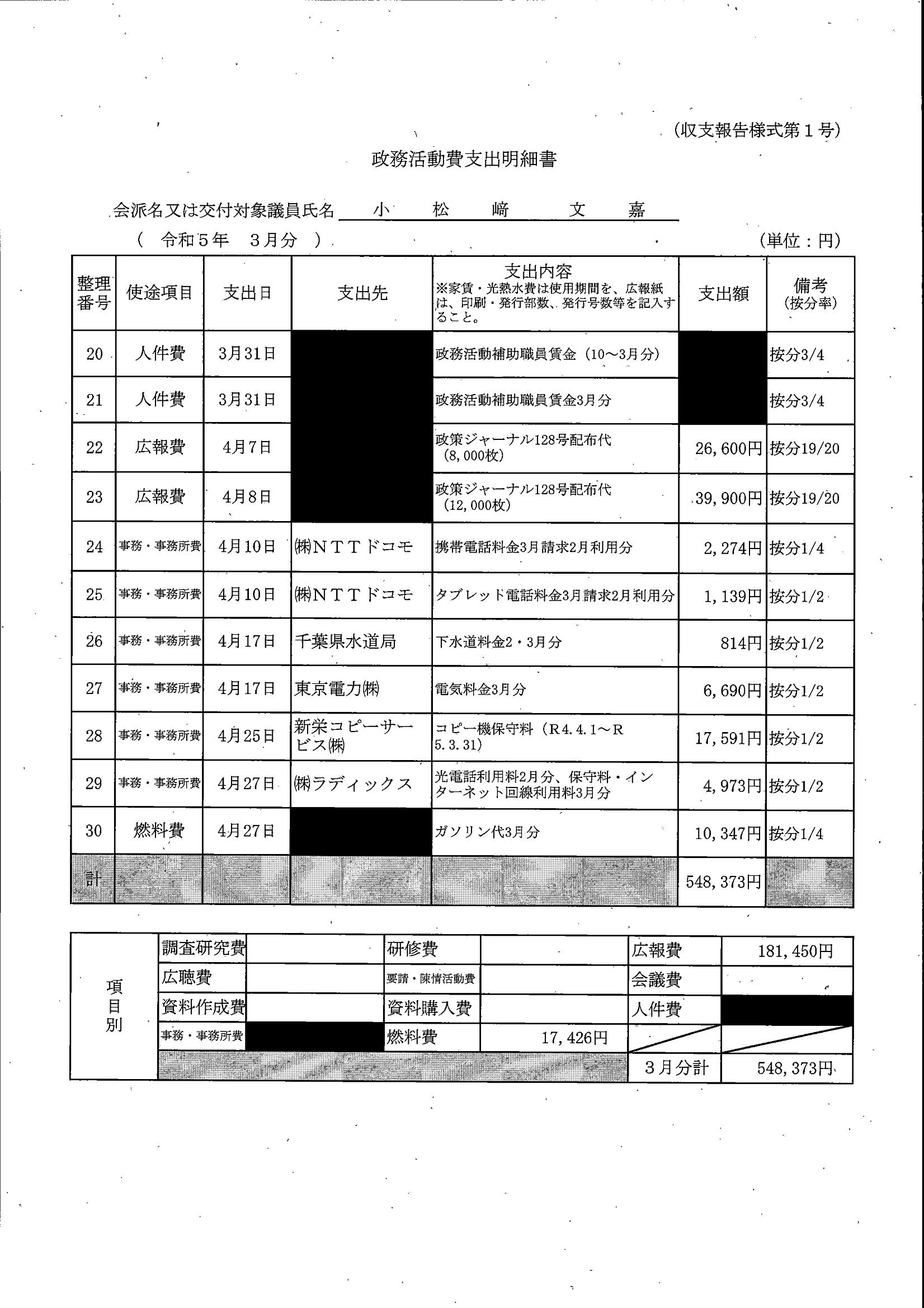 千葉市議会トップページ > 広報・情報公開 > 政務活動費 > 令和4年度交付分(政務活動費収支報告書)