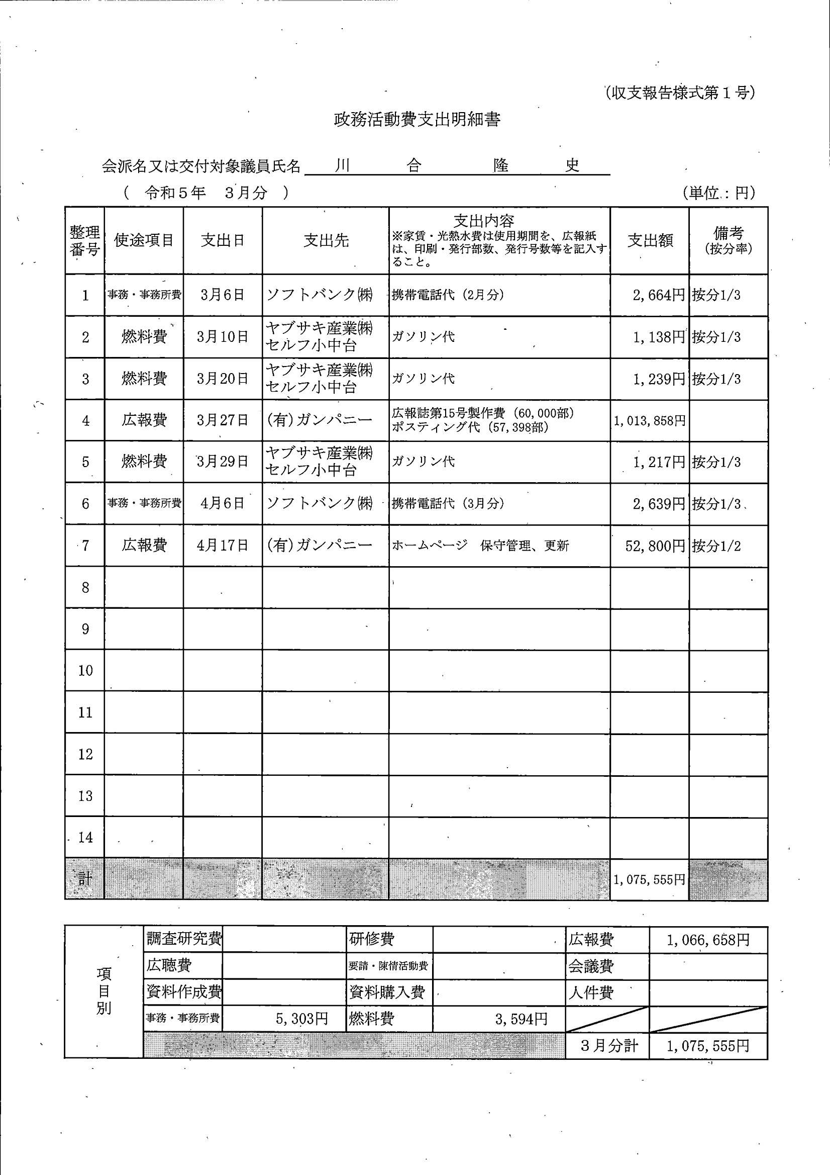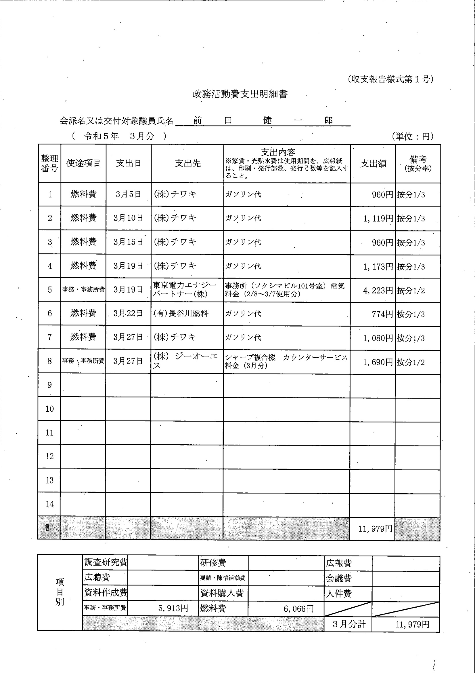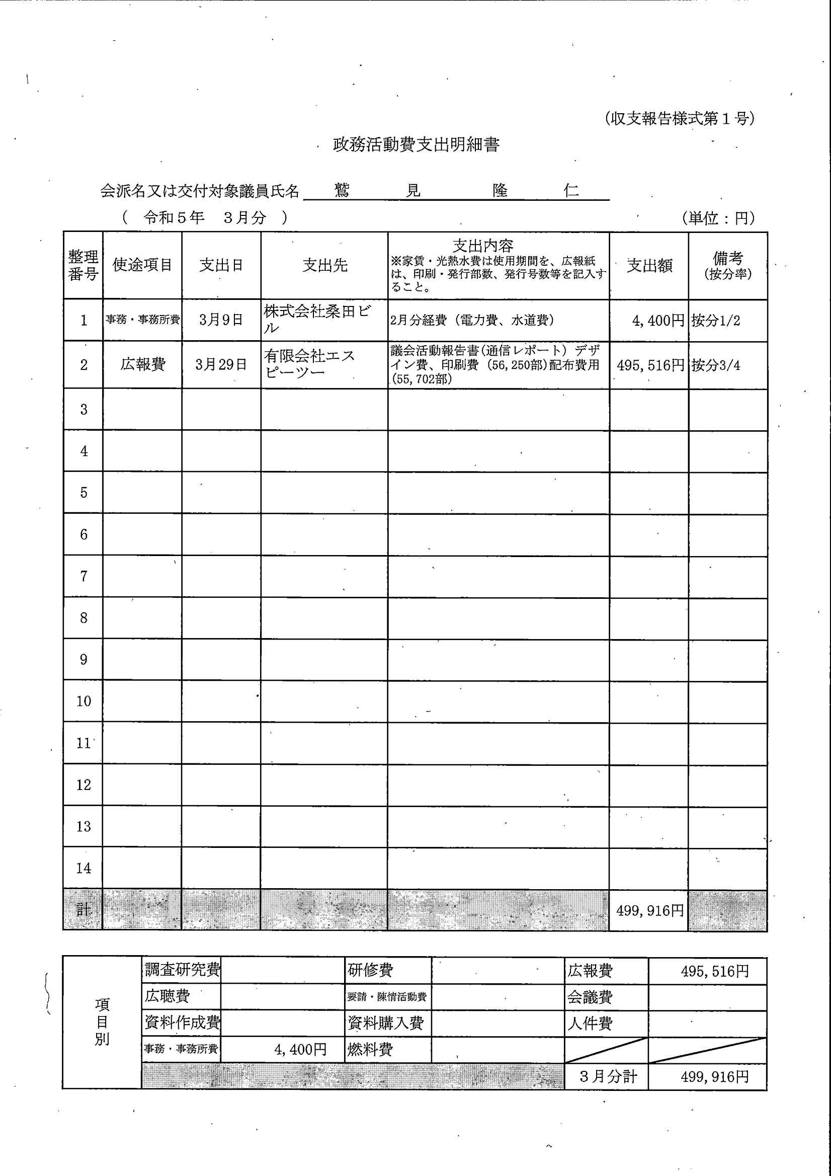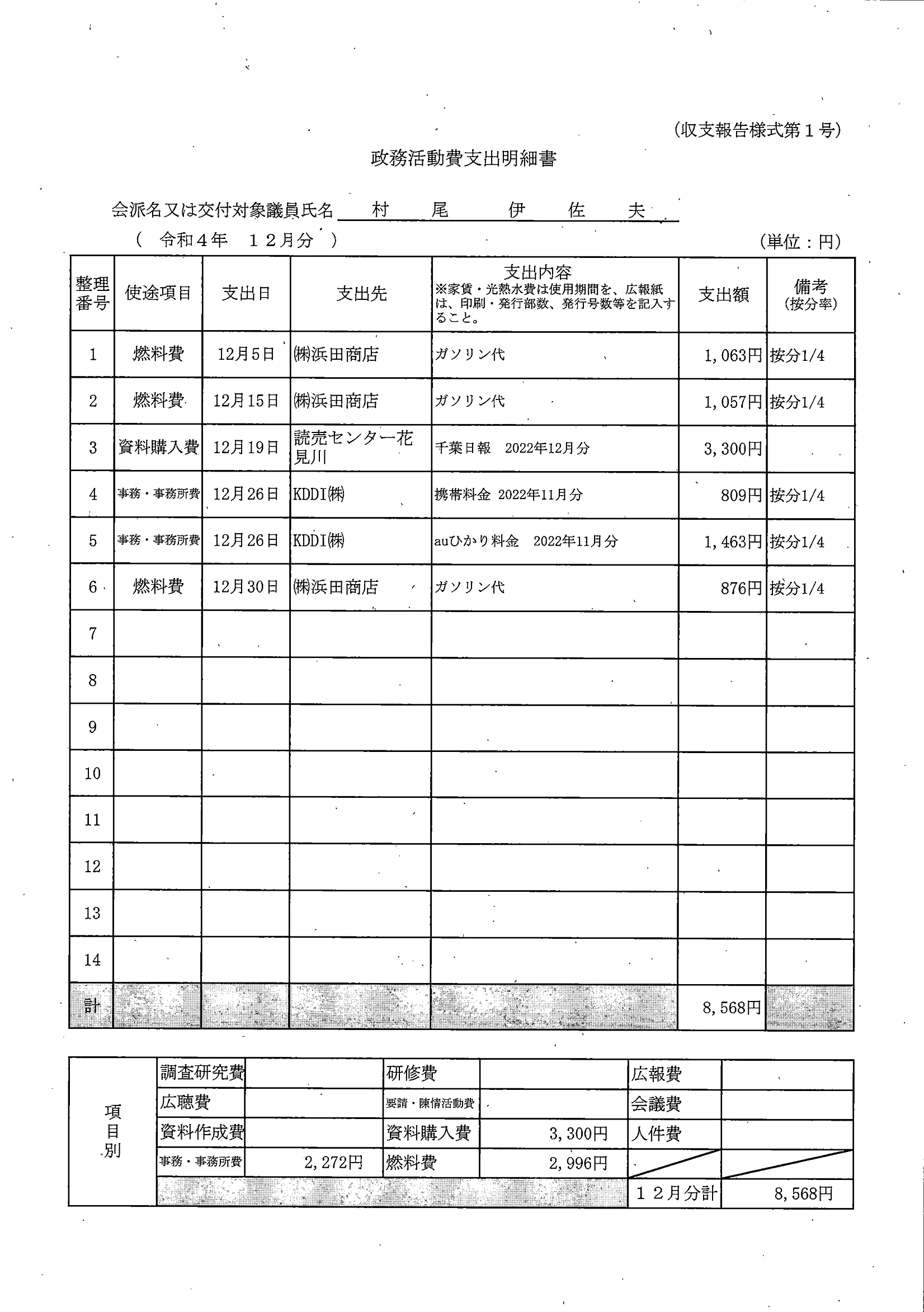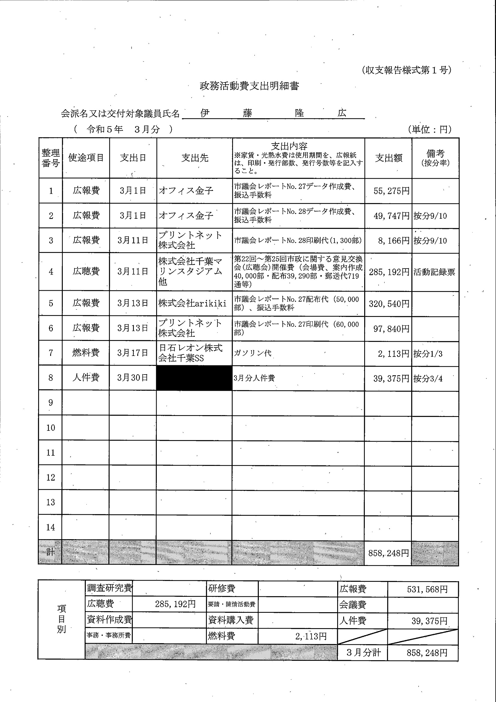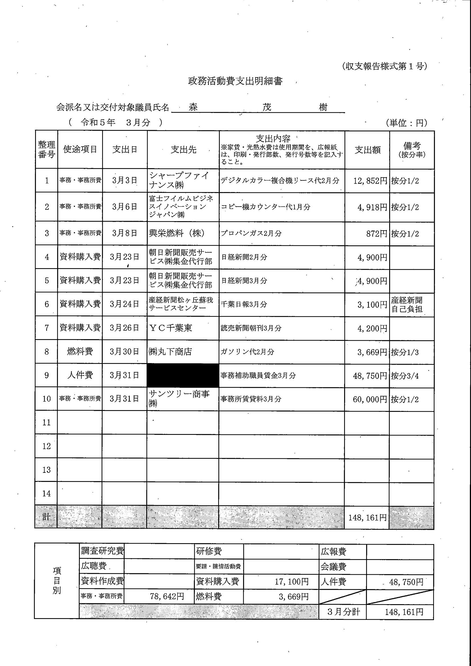 千葉市議会トップページ > 広報・情報公開 > 政務活動費 > 令和4年度交付分(政務活動費収支報告書)