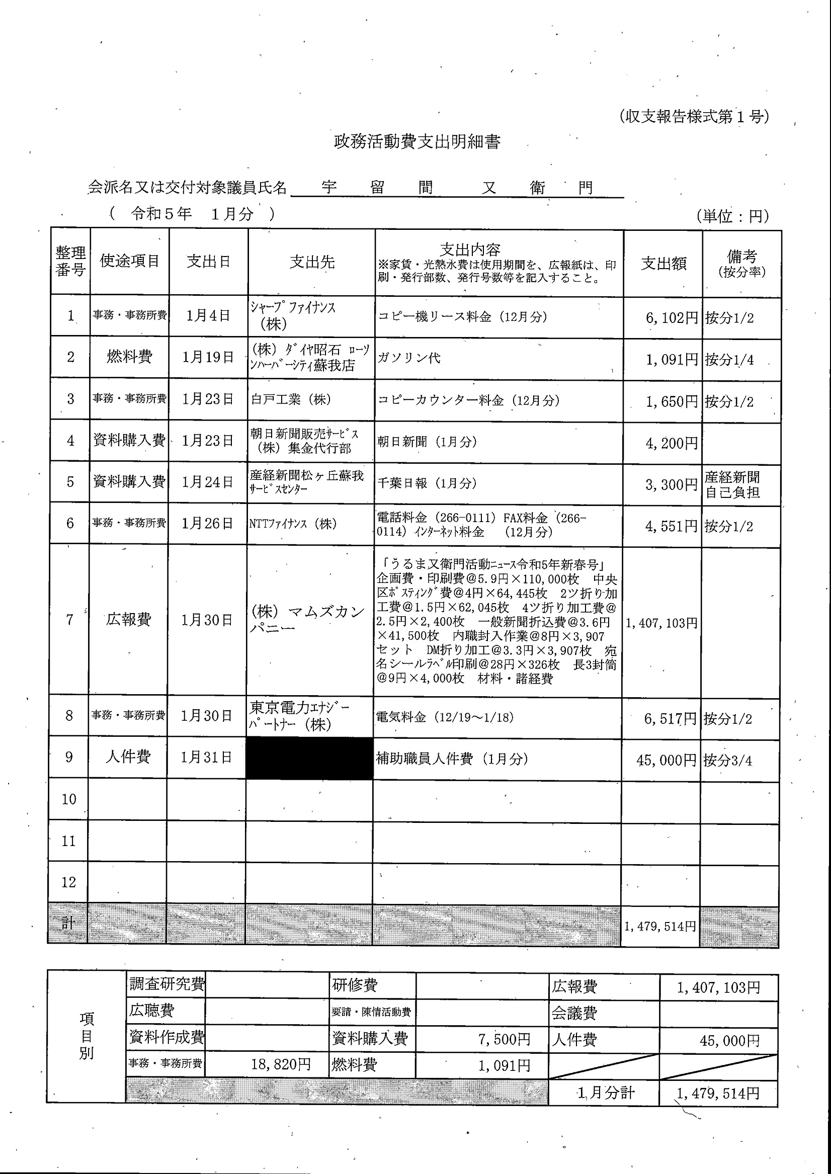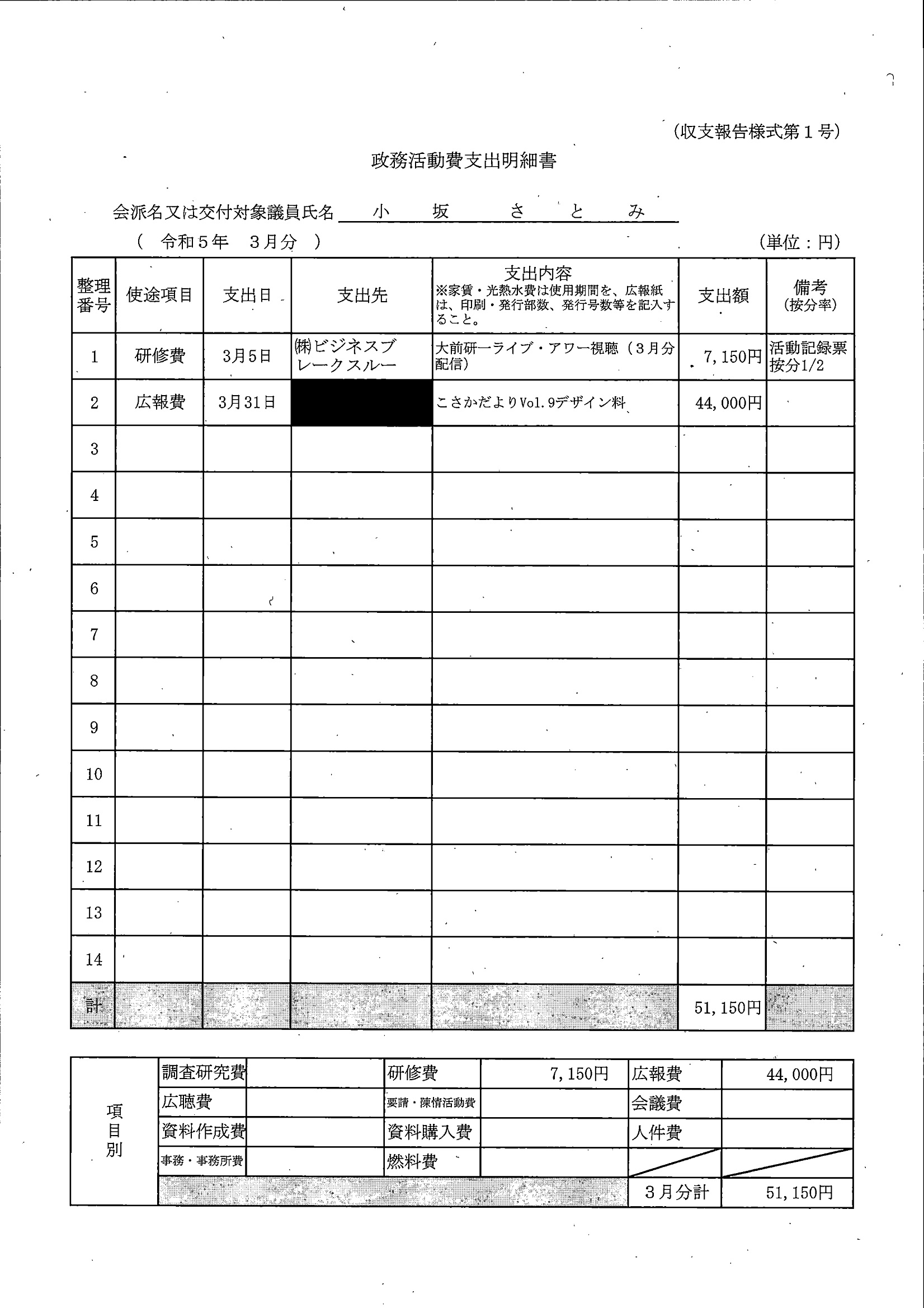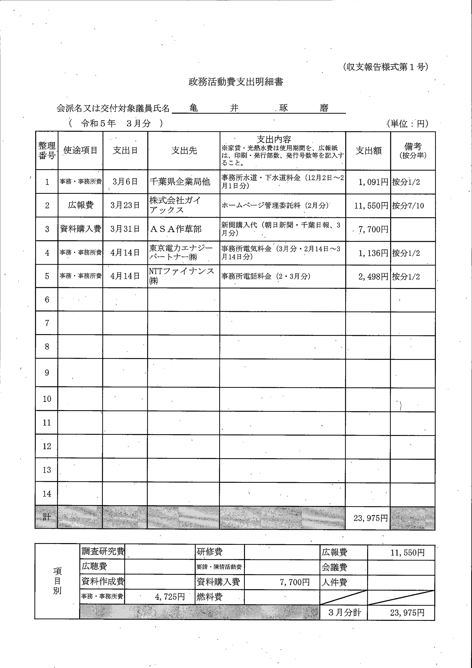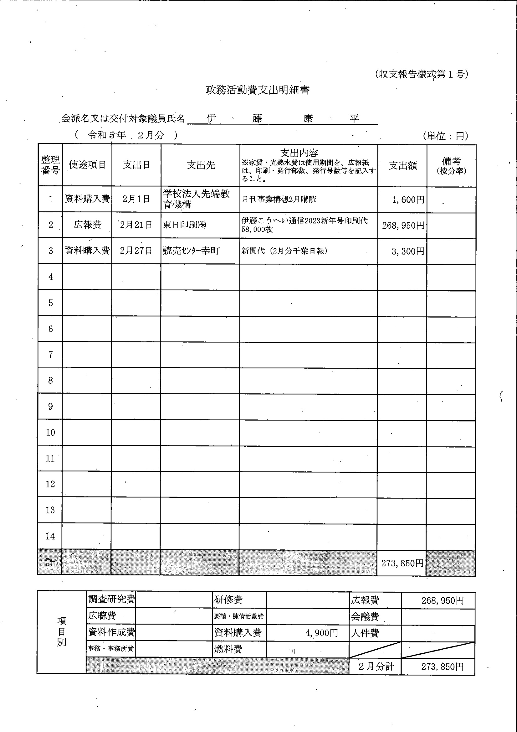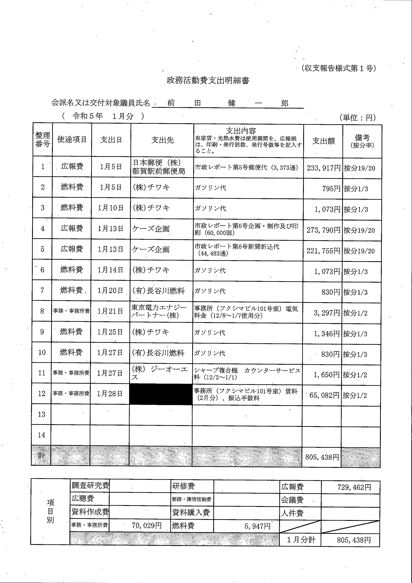 千葉市議会トップページ > 広報・情報公開 > 政務活動費 > 令和4年度交付分(政務活動費収支報告書)