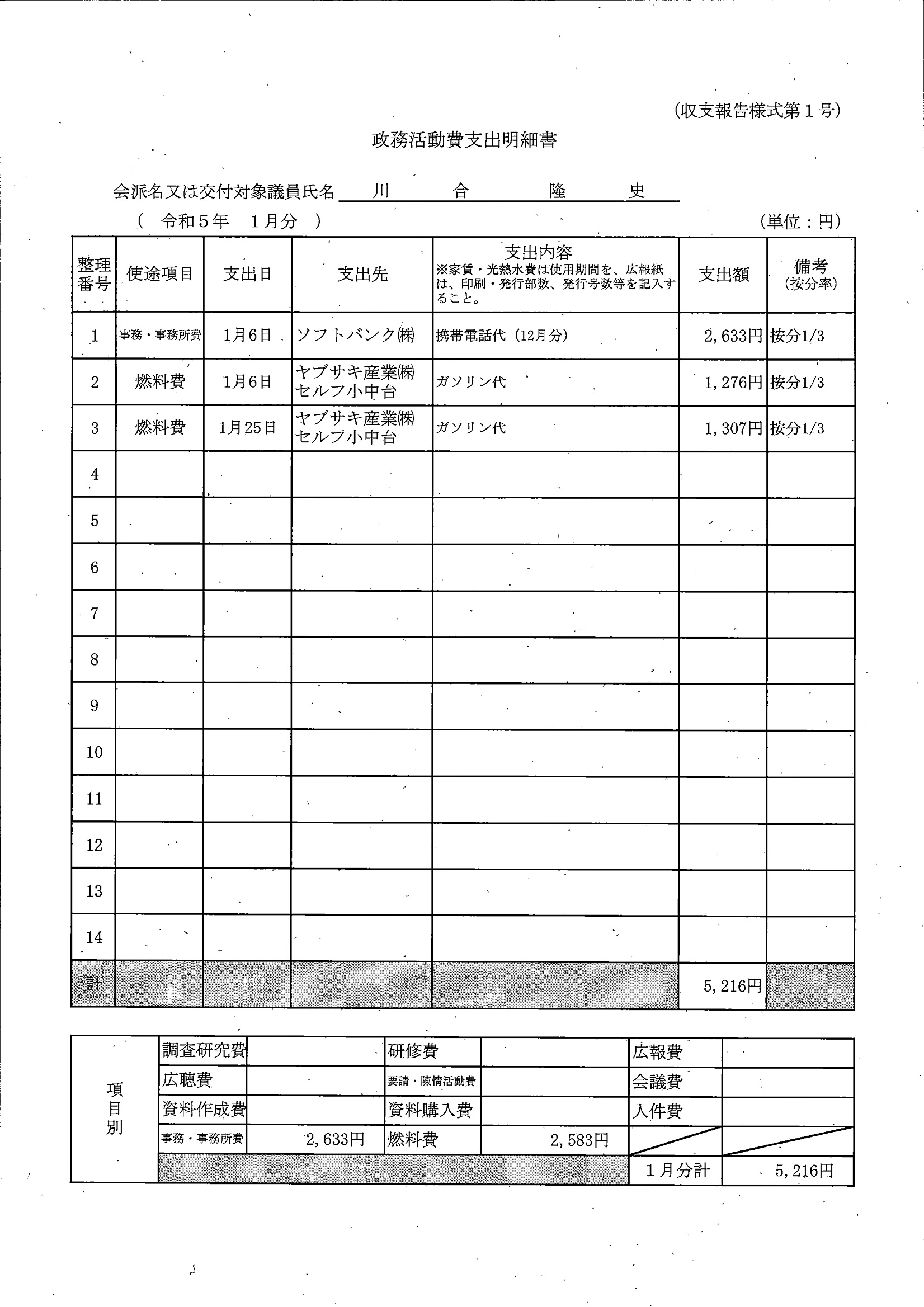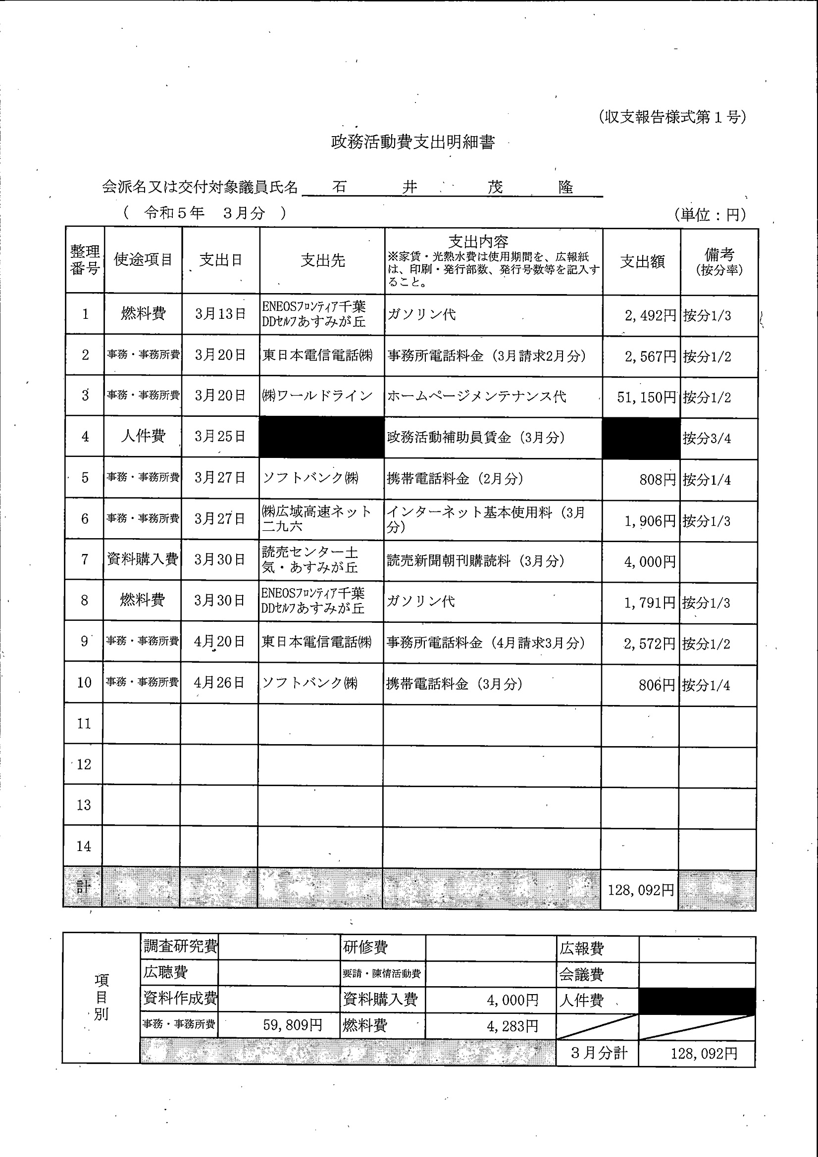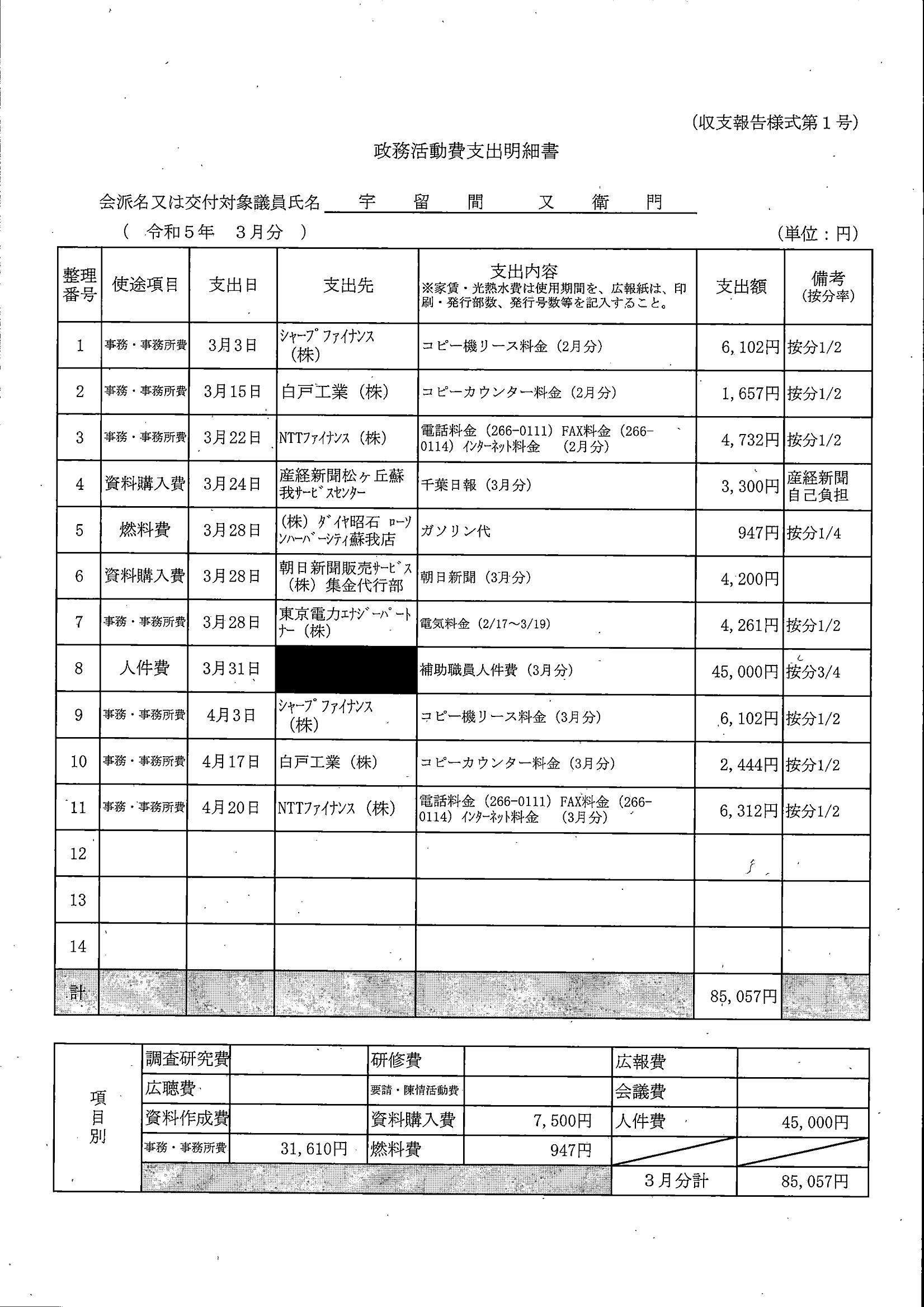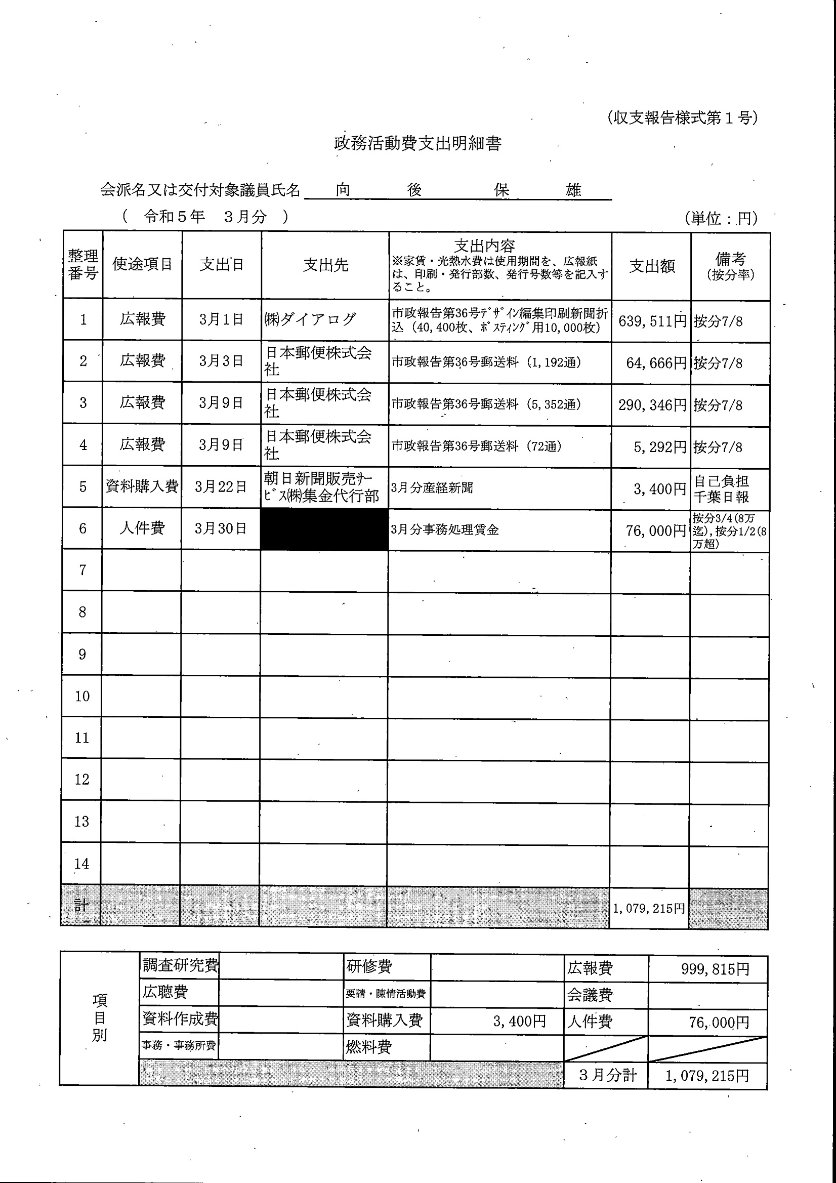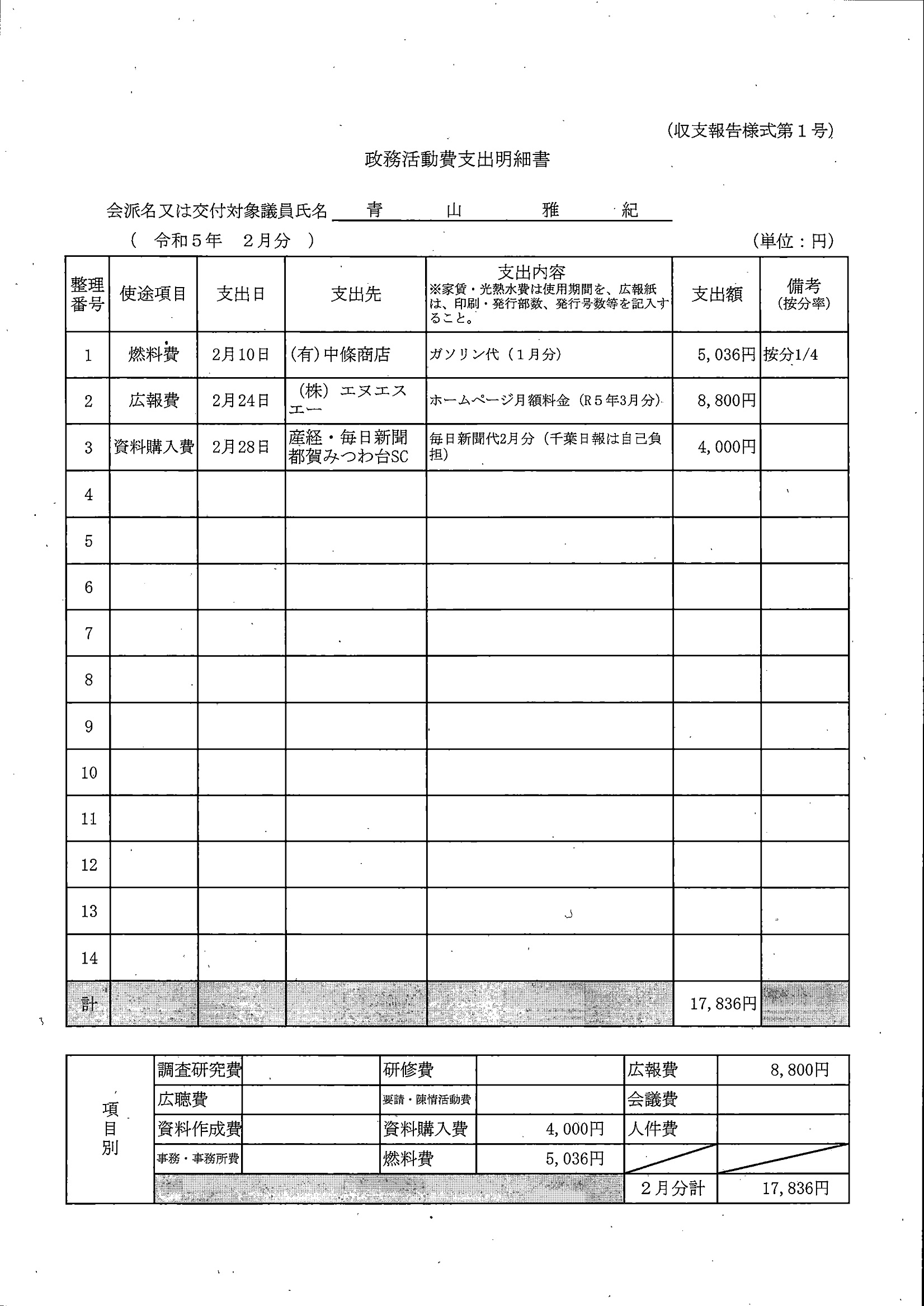 千葉市議会トップページ > 広報・情報公開 > 政務活動費 > 令和4年度交付分(政務活動費収支報告書)