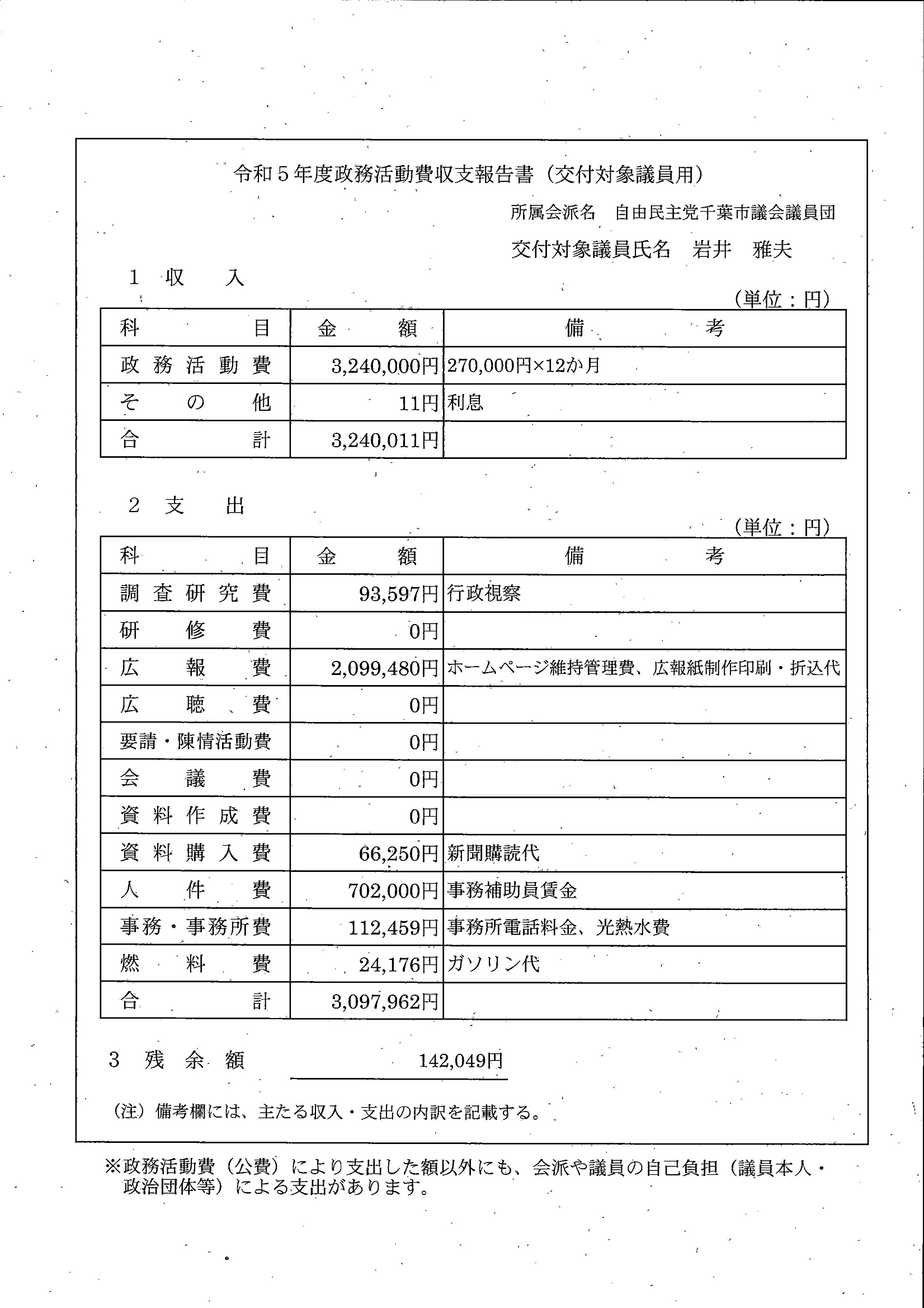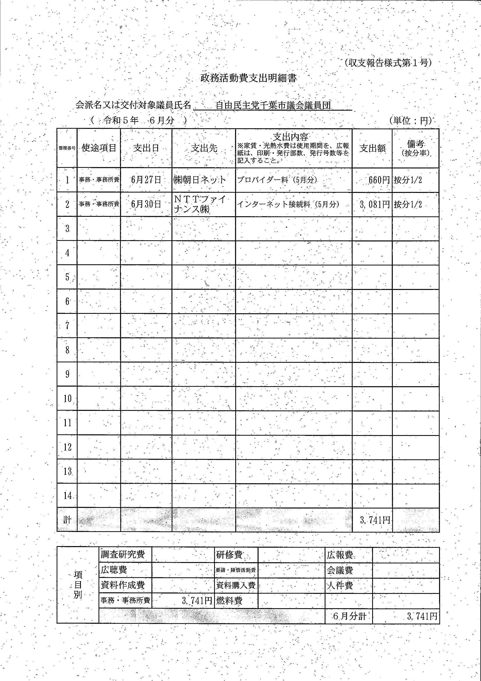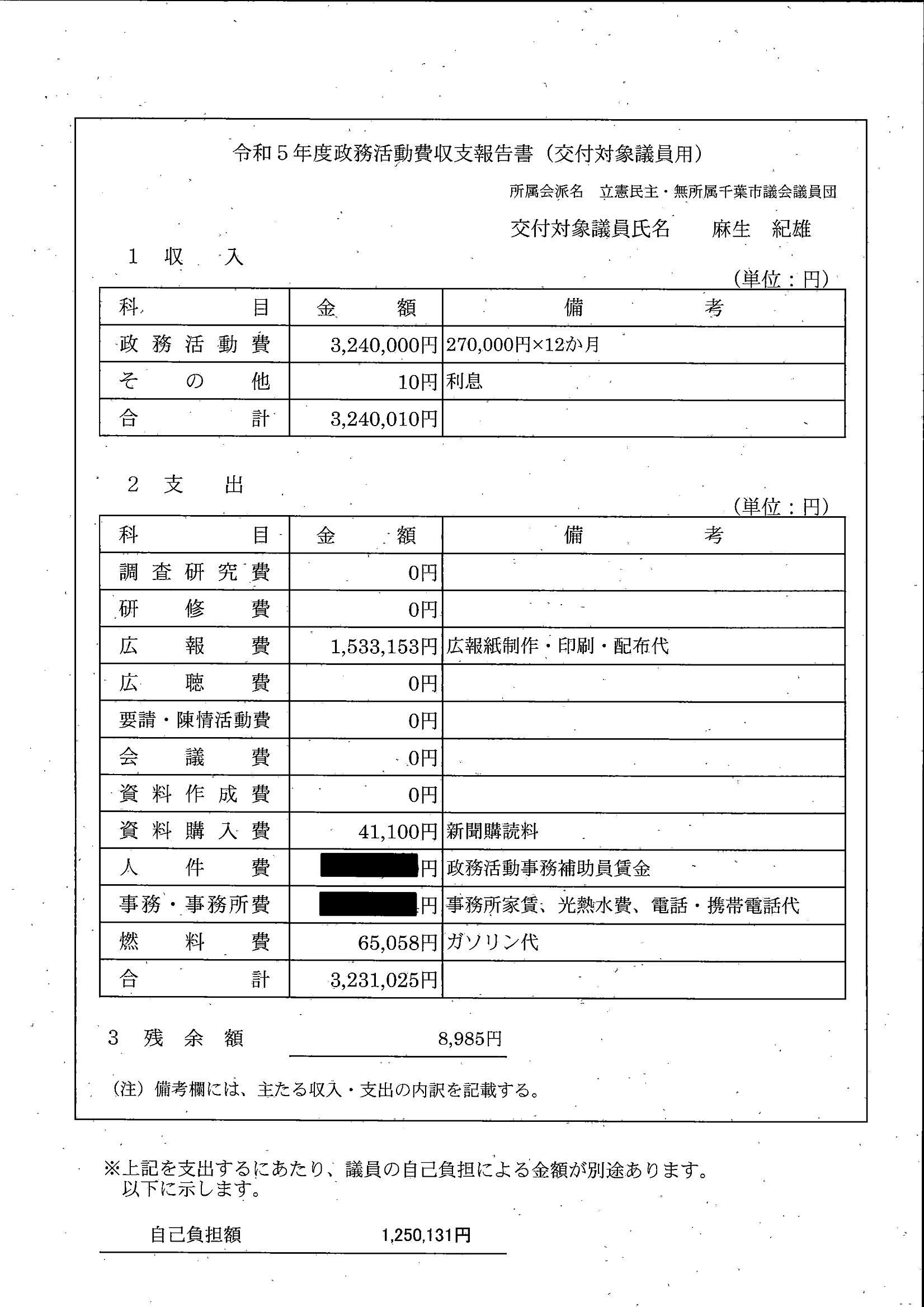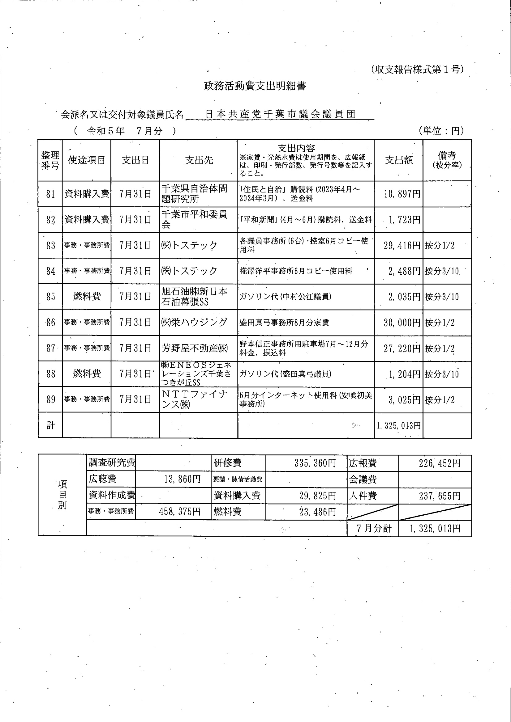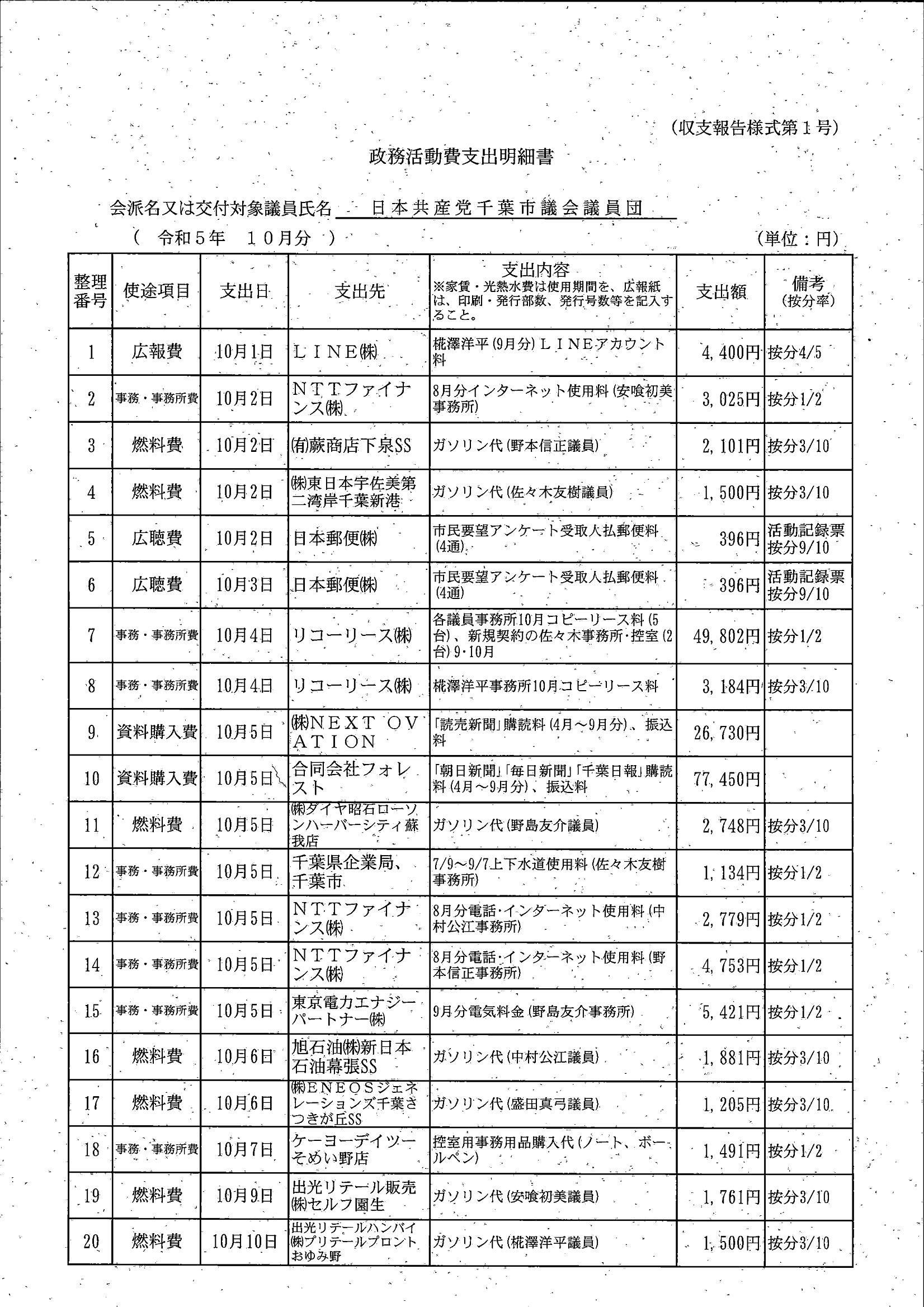 千葉市議会トップページ > 広報・情報公開 > 政務活動費 > 令和5年度交付分(政務活動費収支報告書)