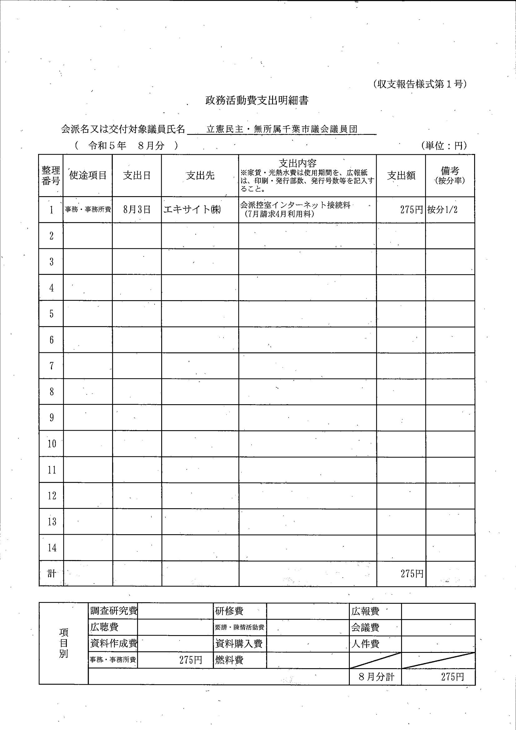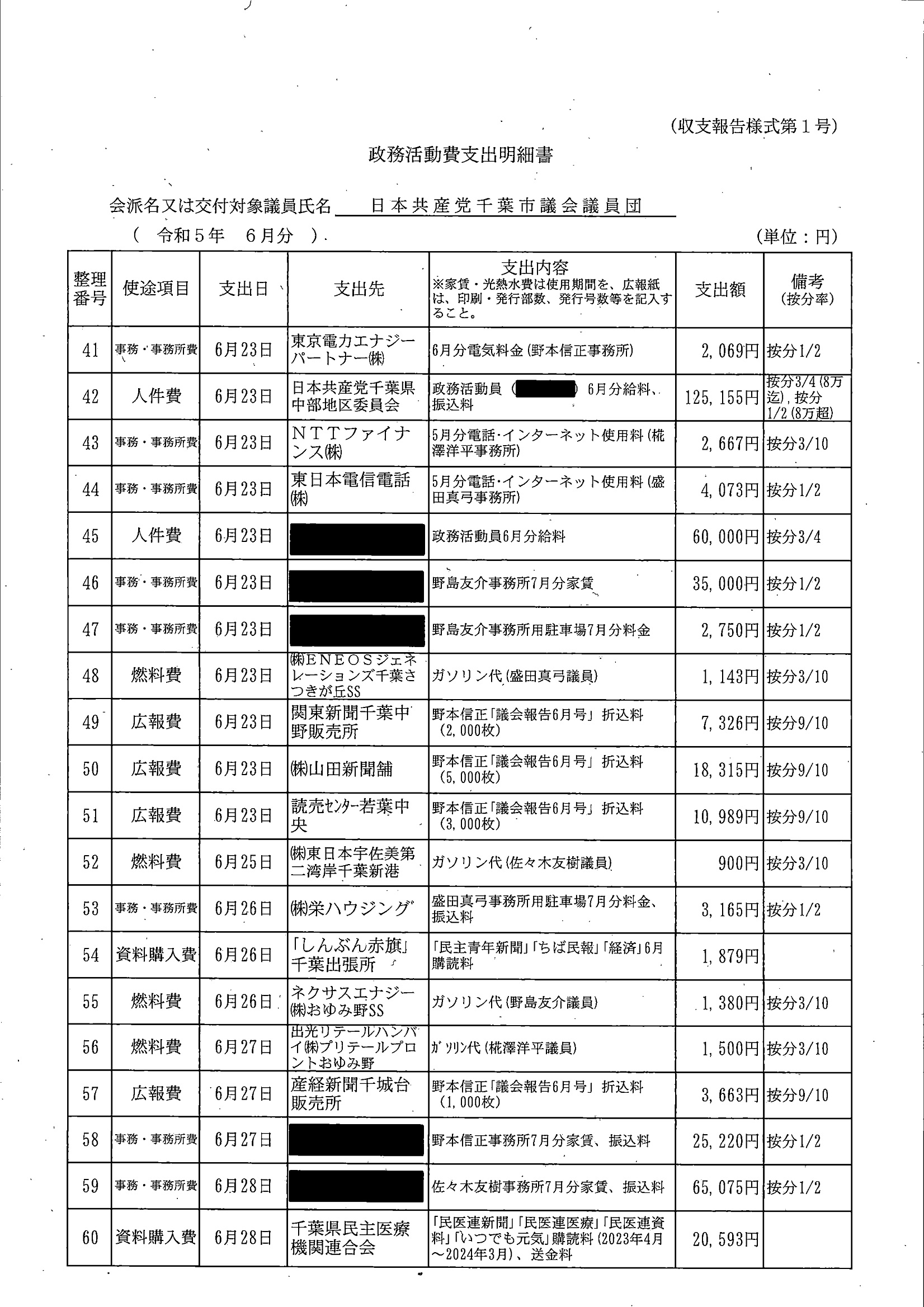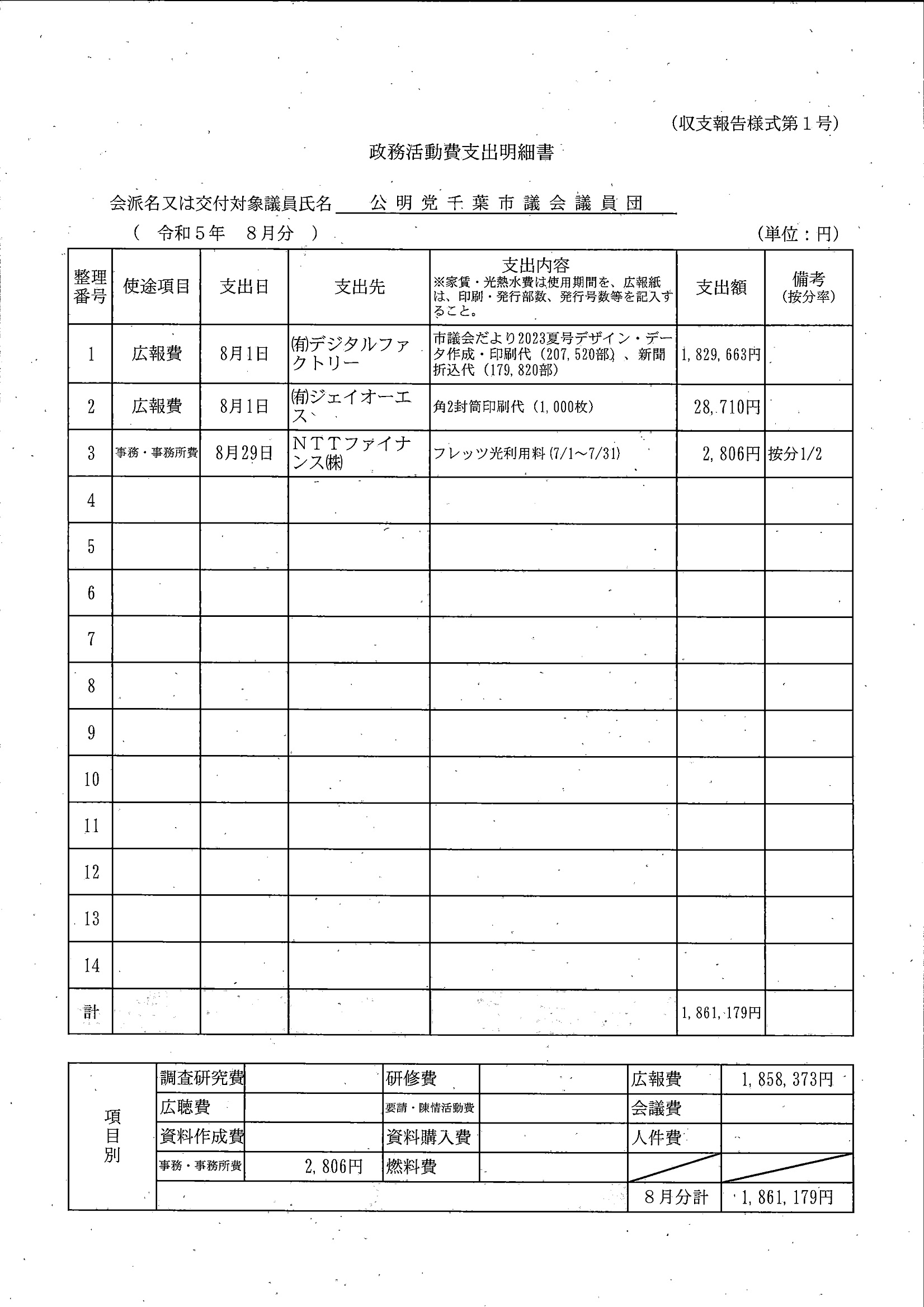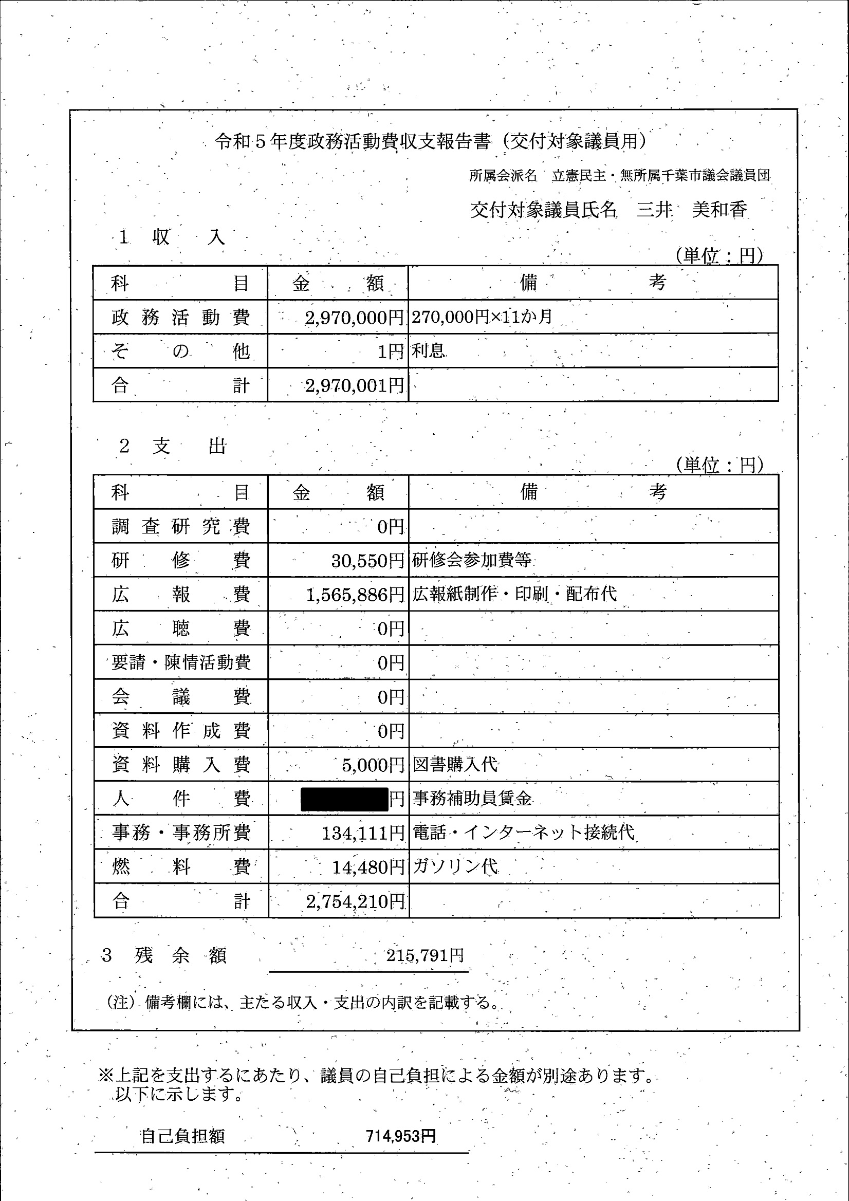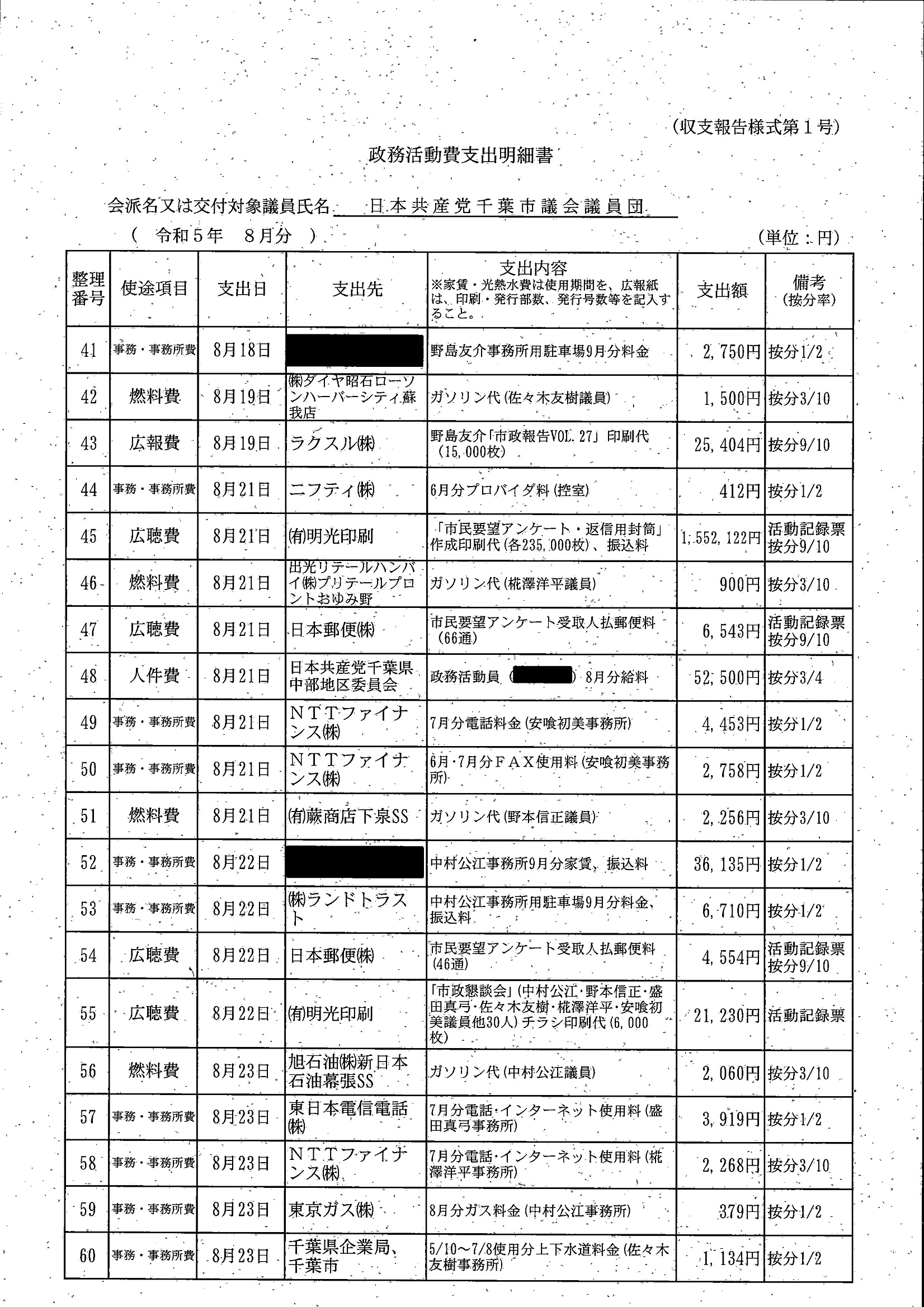 千葉市議会トップページ > 広報・情報公開 > 政務活動費 > 令和5年度交付分(政務活動費収支報告書)