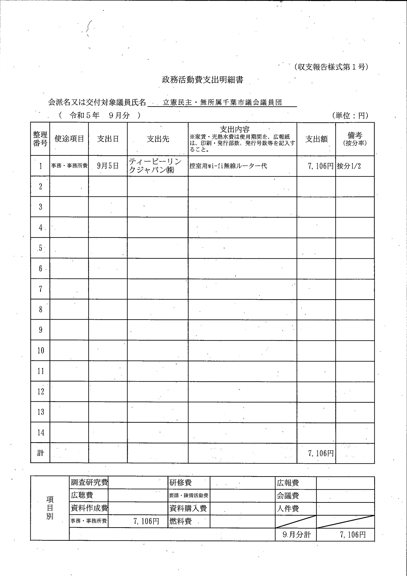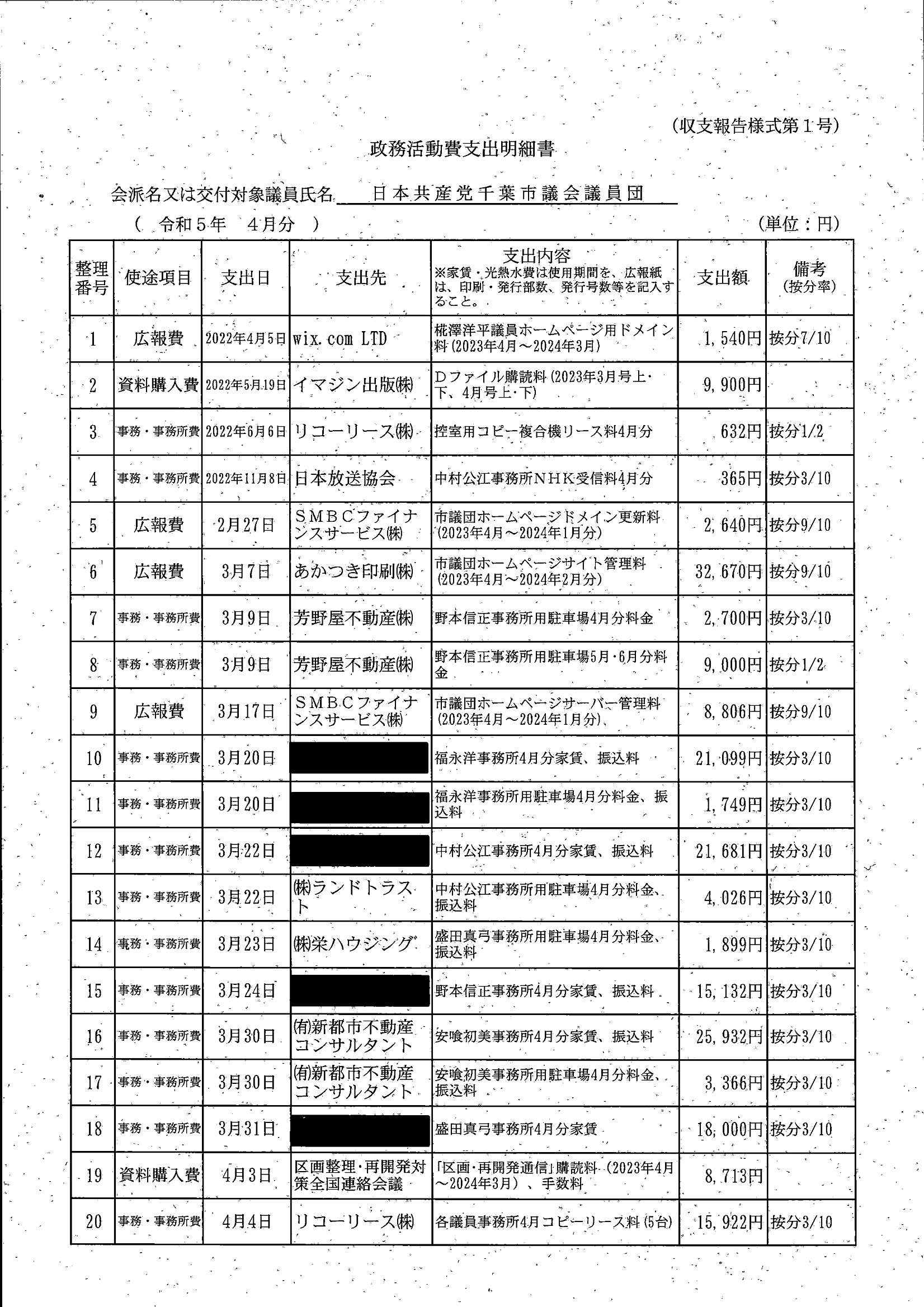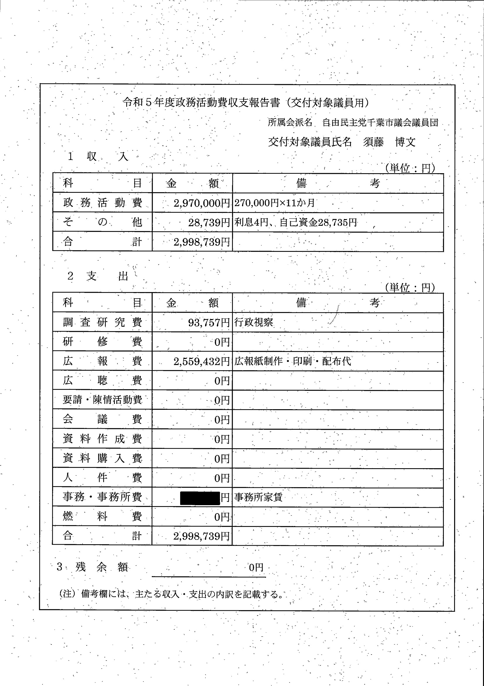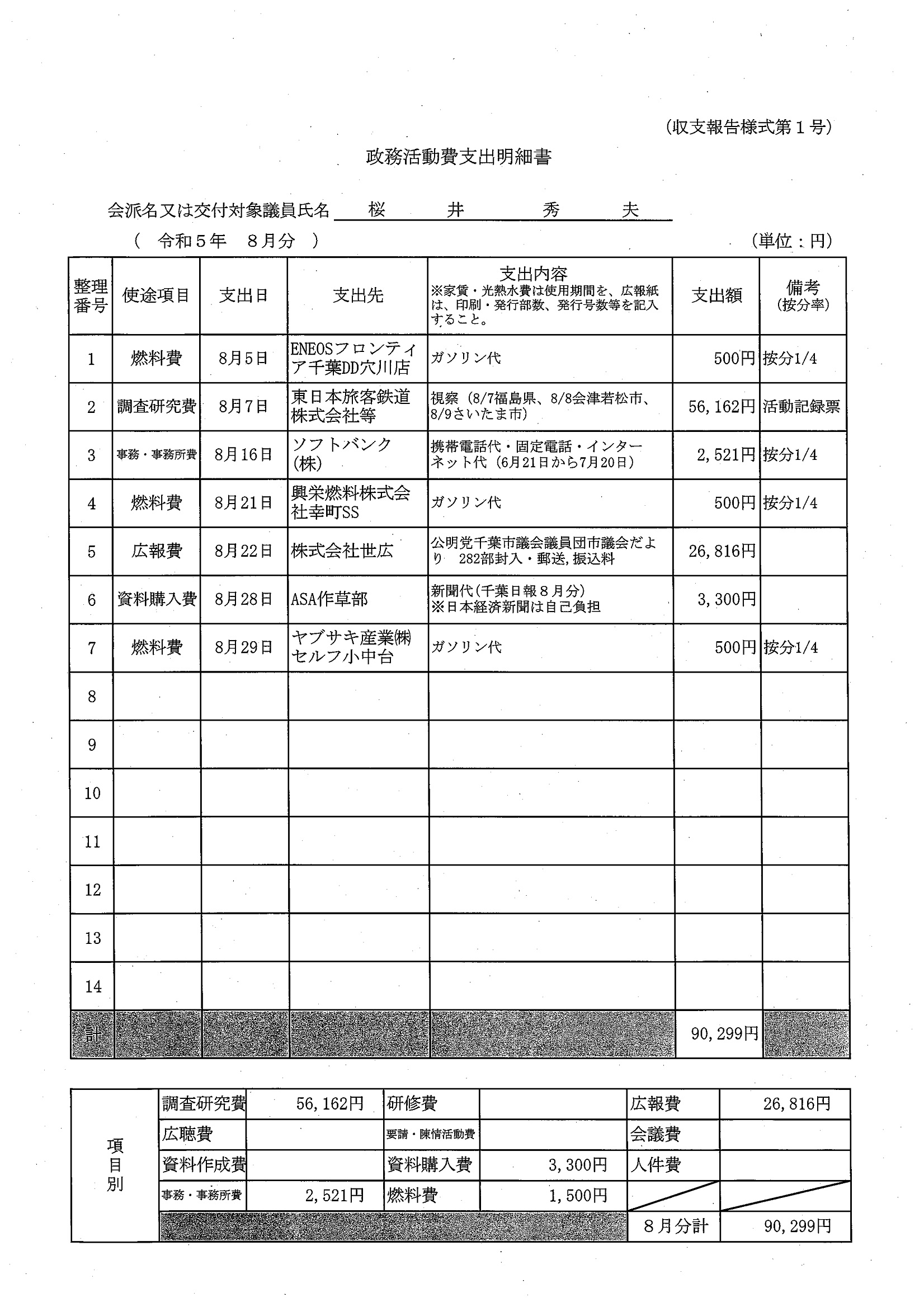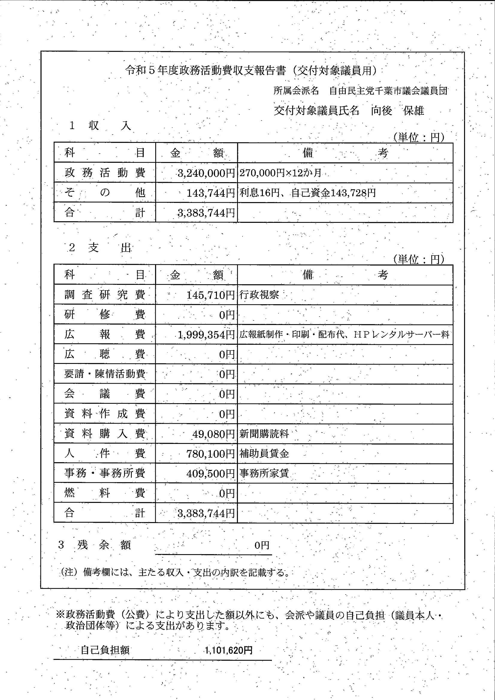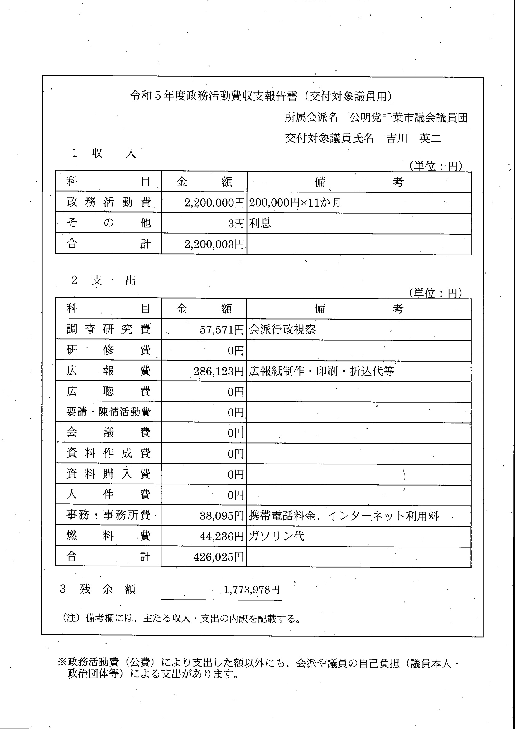 千葉市議会トップページ > 広報・情報公開 > 政務活動費 > 令和5年度交付分(政務活動費収支報告書)