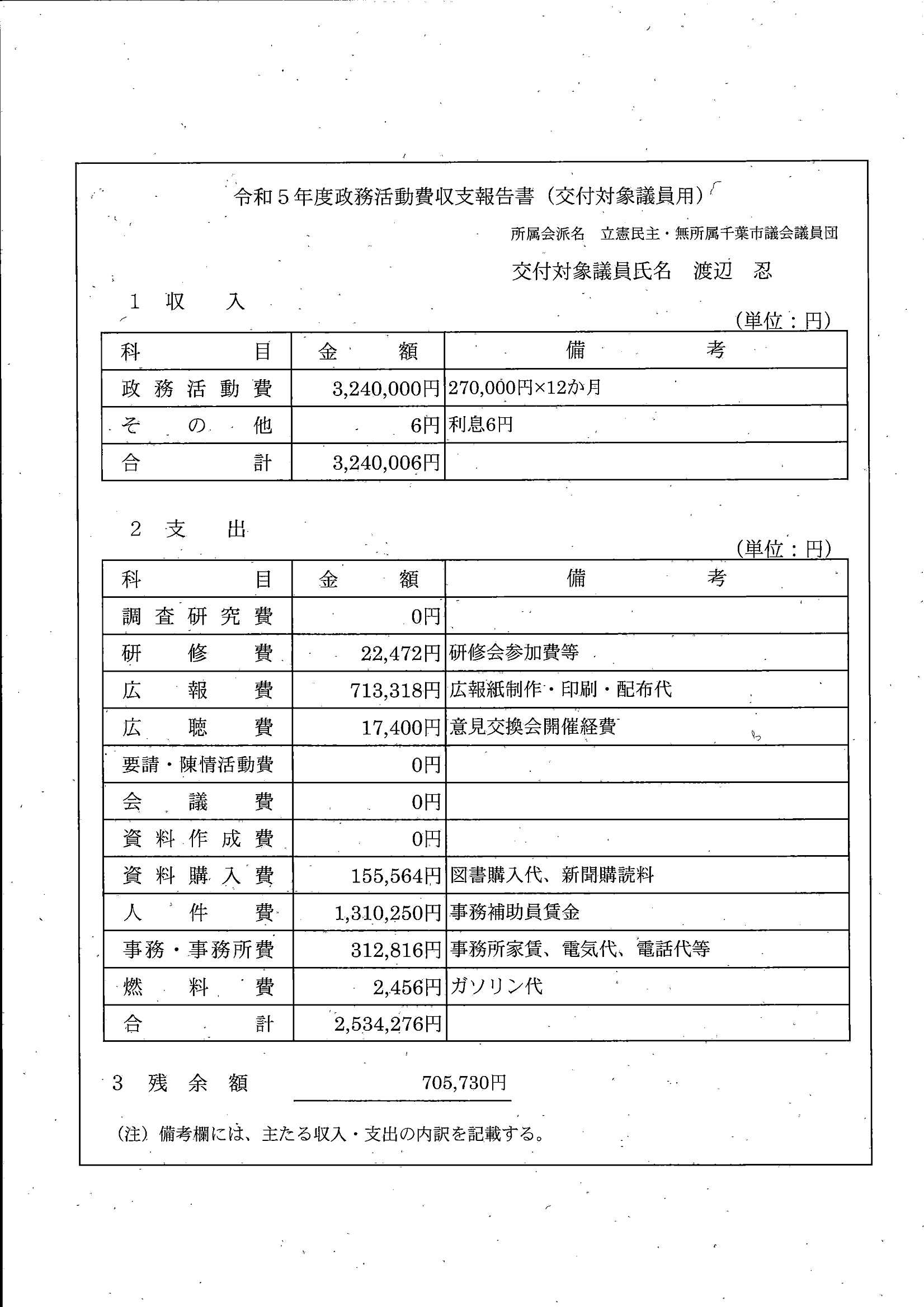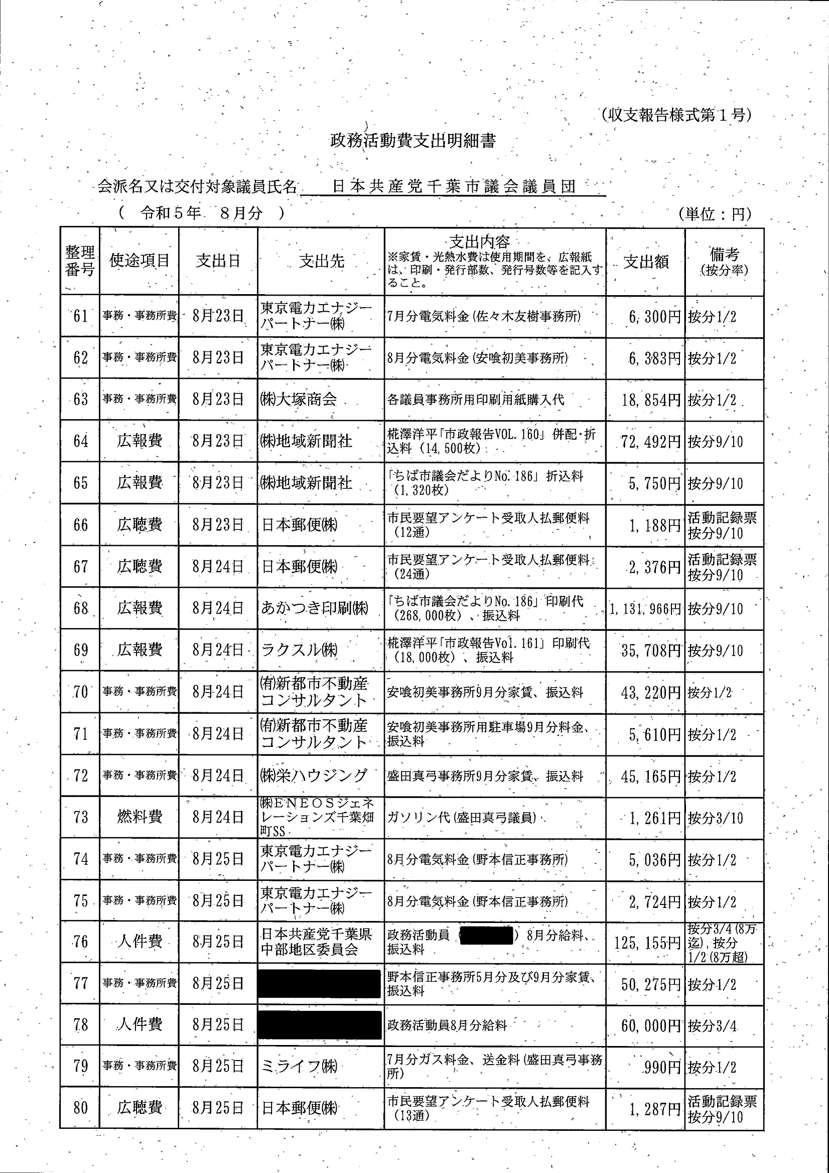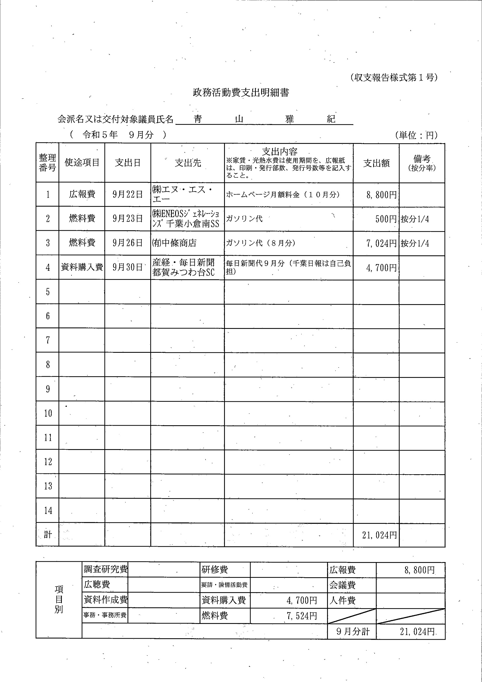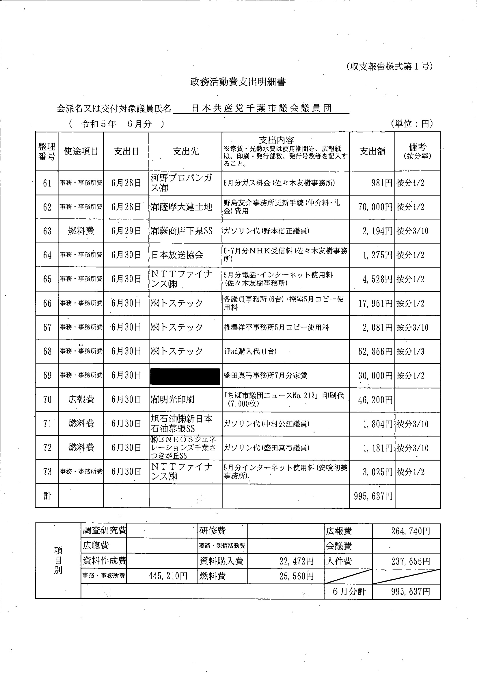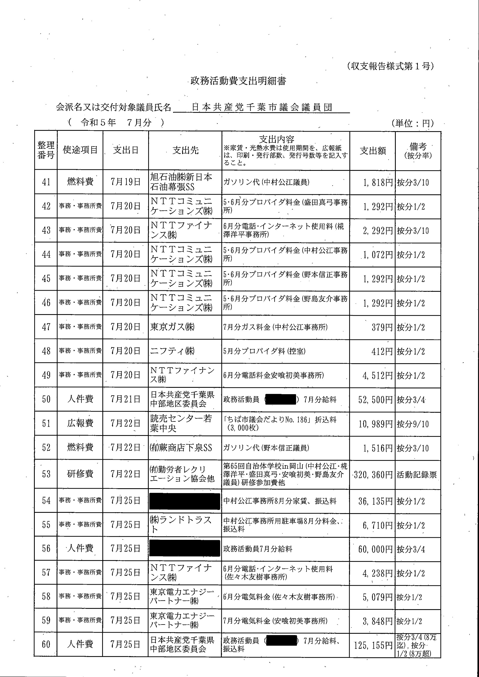 千葉市議会トップページ > 広報・情報公開 > 政務活動費 > 令和5年度交付分(政務活動費収支報告書)