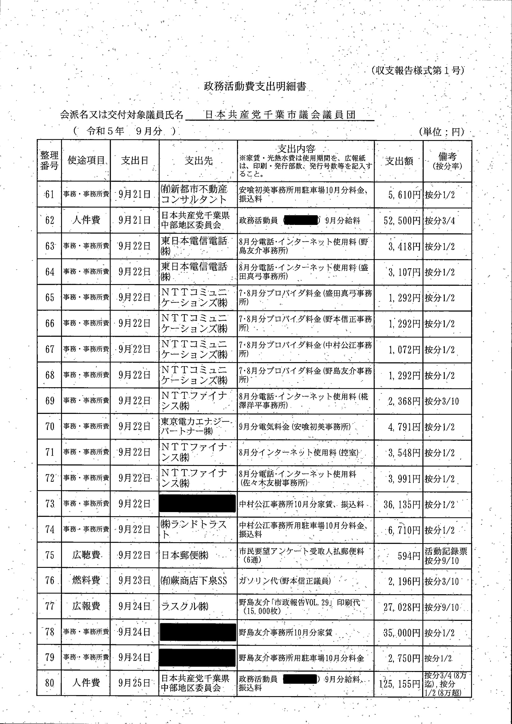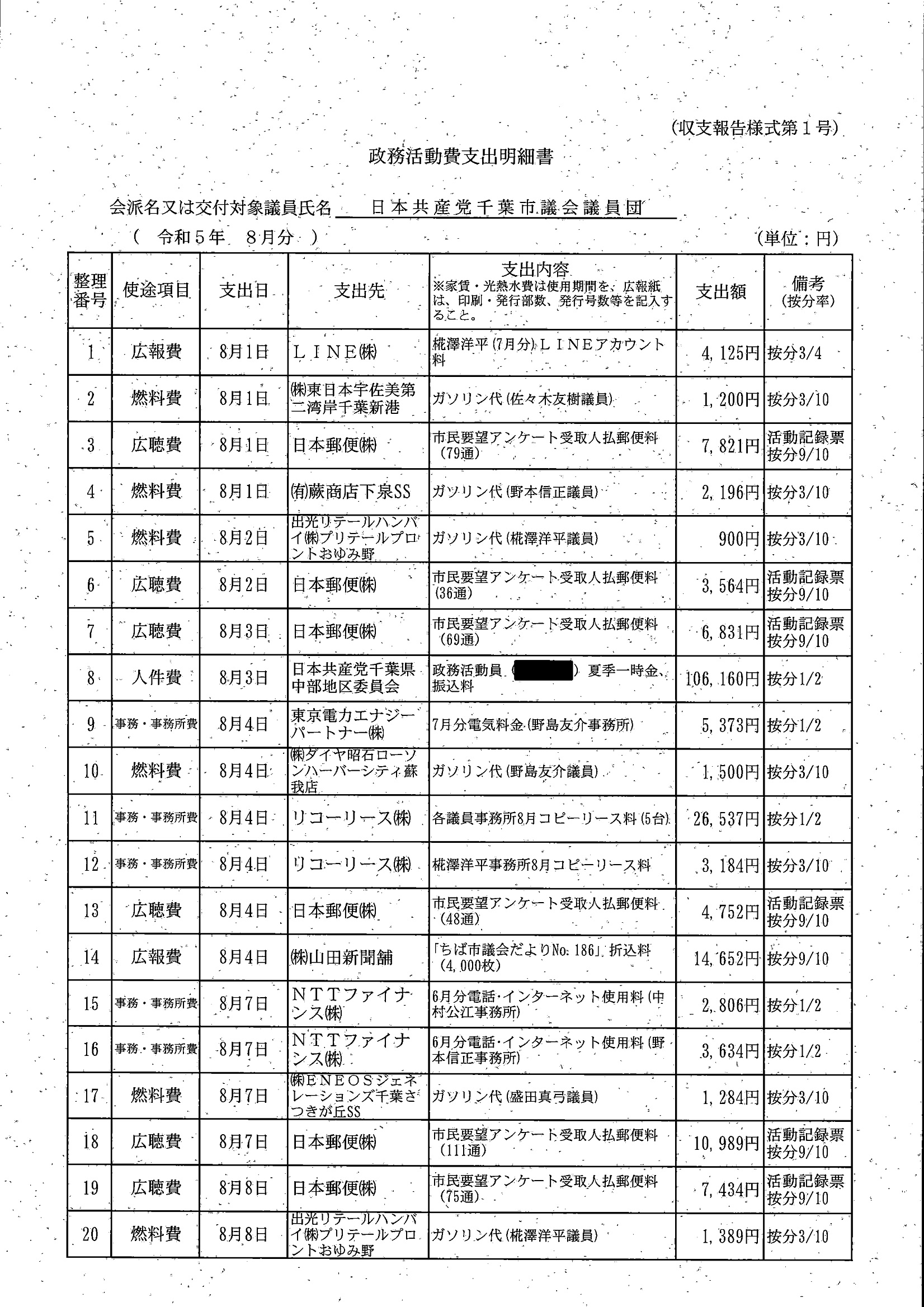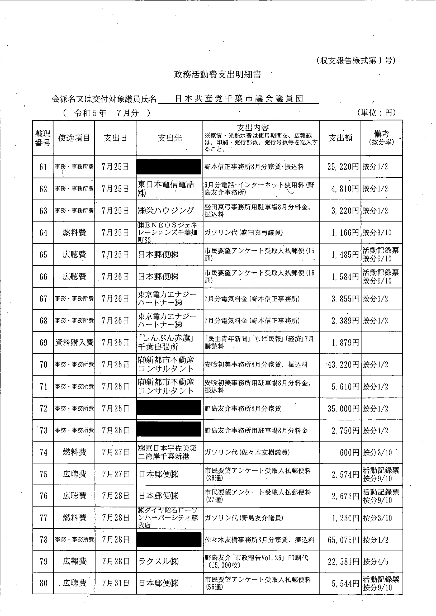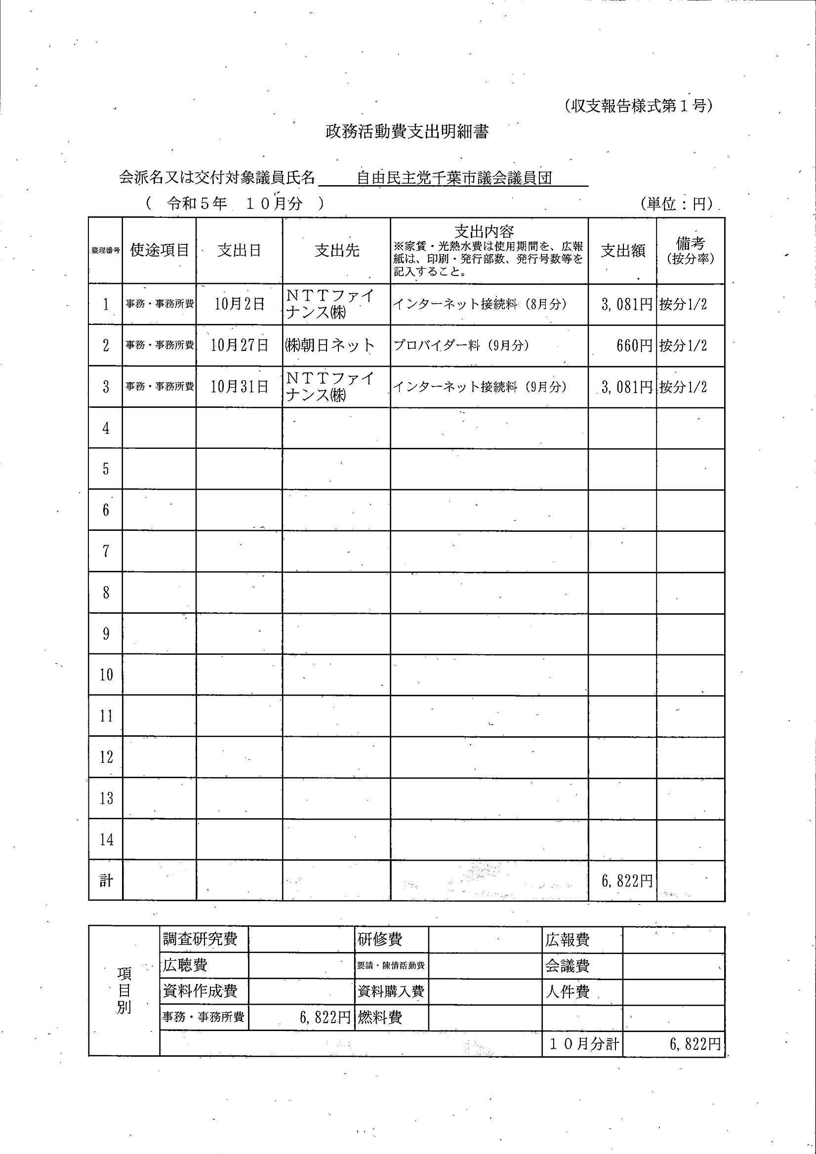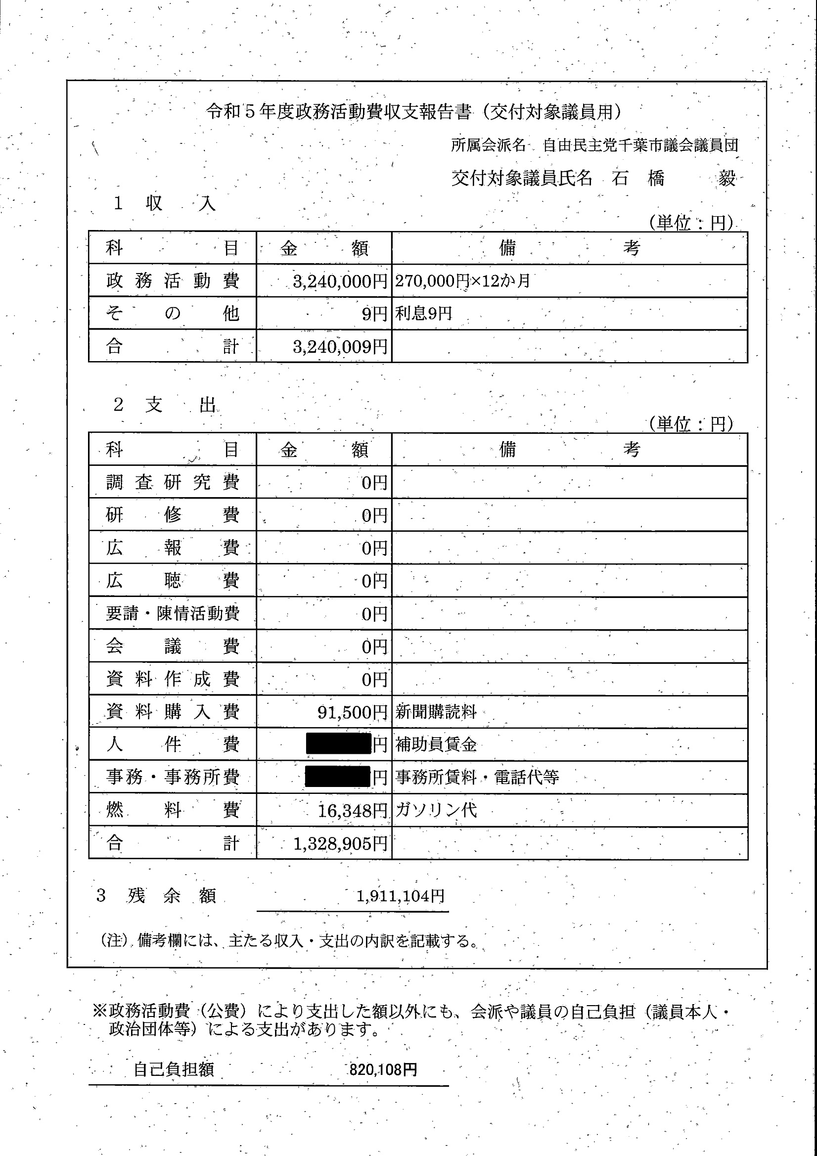 千葉市議会トップページ > 広報・情報公開 > 政務活動費 > 令和5年度交付分(政務活動費収支報告書)