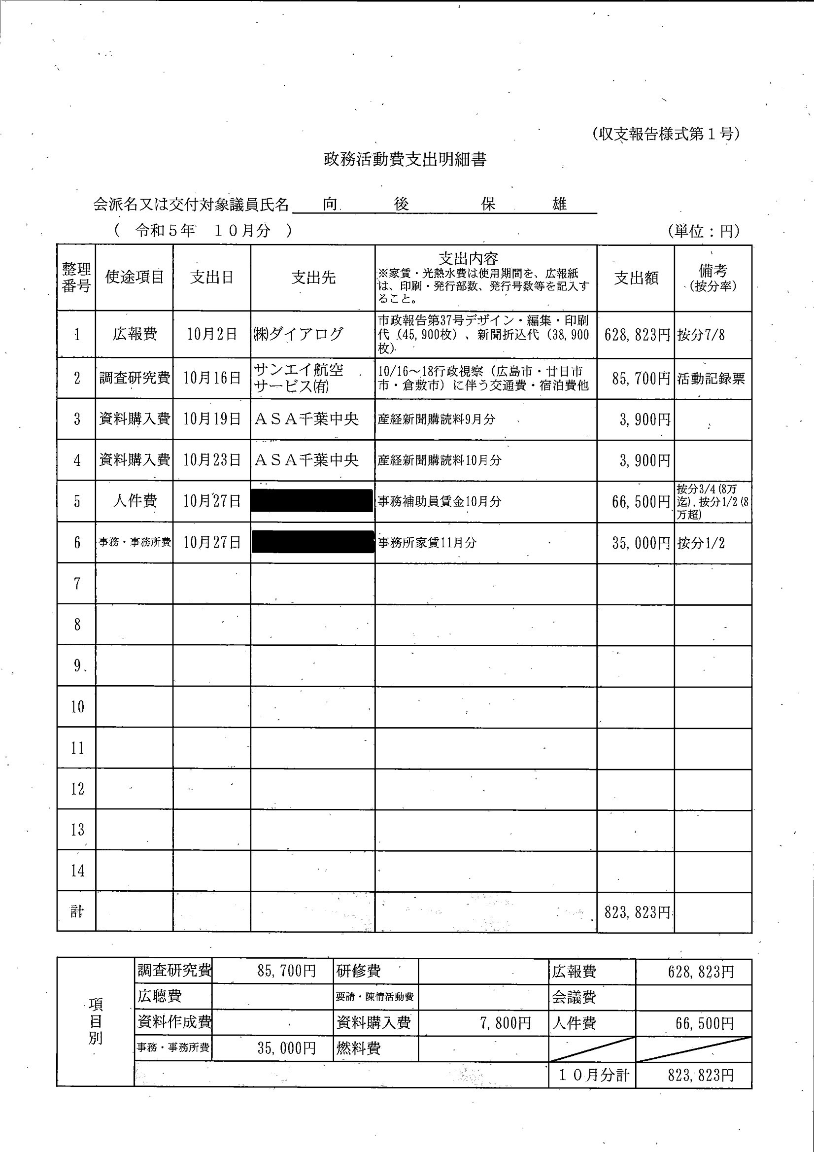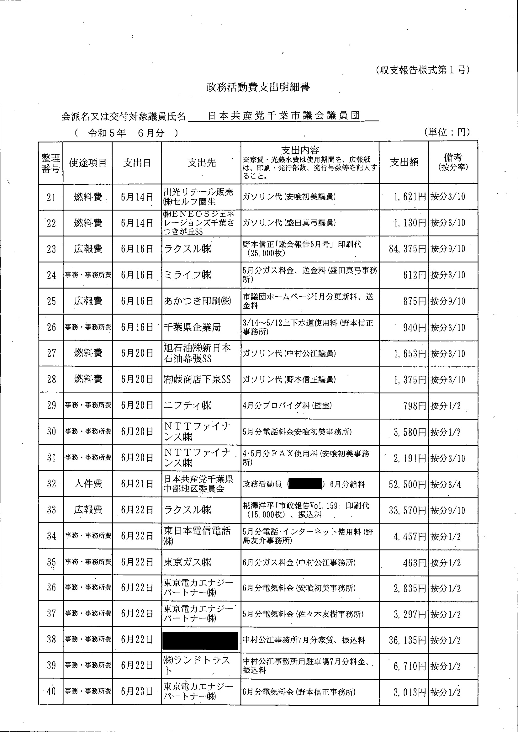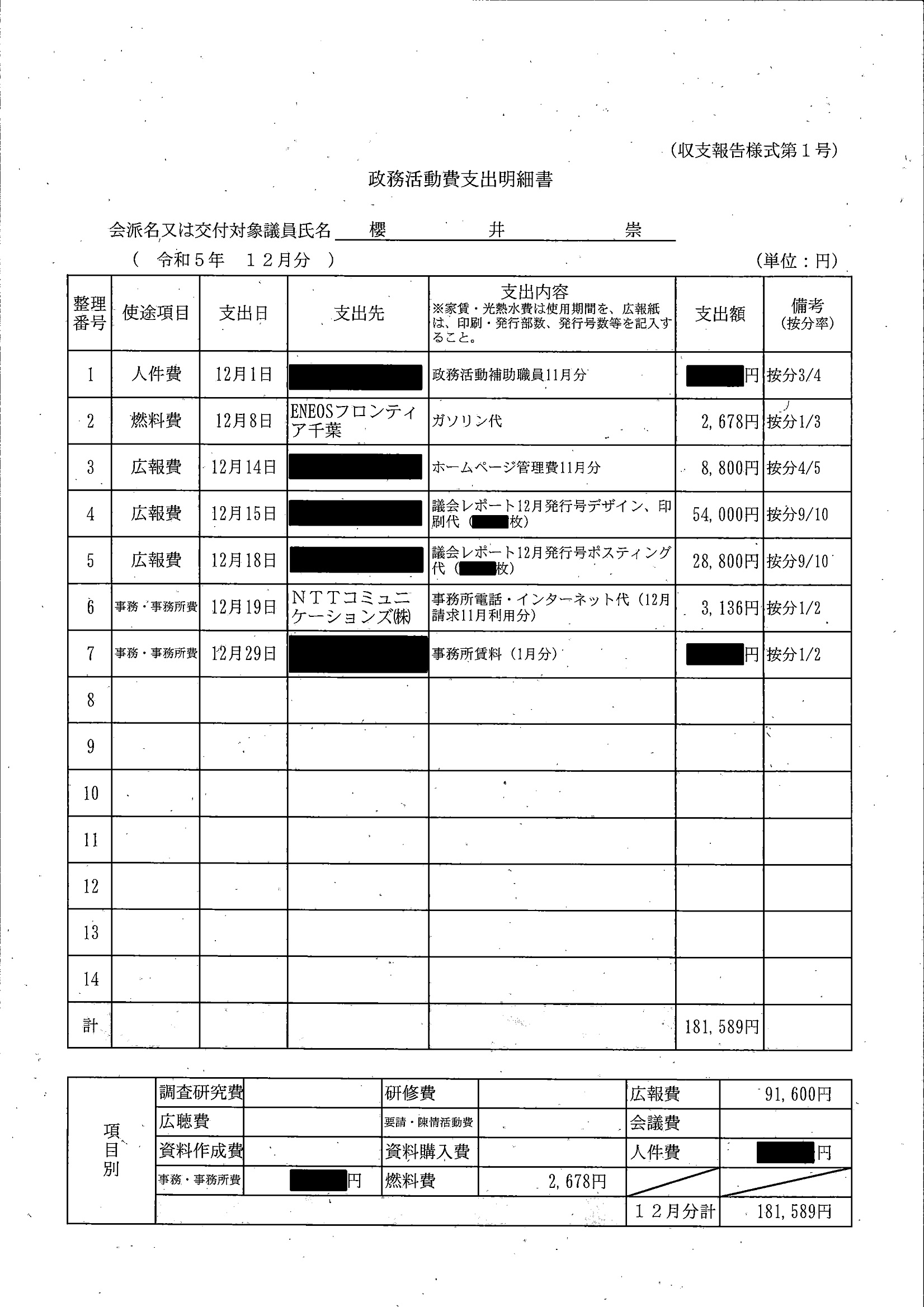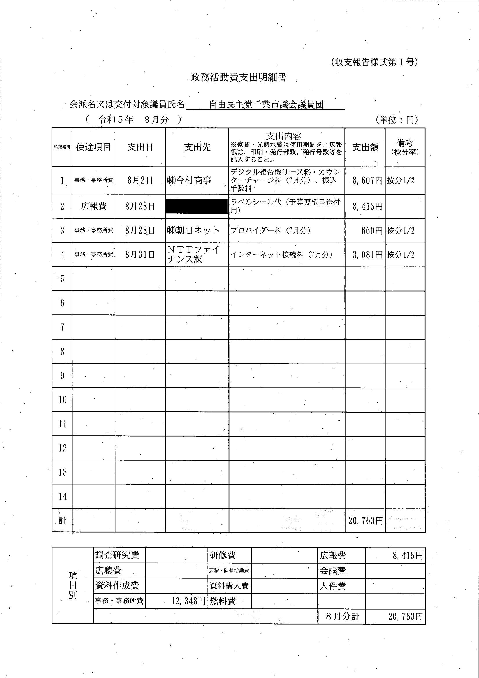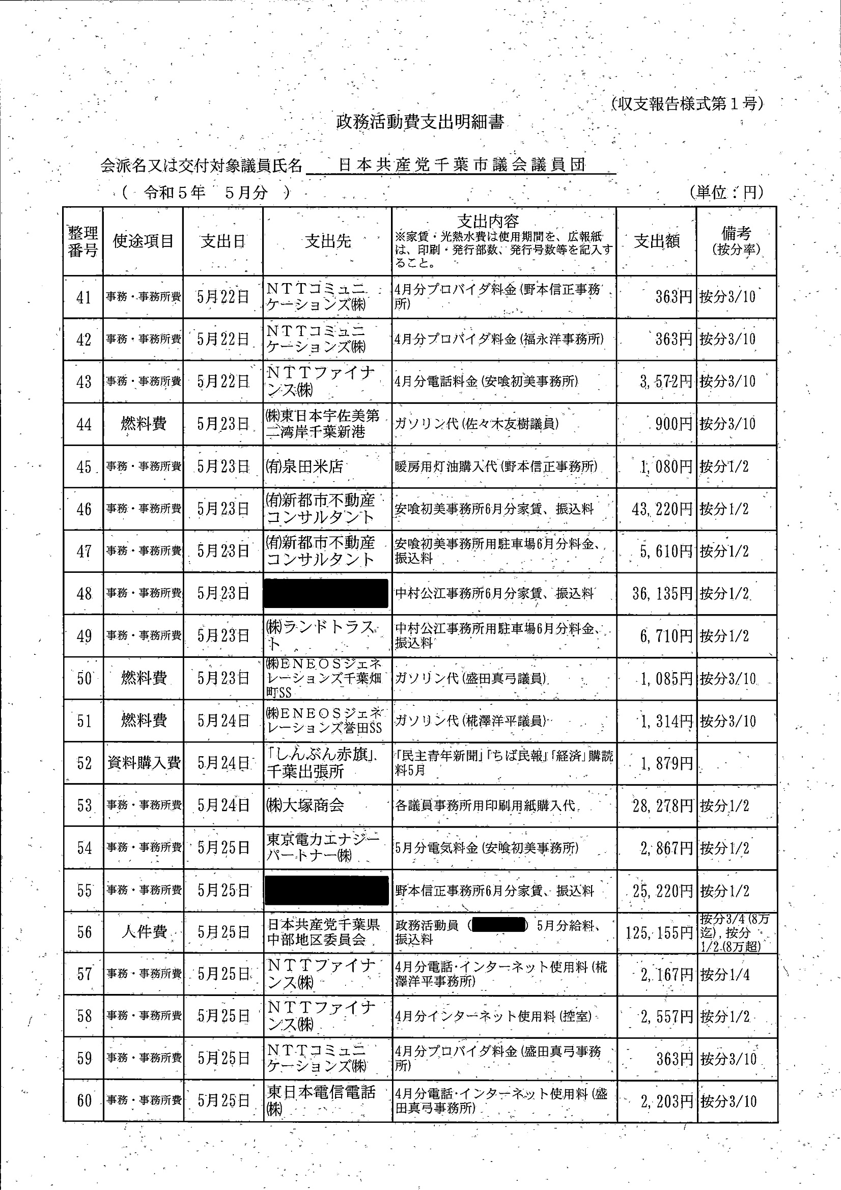 千葉市議会トップページ > 広報・情報公開 > 政務活動費 > 令和5年度交付分(政務活動費収支報告書)