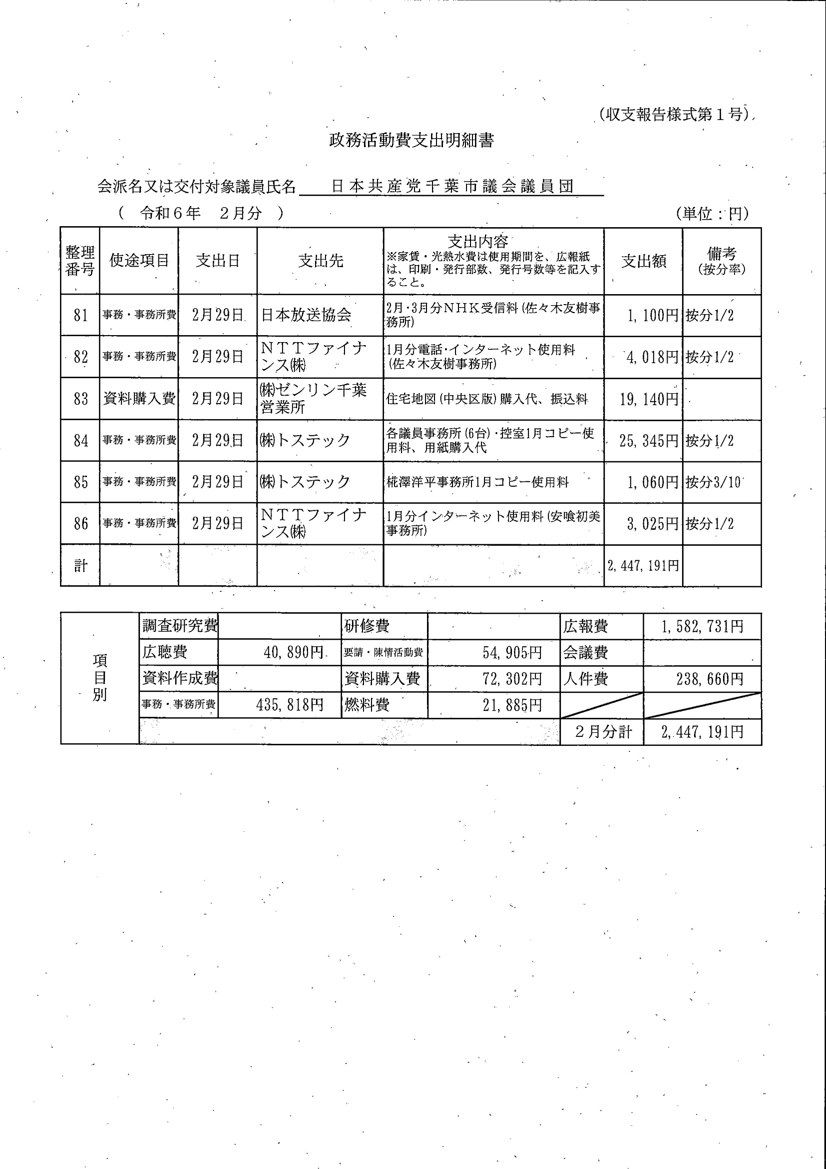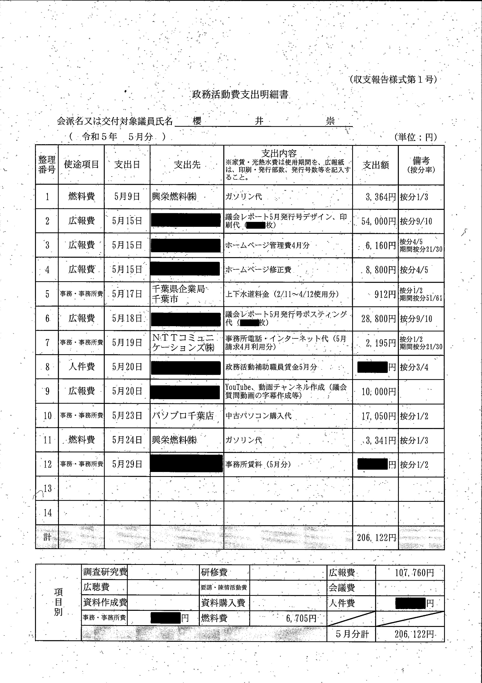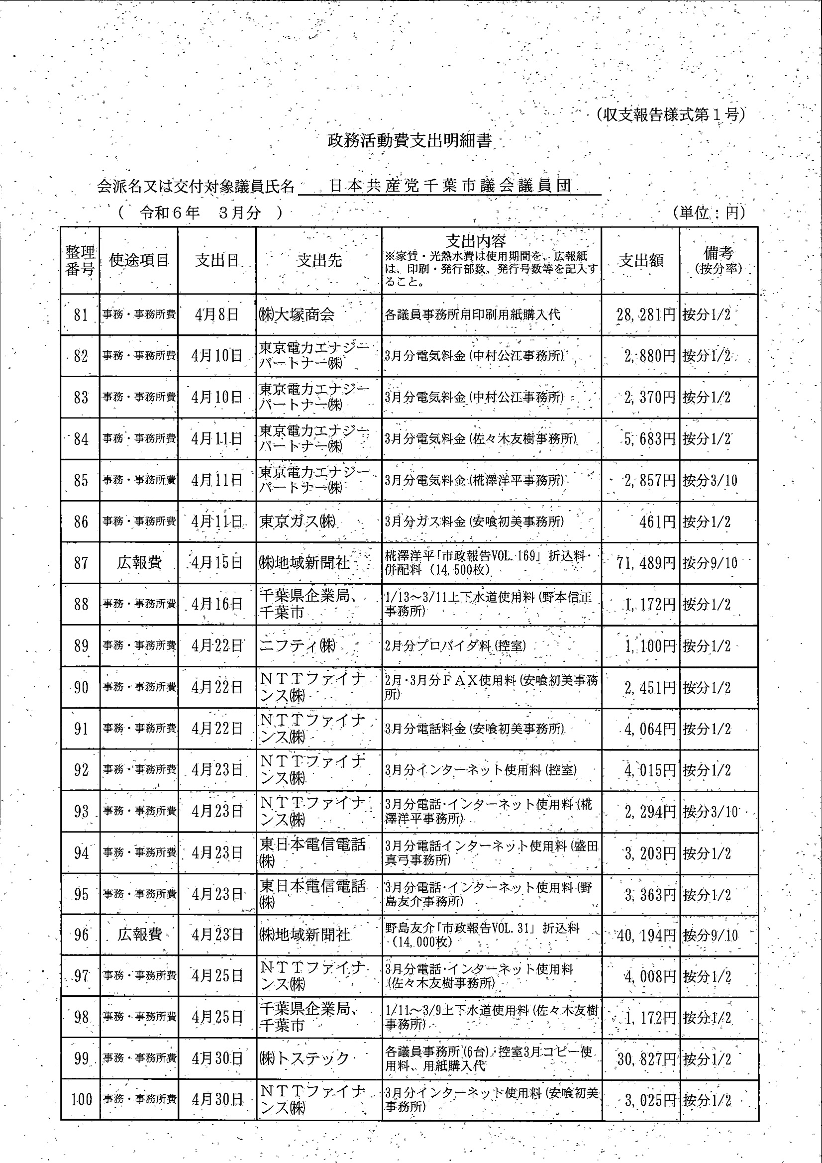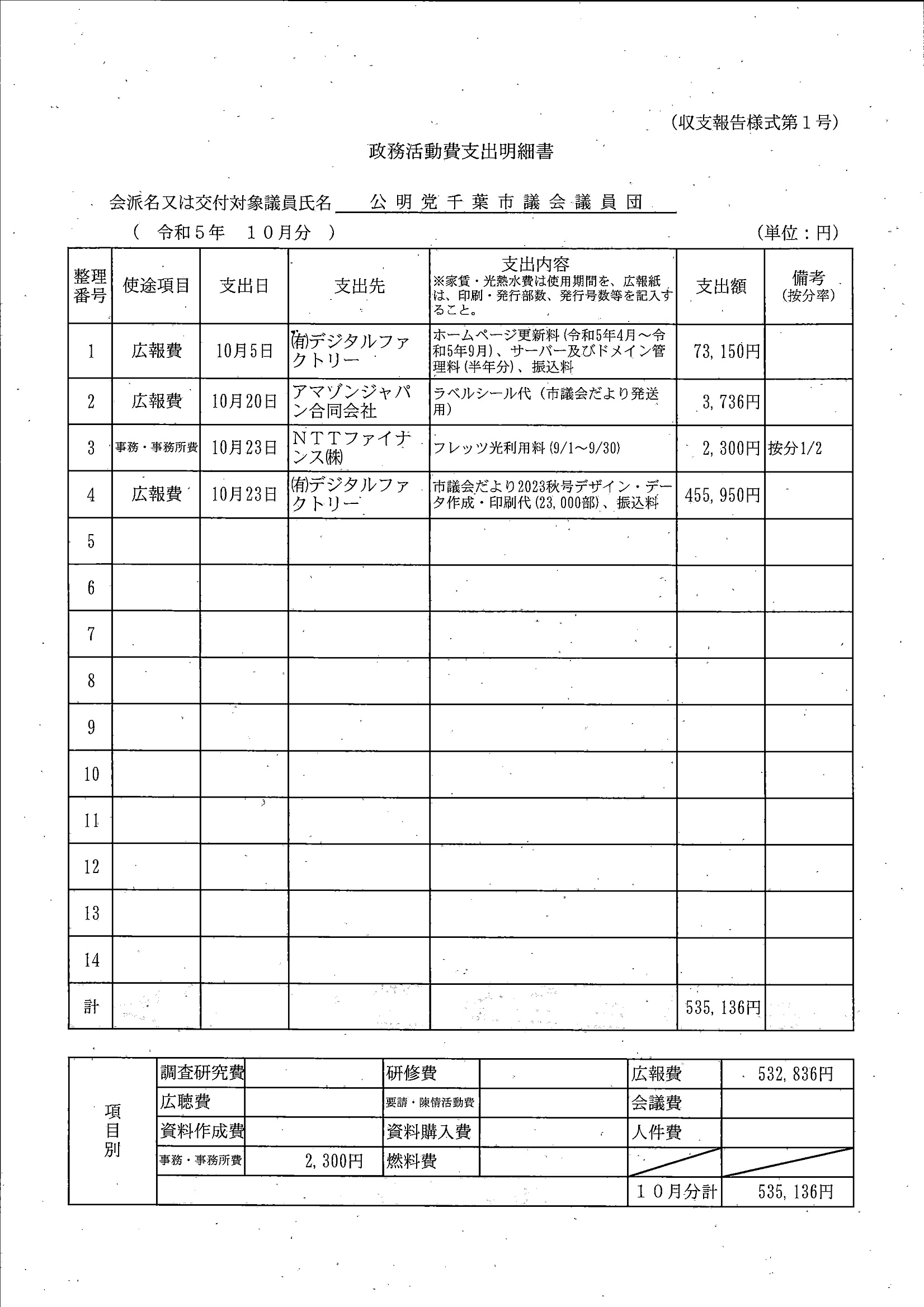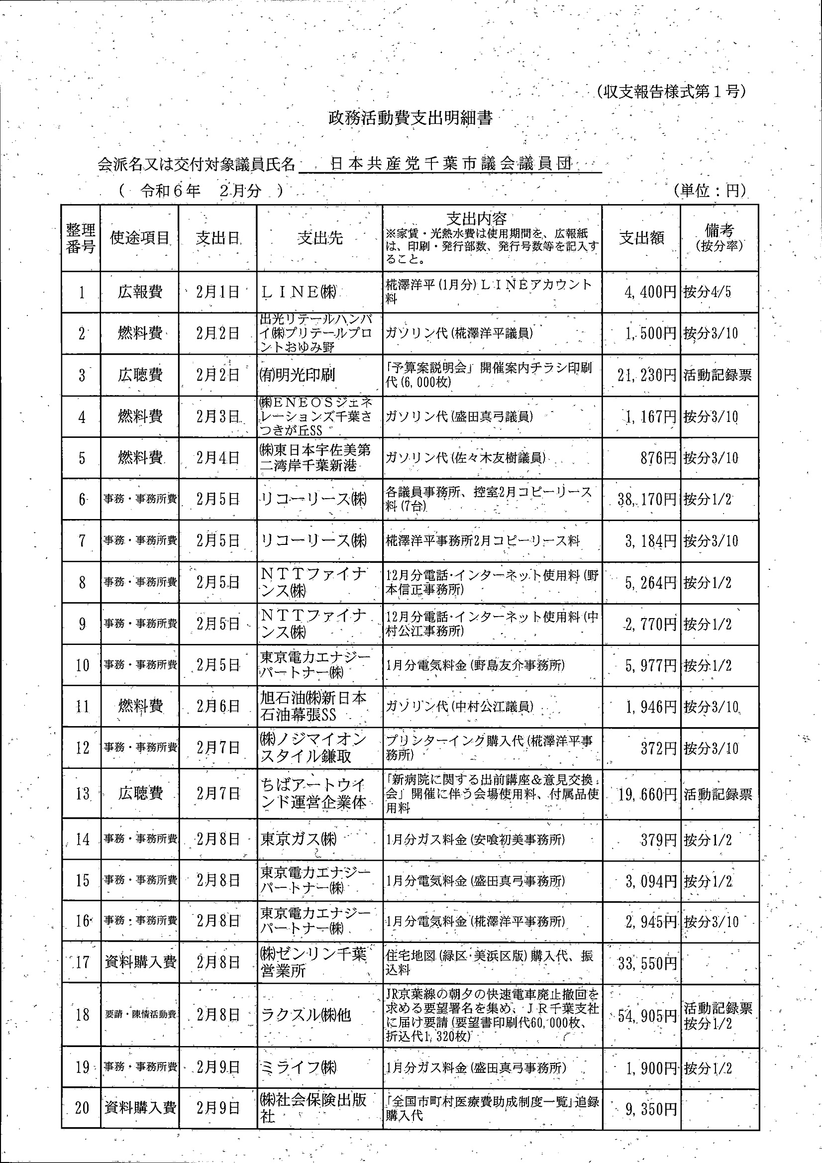 千葉市議会トップページ > 広報・情報公開 > 政務活動費 > 令和5年度交付分(政務活動費収支報告書)