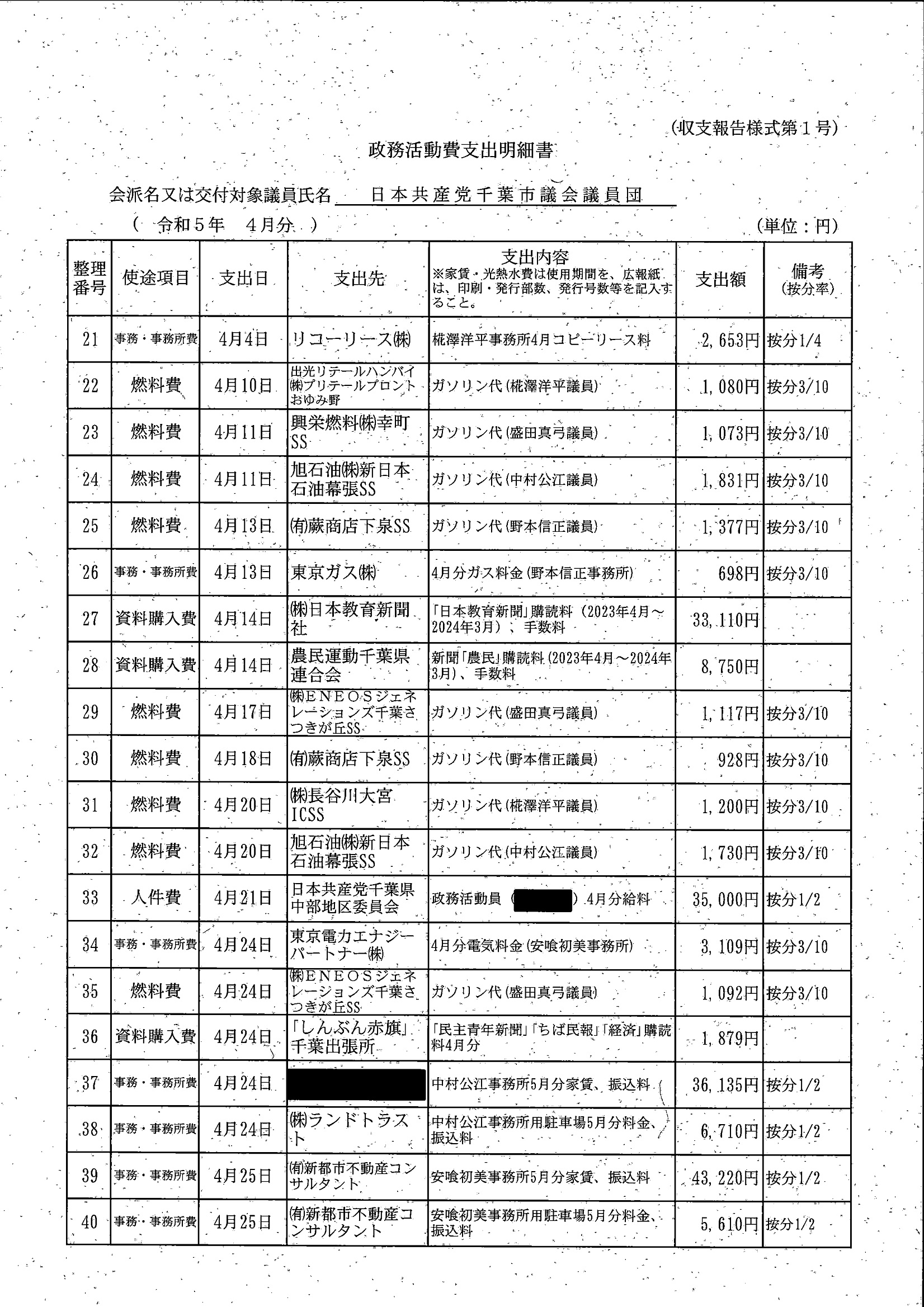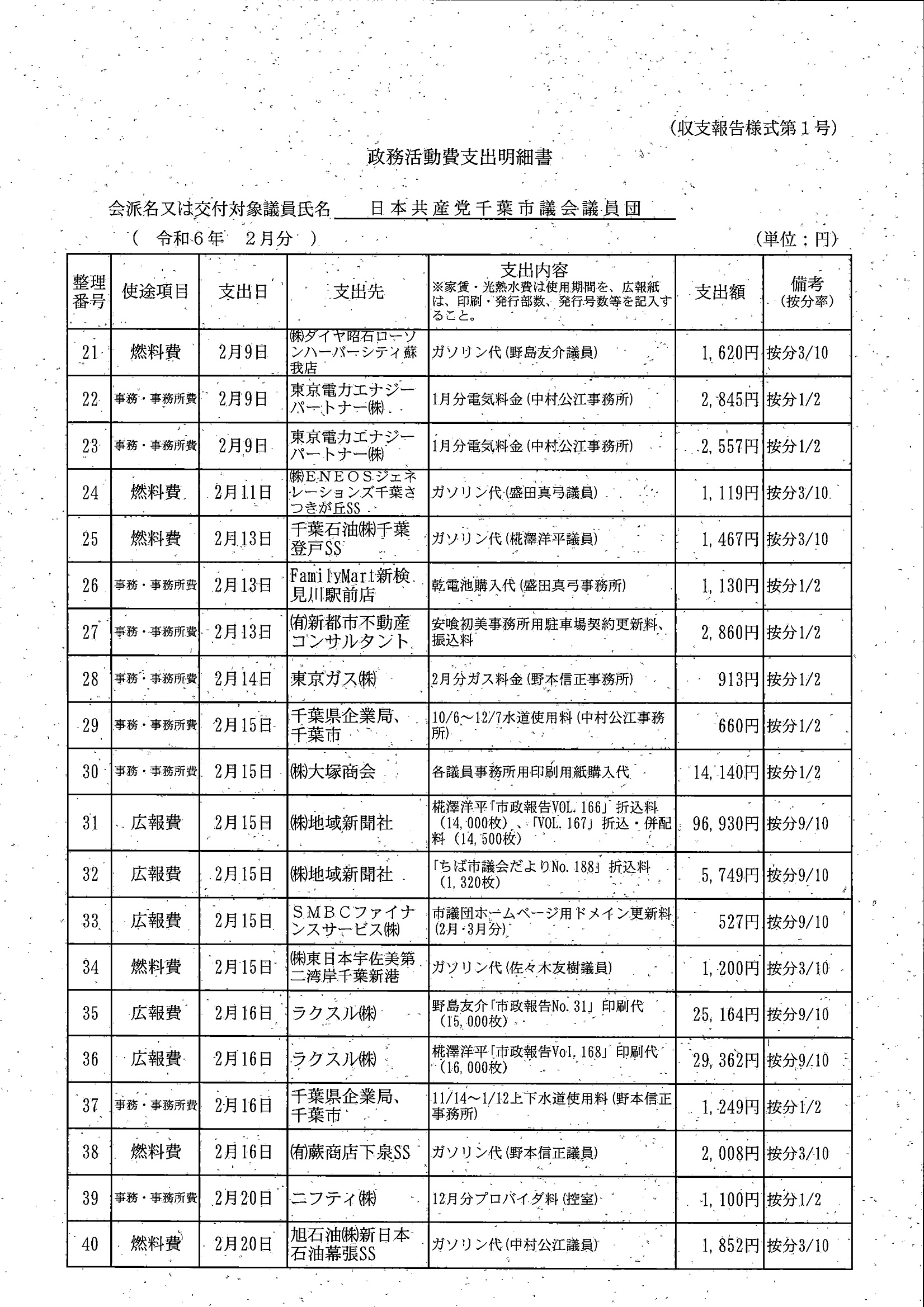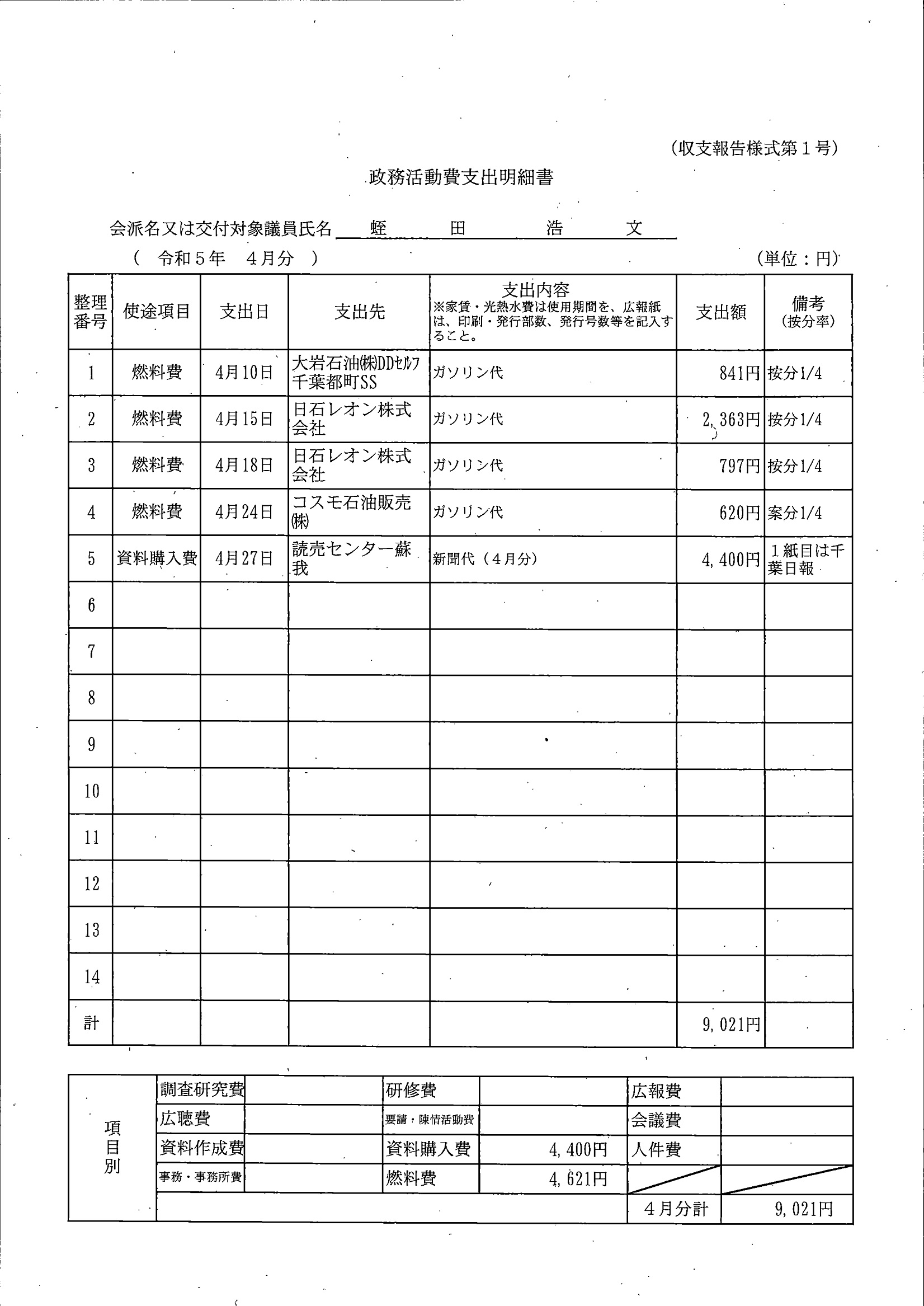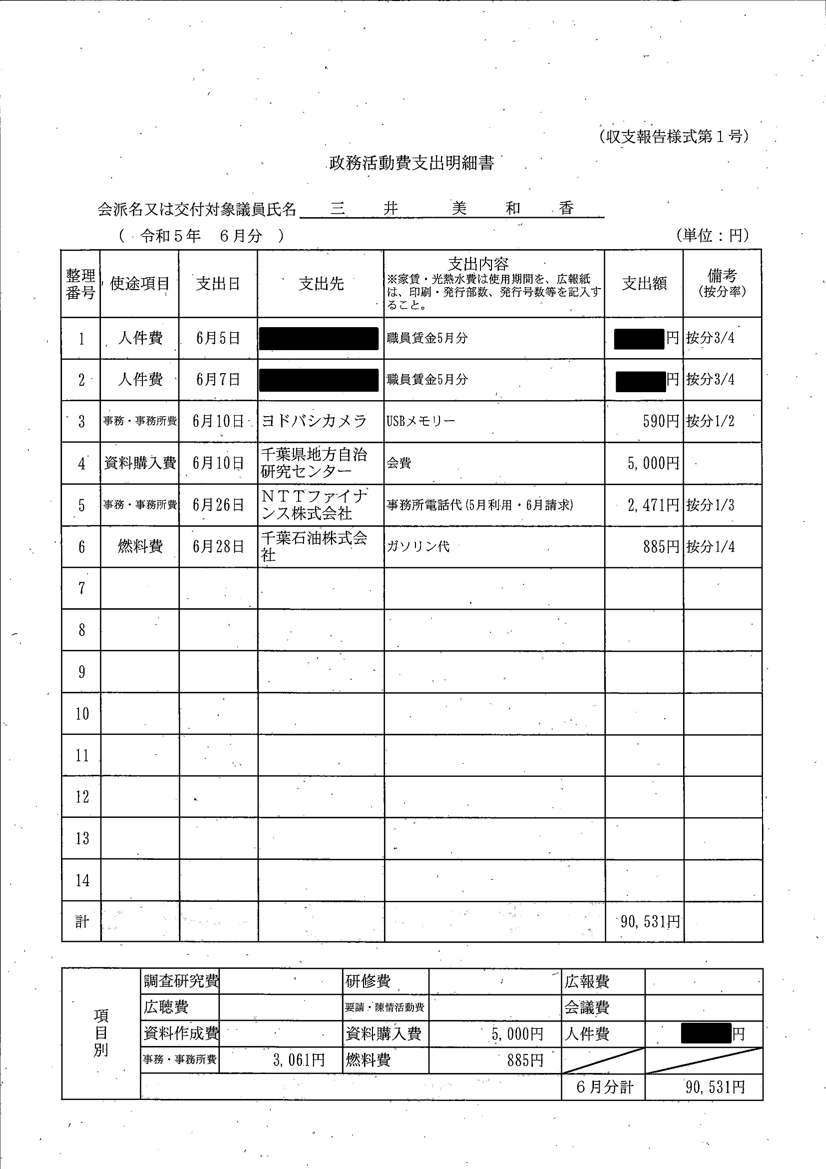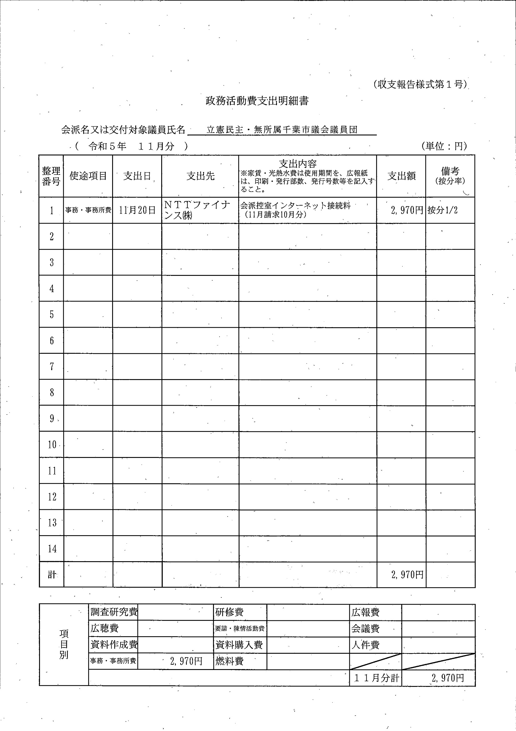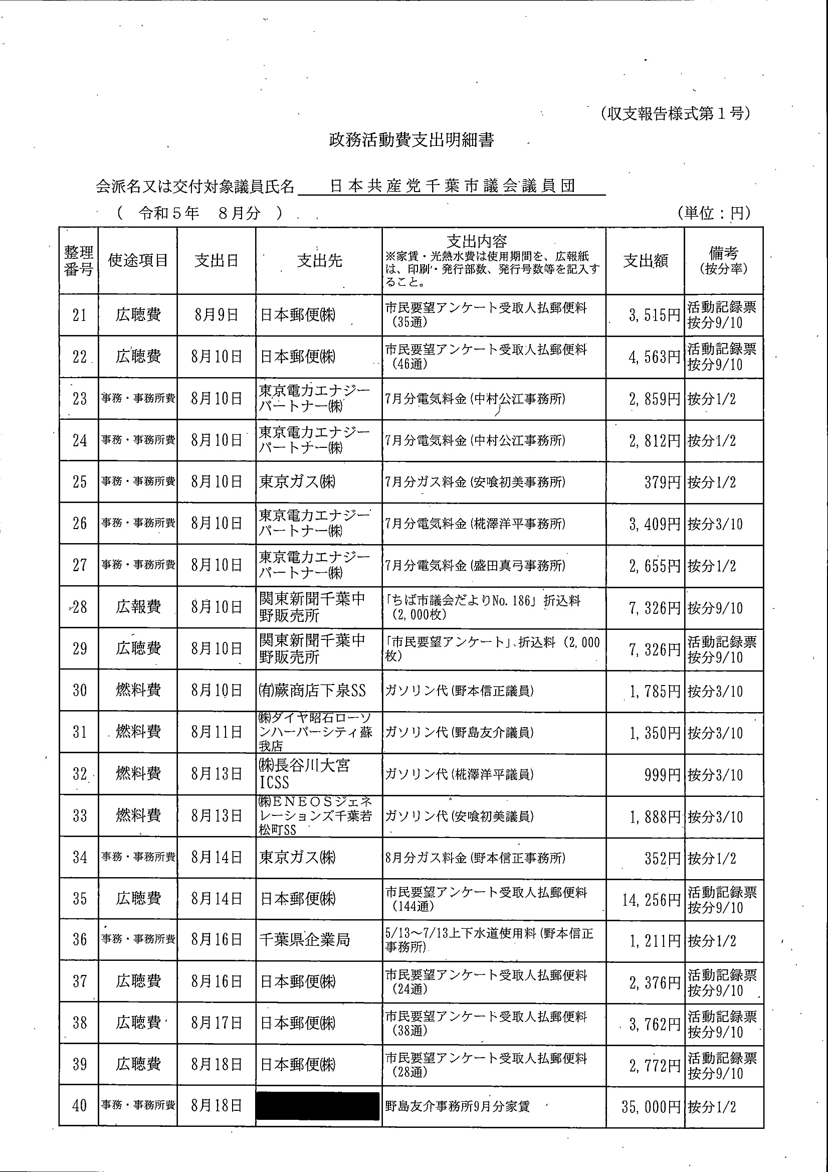千葉市議会トップページ > 広報・情報公開 > 政務活動費 > 令和5年度交付分(政務活動費収支報告書)