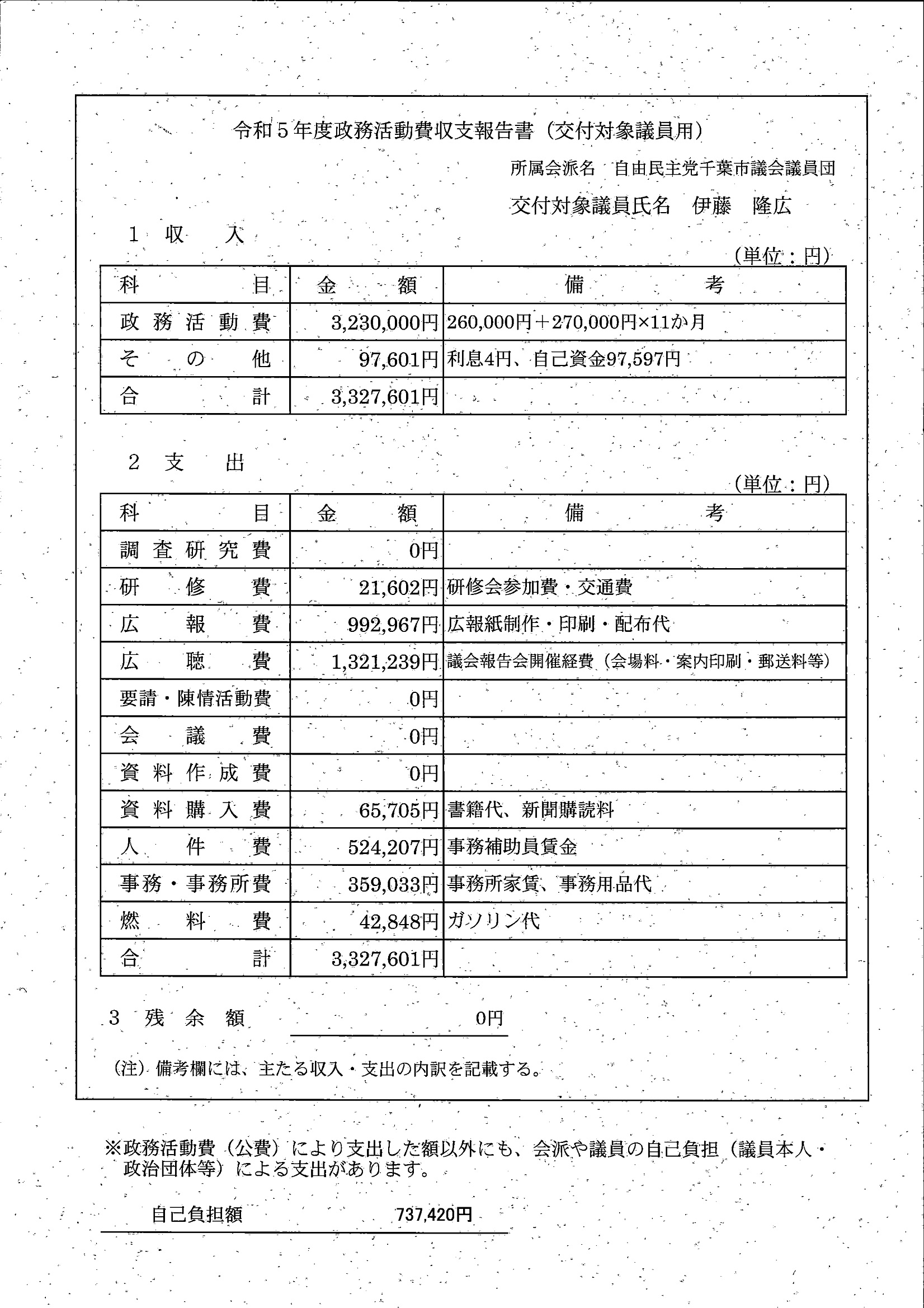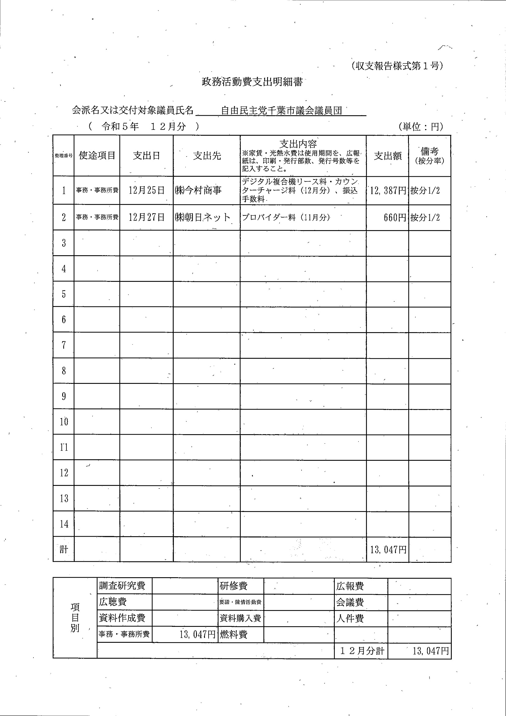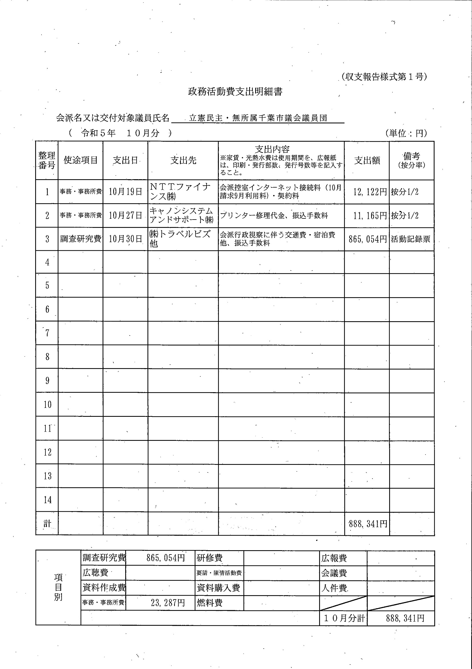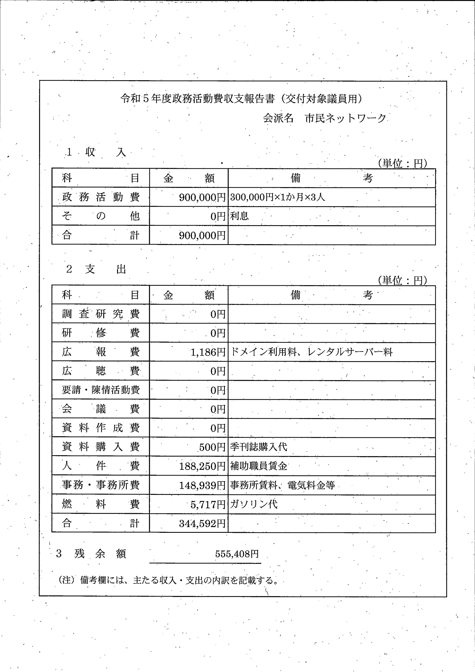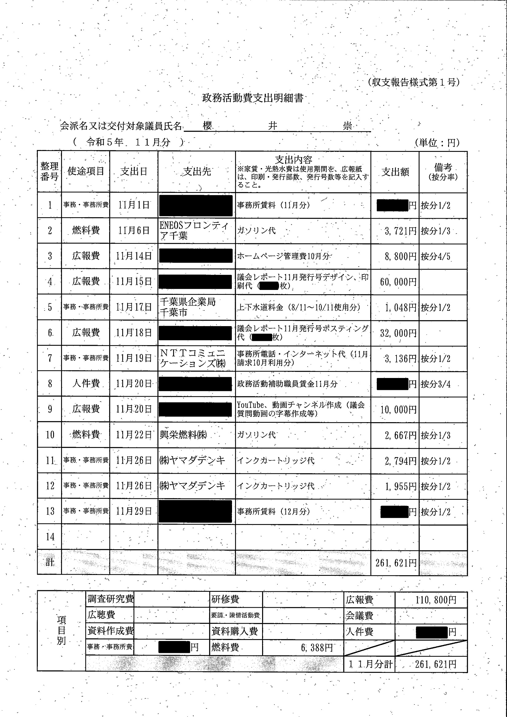 千葉市議会トップページ > 広報・情報公開 > 政務活動費 > 令和5年度交付分(政務活動費収支報告書)