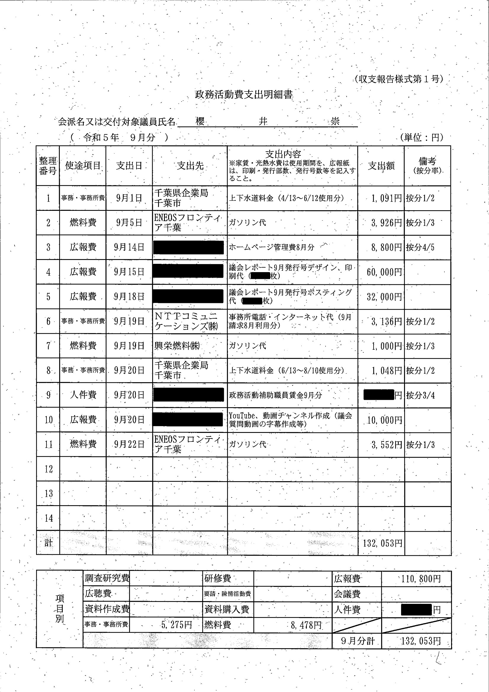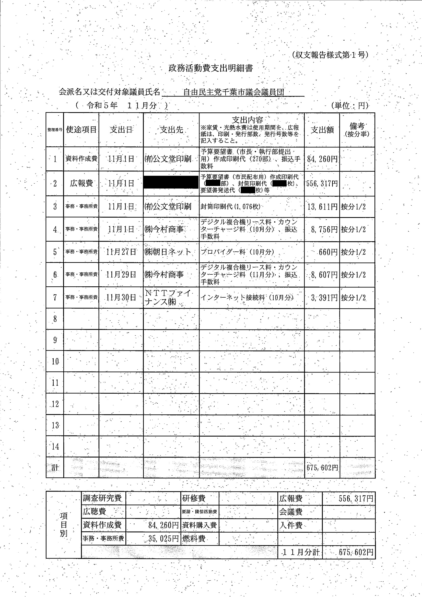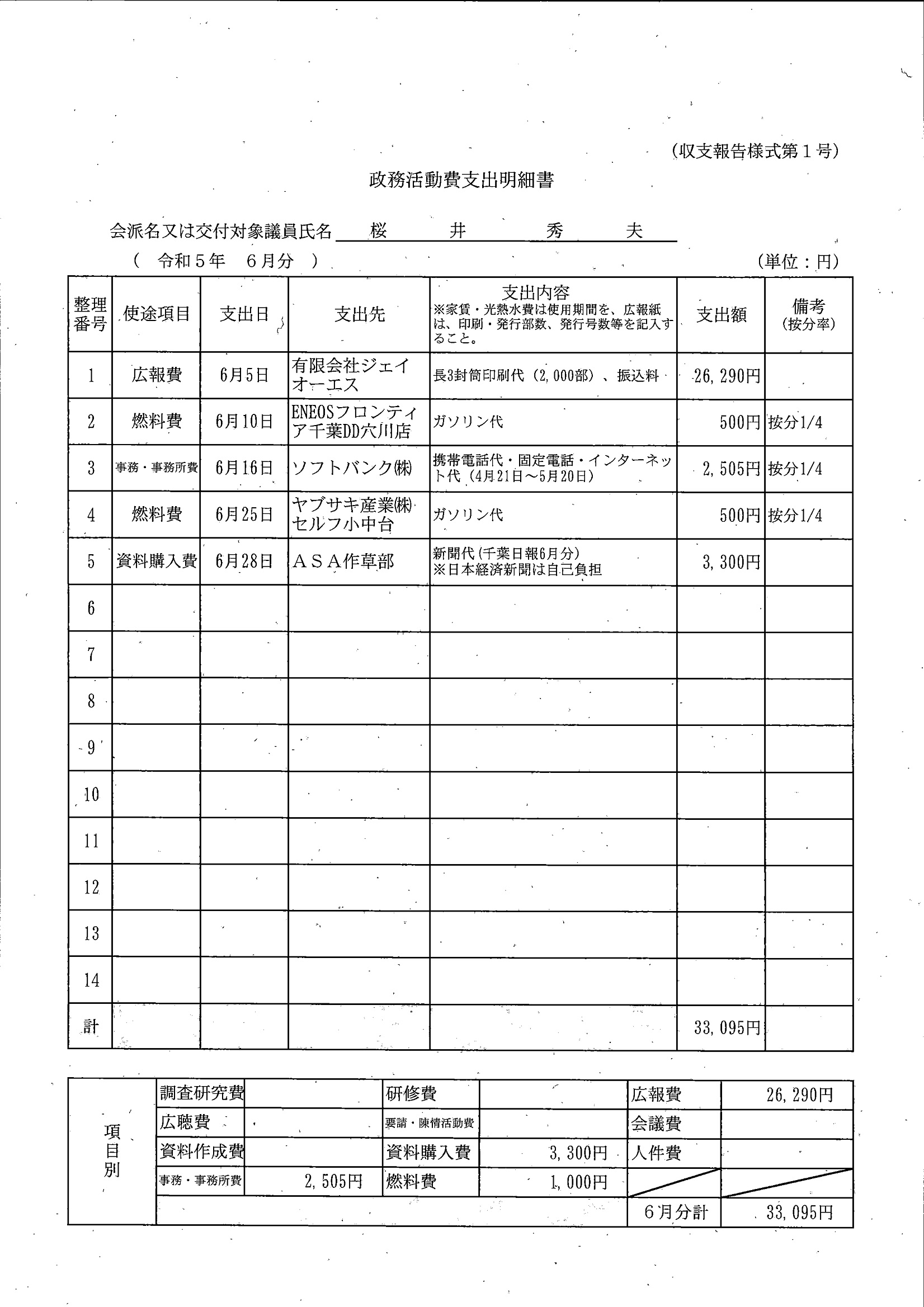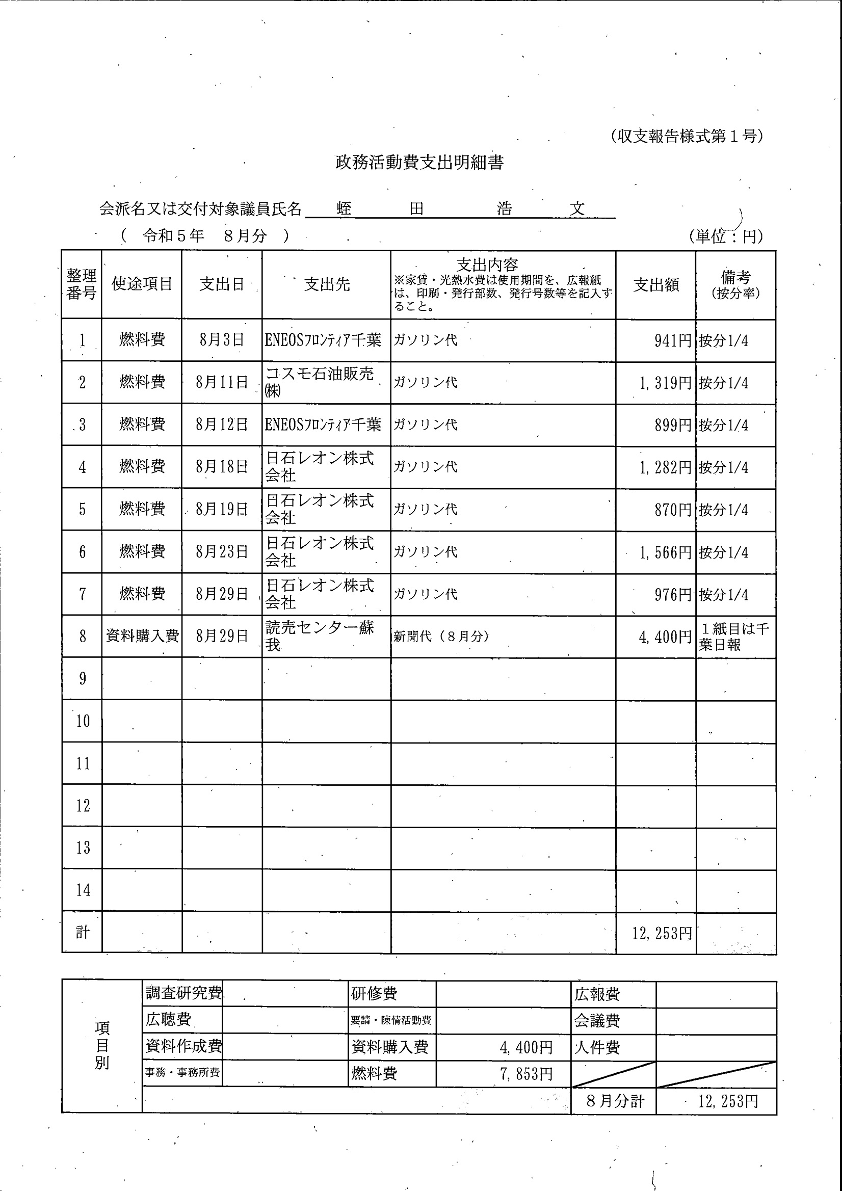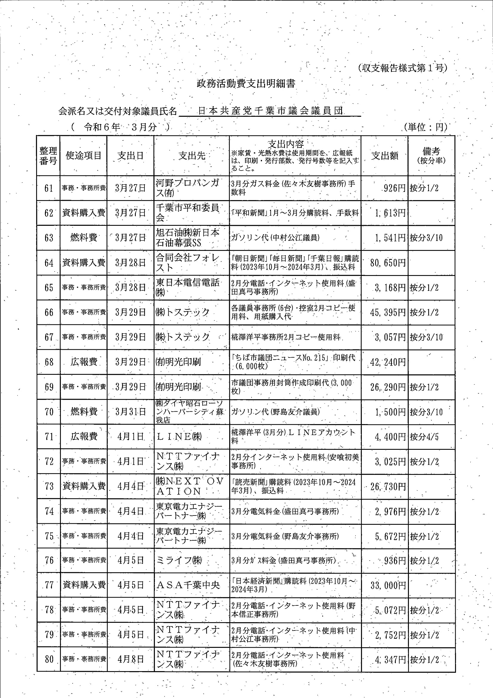 千葉市議会トップページ > 広報・情報公開 > 政務活動費 > 令和5年度交付分(政務活動費収支報告書)