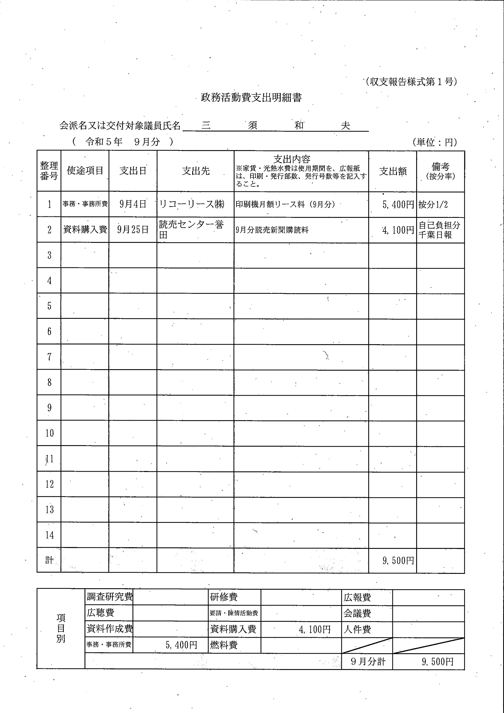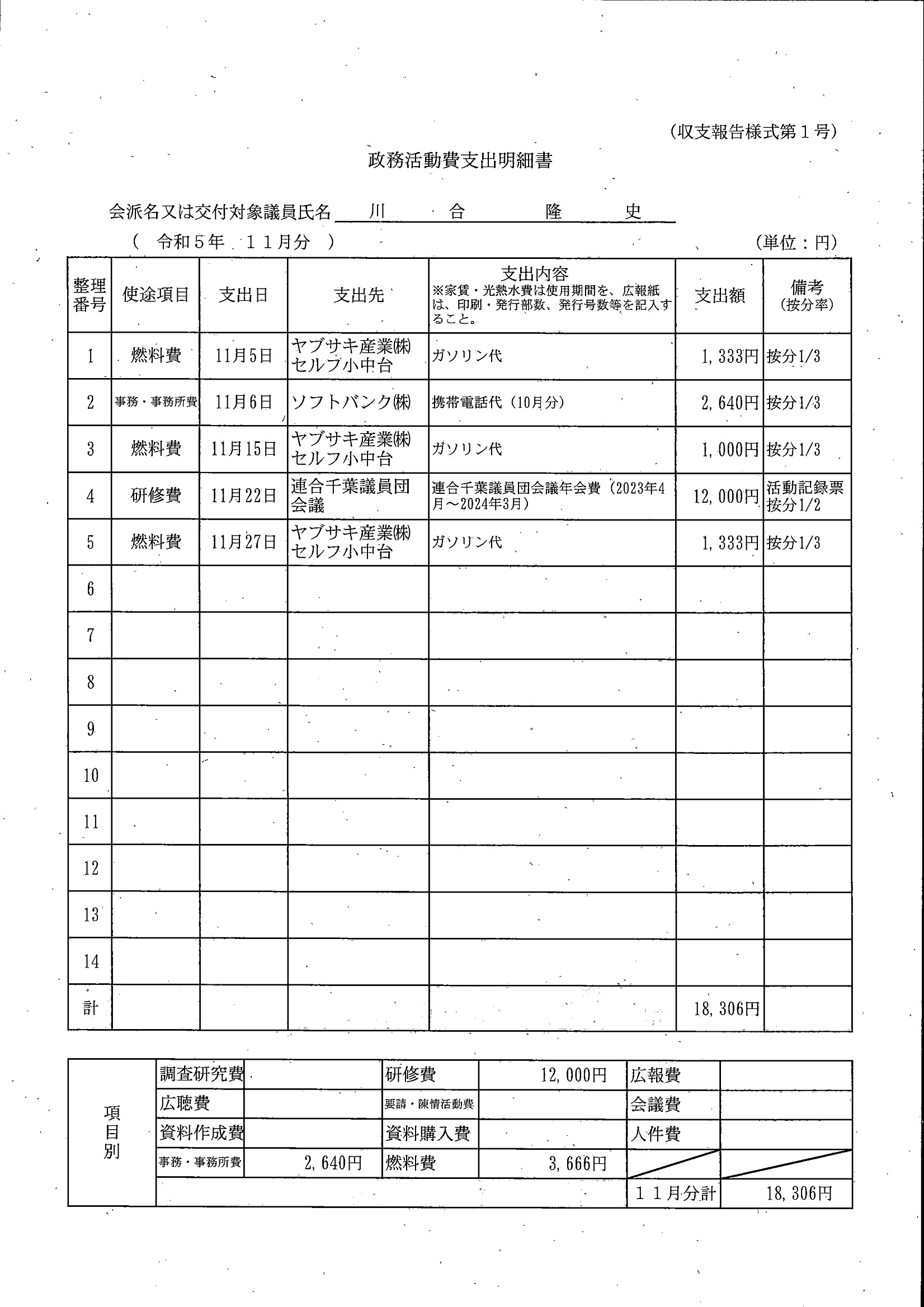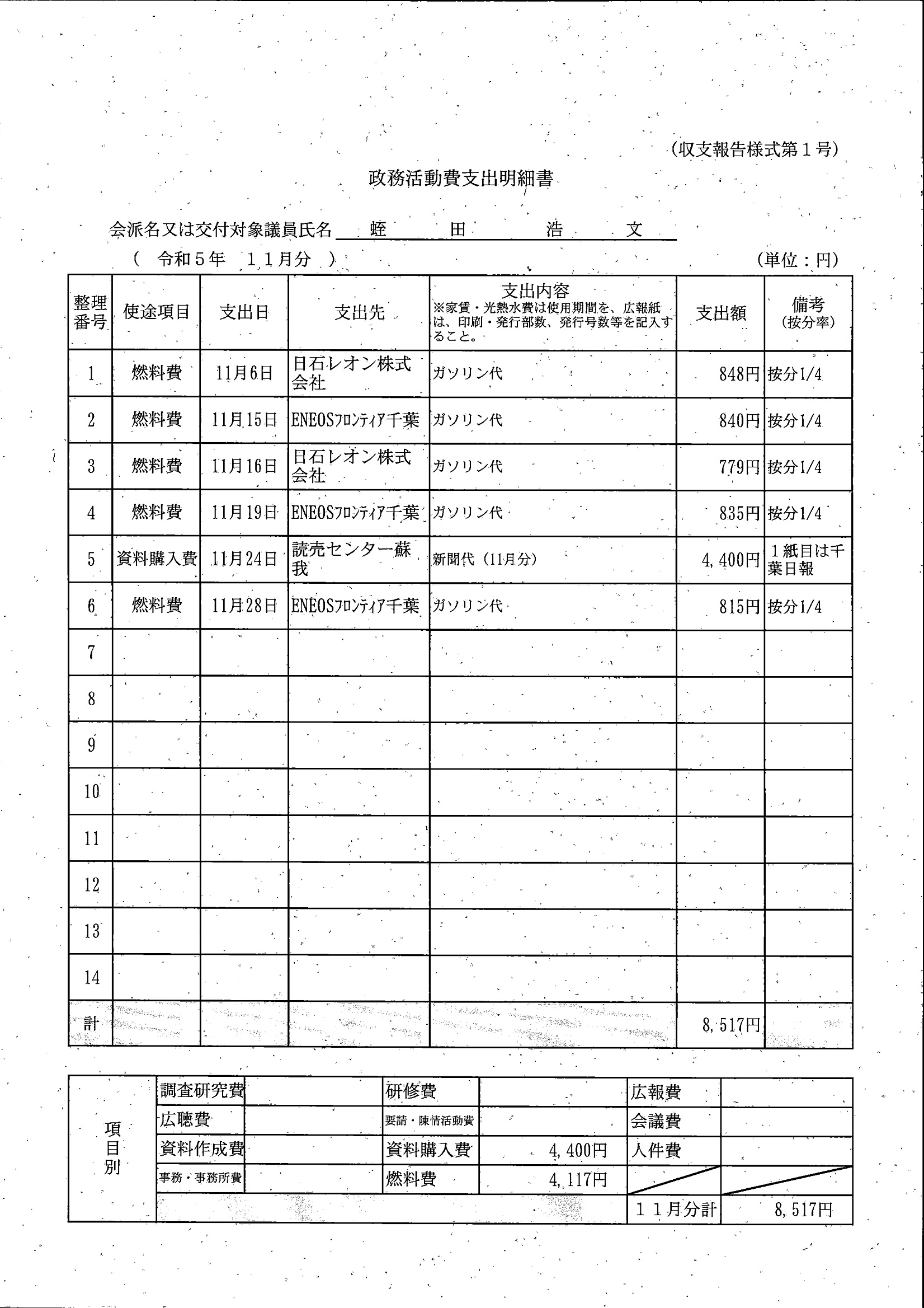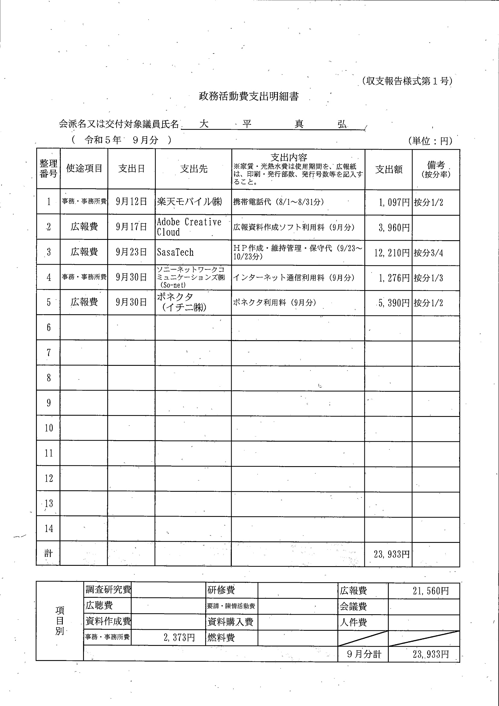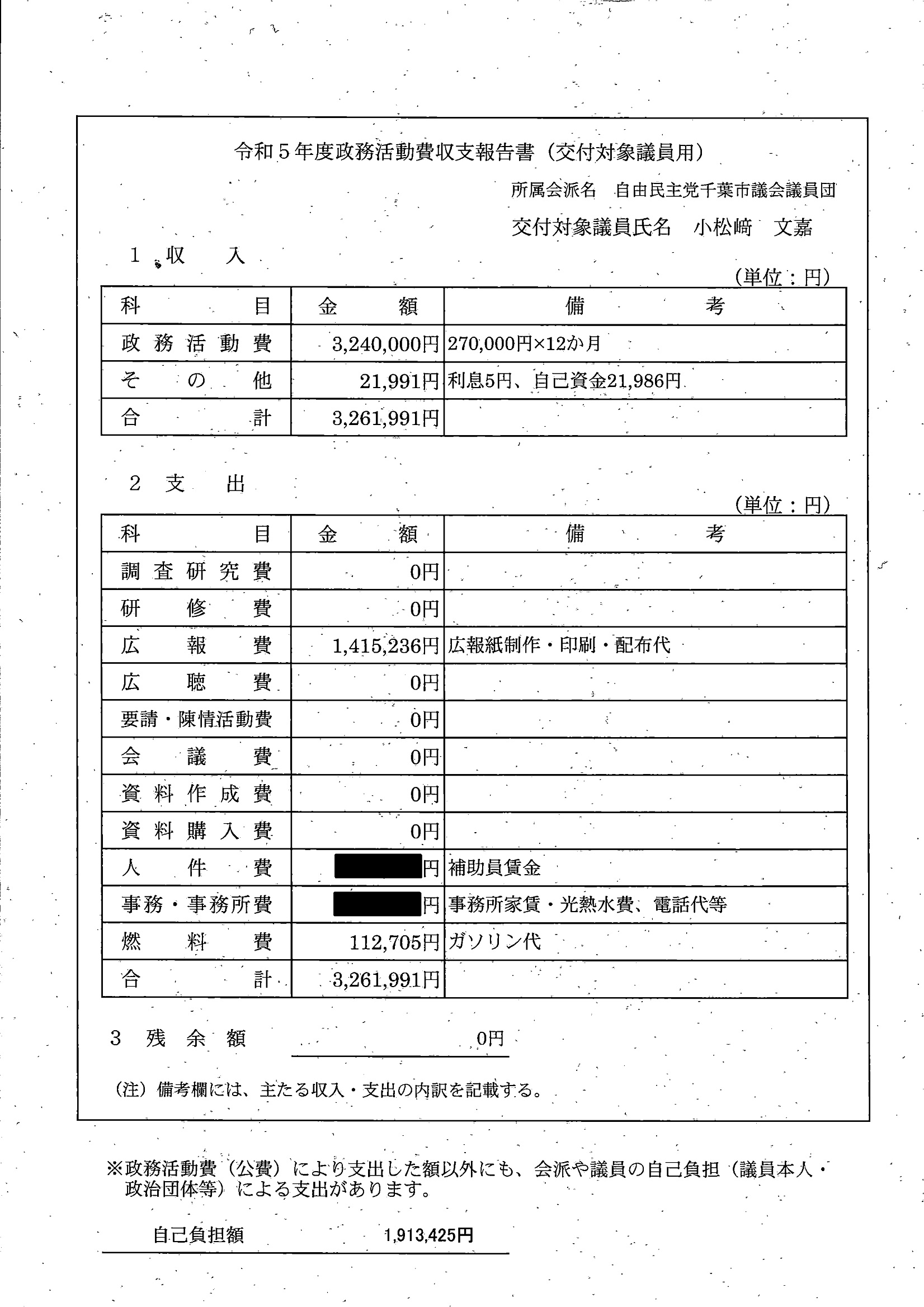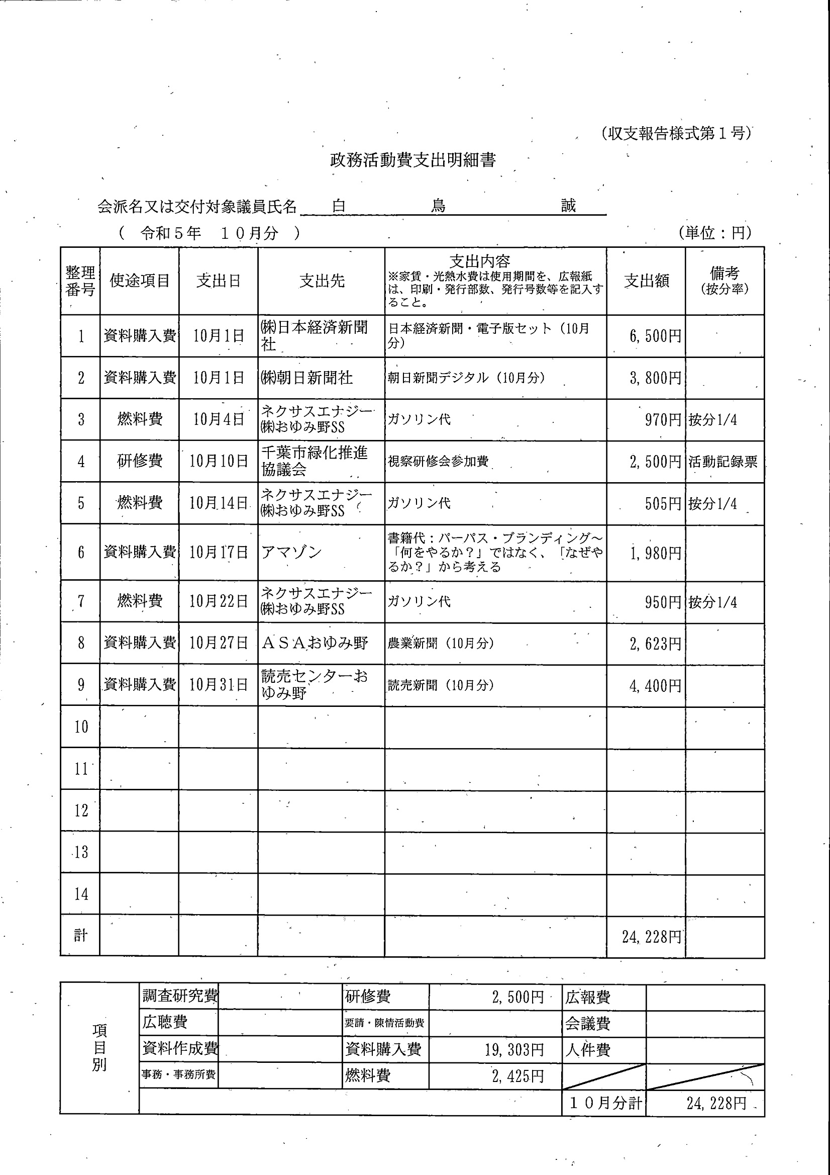 千葉市議会トップページ > 広報・情報公開 > 政務活動費 > 令和5年度交付分(政務活動費収支報告書)