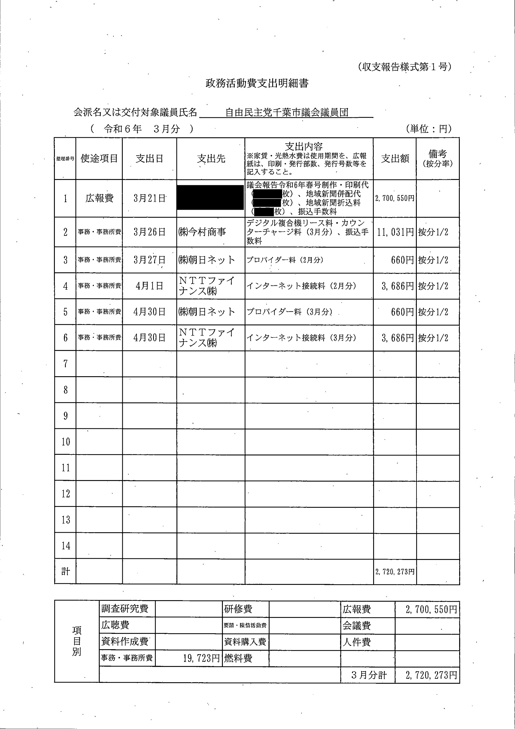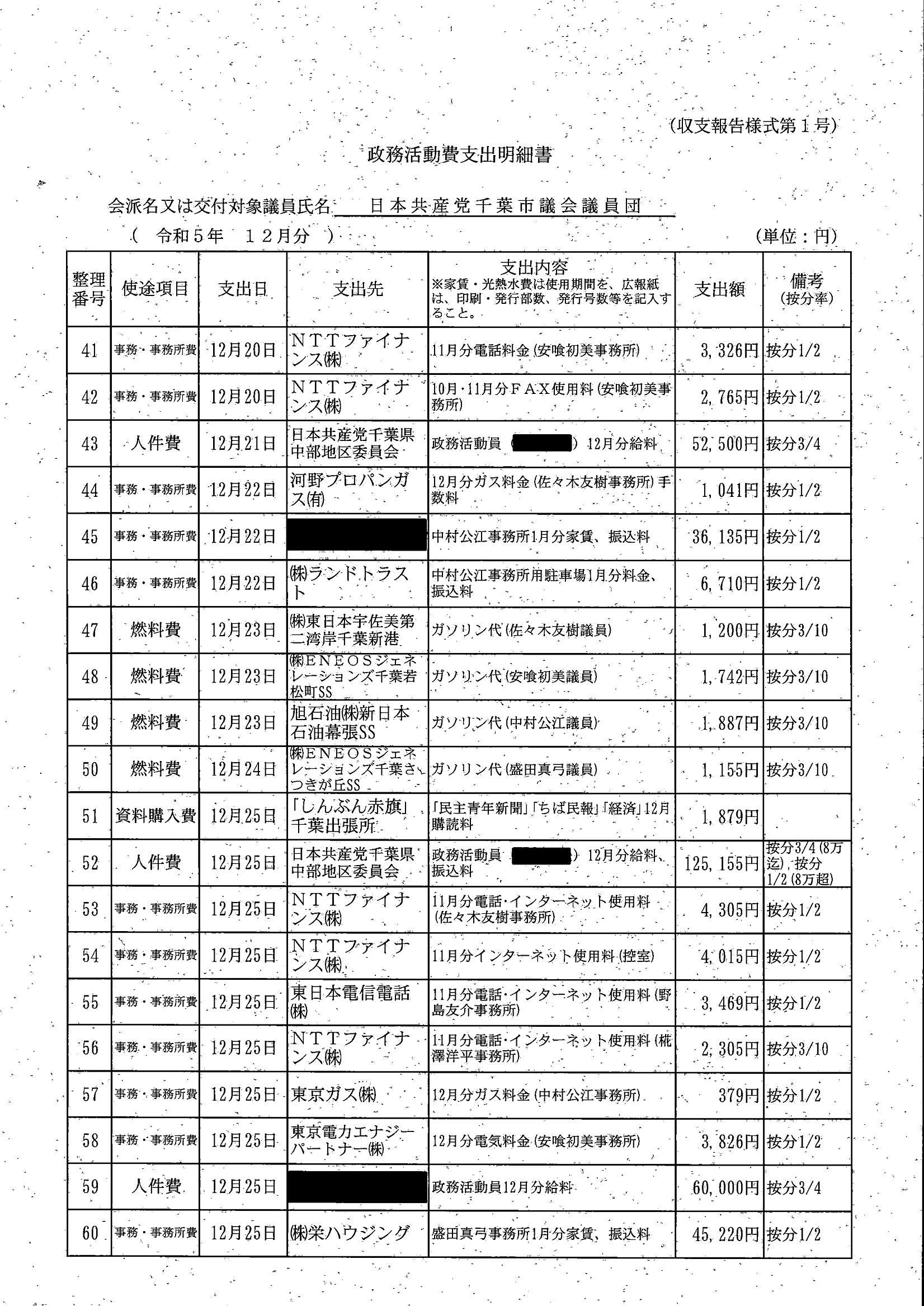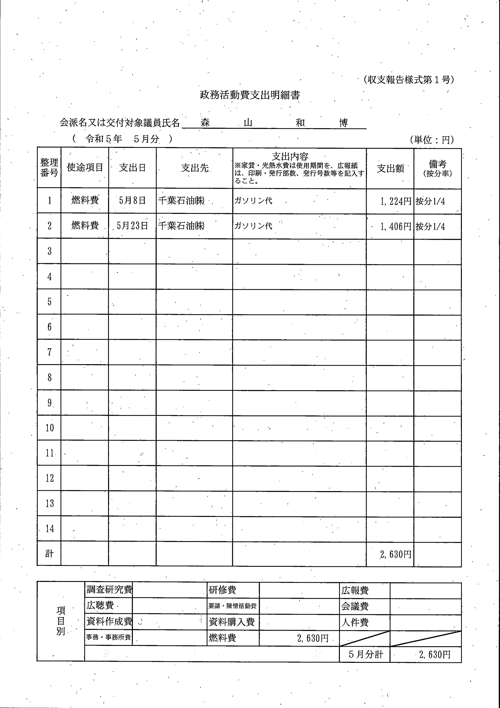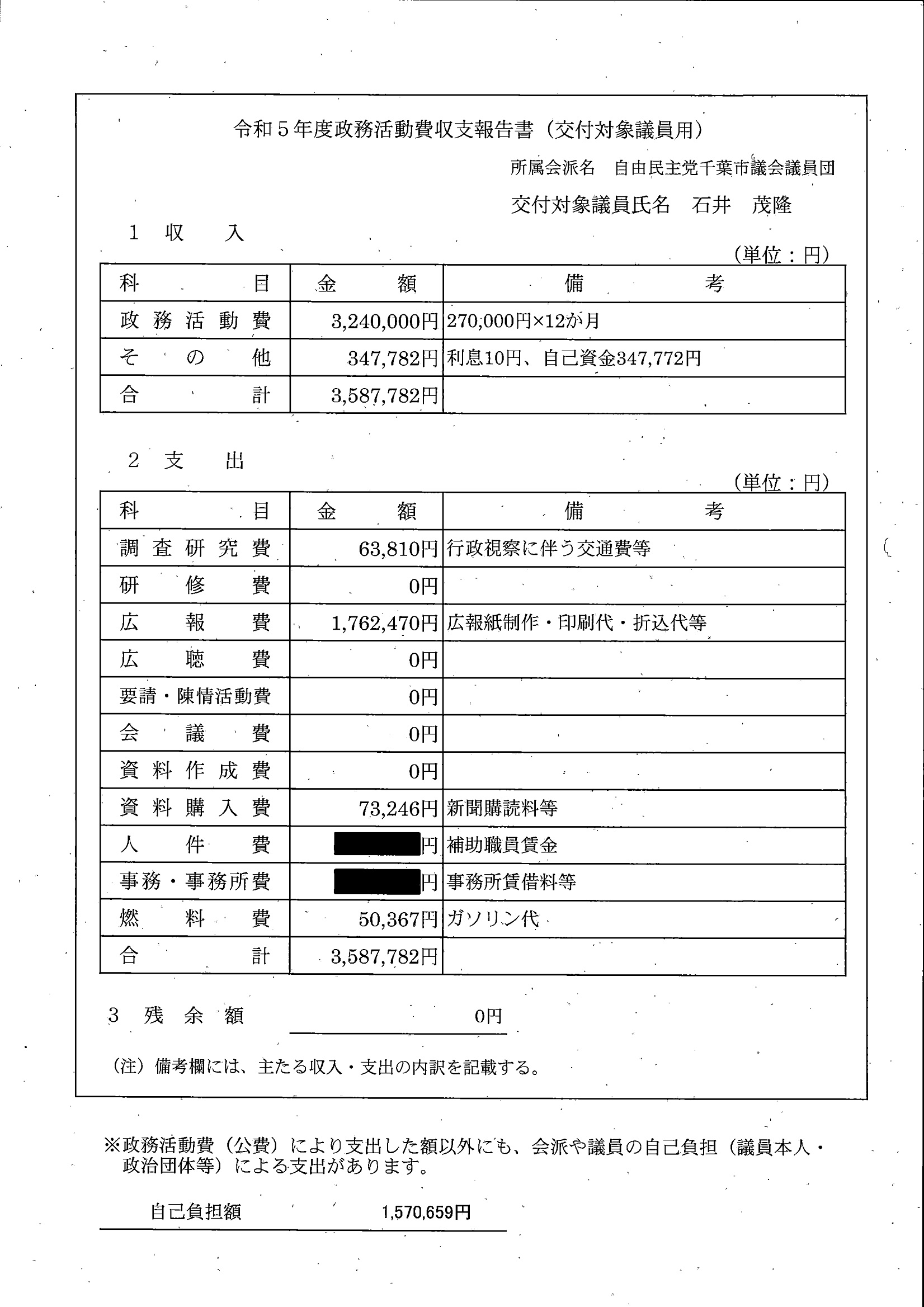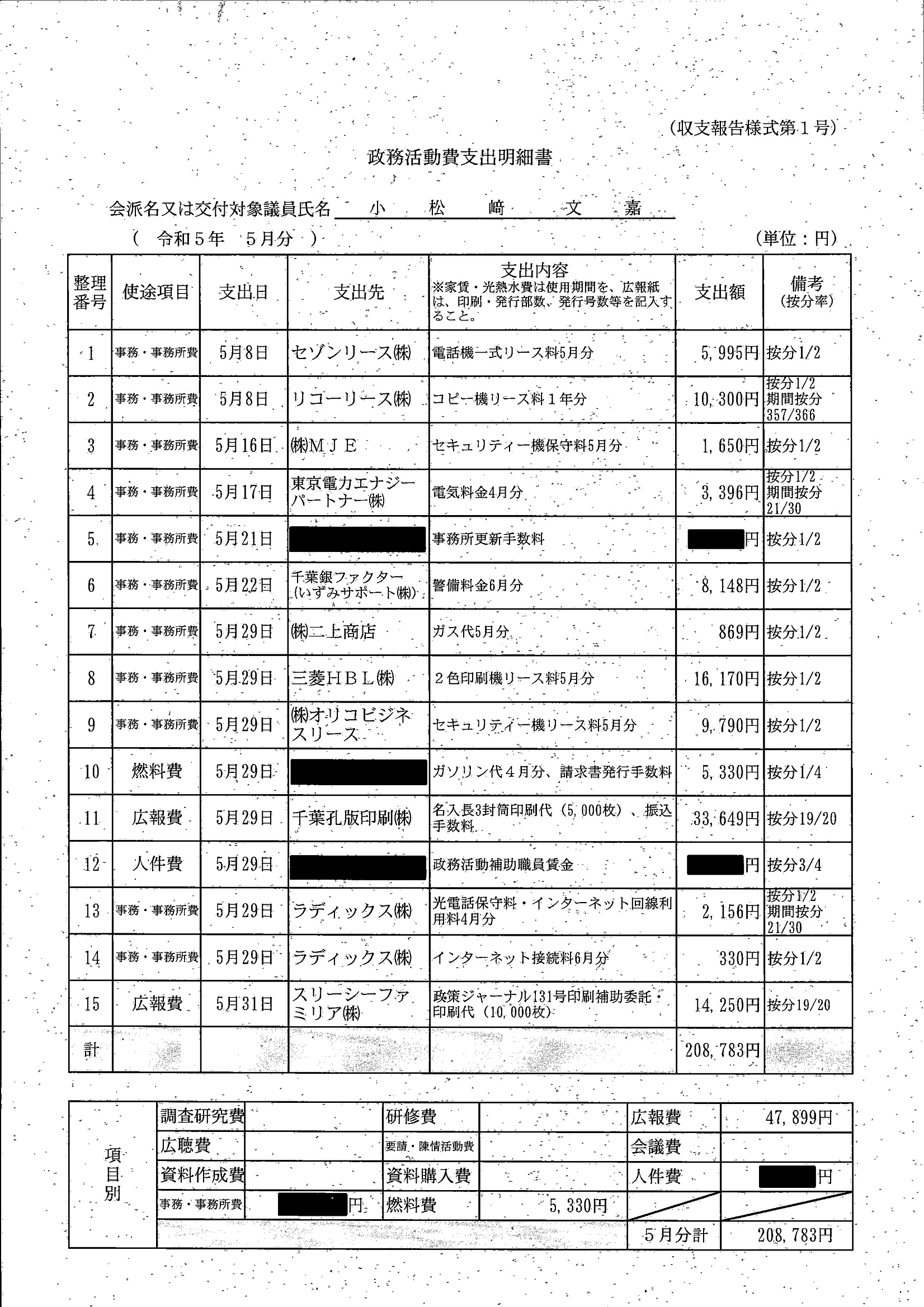 千葉市議会トップページ > 広報・情報公開 > 政務活動費 > 令和5年度交付分(政務活動費収支報告書)