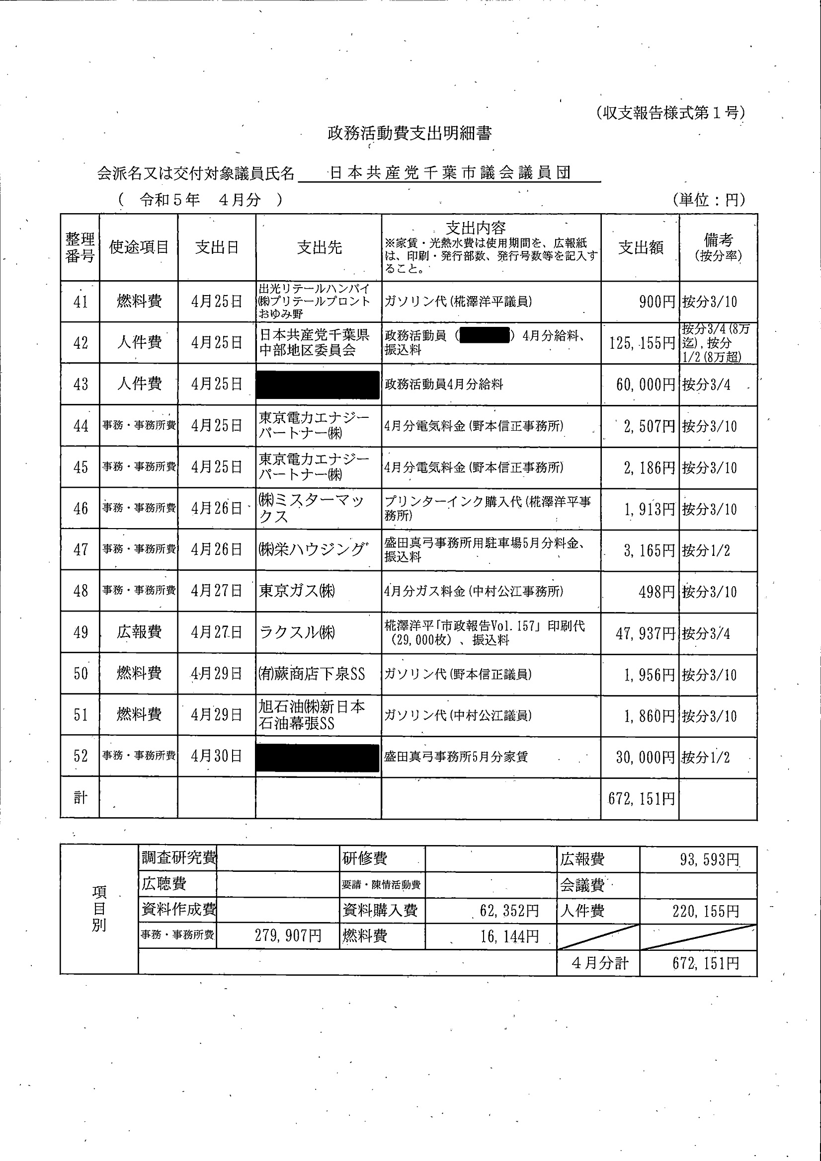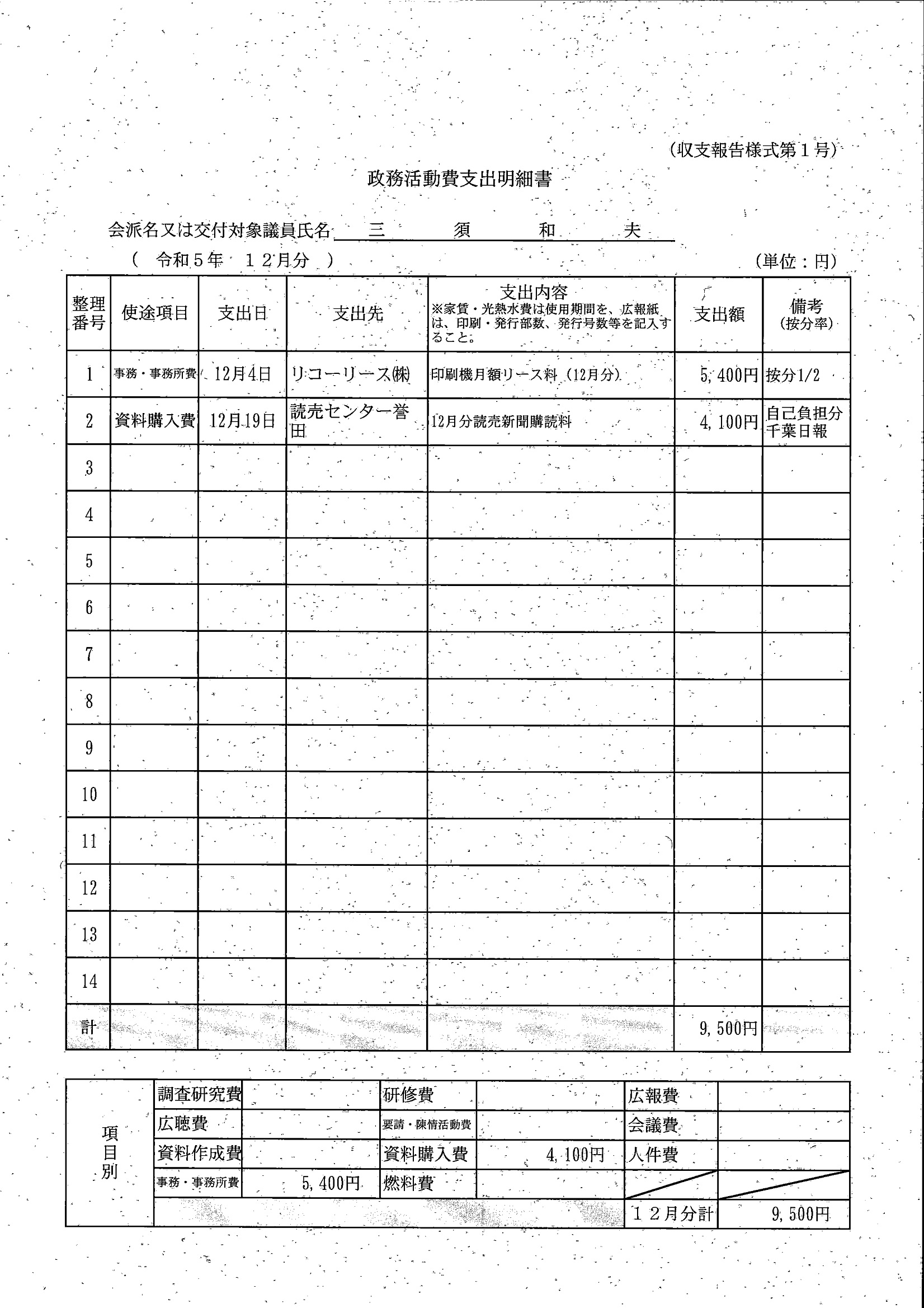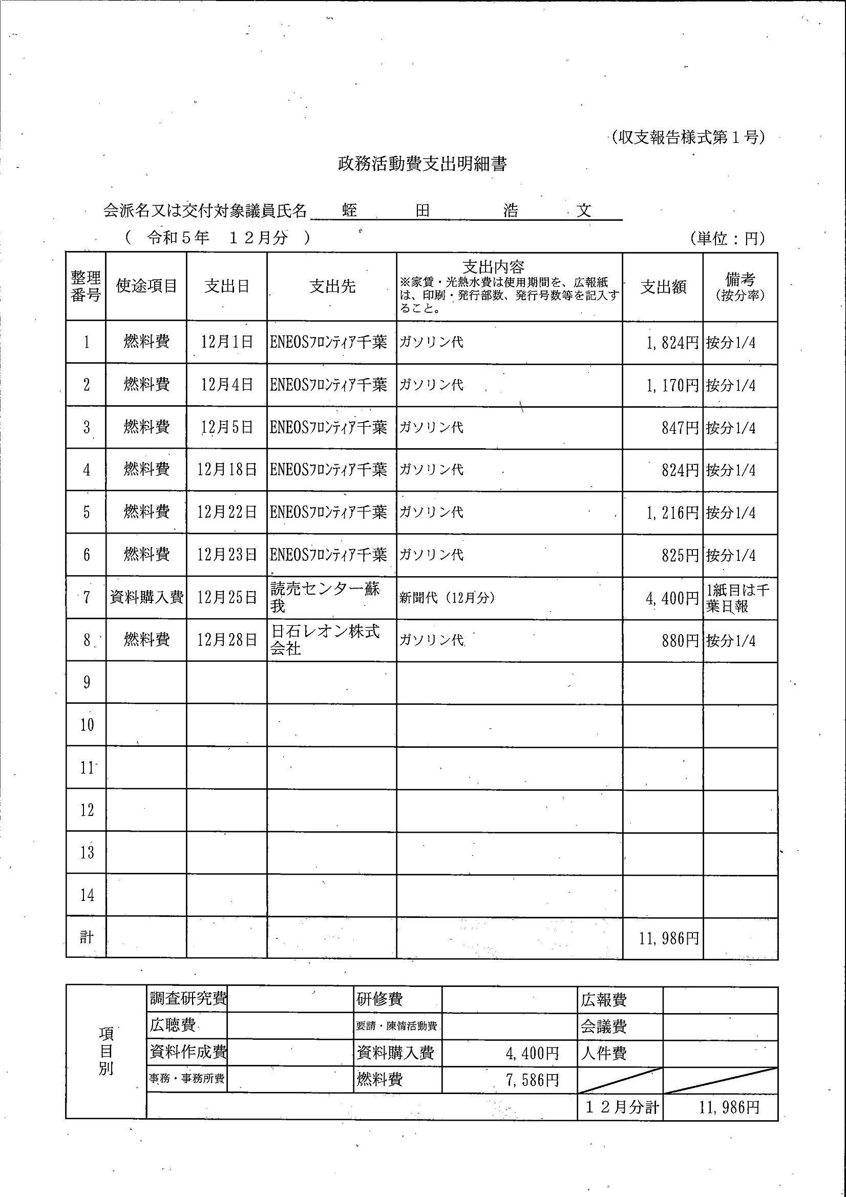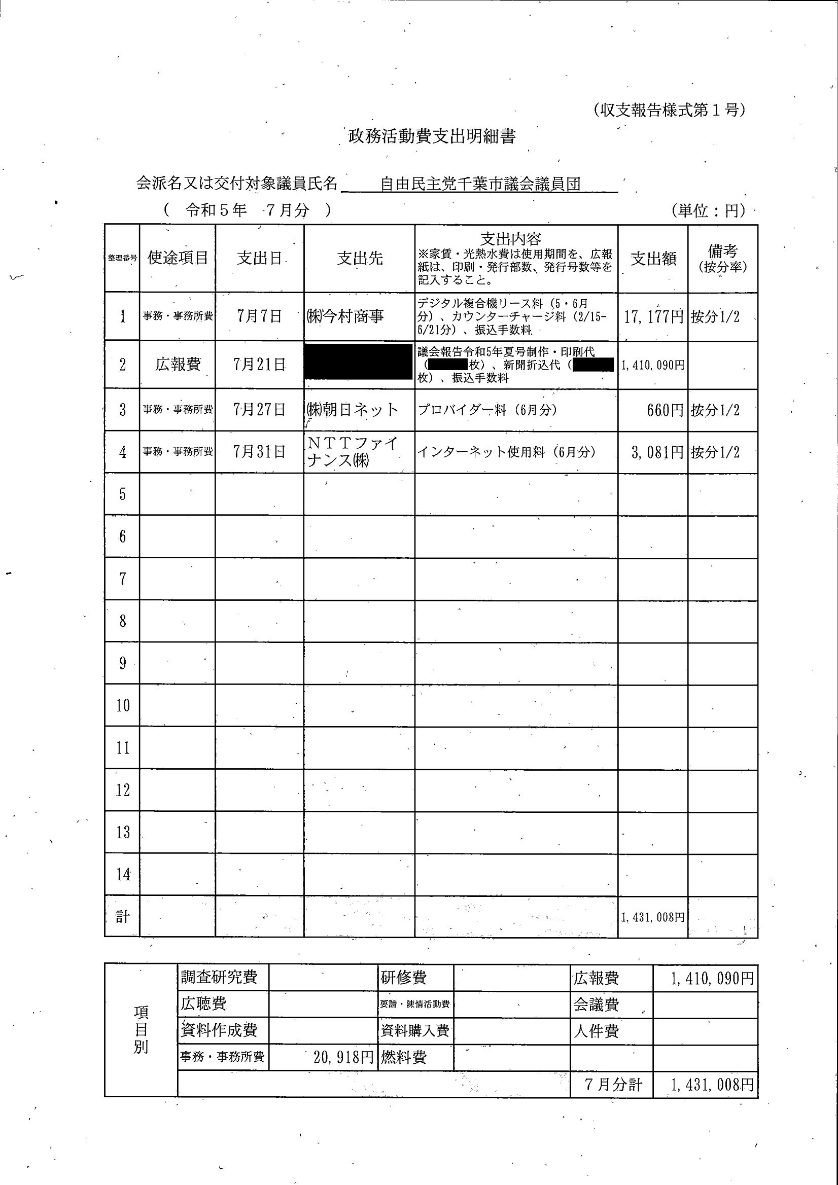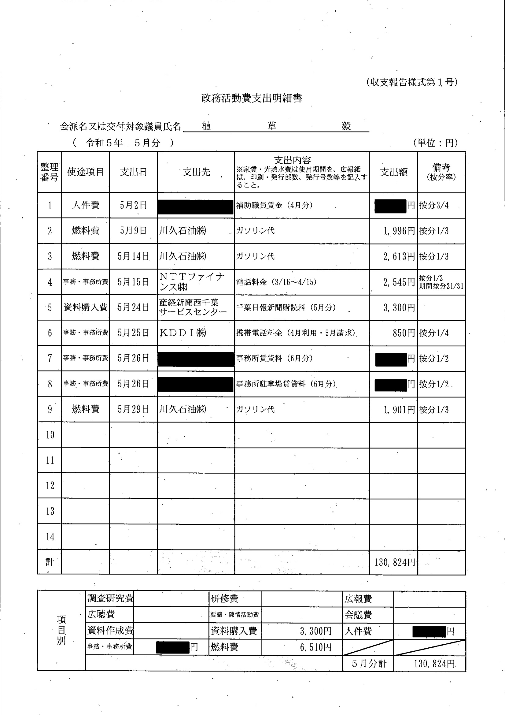 千葉市議会トップページ > 広報・情報公開 > 政務活動費 > 令和5年度交付分(政務活動費収支報告書)