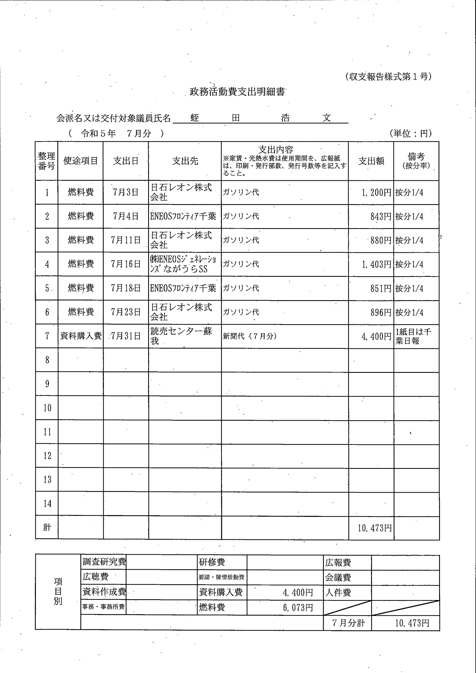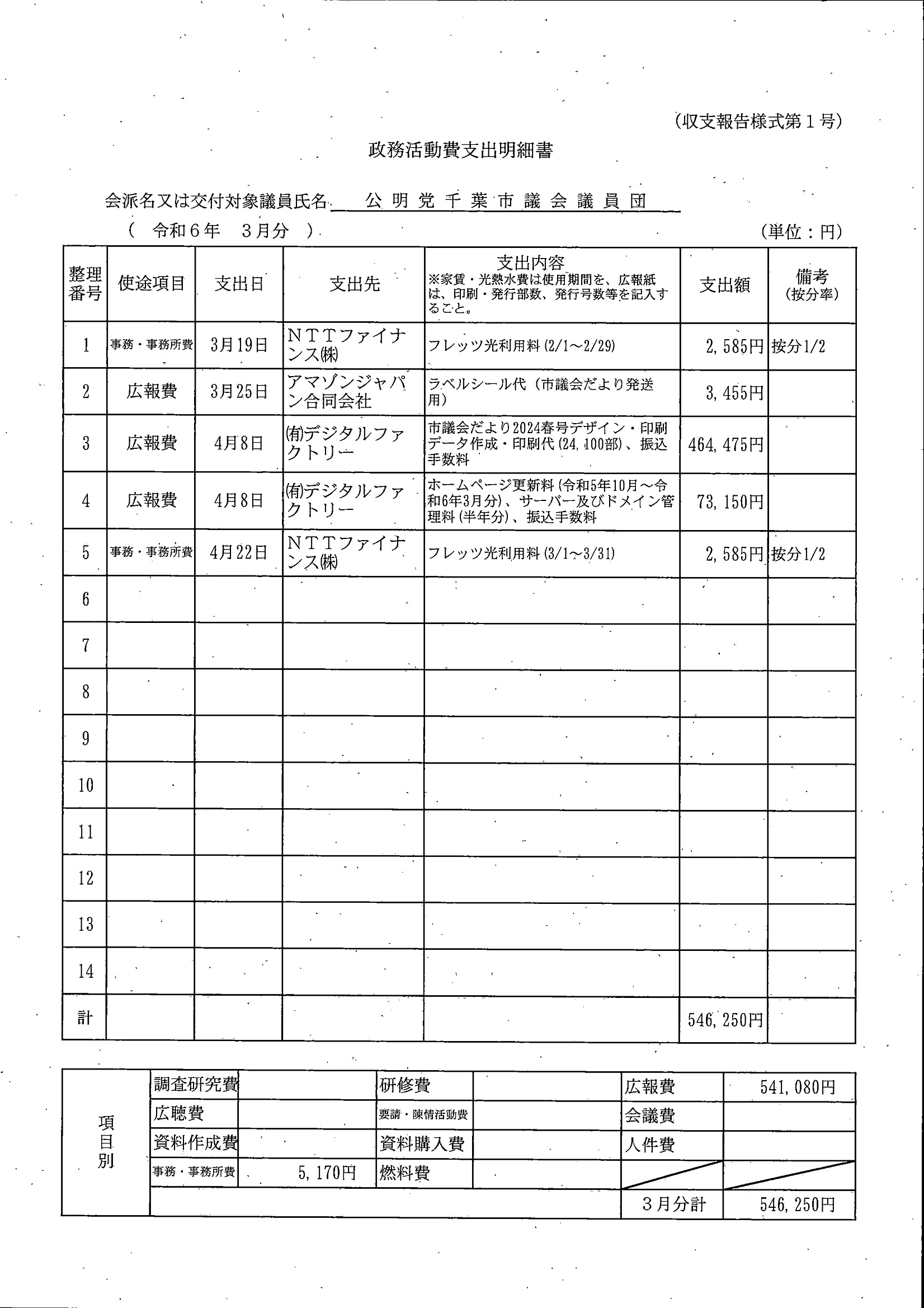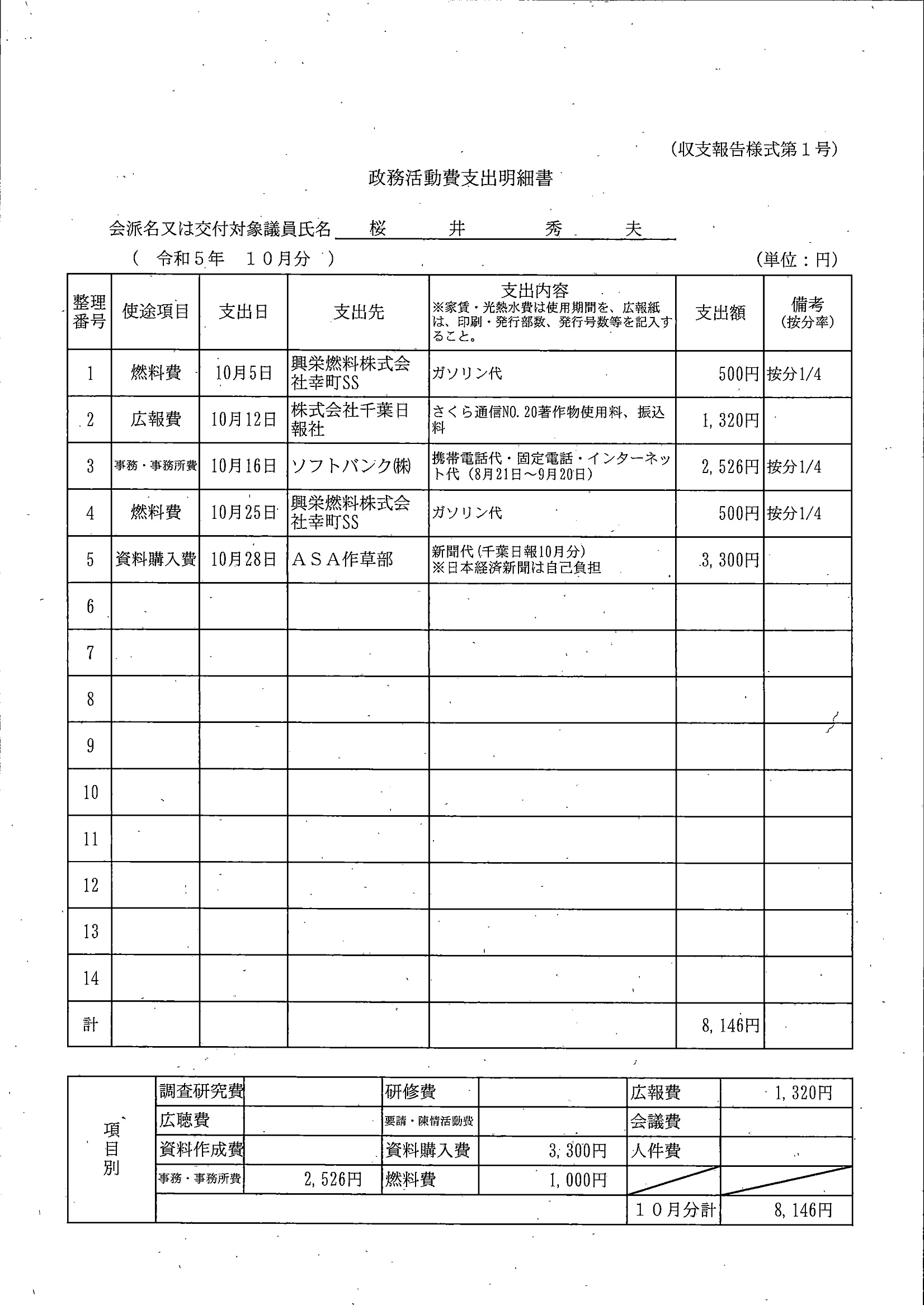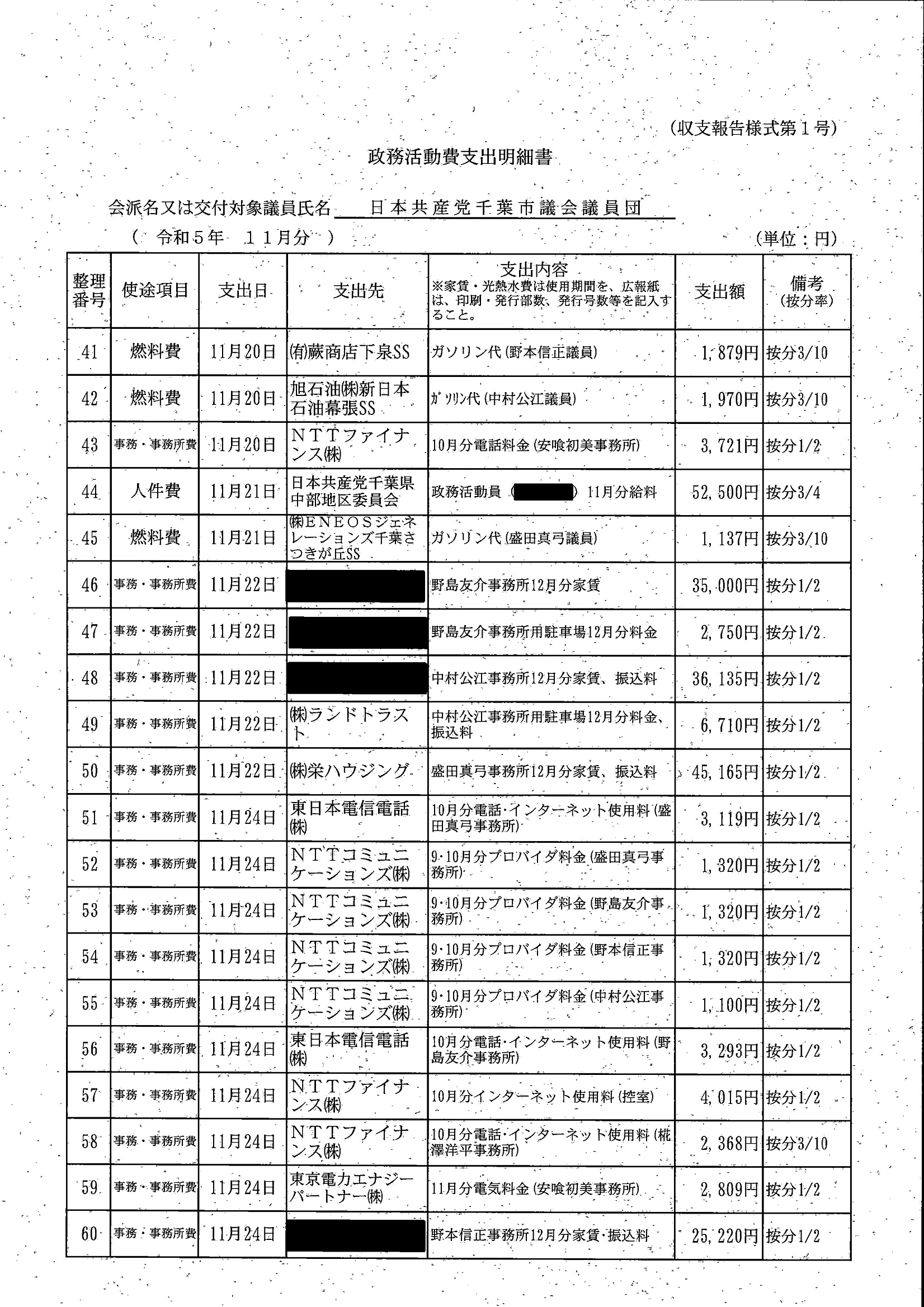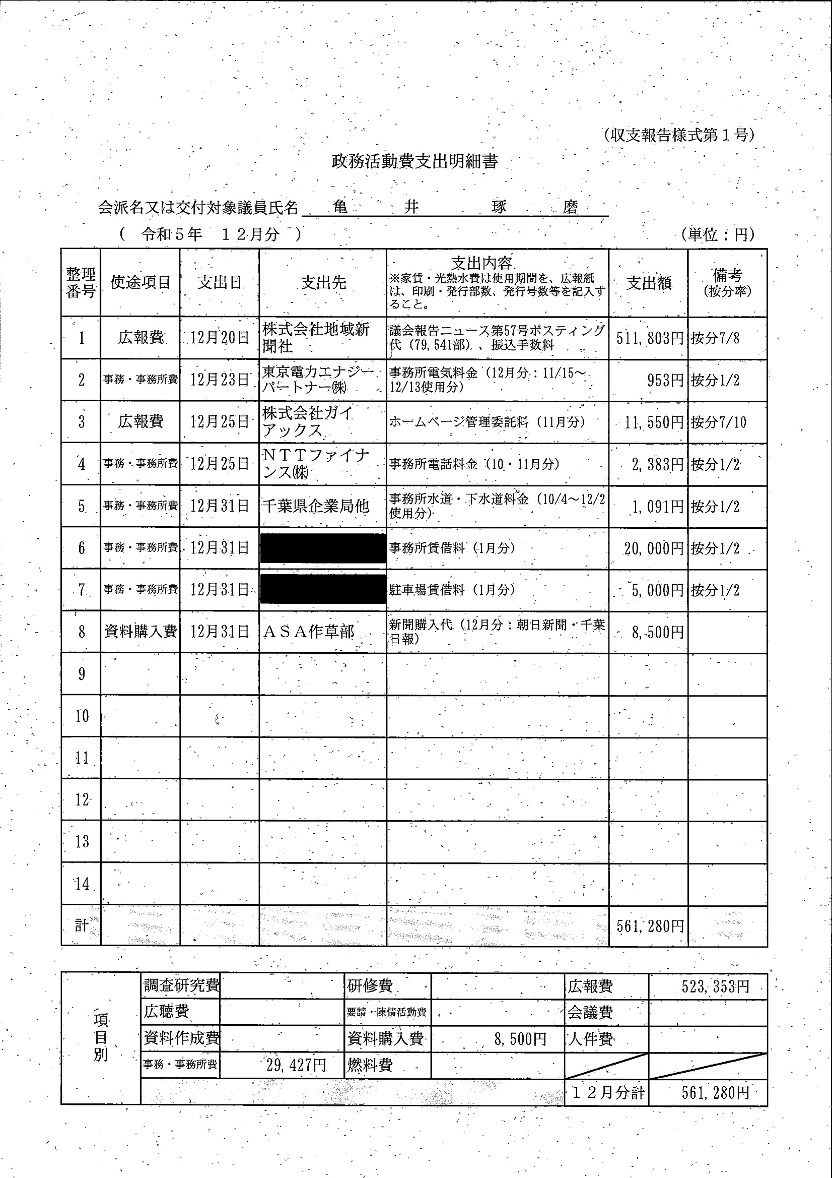 千葉市議会トップページ > 広報・情報公開 > 政務活動費 > 令和5年度交付分(政務活動費収支報告書)