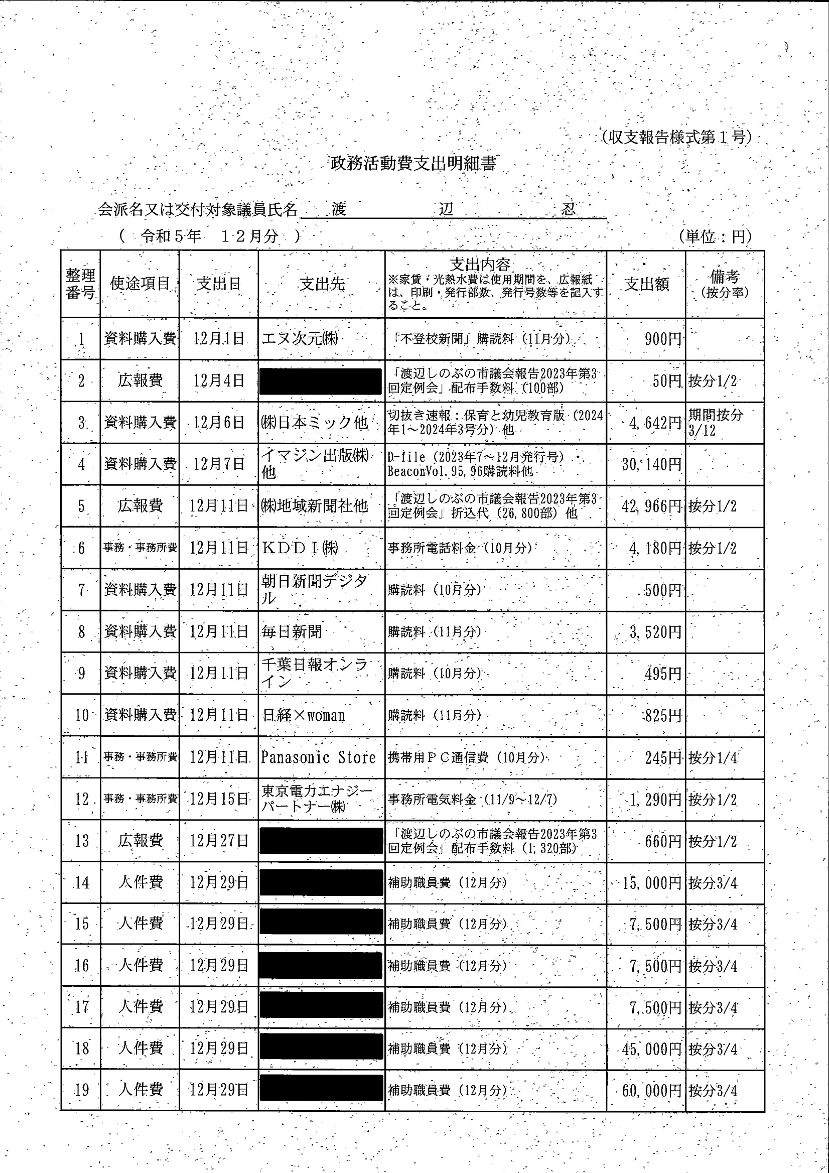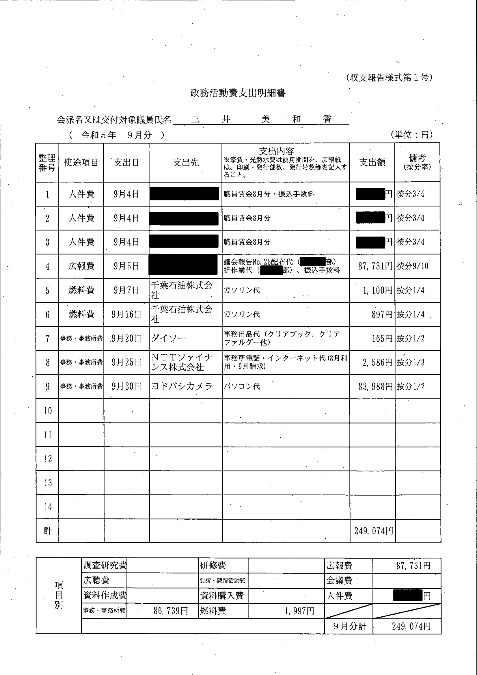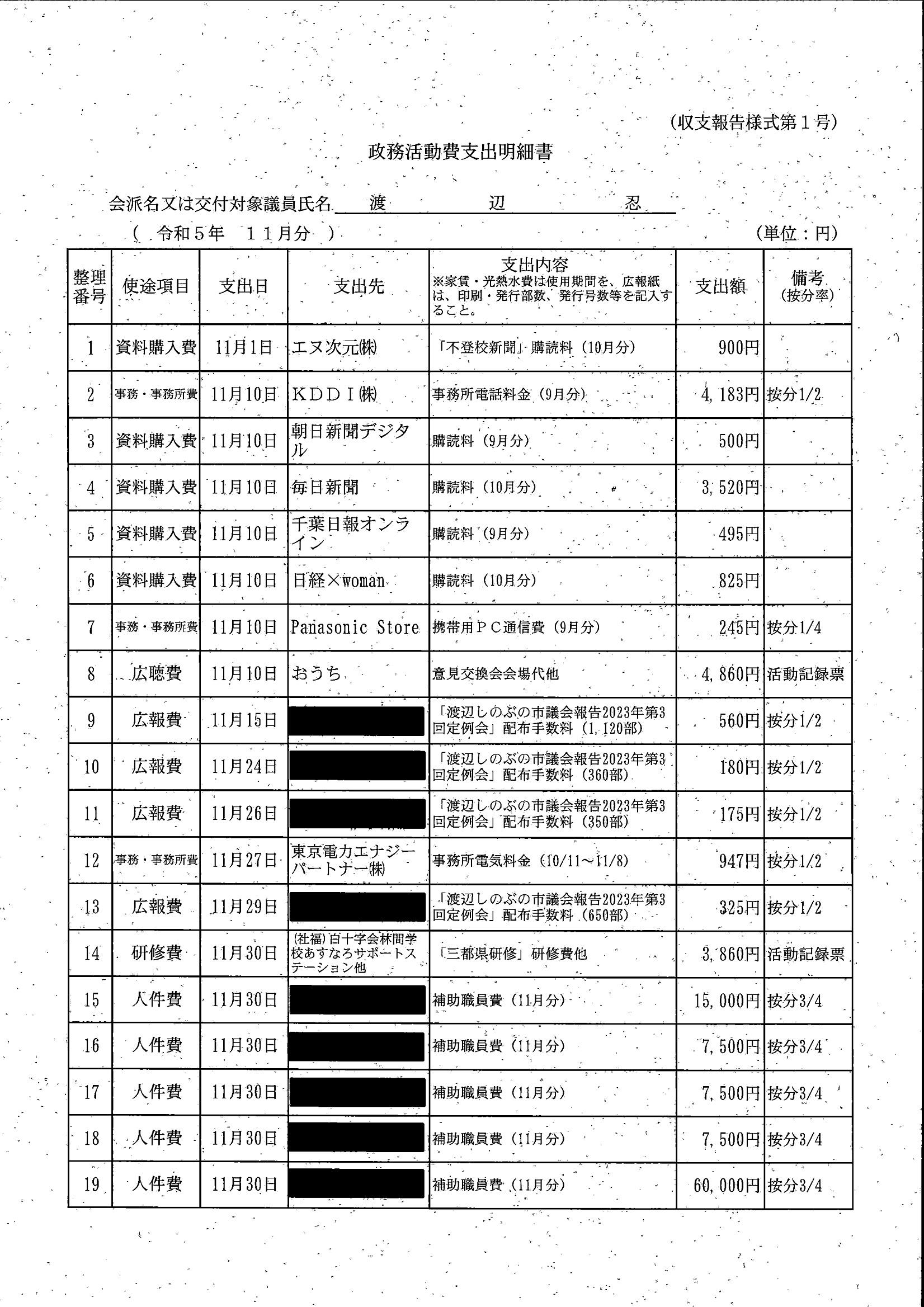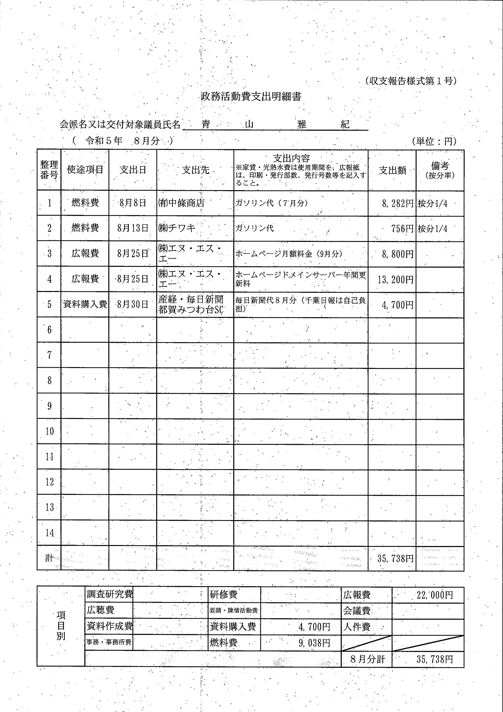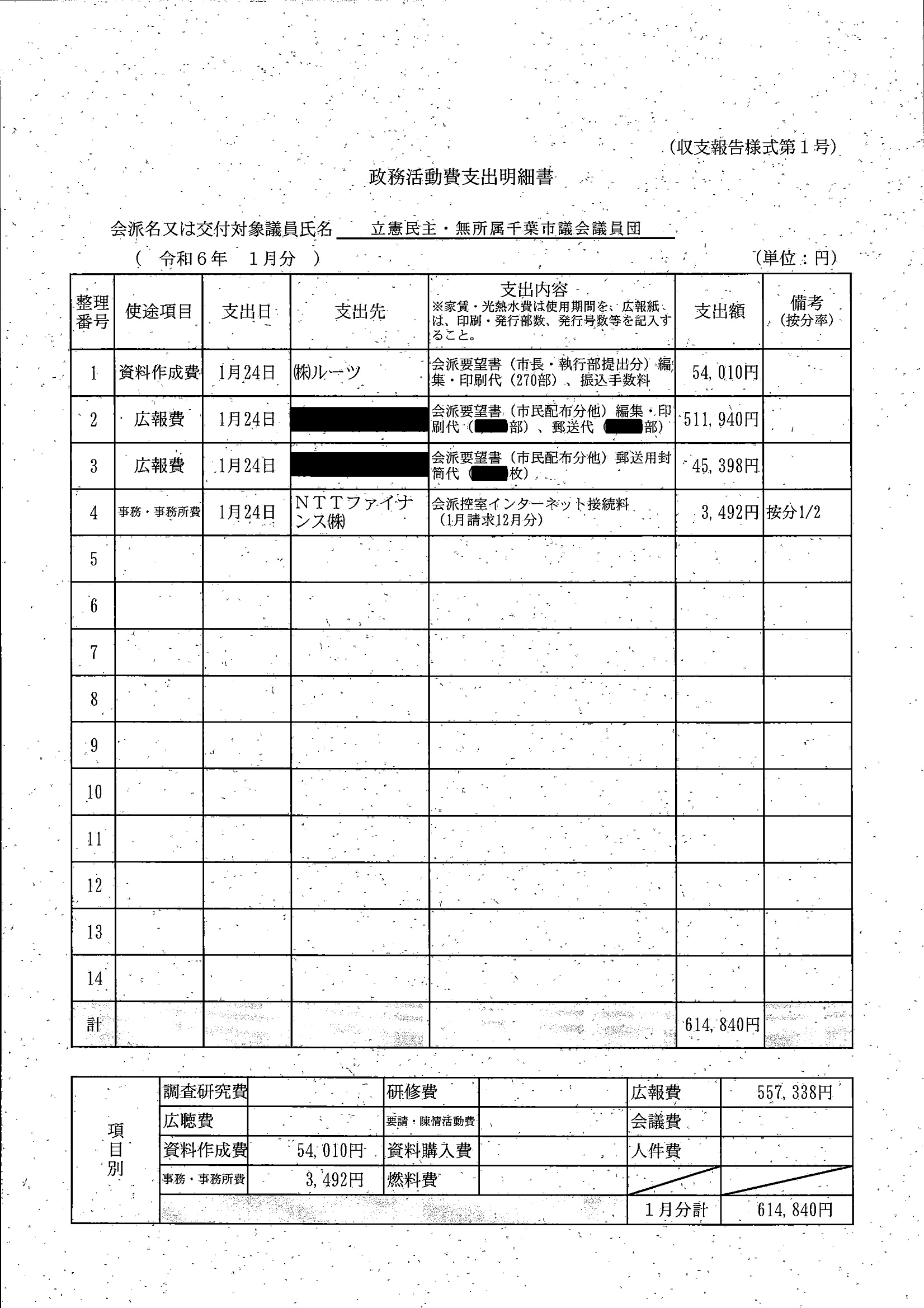 千葉市議会トップページ > 広報・情報公開 > 政務活動費 > 令和5年度交付分(政務活動費収支報告書)
