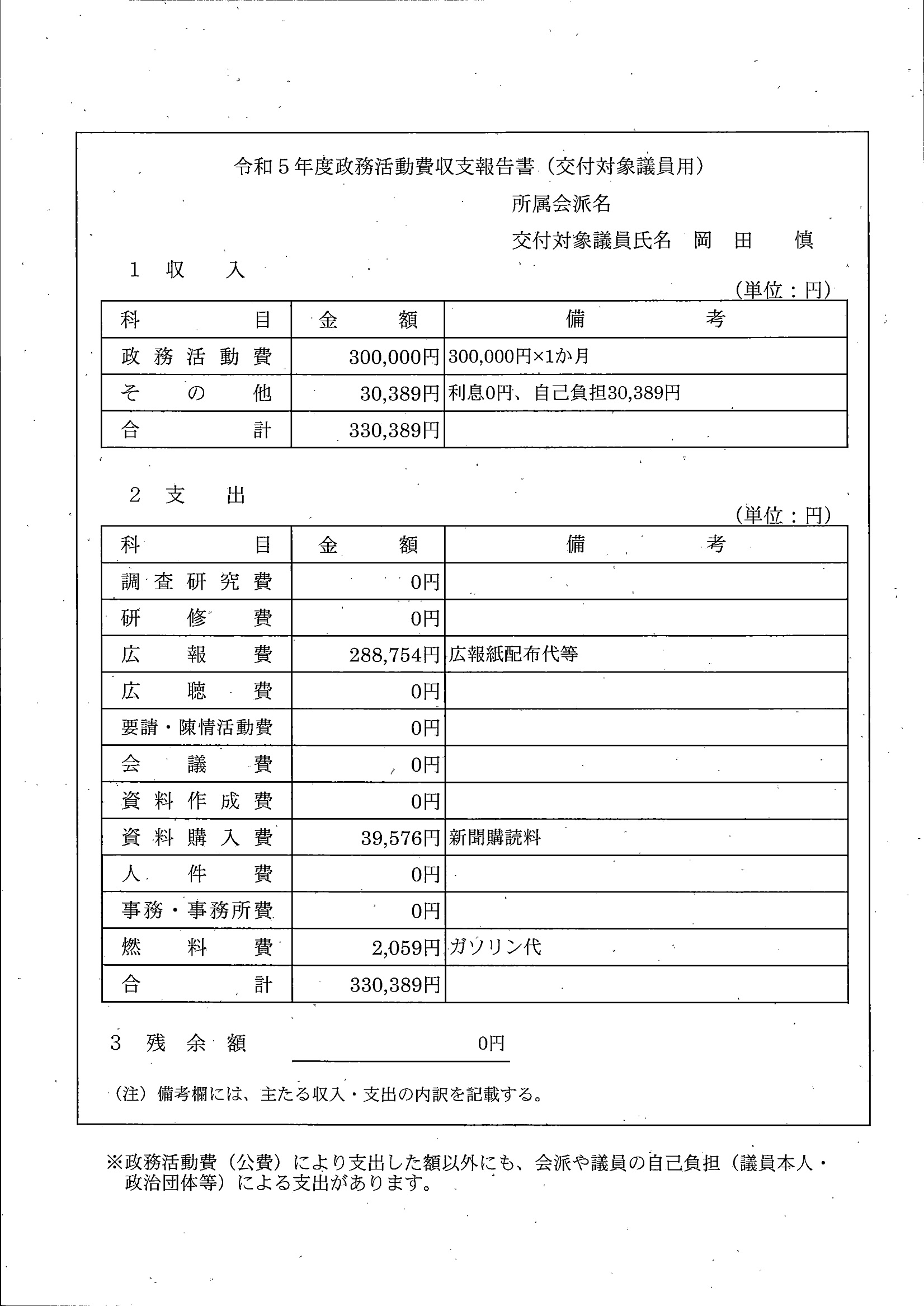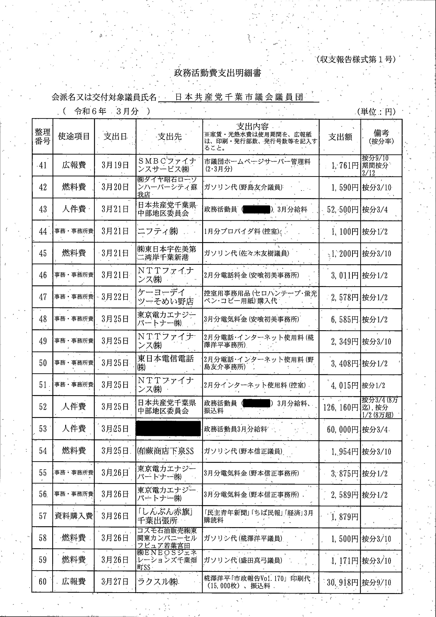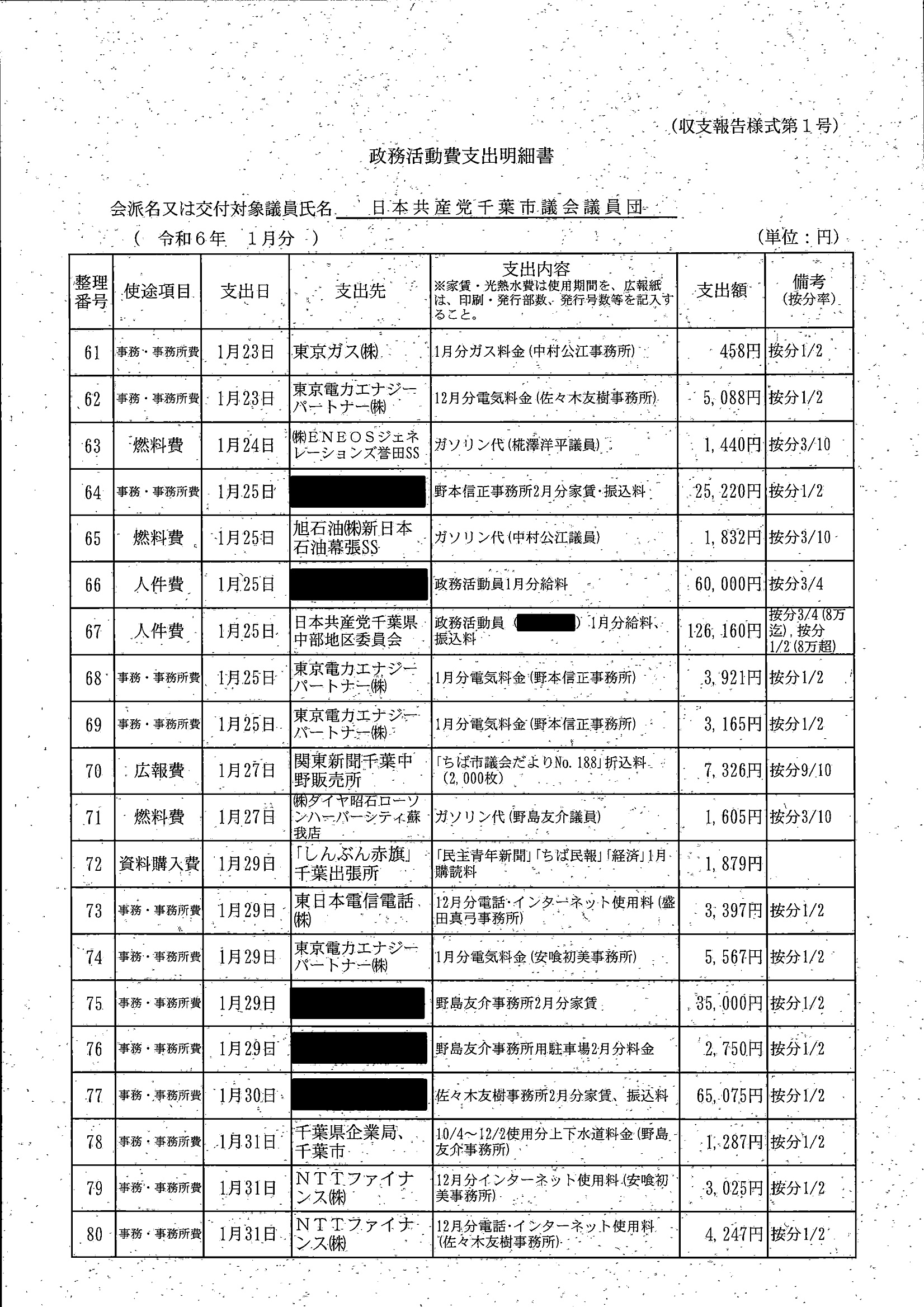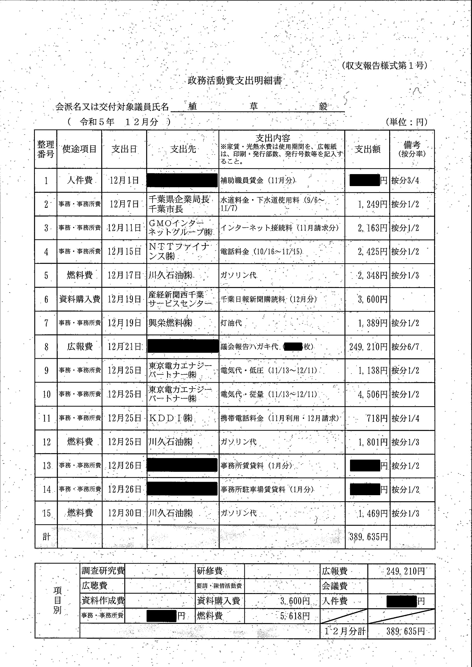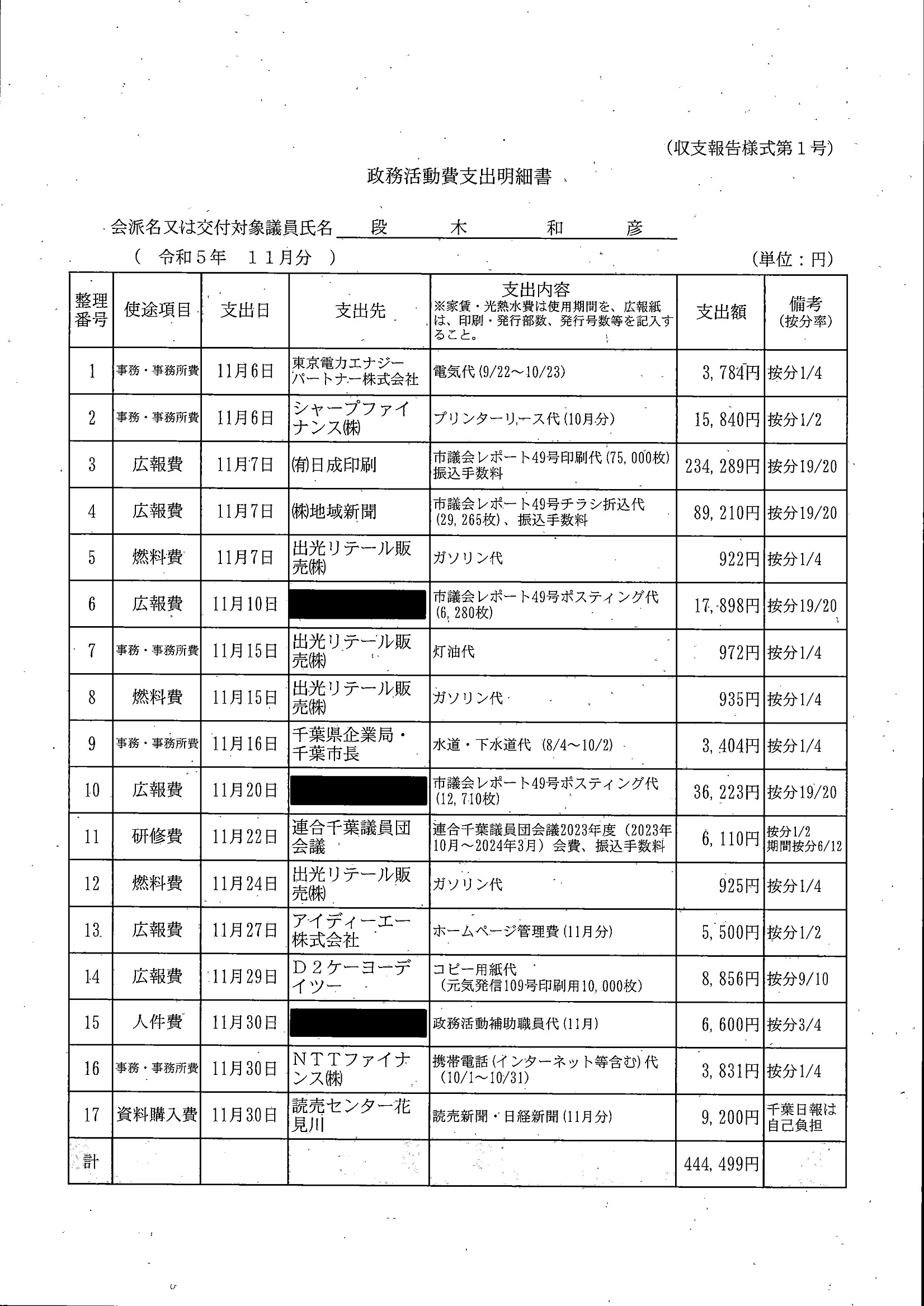 千葉市議会トップページ > 広報・情報公開 > 政務活動費 > 令和5年度交付分(政務活動費収支報告書)