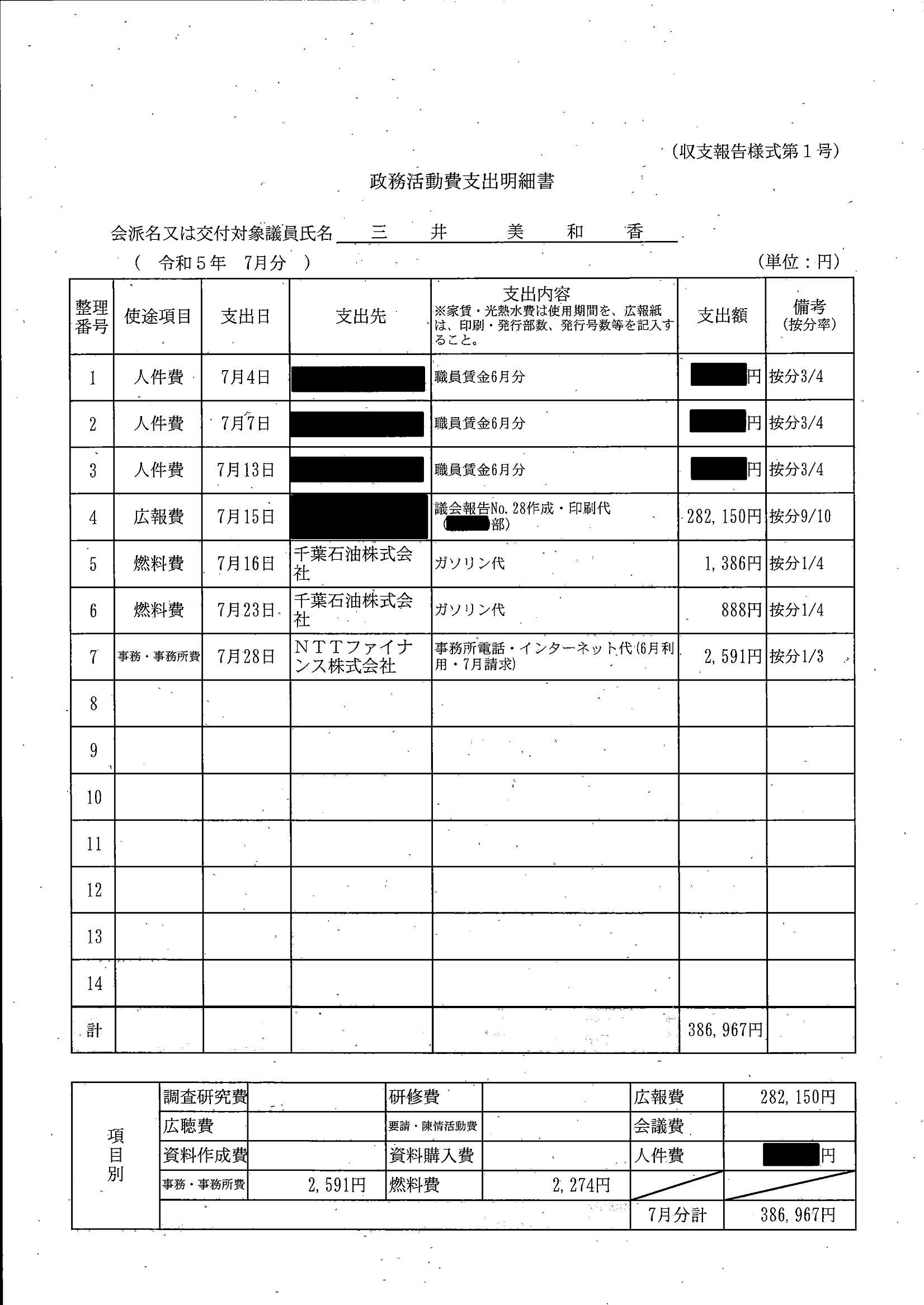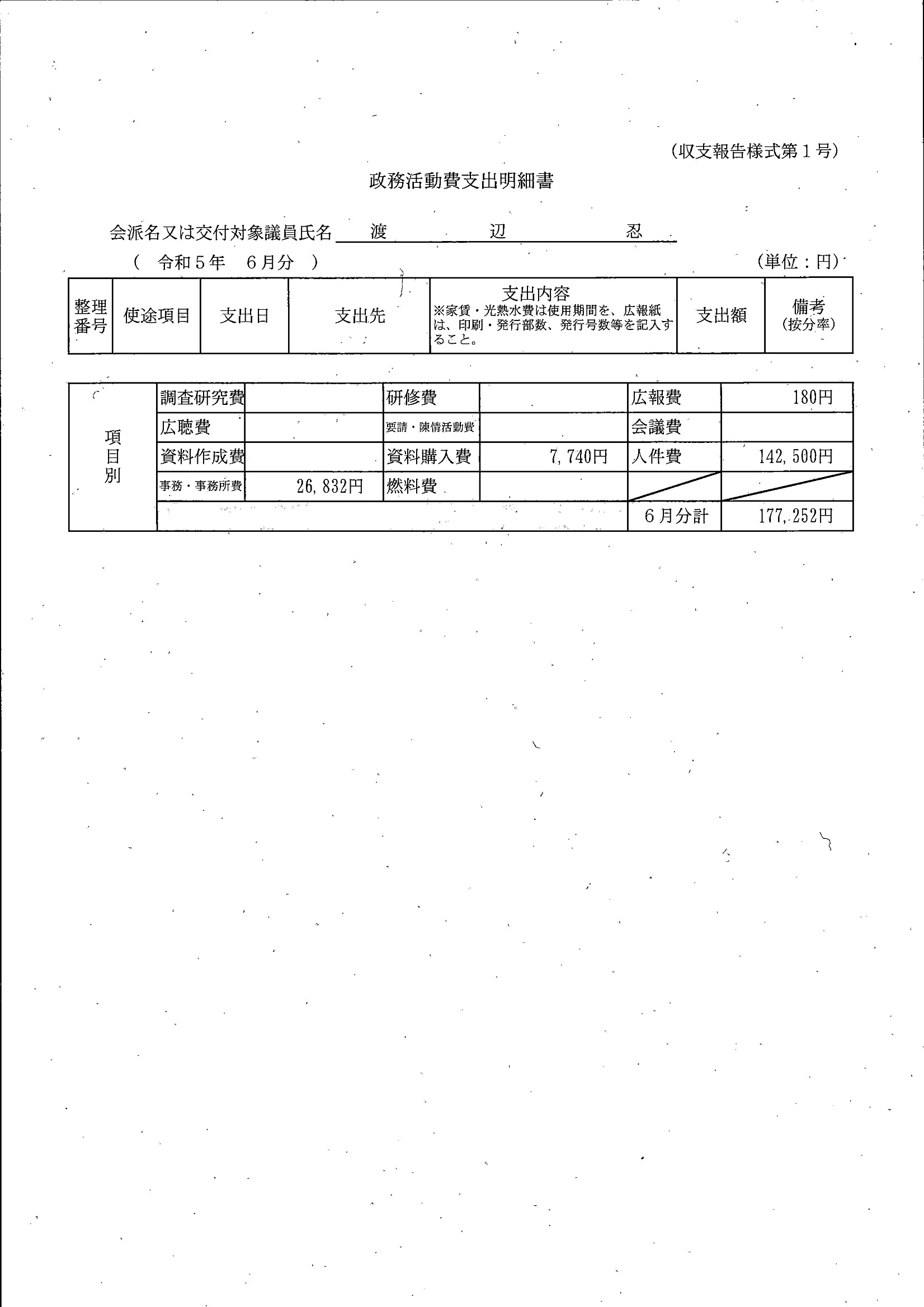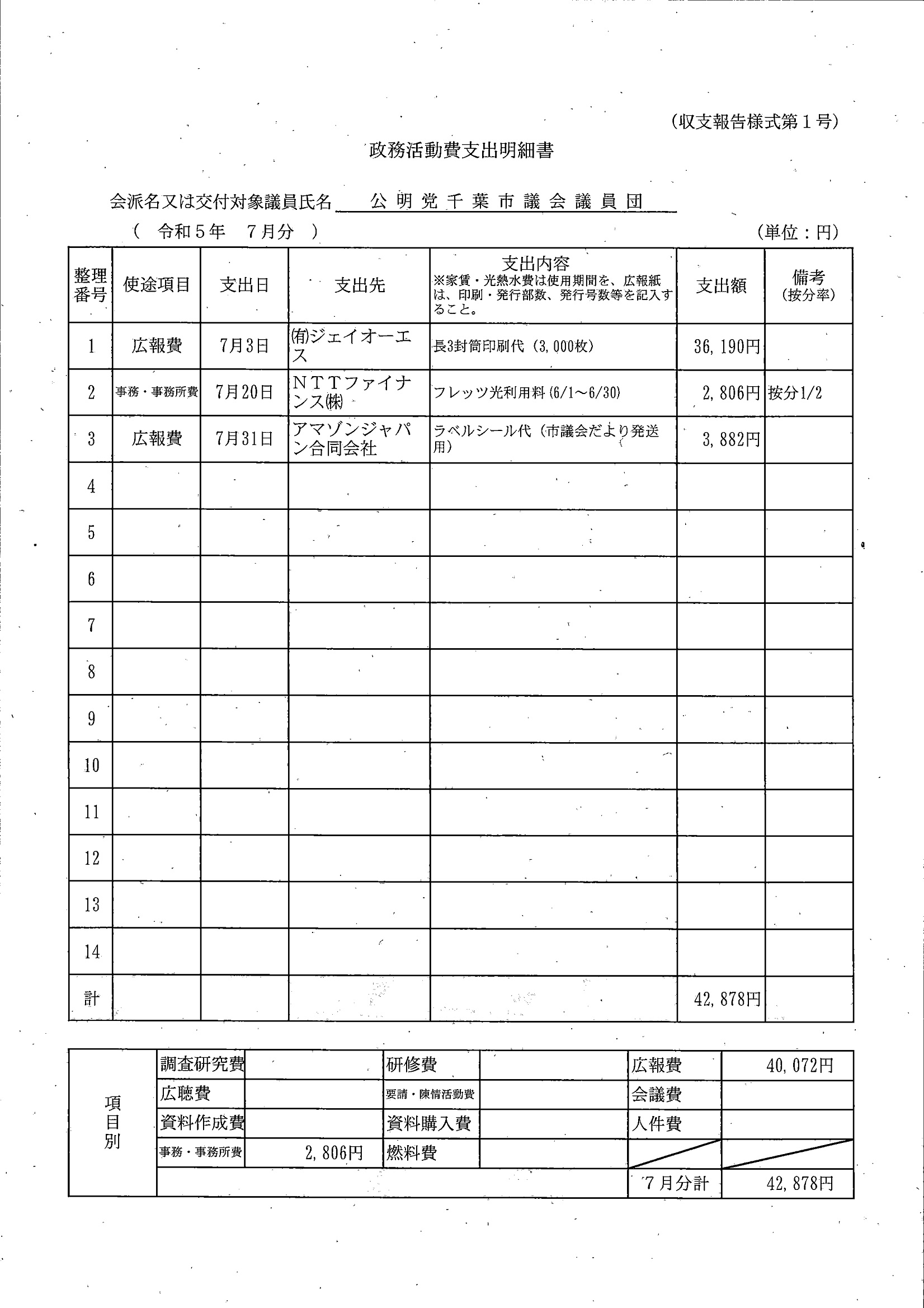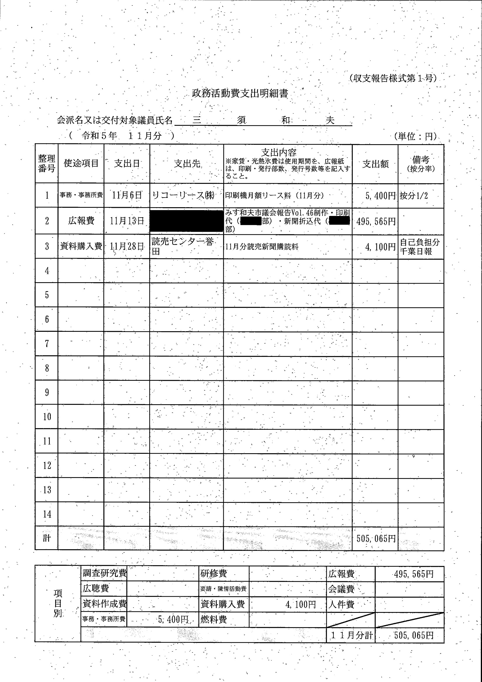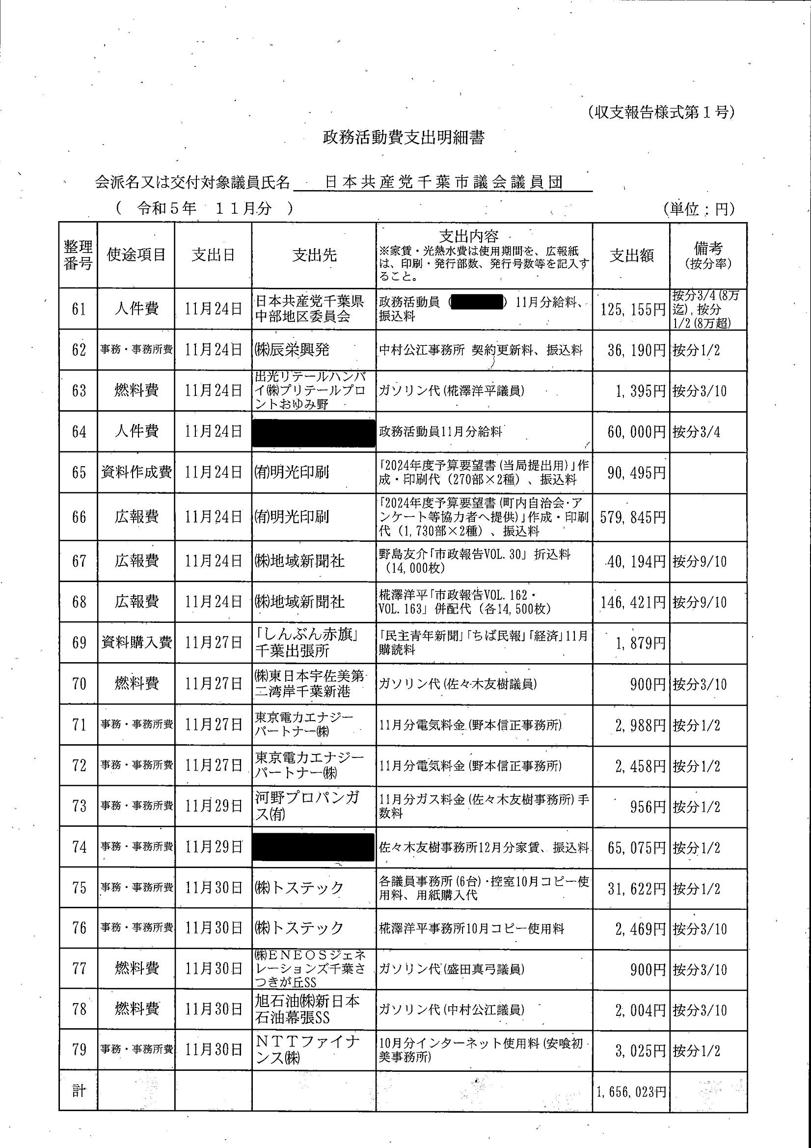 千葉市議会トップページ > 広報・情報公開 > 政務活動費 > 令和5年度交付分(政務活動費収支報告書)