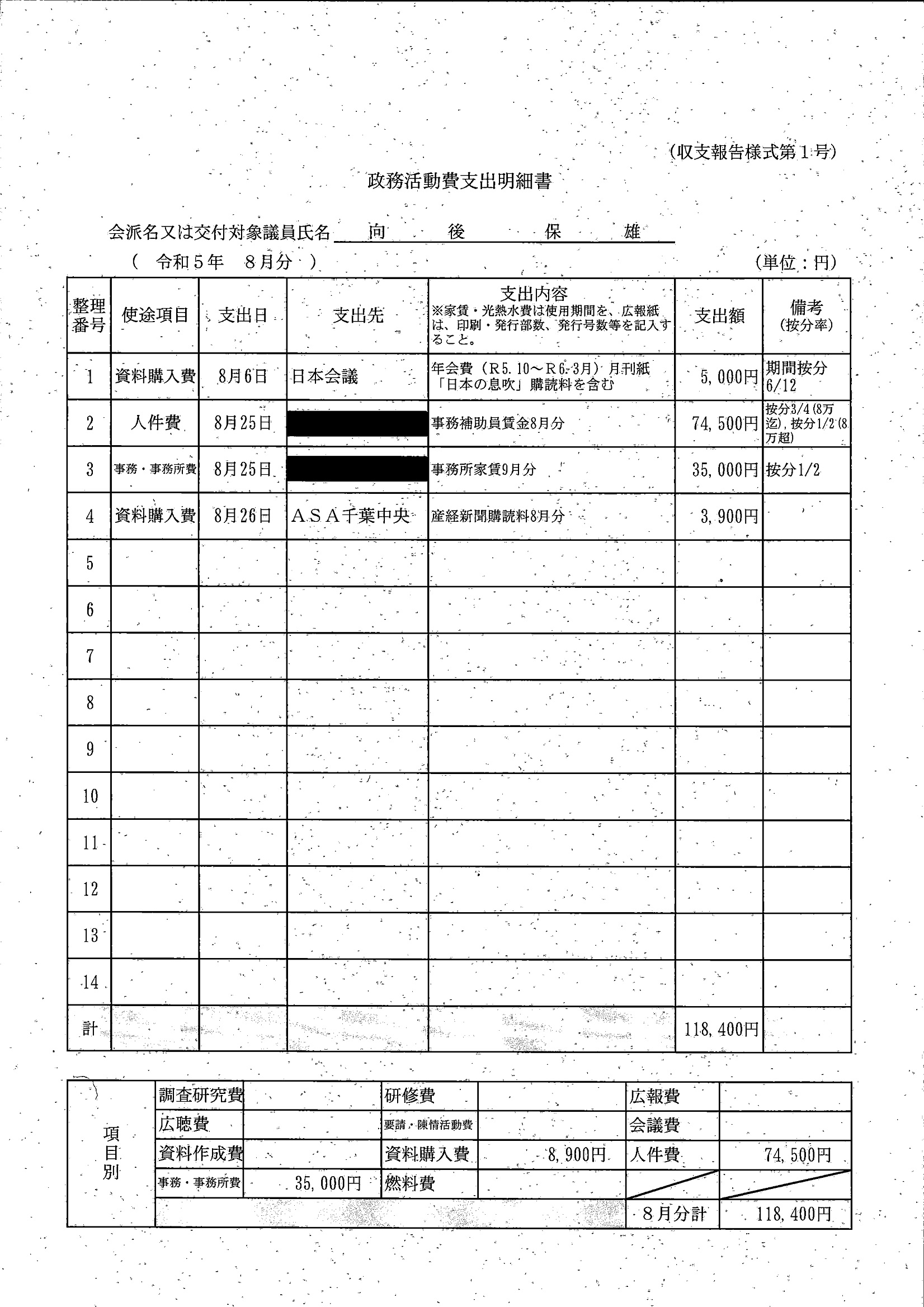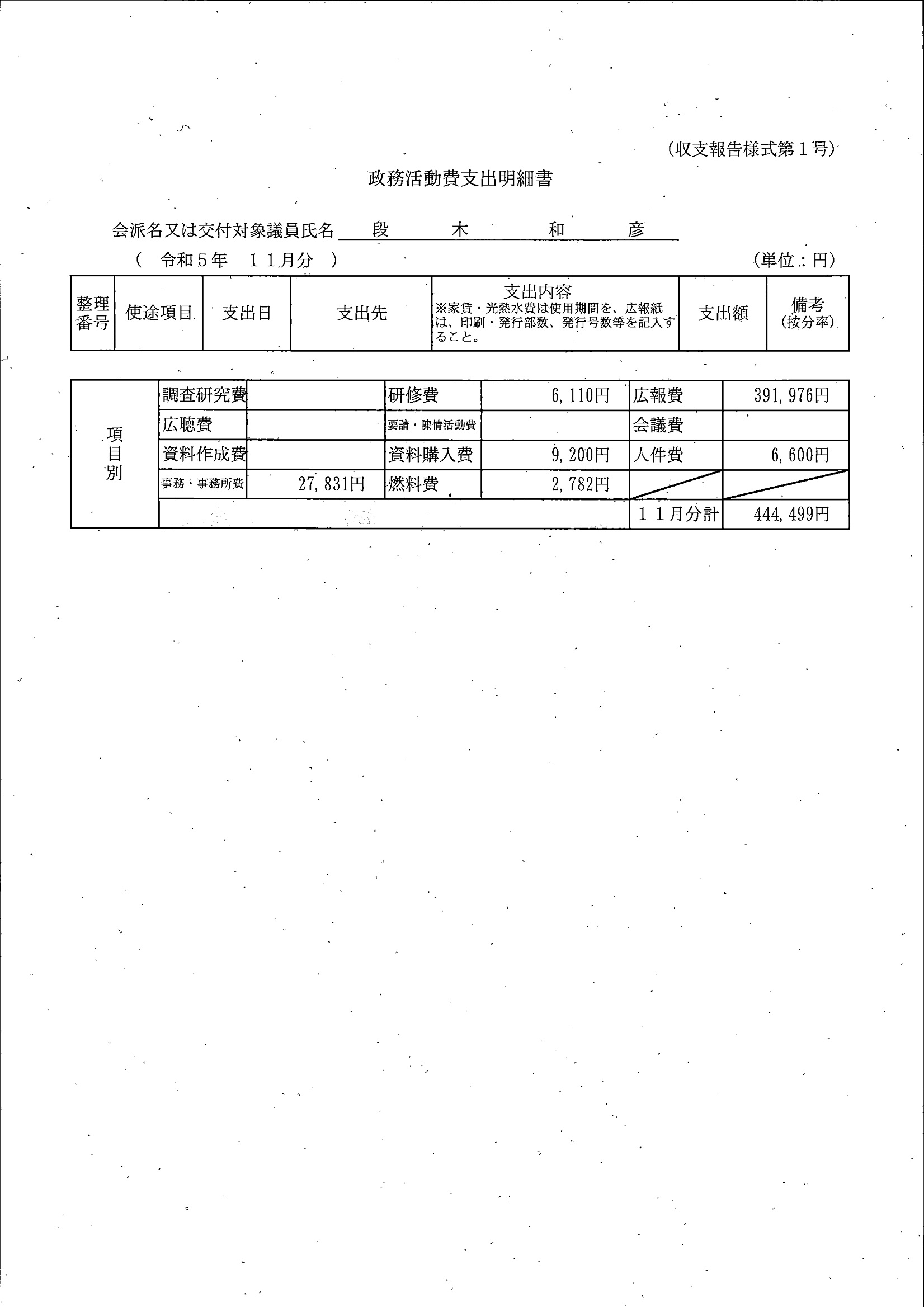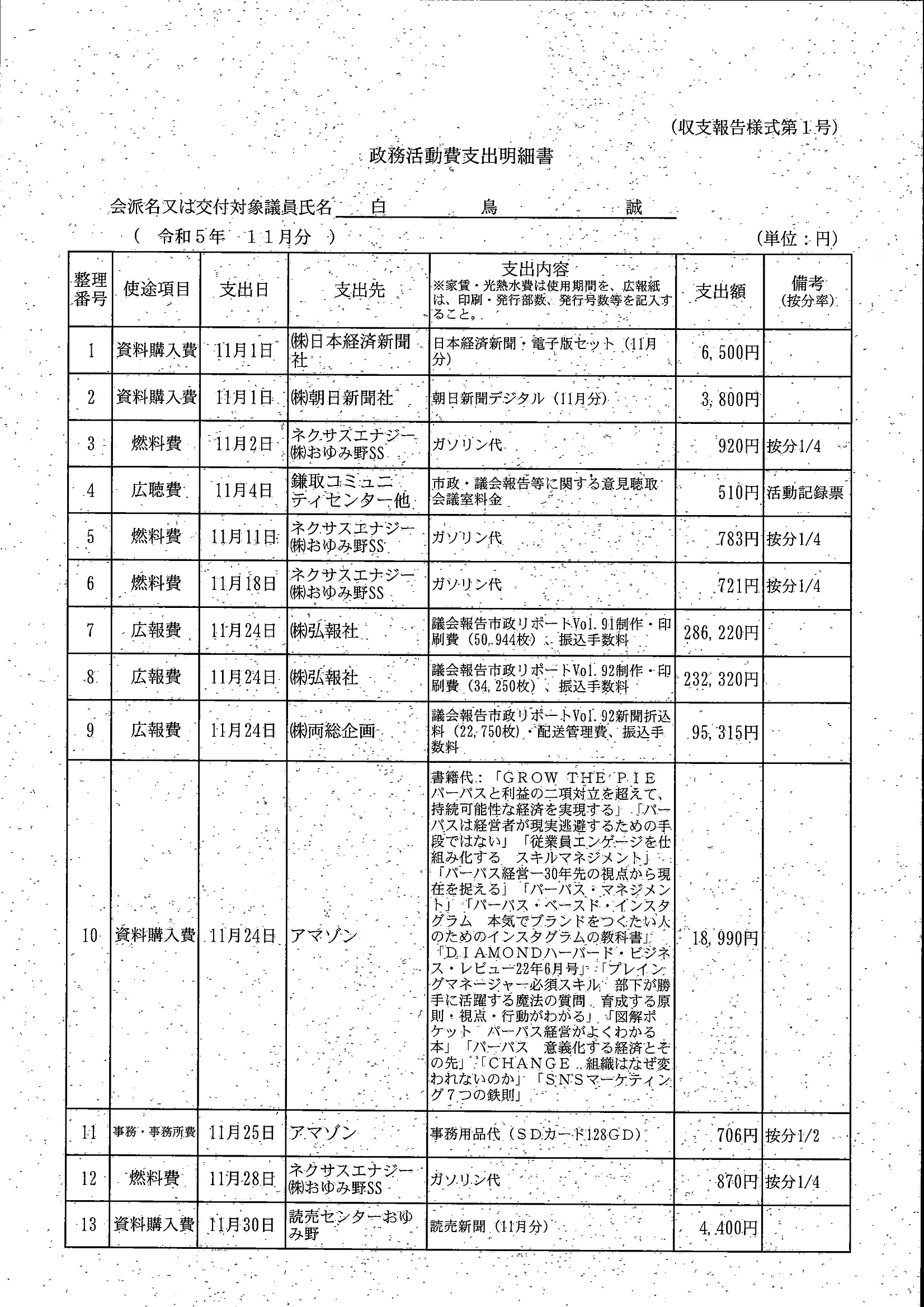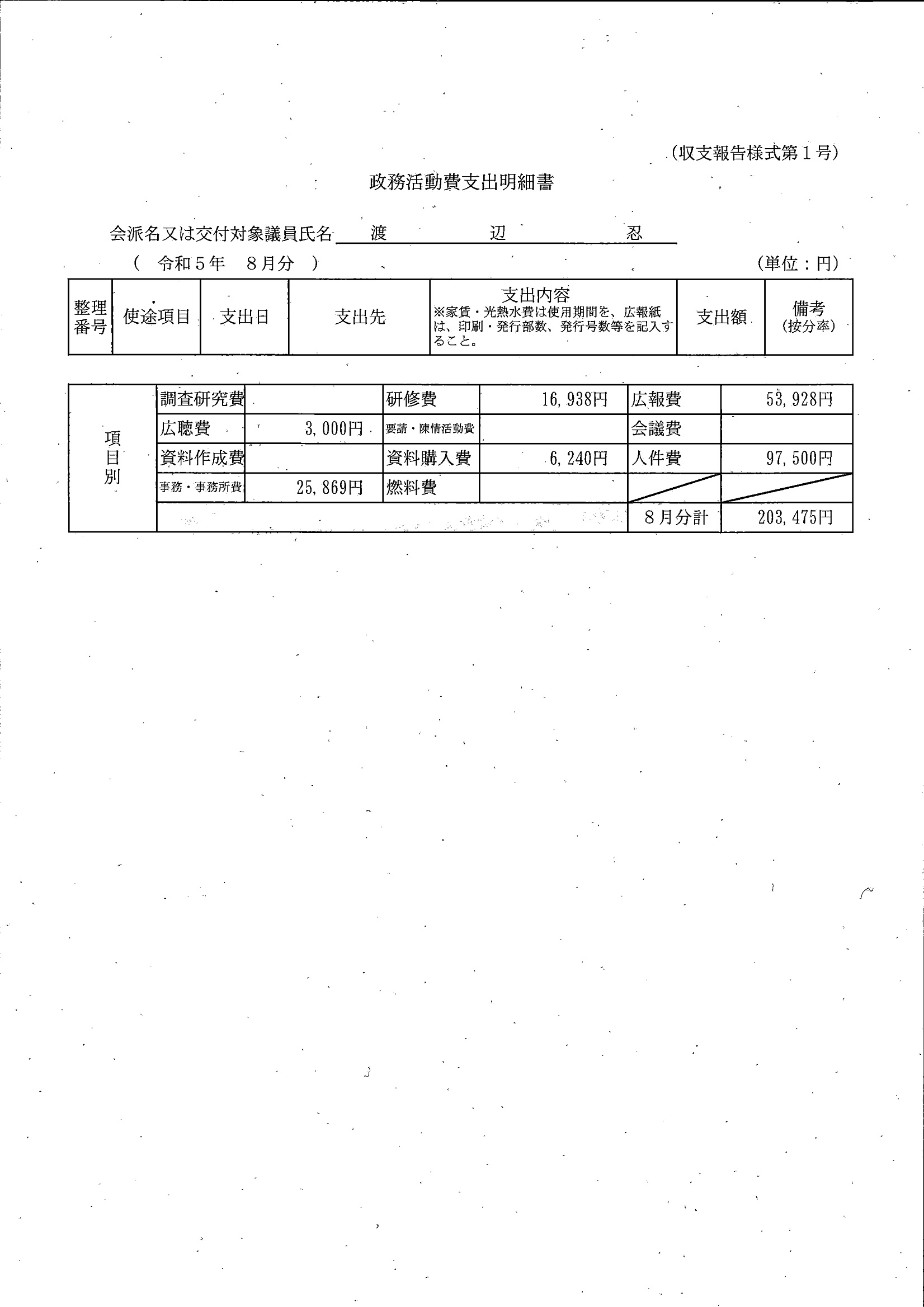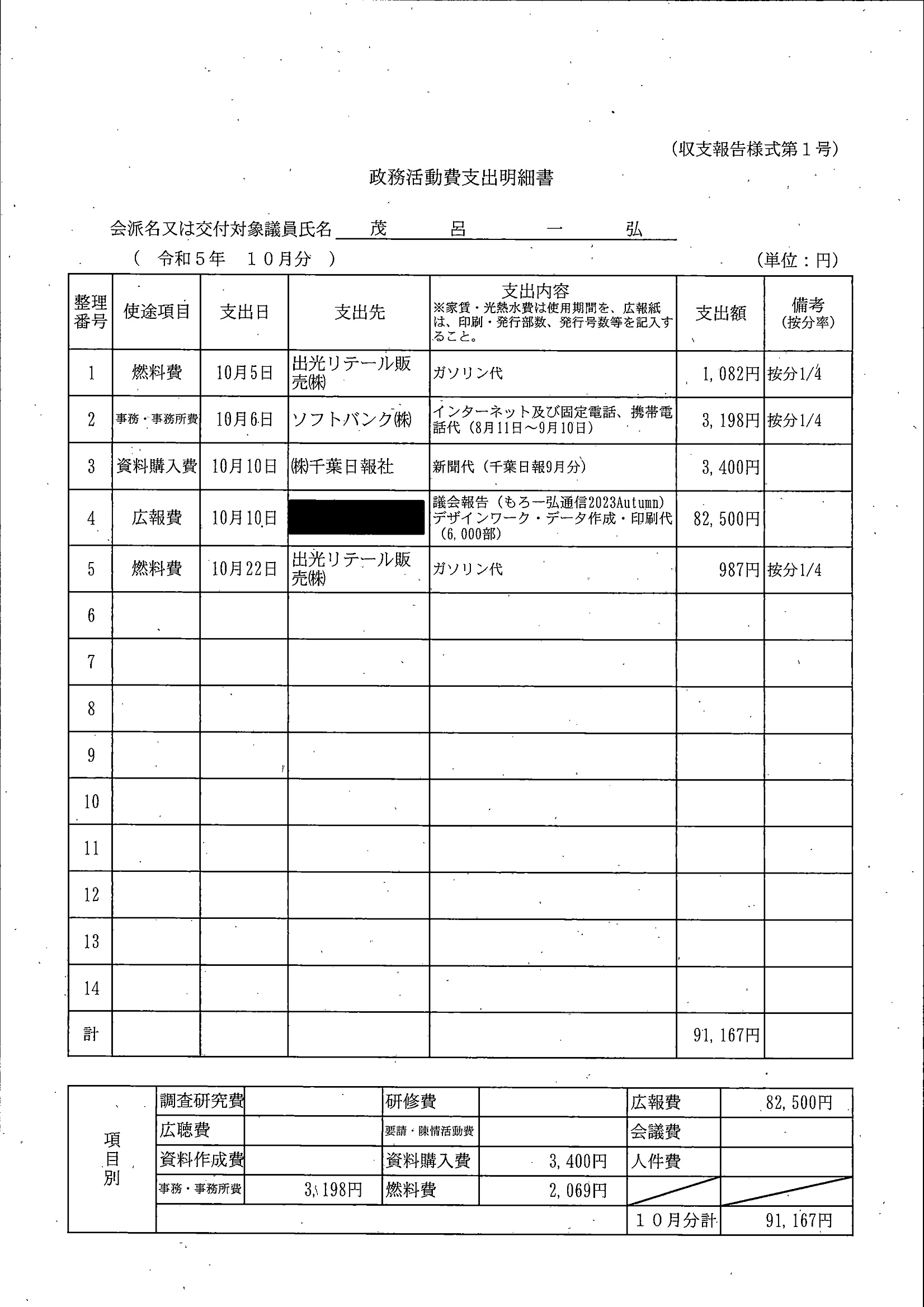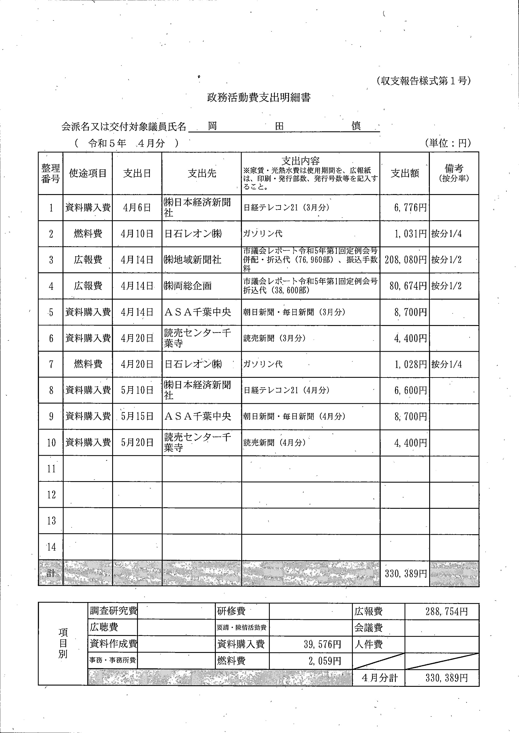 千葉市議会トップページ > 広報・情報公開 > 政務活動費 > 令和5年度交付分(政務活動費収支報告書)