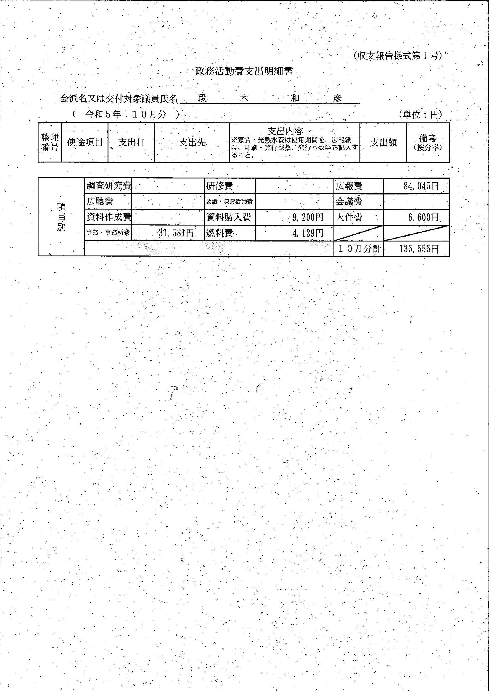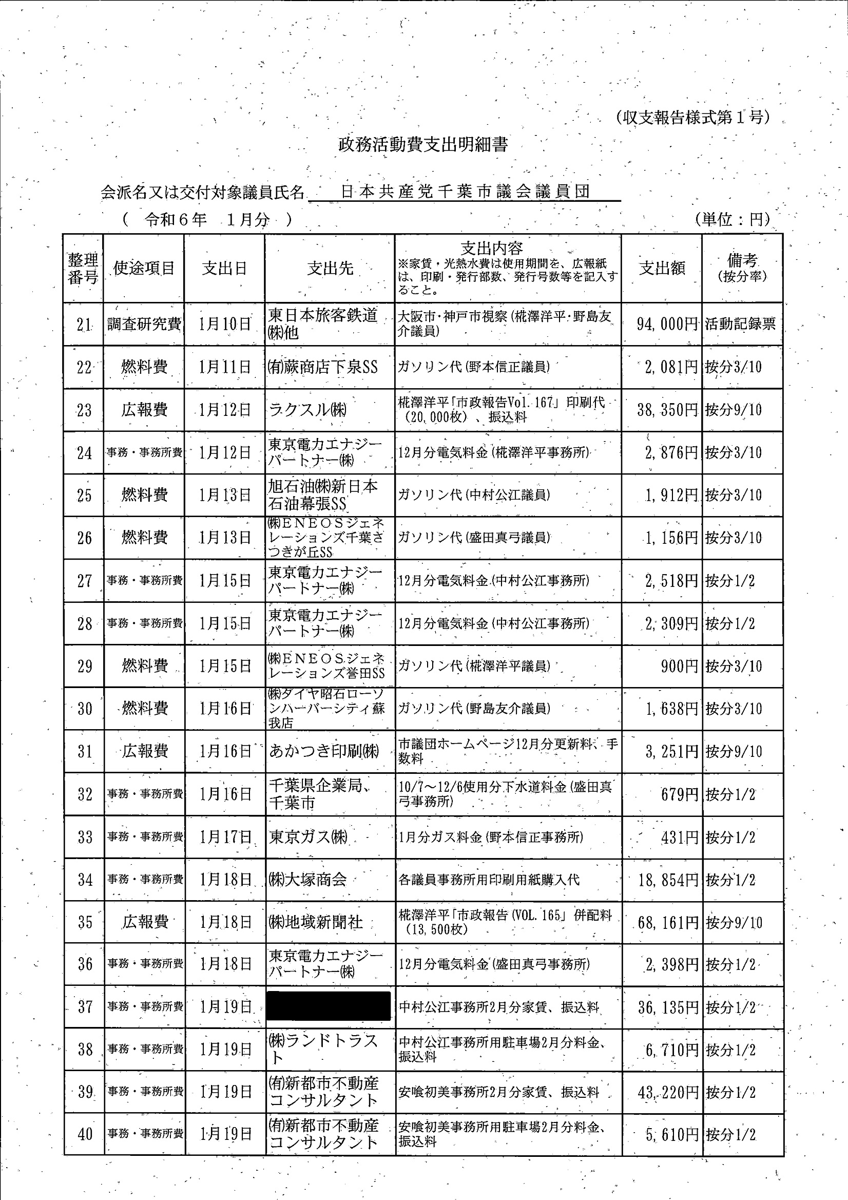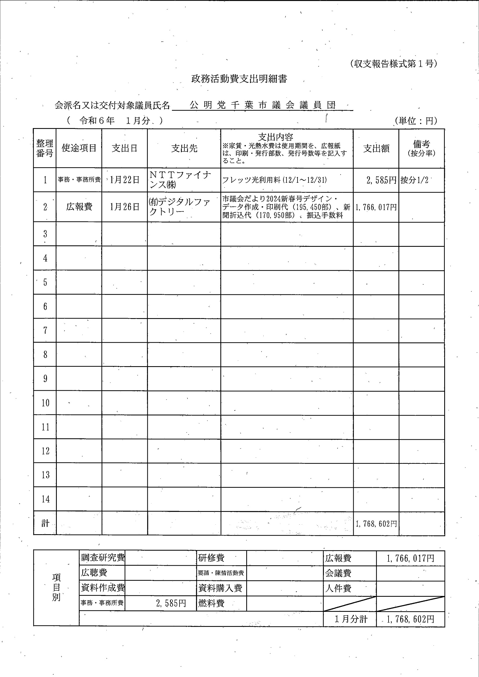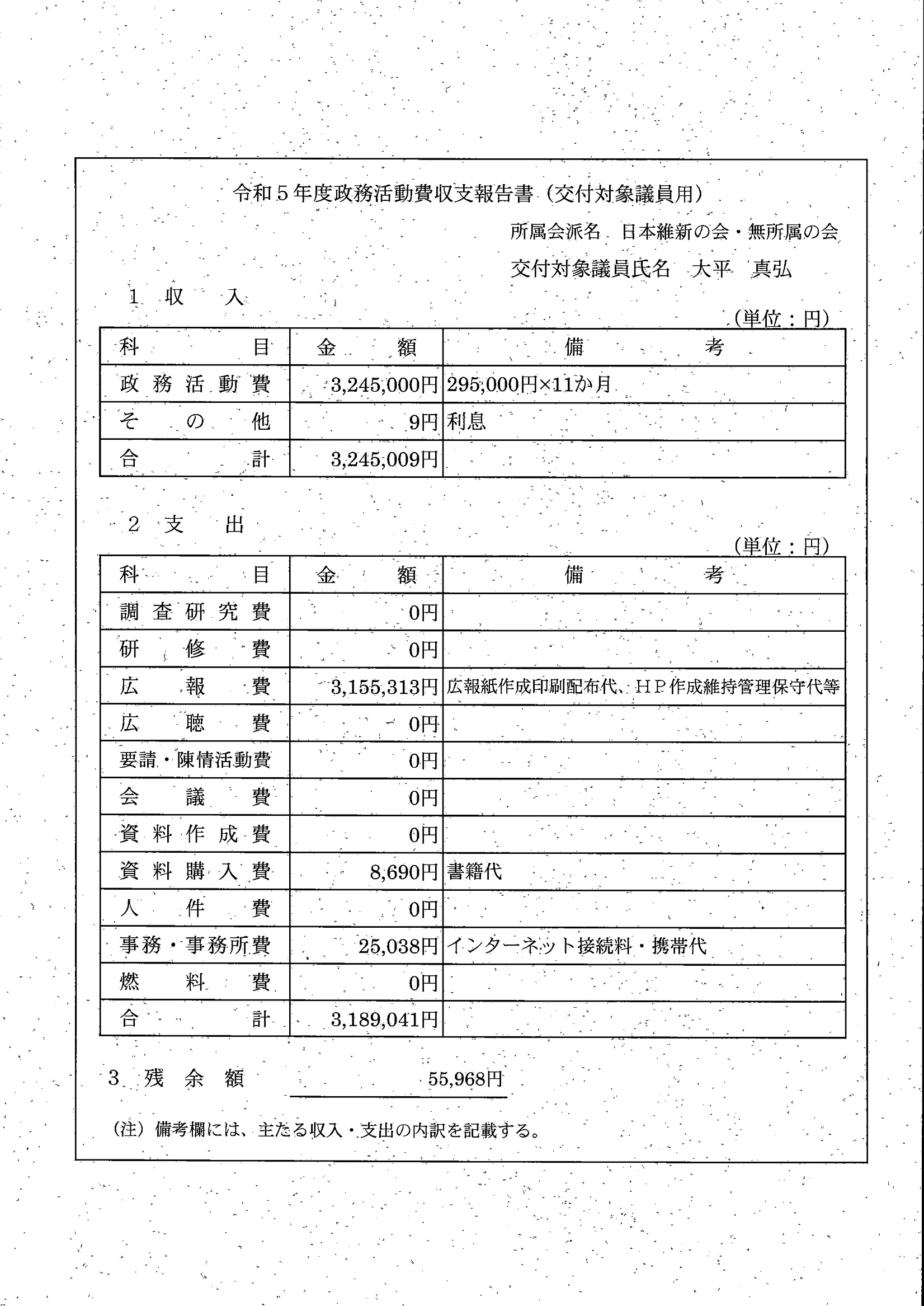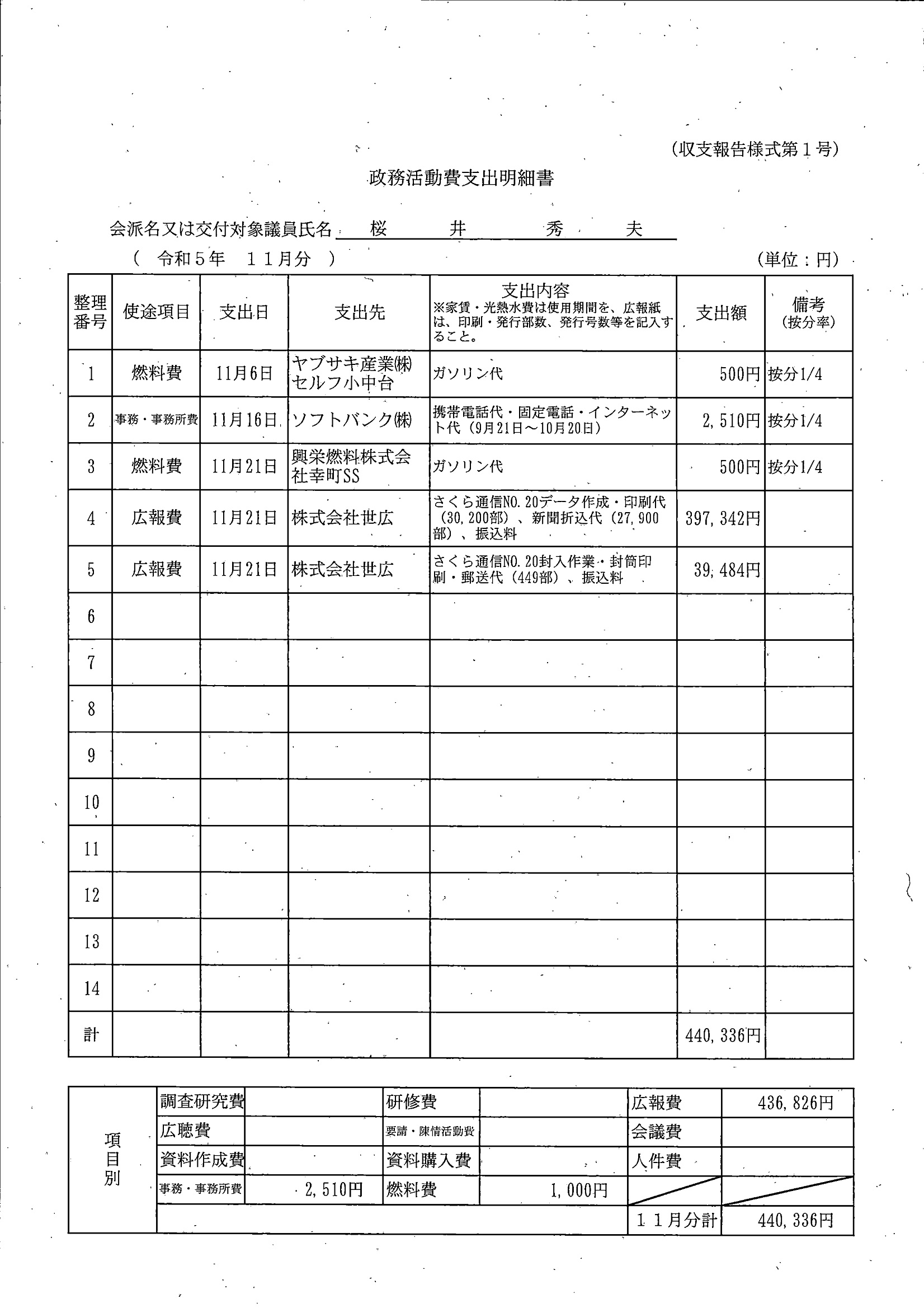 千葉市議会トップページ > 広報・情報公開 > 政務活動費 > 令和5年度交付分(政務活動費収支報告書)