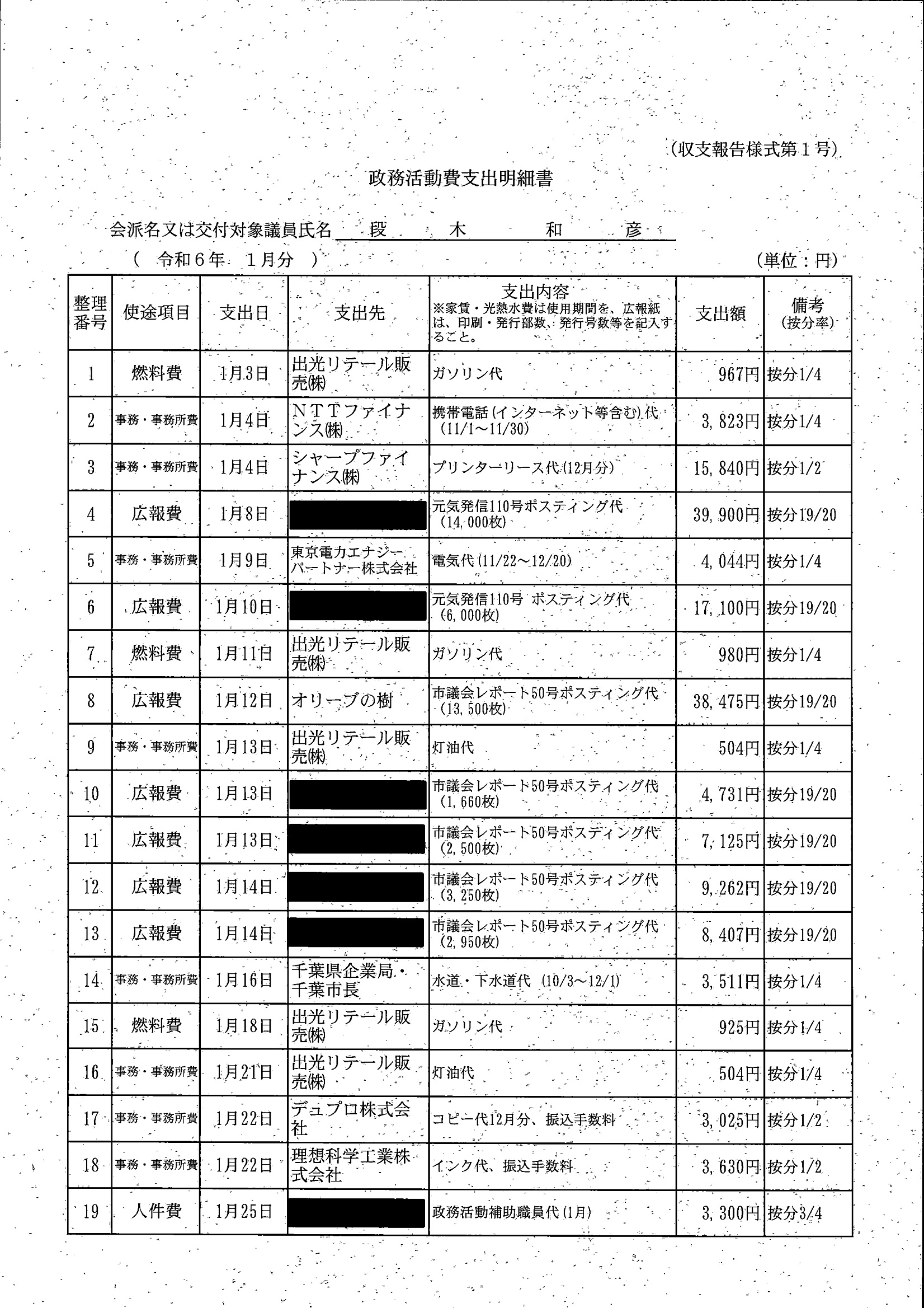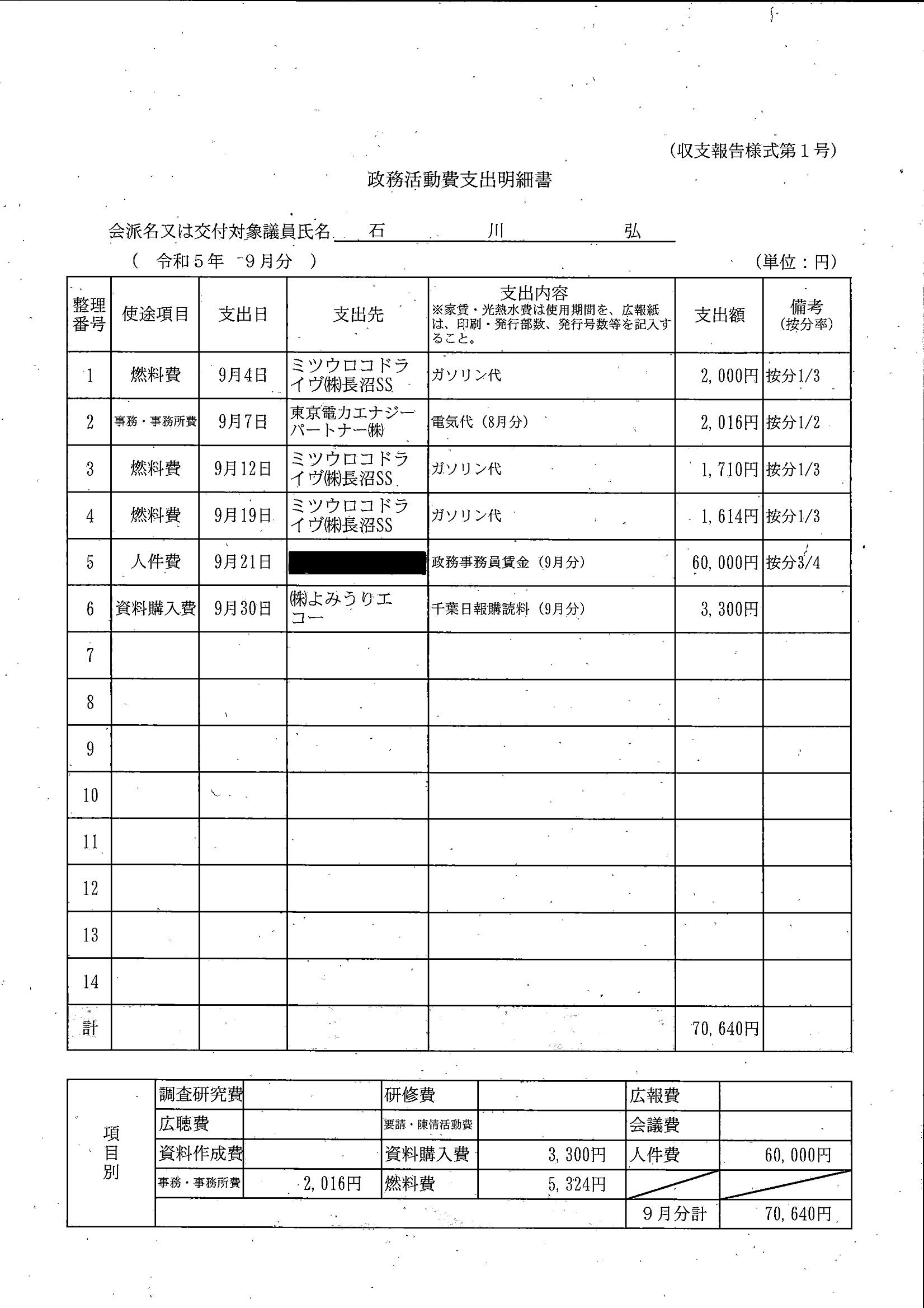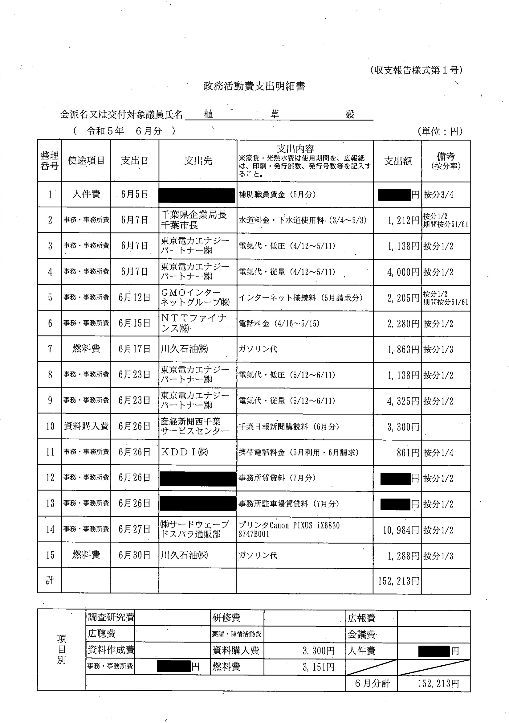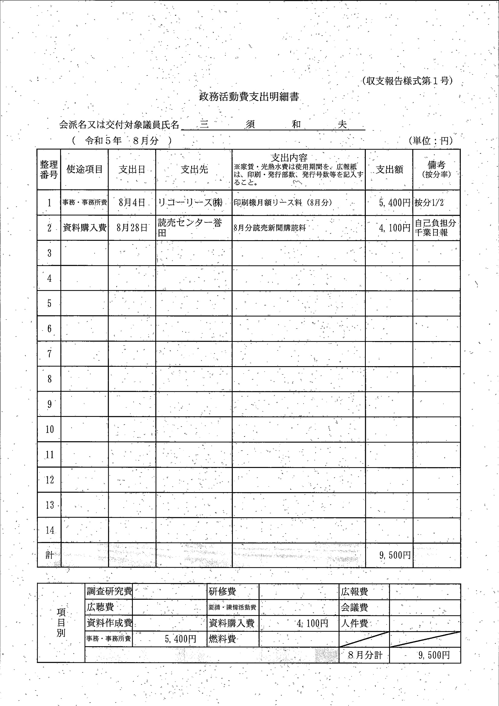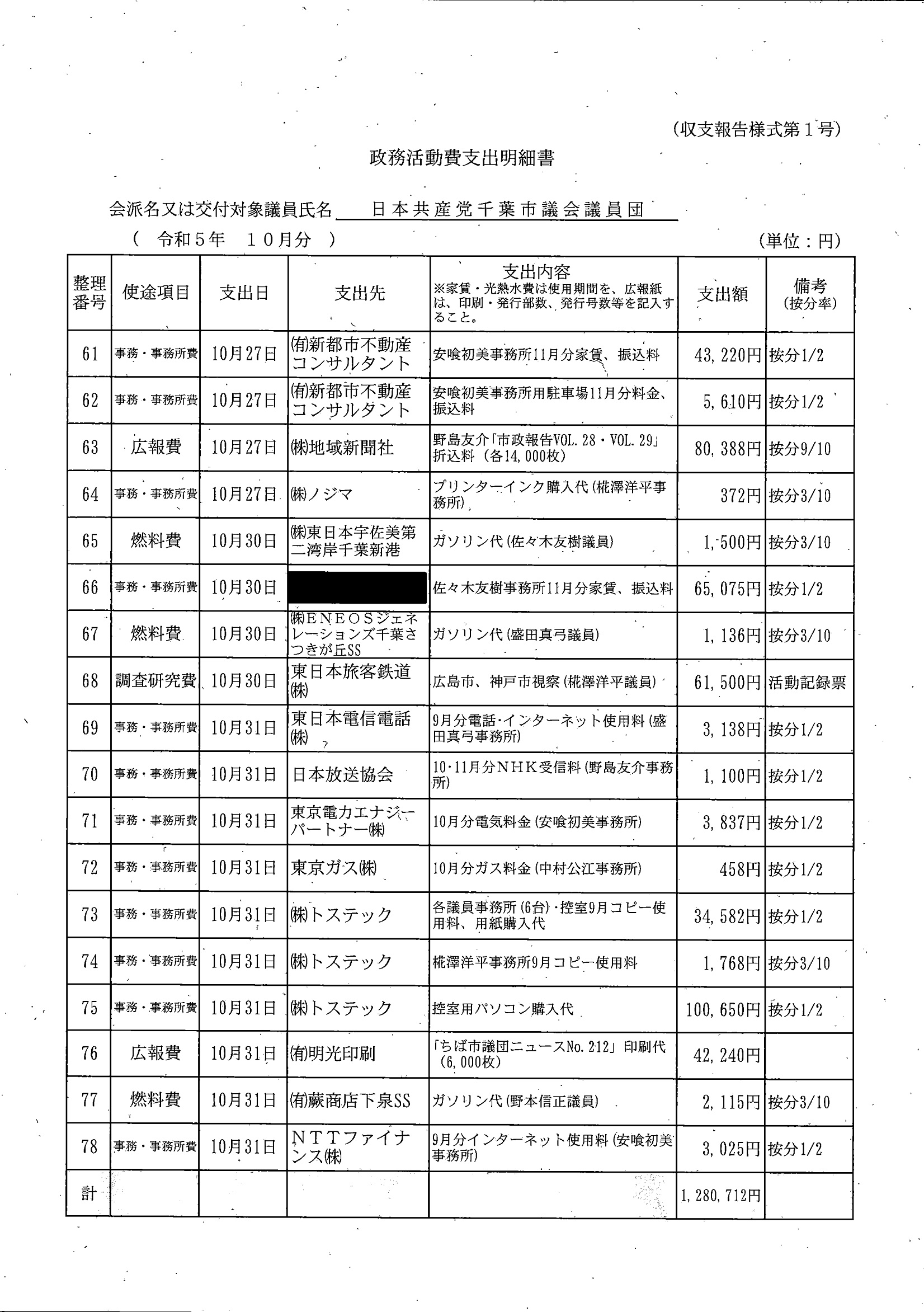 千葉市議会トップページ > 広報・情報公開 > 政務活動費 > 令和5年度交付分(政務活動費収支報告書)