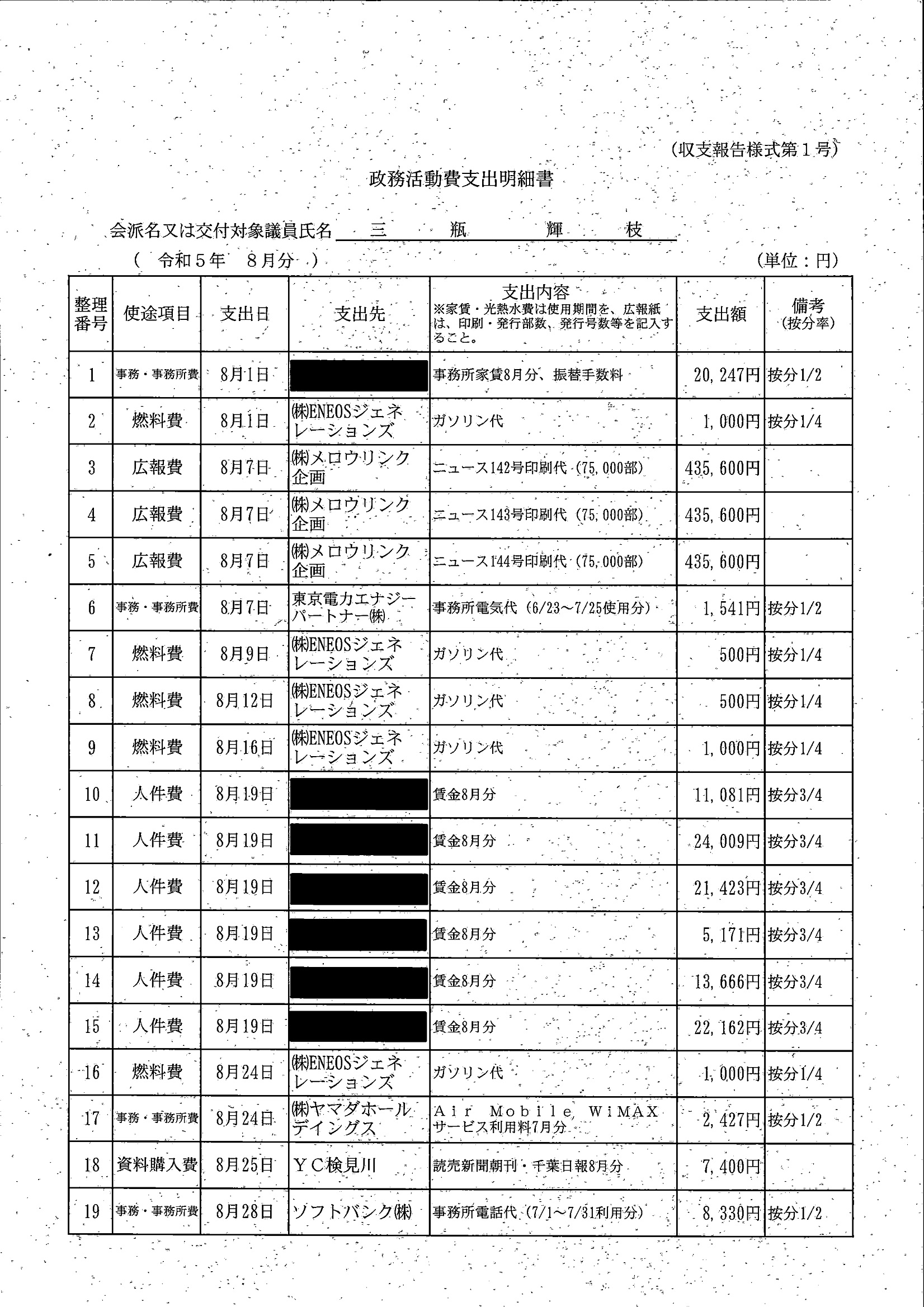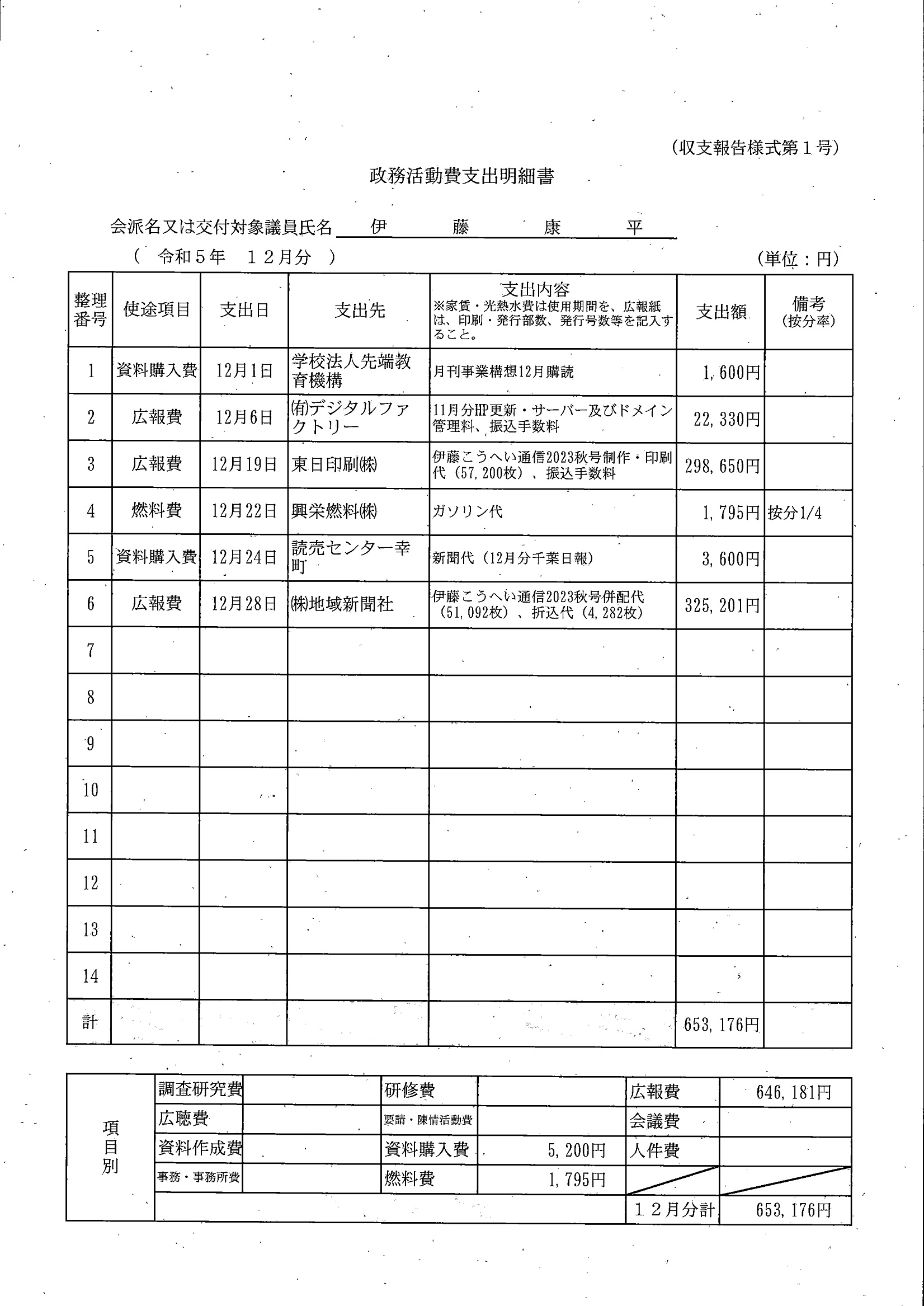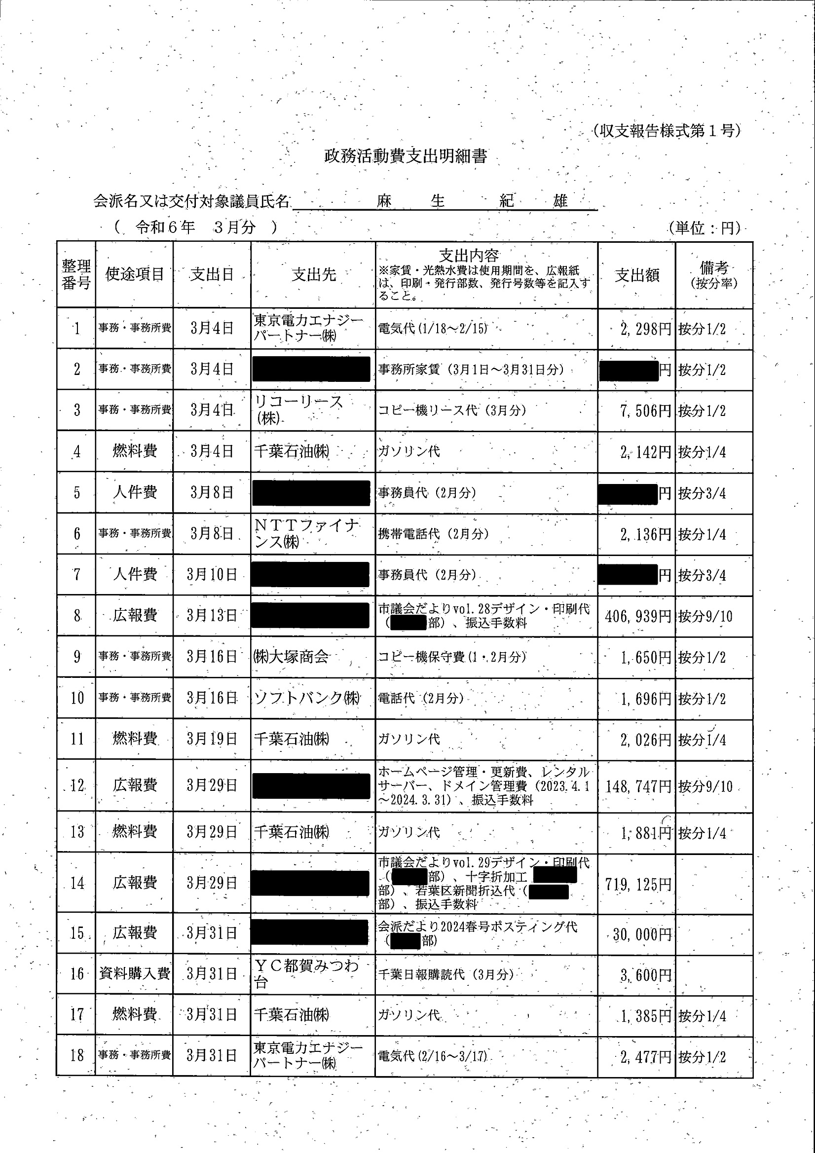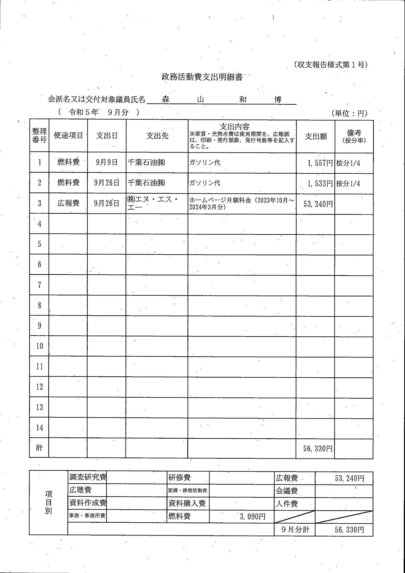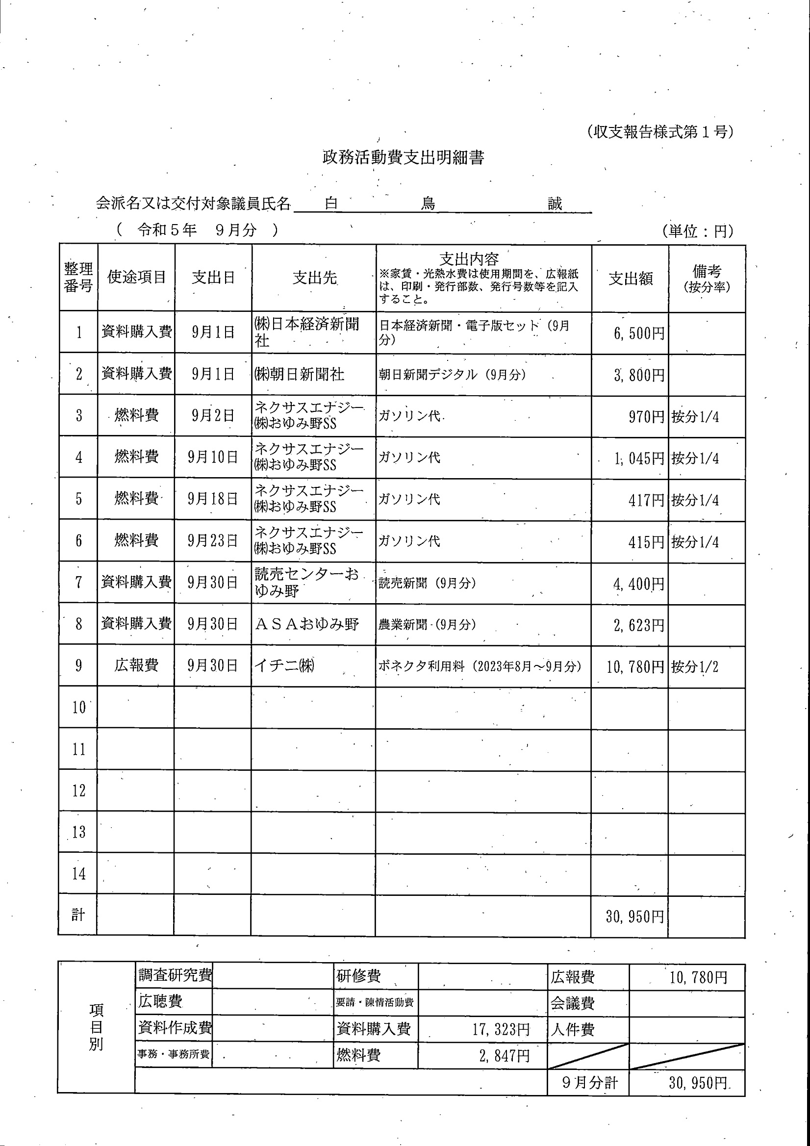 千葉市議会トップページ > 広報・情報公開 > 政務活動費 > 令和5年度交付分(政務活動費収支報告書)