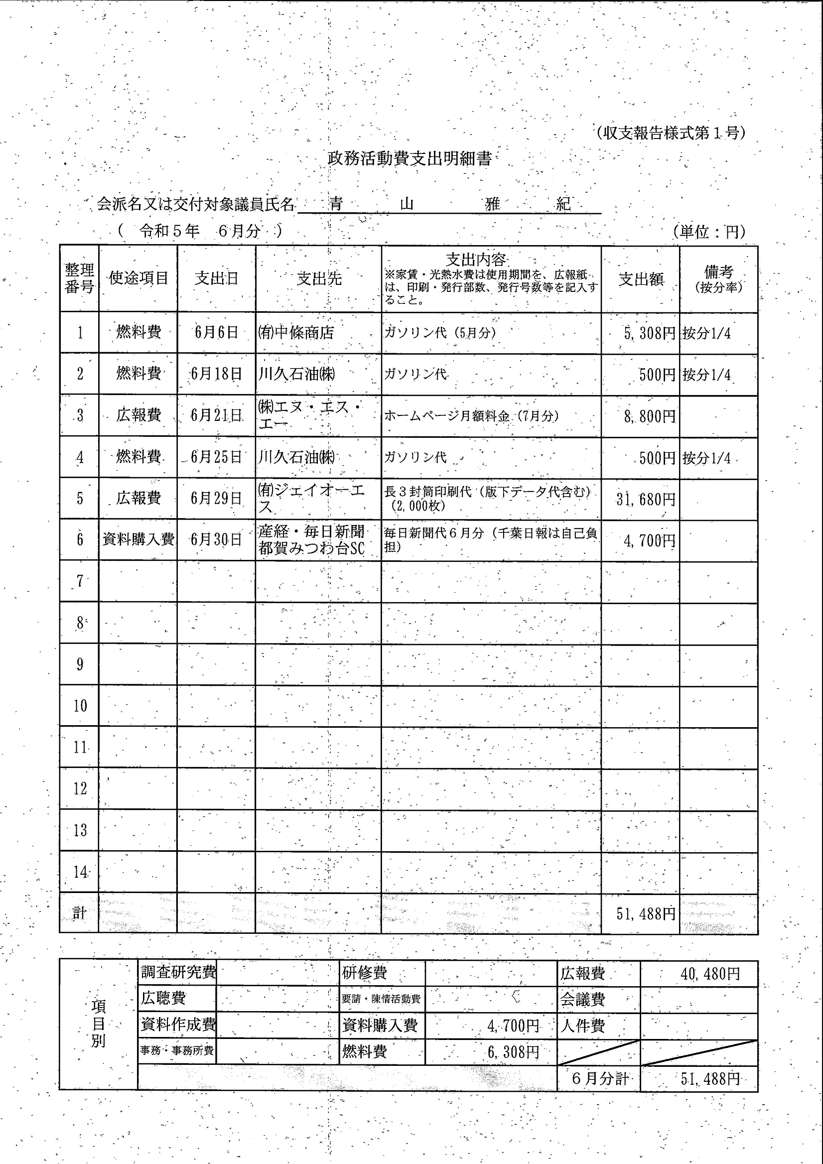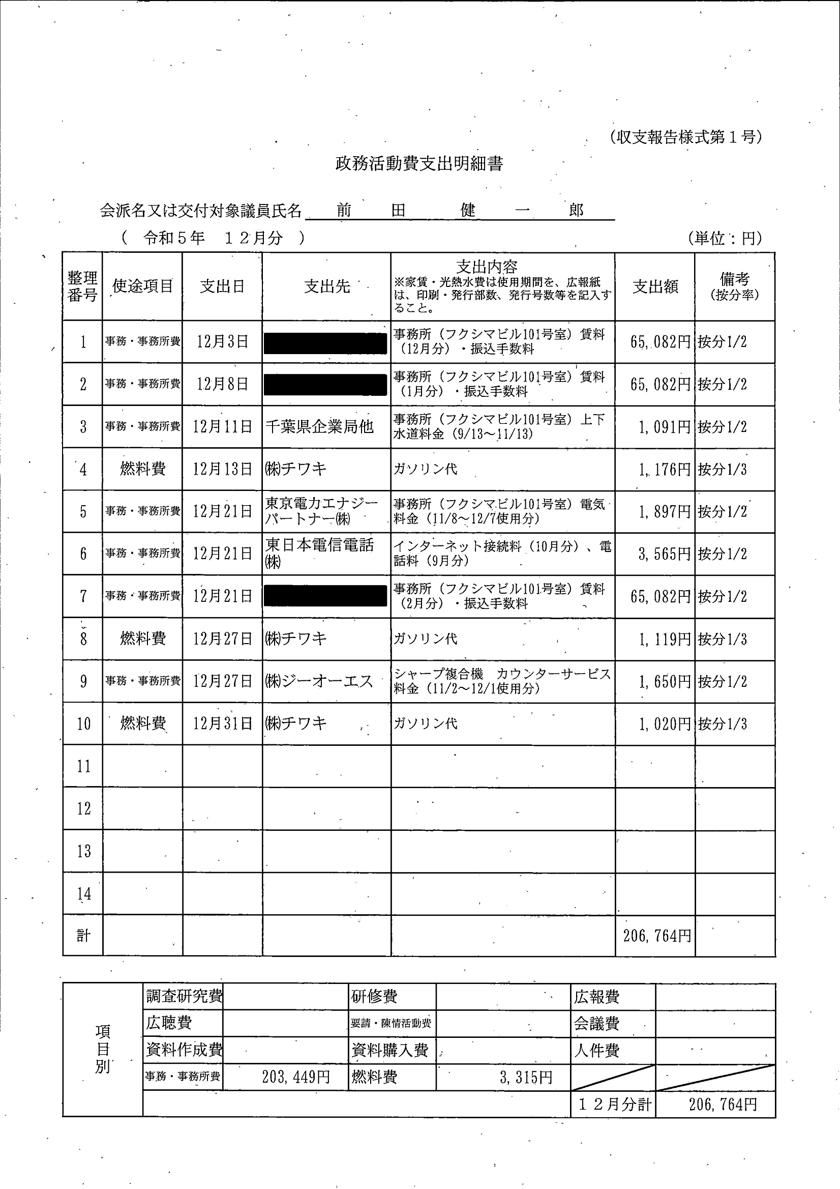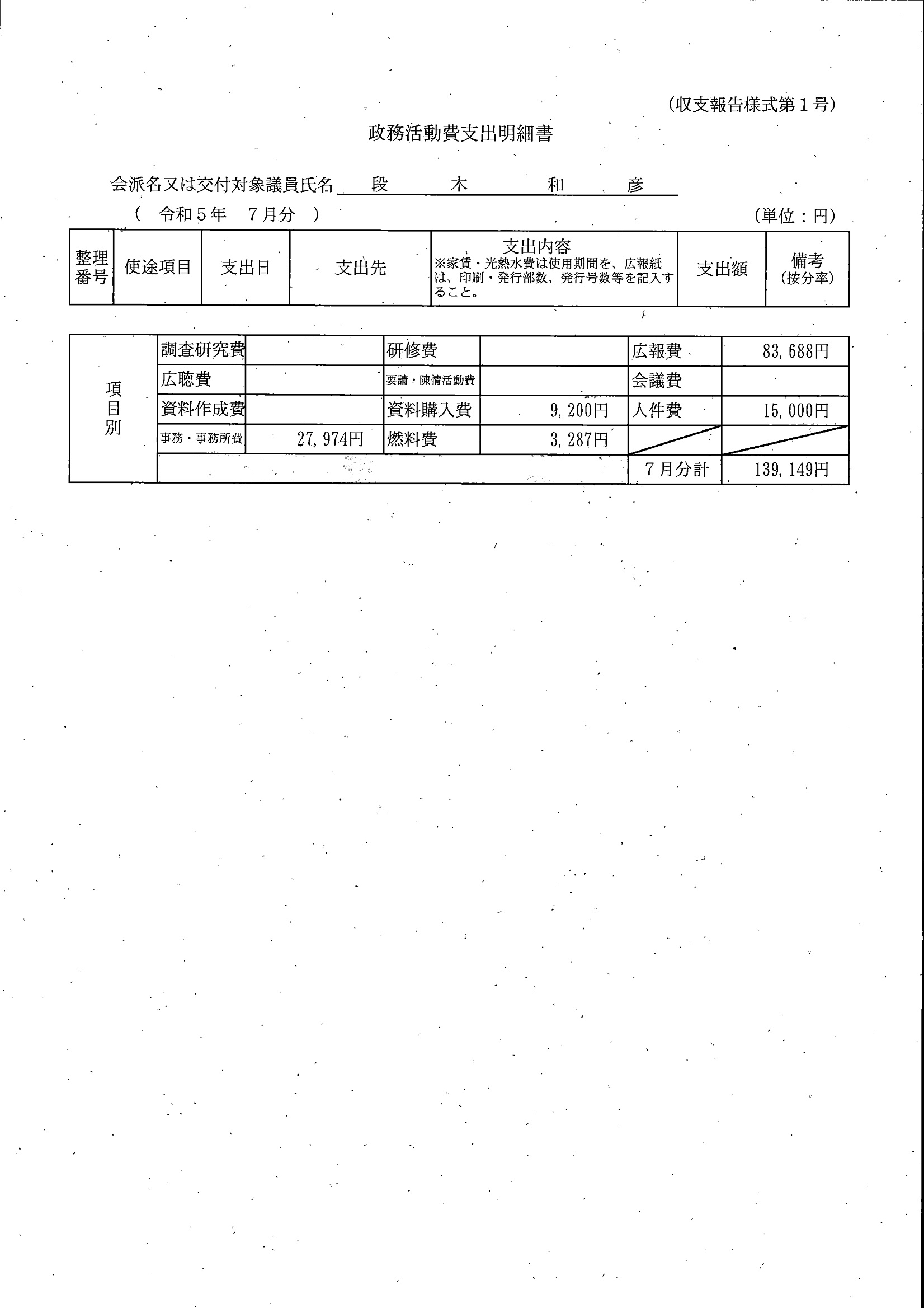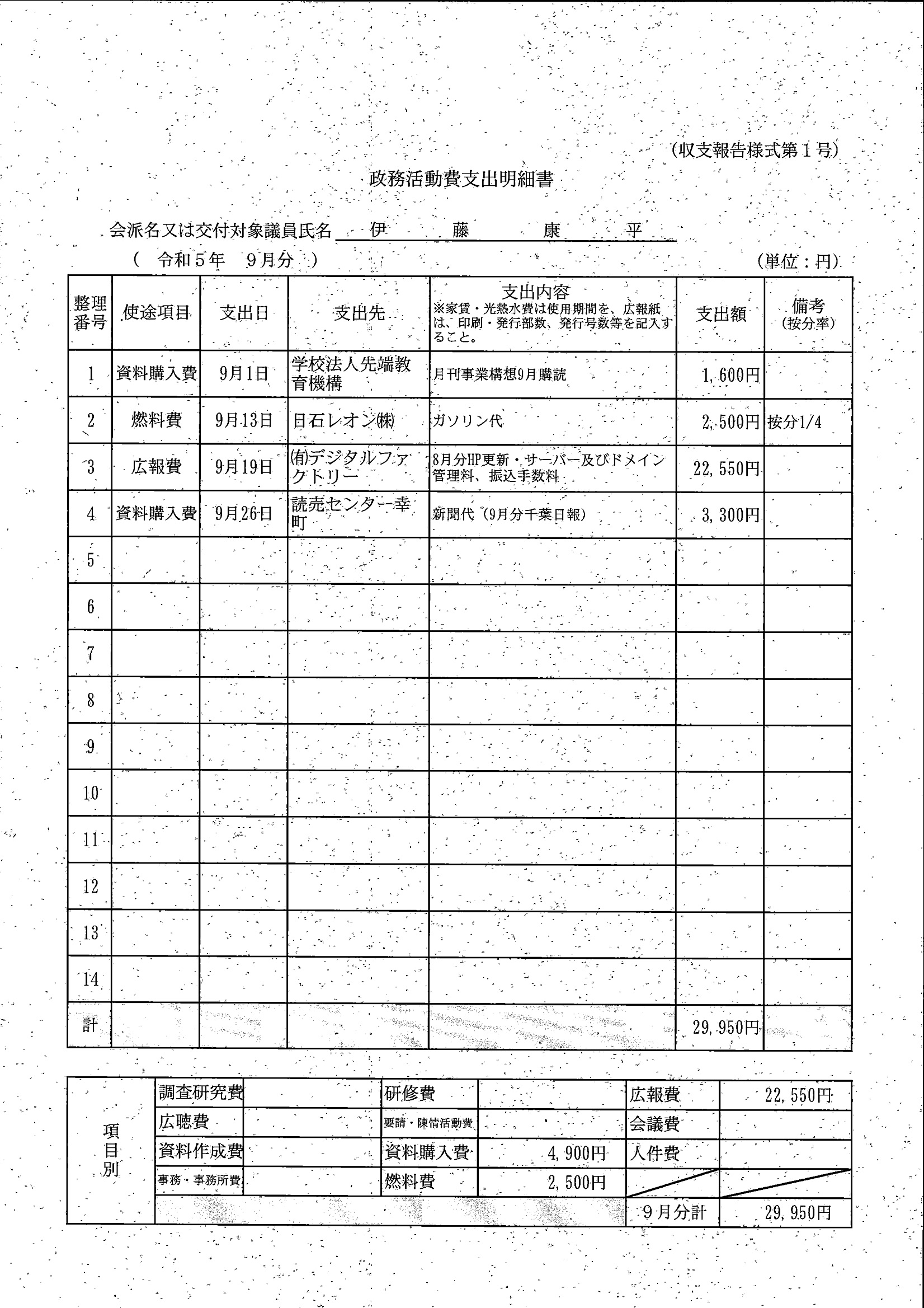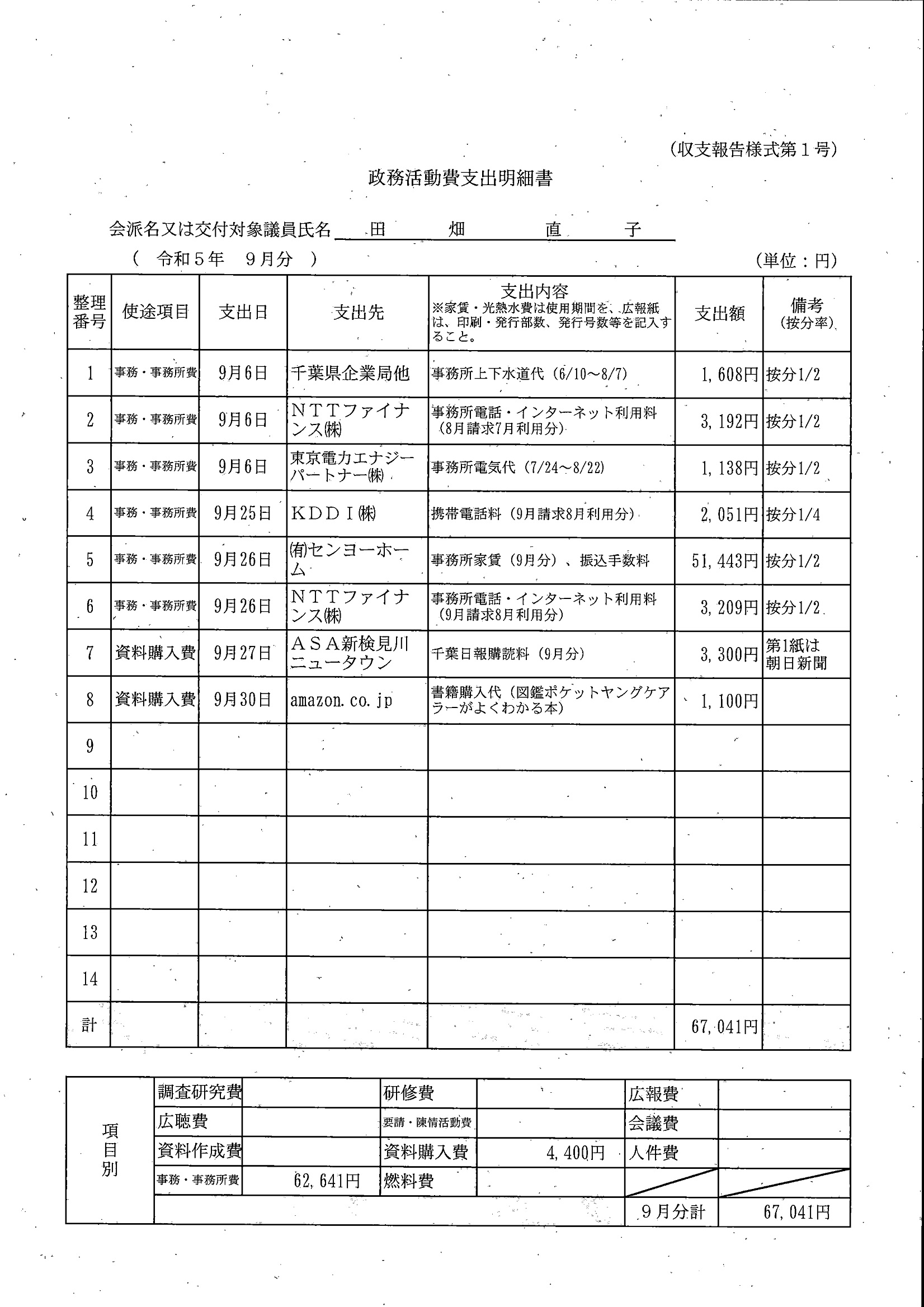 千葉市議会トップページ > 広報・情報公開 > 政務活動費 > 令和5年度交付分(政務活動費収支報告書)