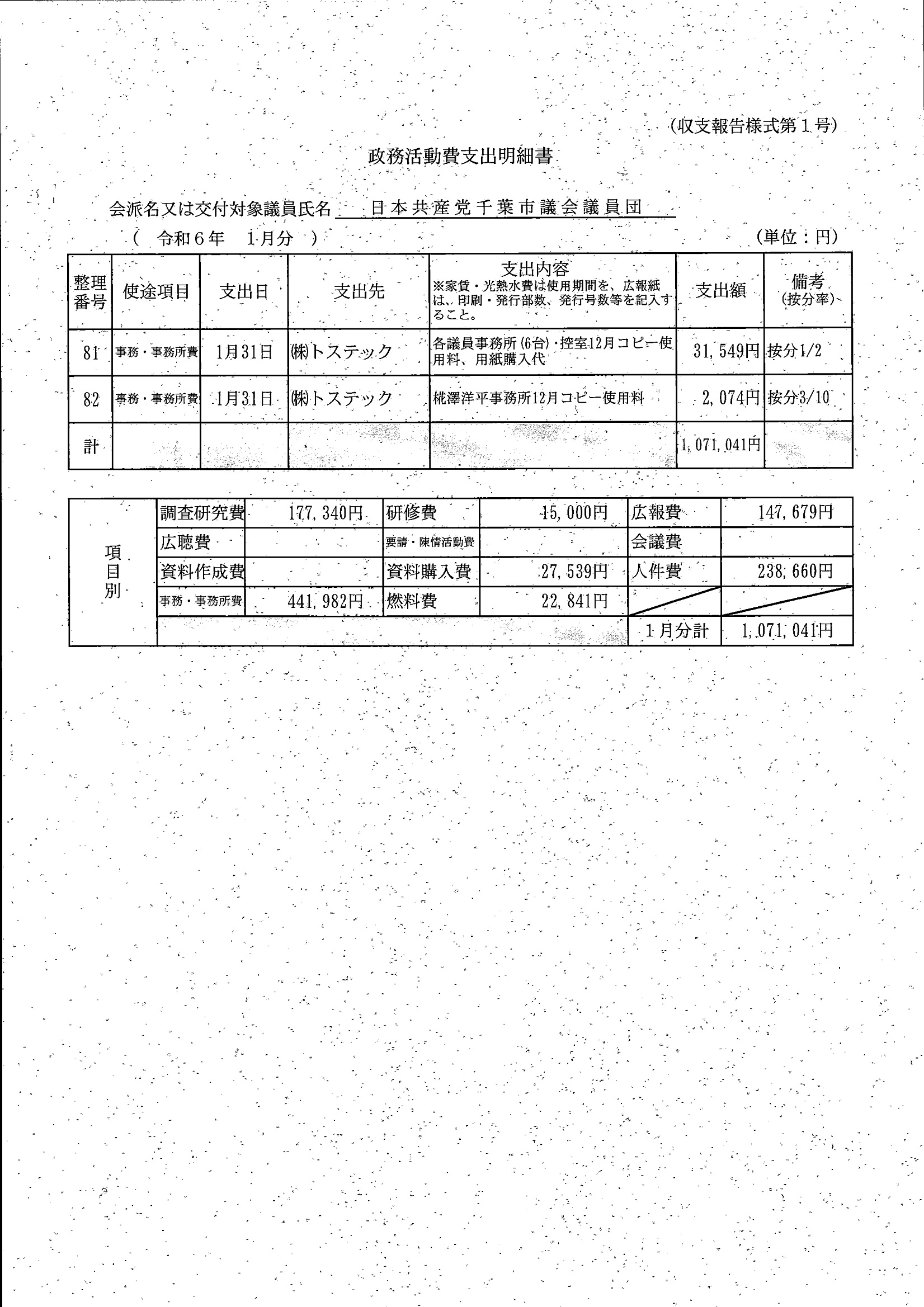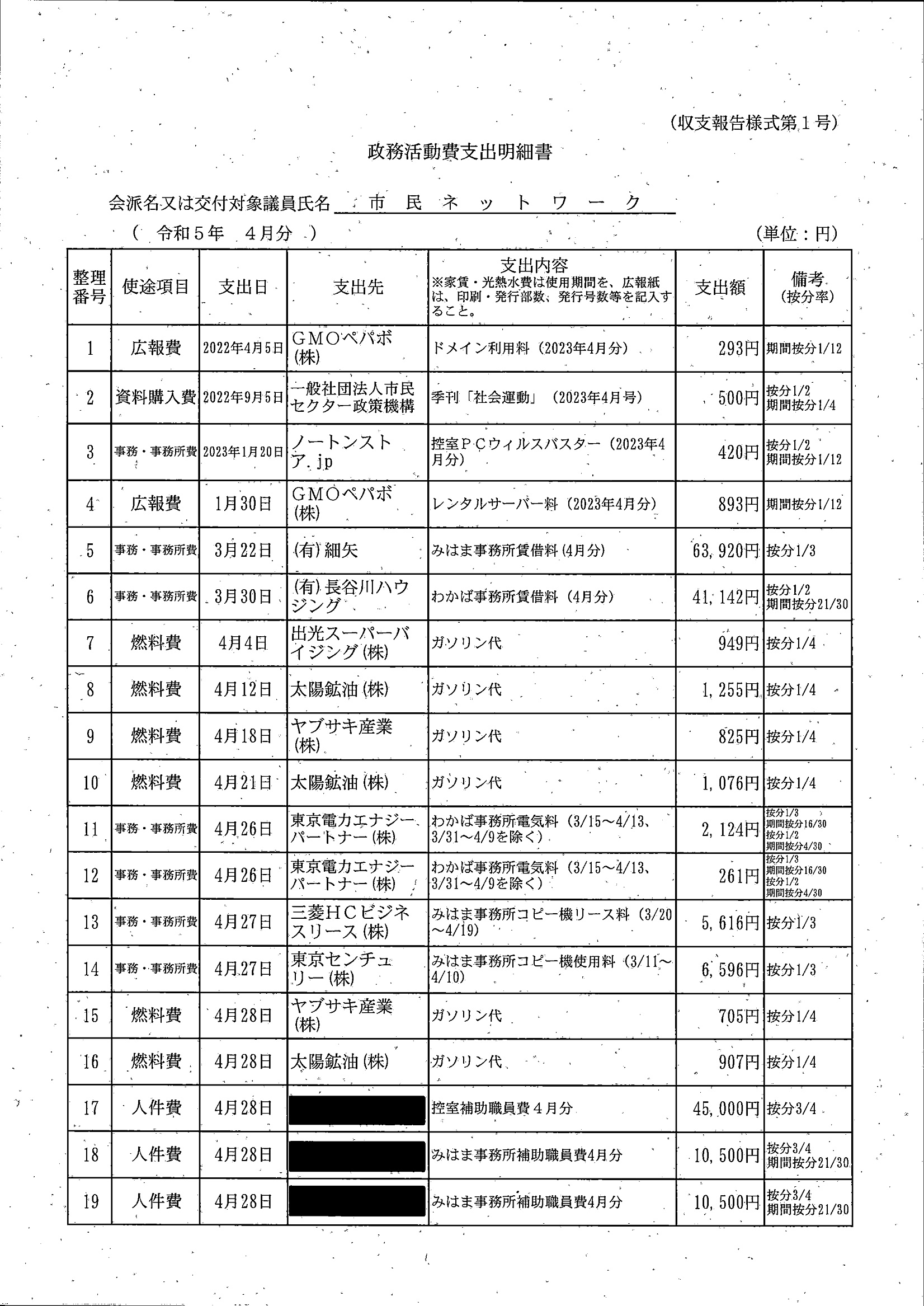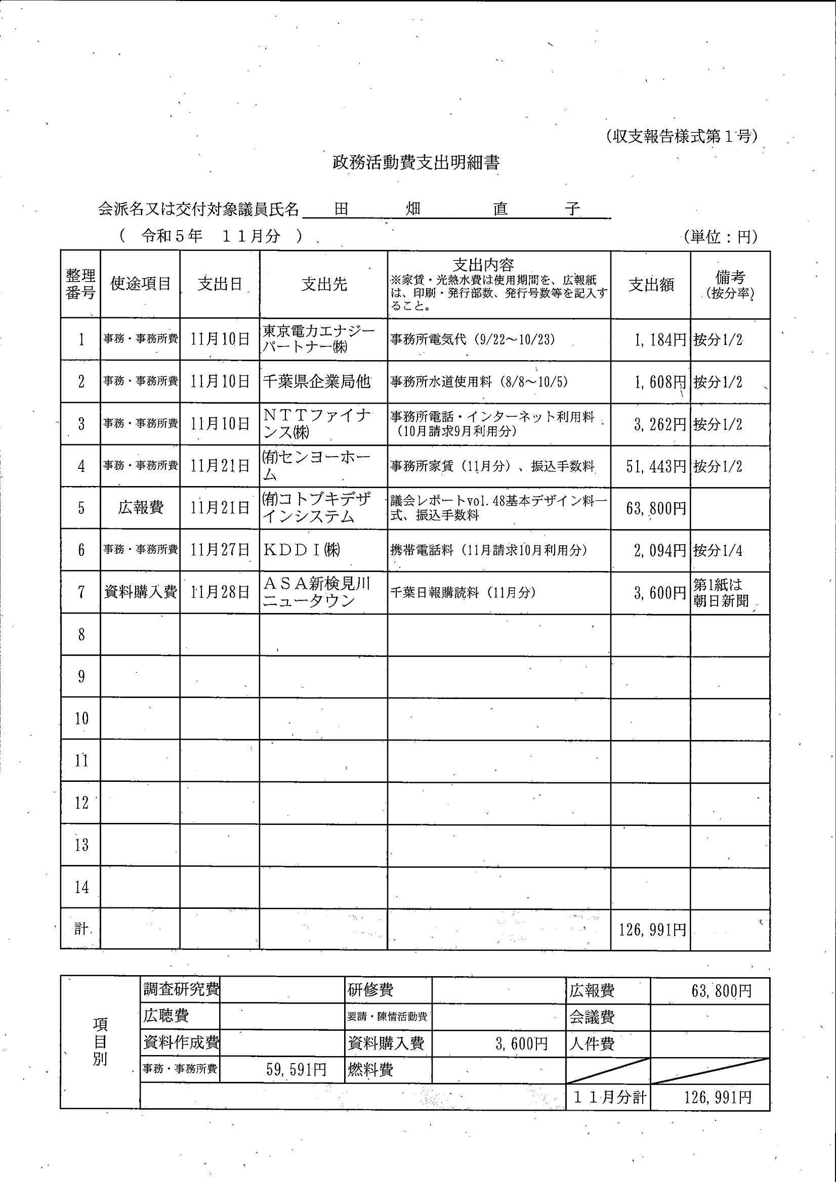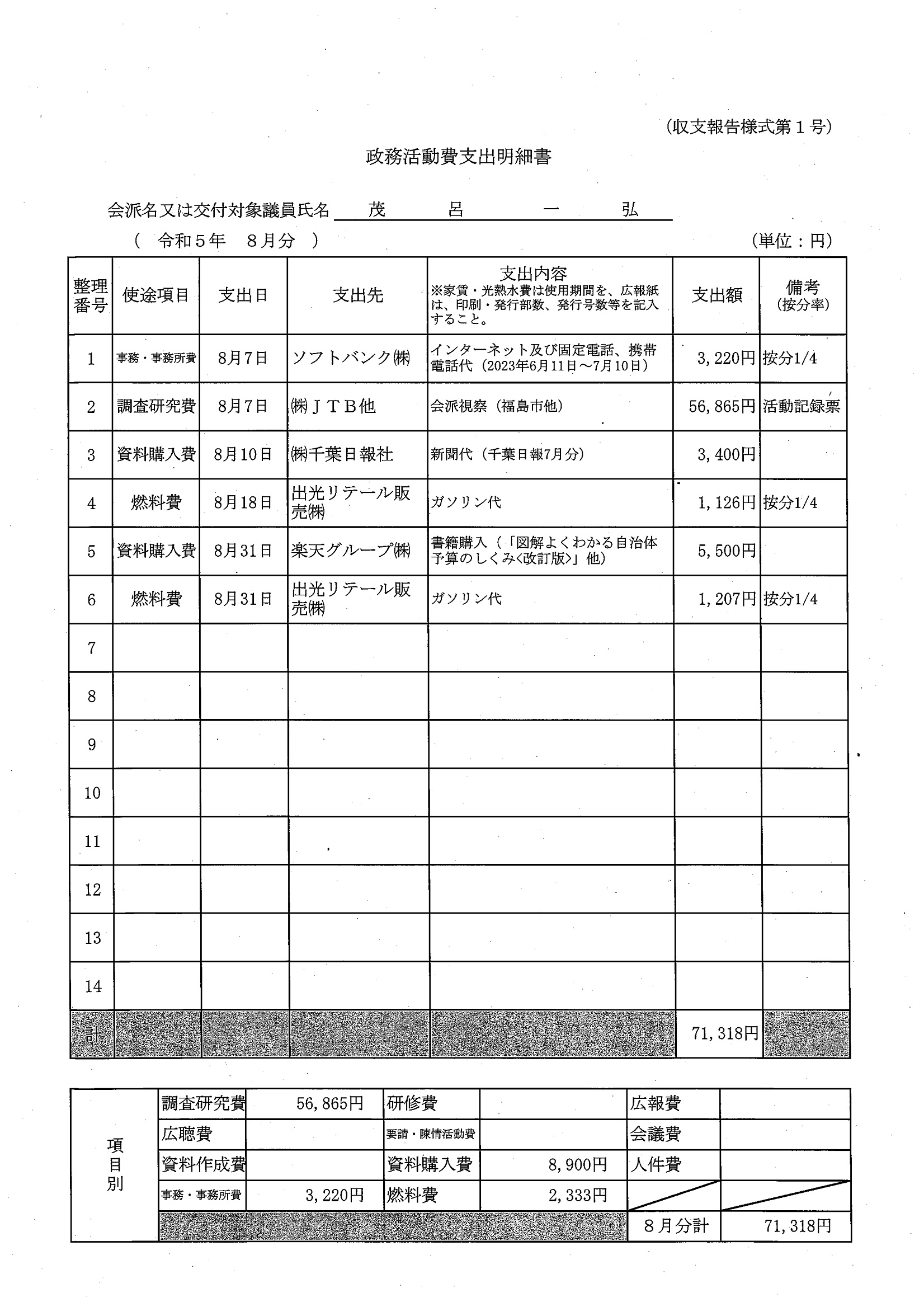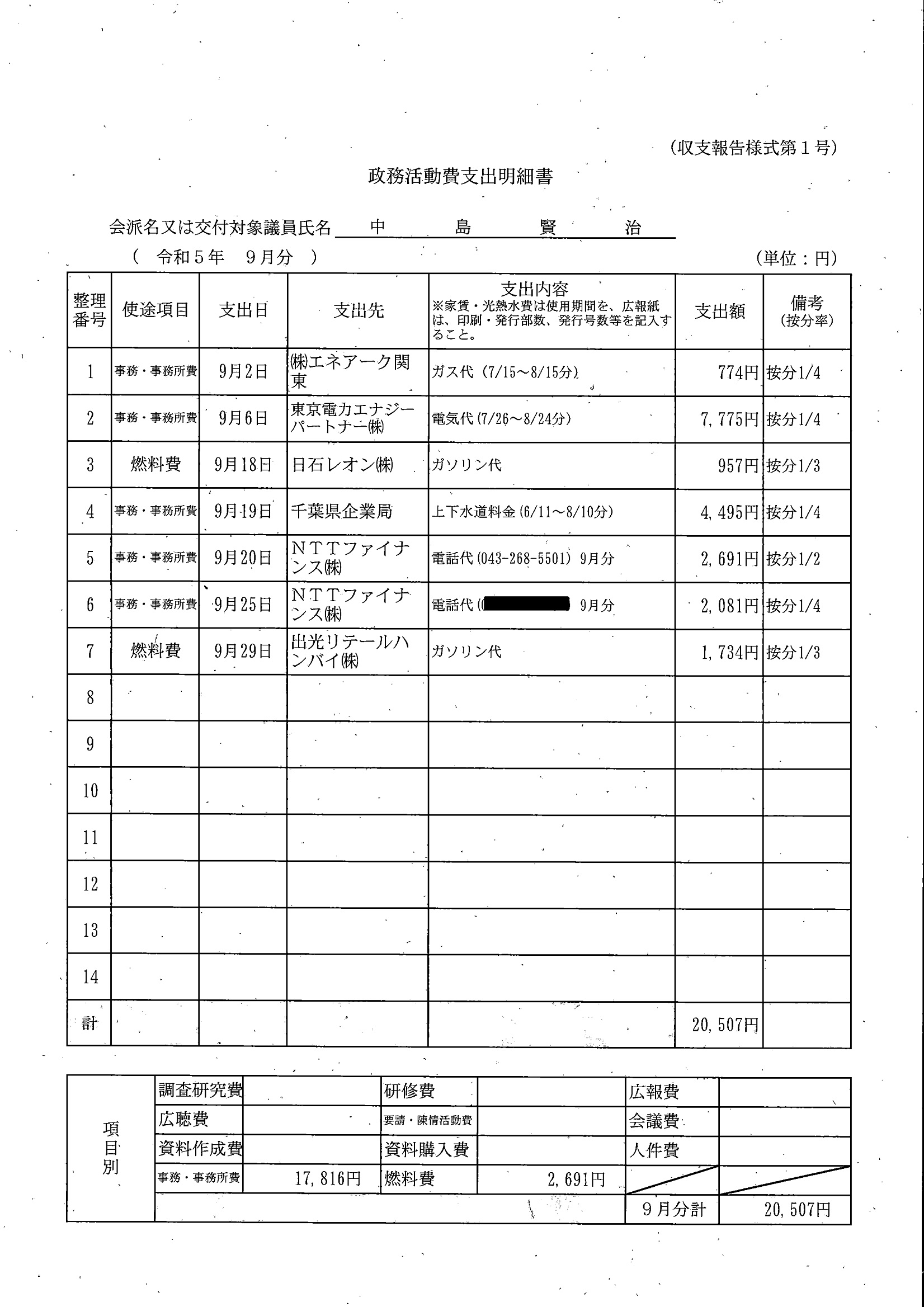 千葉市議会トップページ > 広報・情報公開 > 政務活動費 > 令和5年度交付分(政務活動費収支報告書)