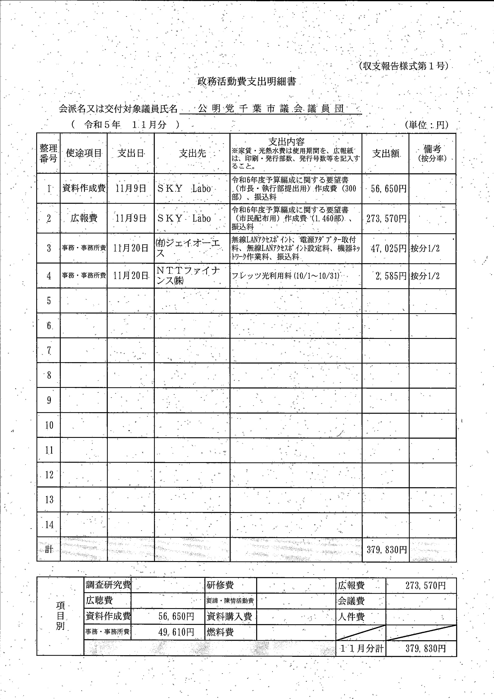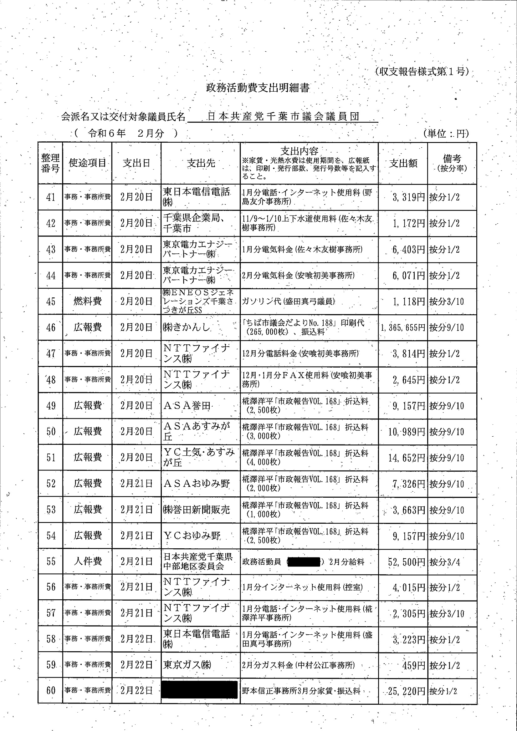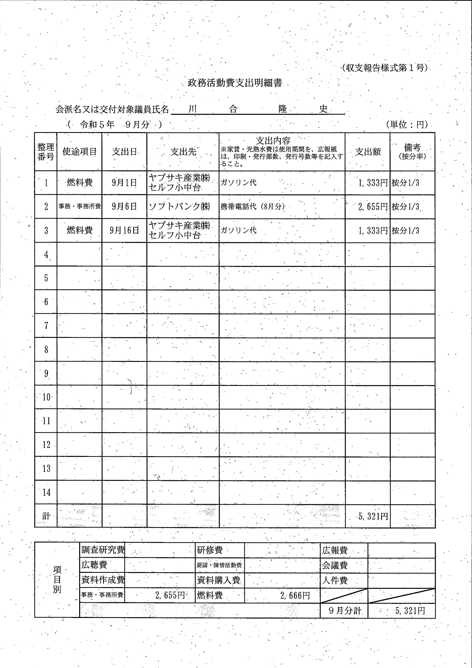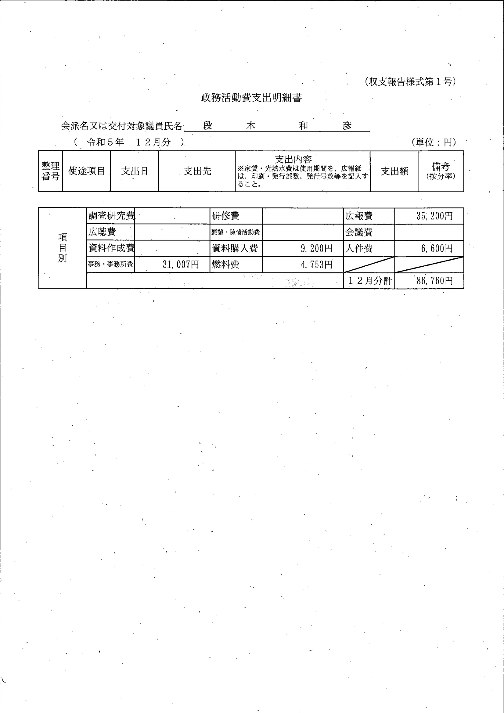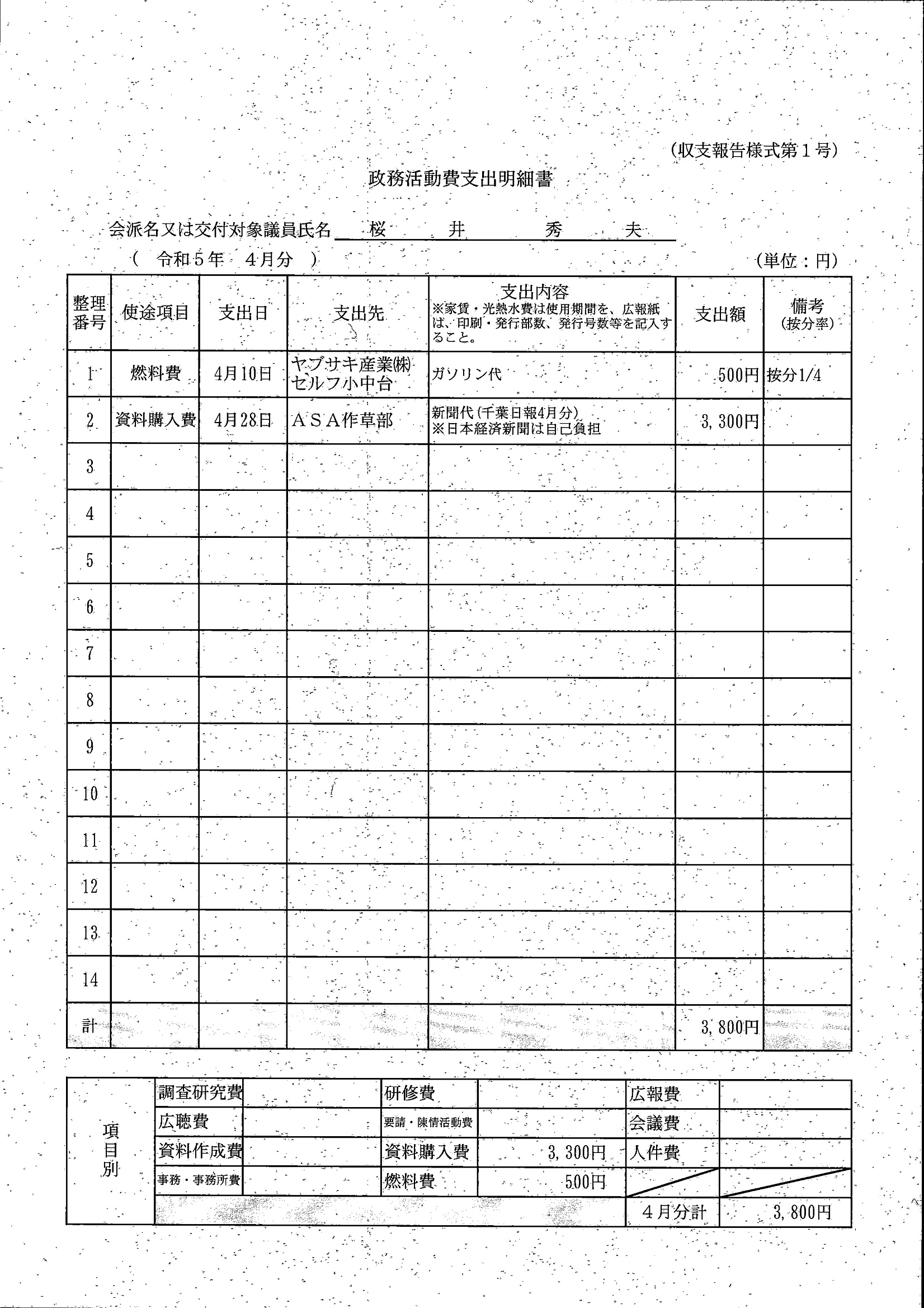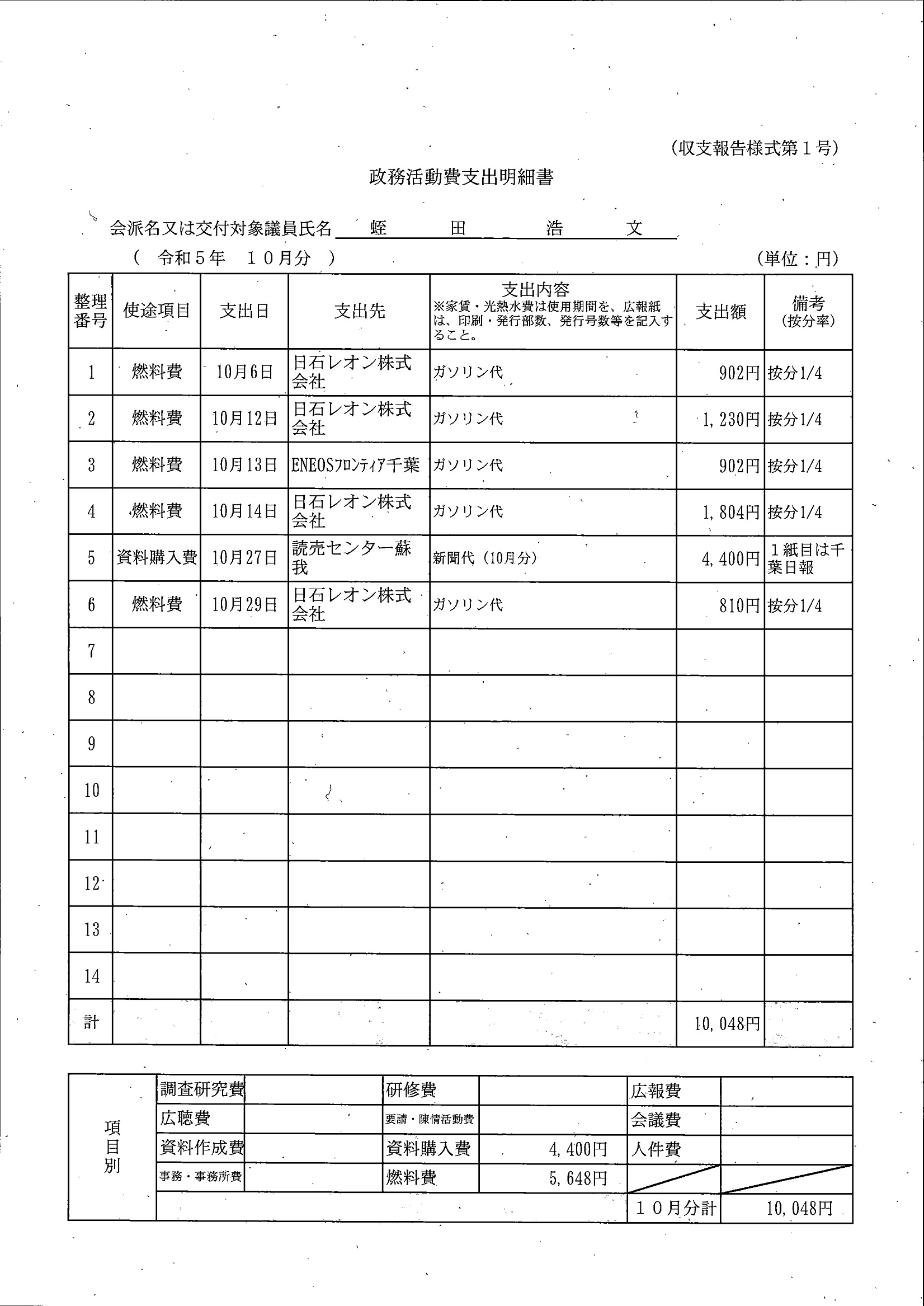 千葉市議会トップページ > 広報・情報公開 > 政務活動費 > 令和5年度交付分(政務活動費収支報告書)