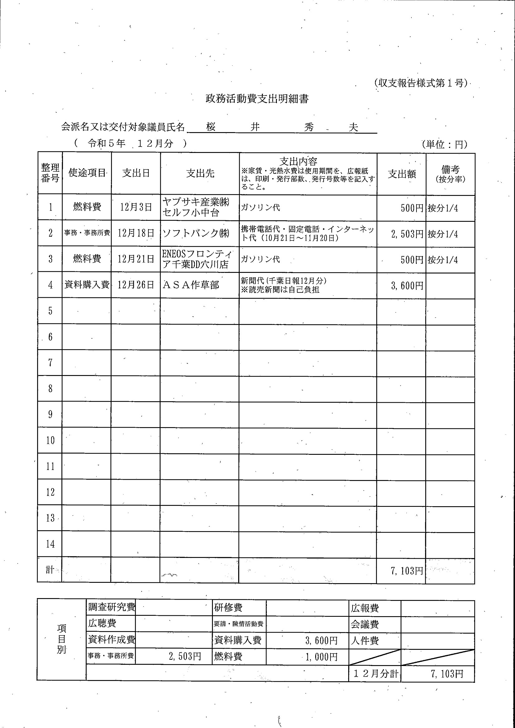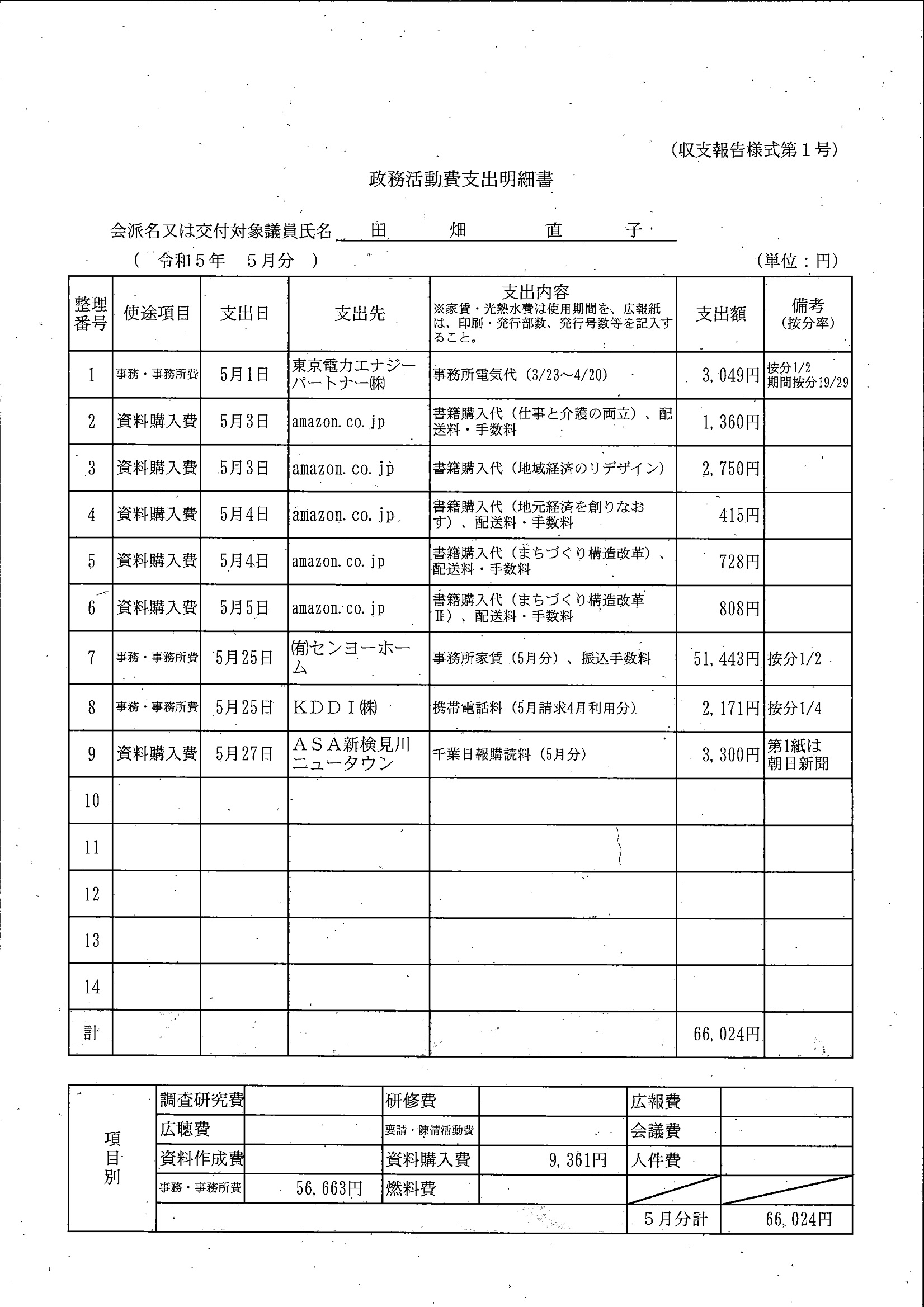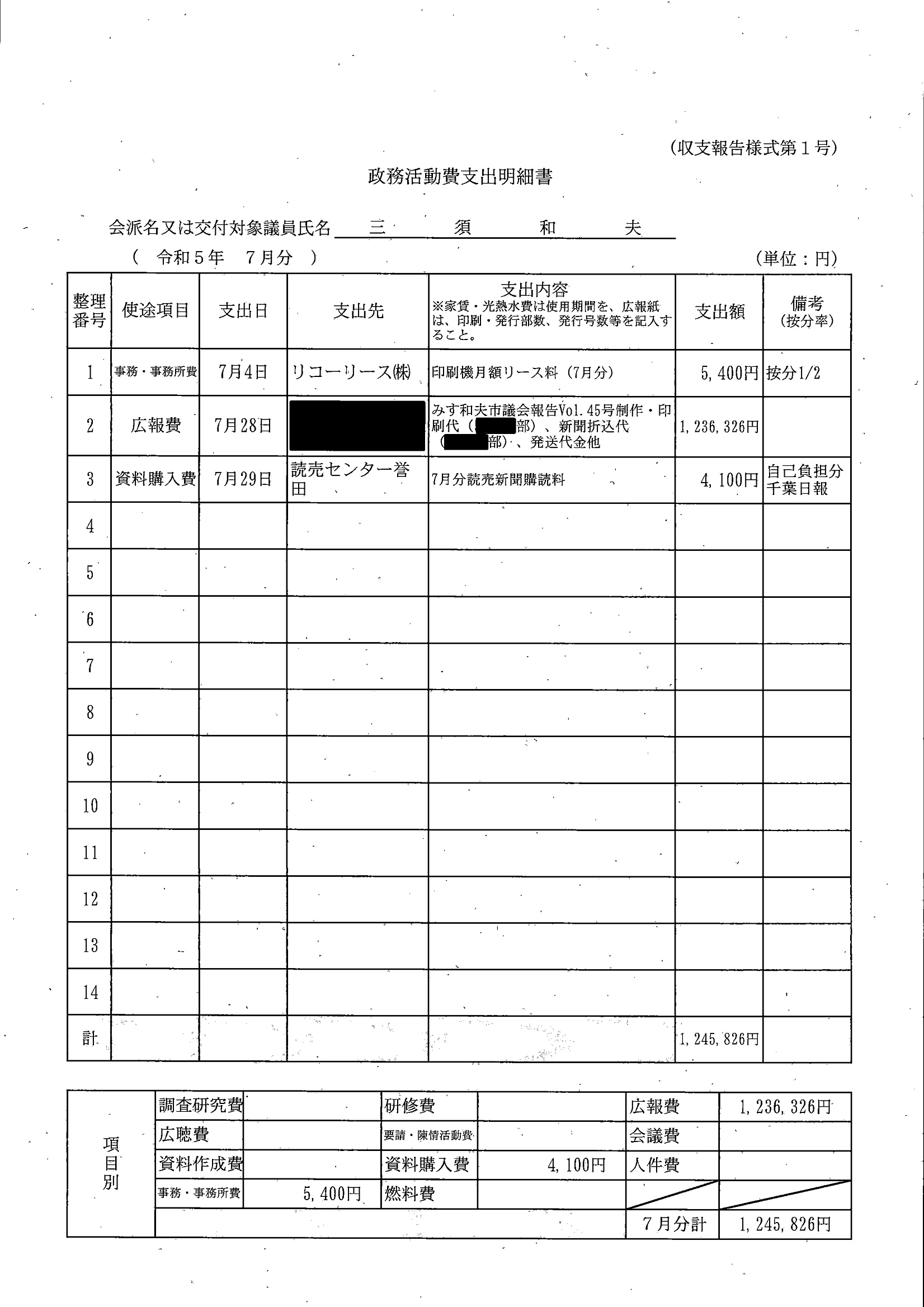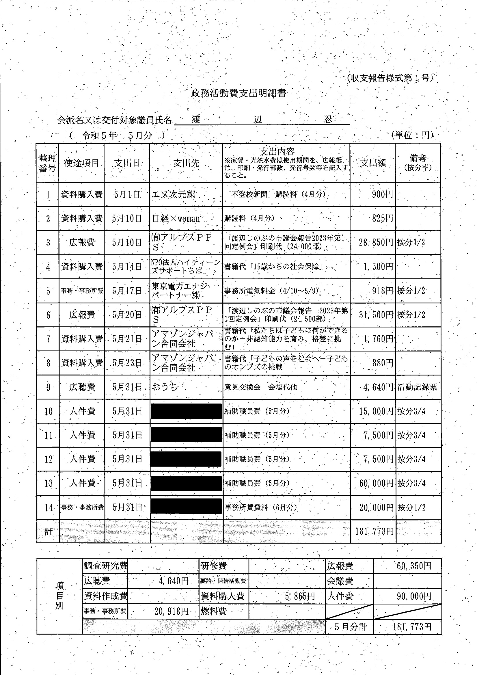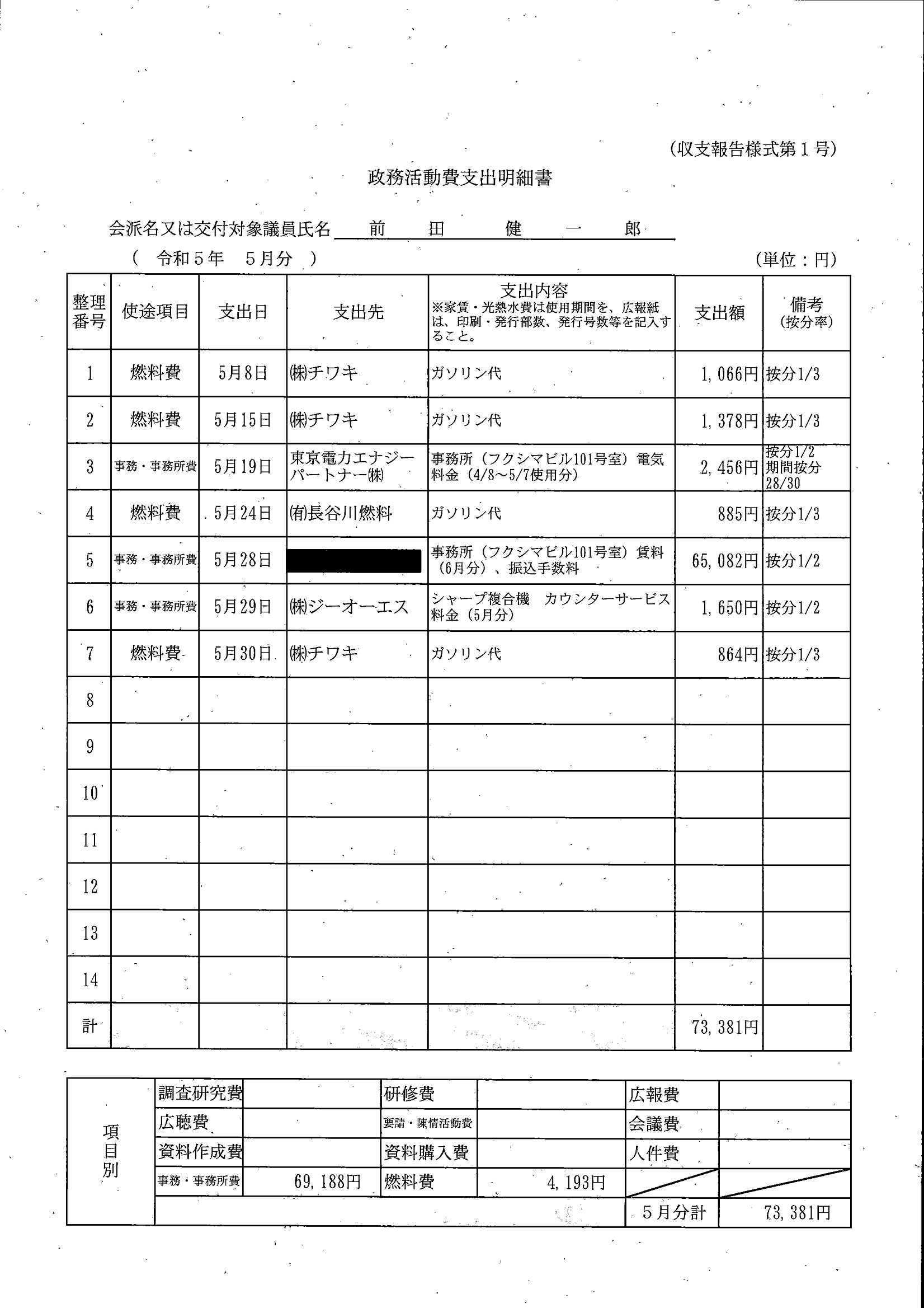 千葉市議会トップページ > 広報・情報公開 > 政務活動費 > 令和5年度交付分(政務活動費収支報告書)