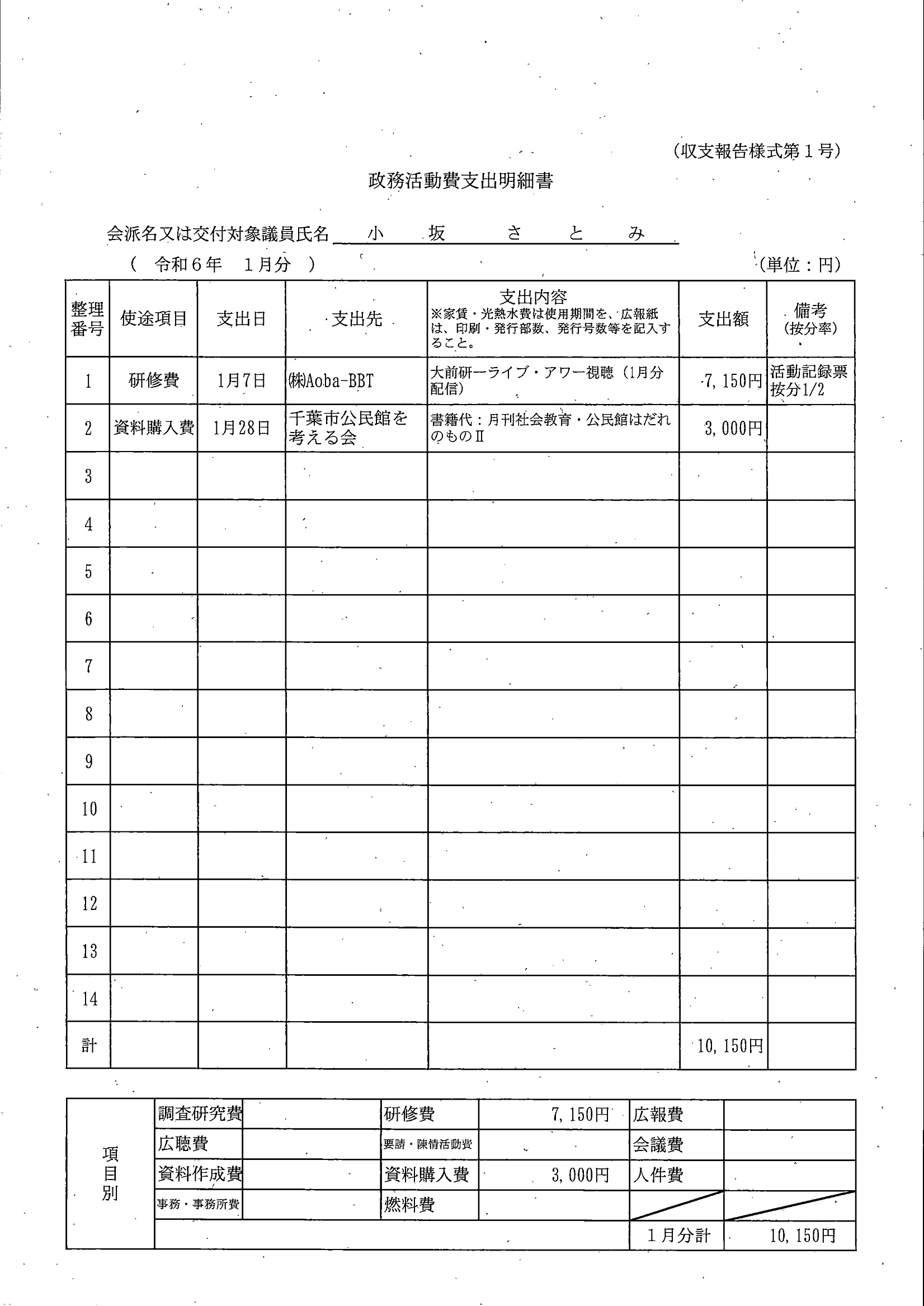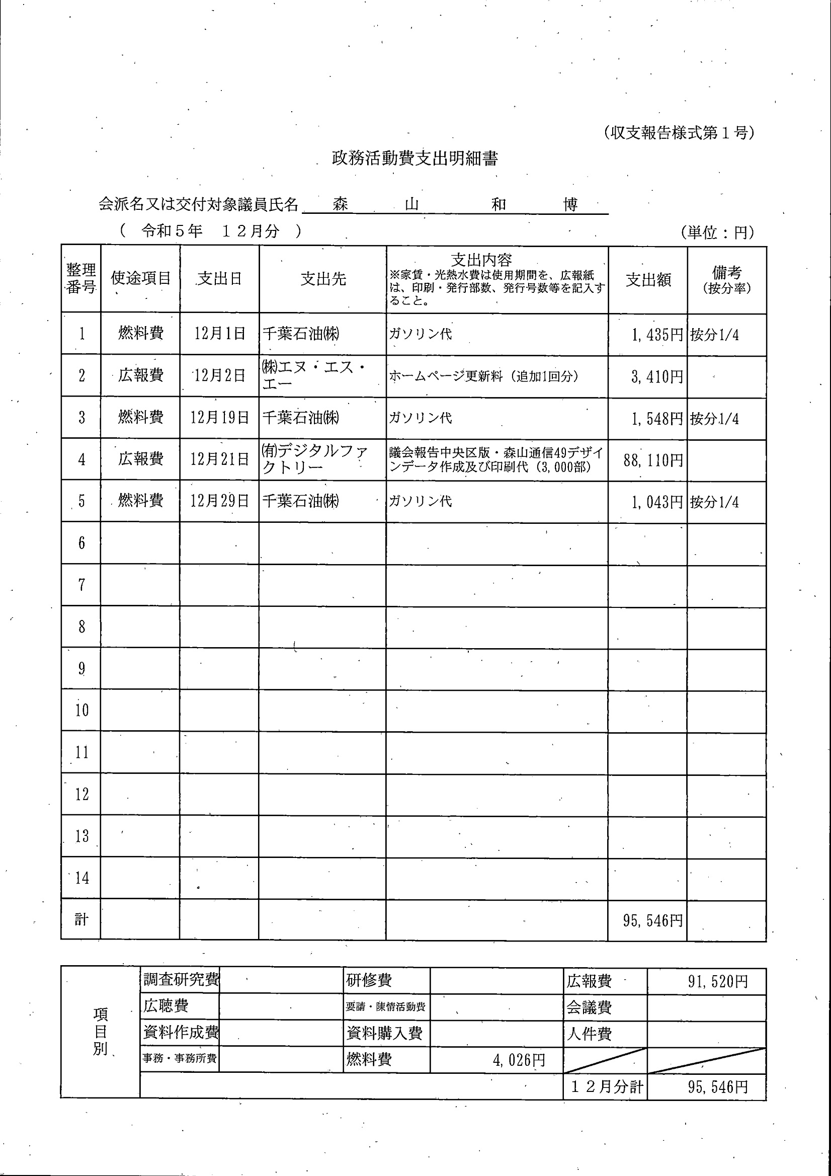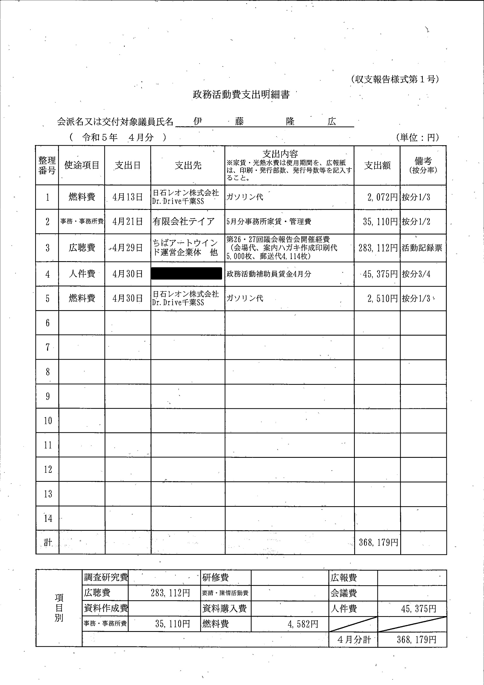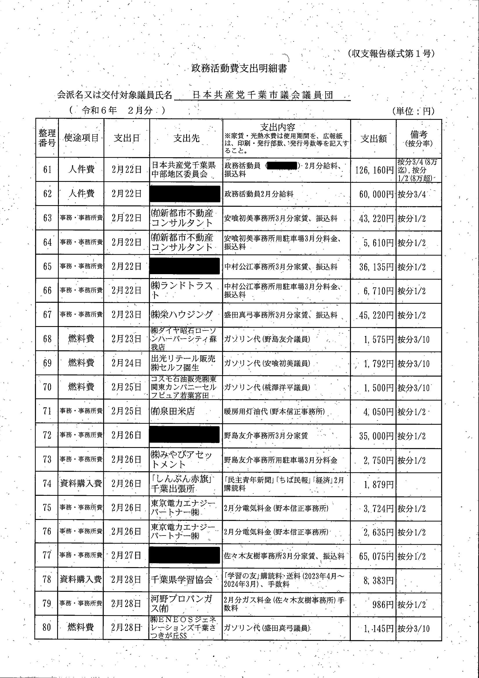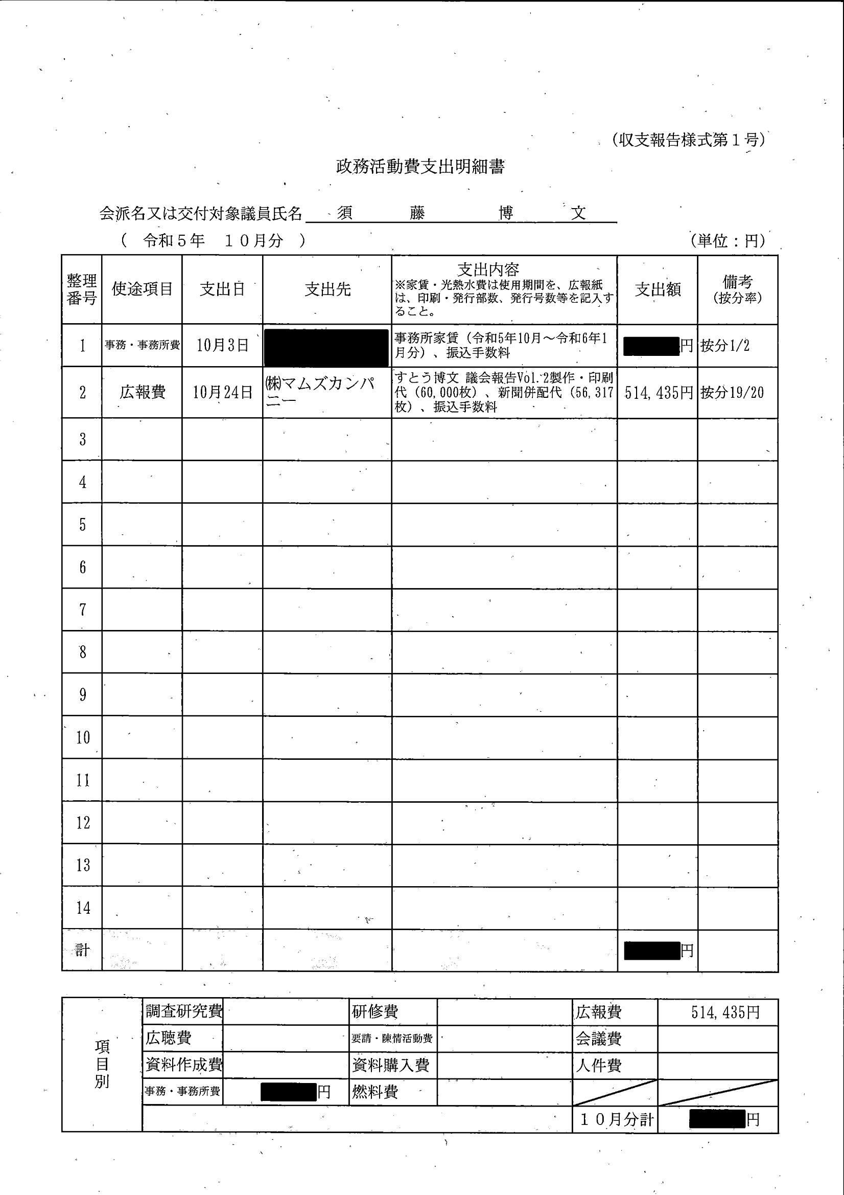 千葉市議会トップページ > 広報・情報公開 > 政務活動費 > 令和5年度交付分(政務活動費収支報告書)