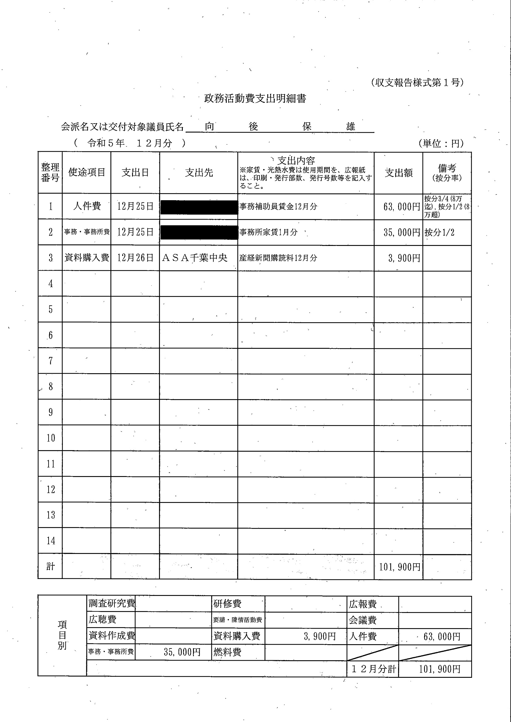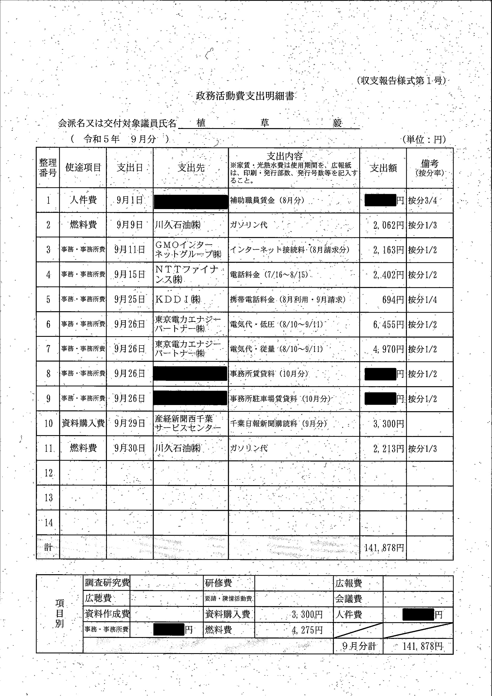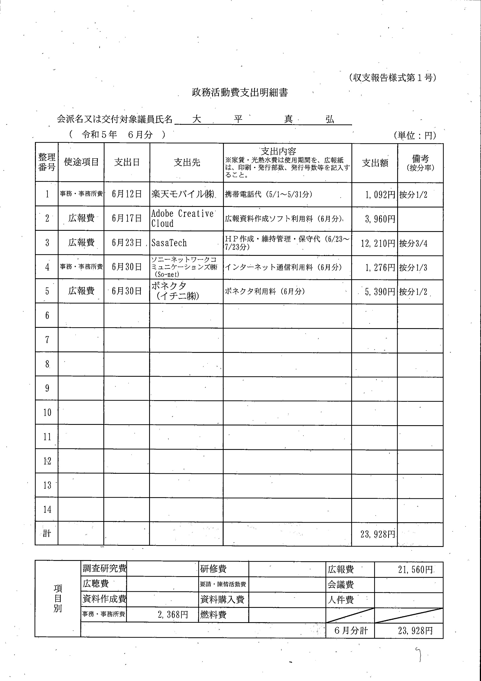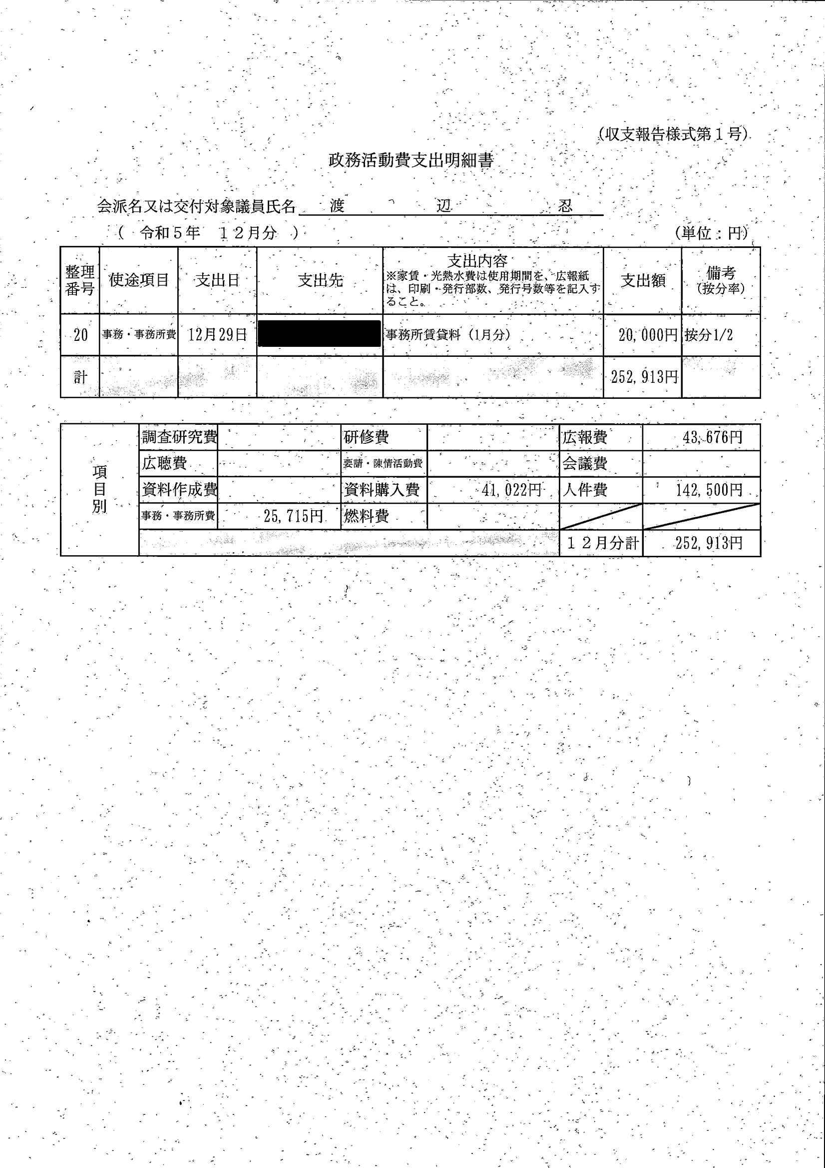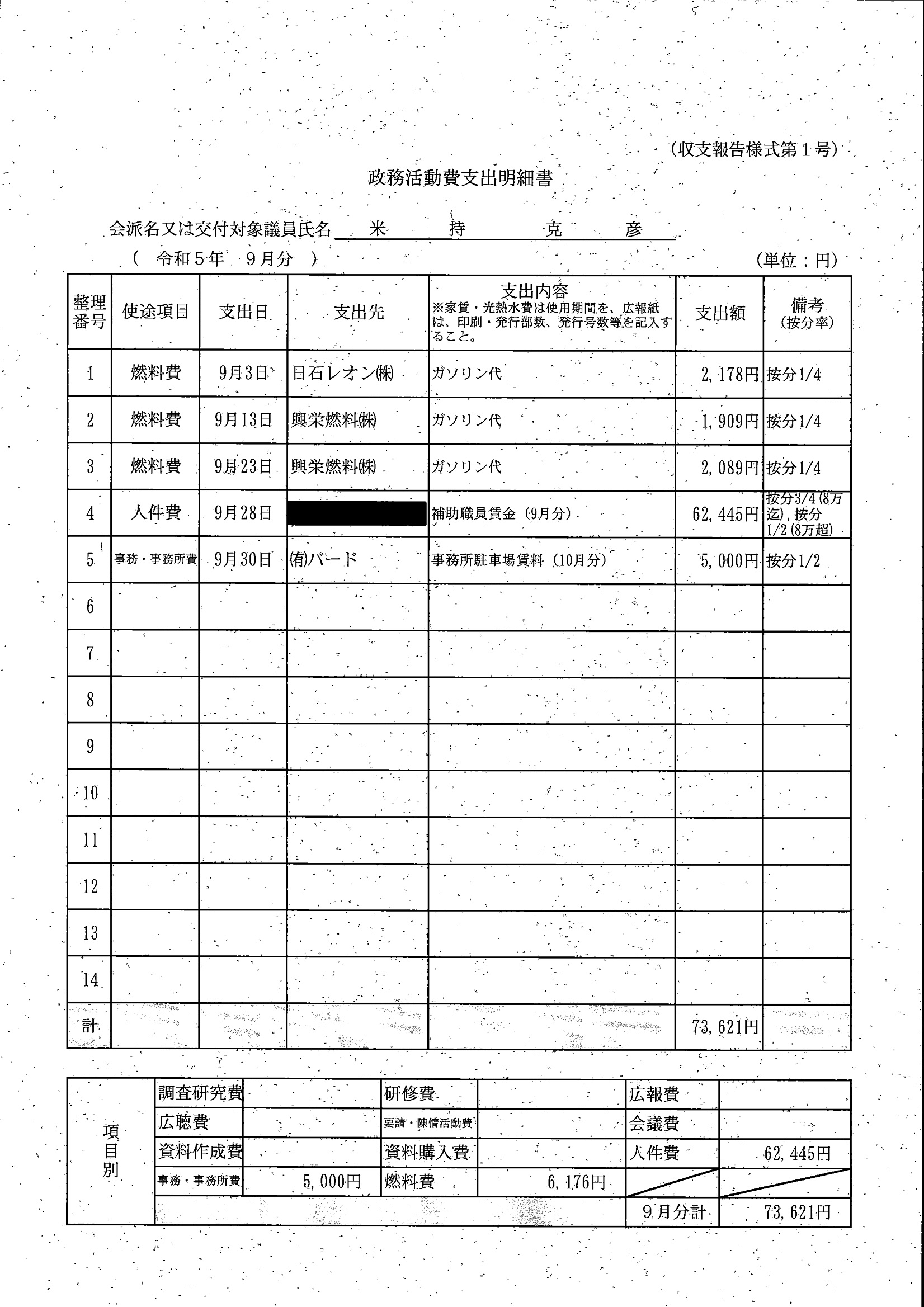 千葉市議会トップページ > 広報・情報公開 > 政務活動費 > 令和5年度交付分(政務活動費収支報告書)