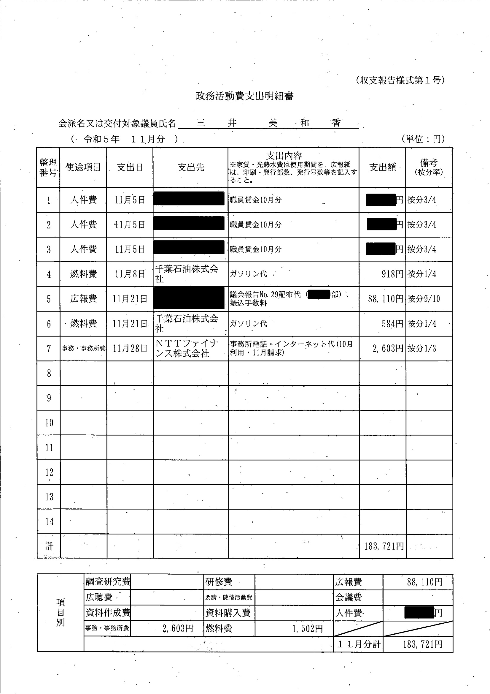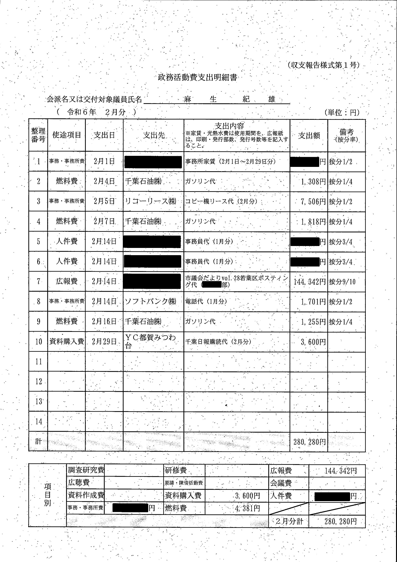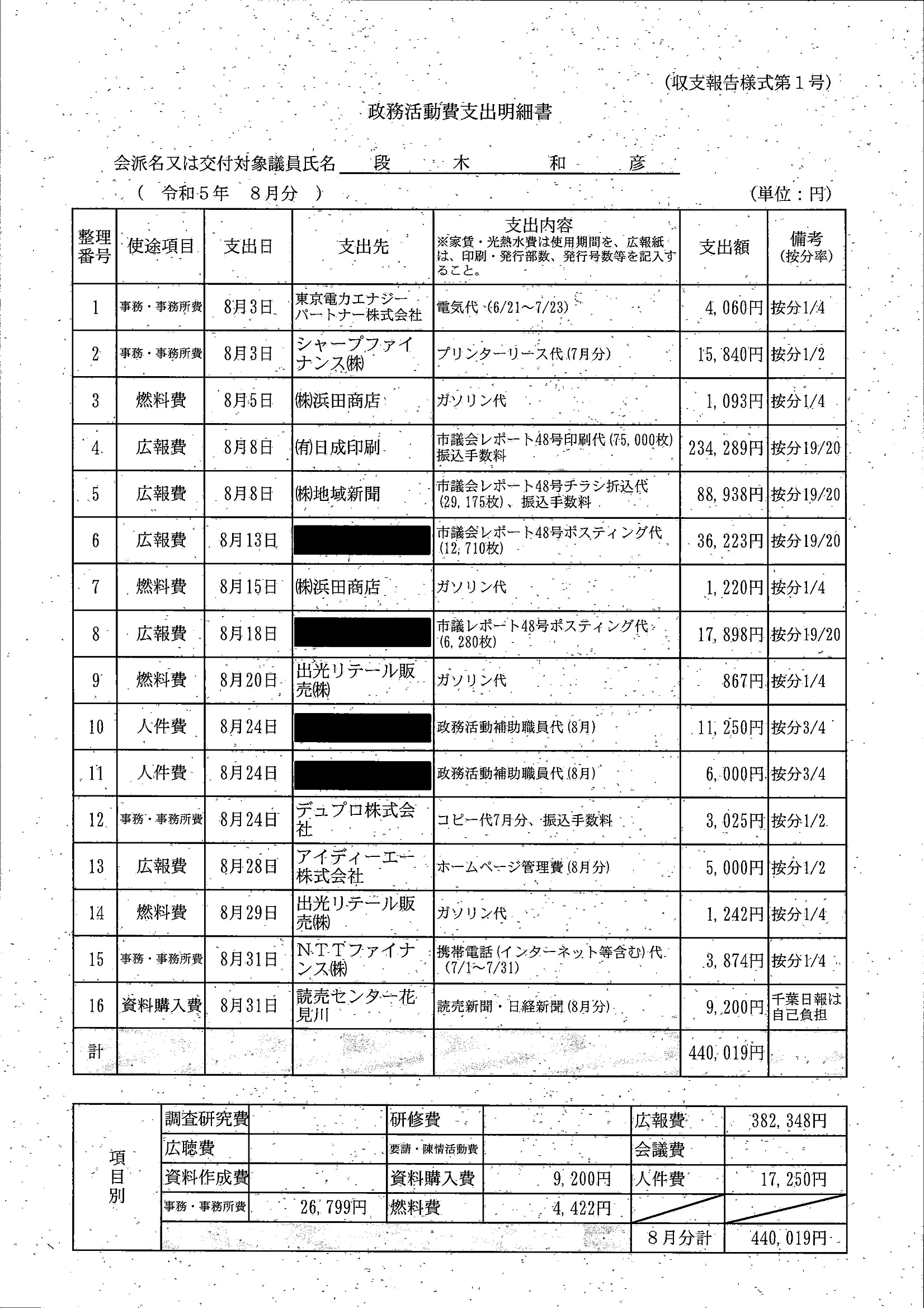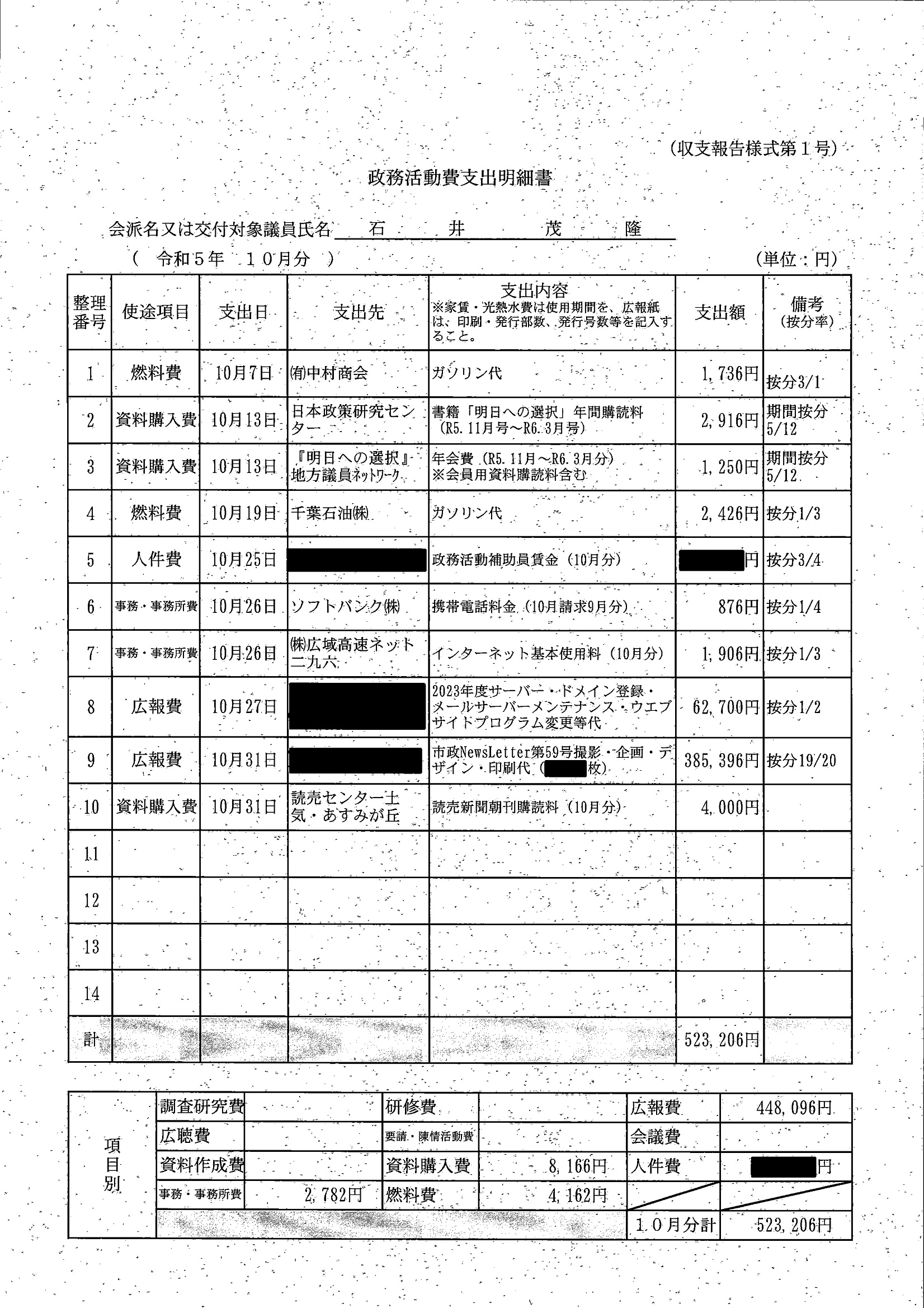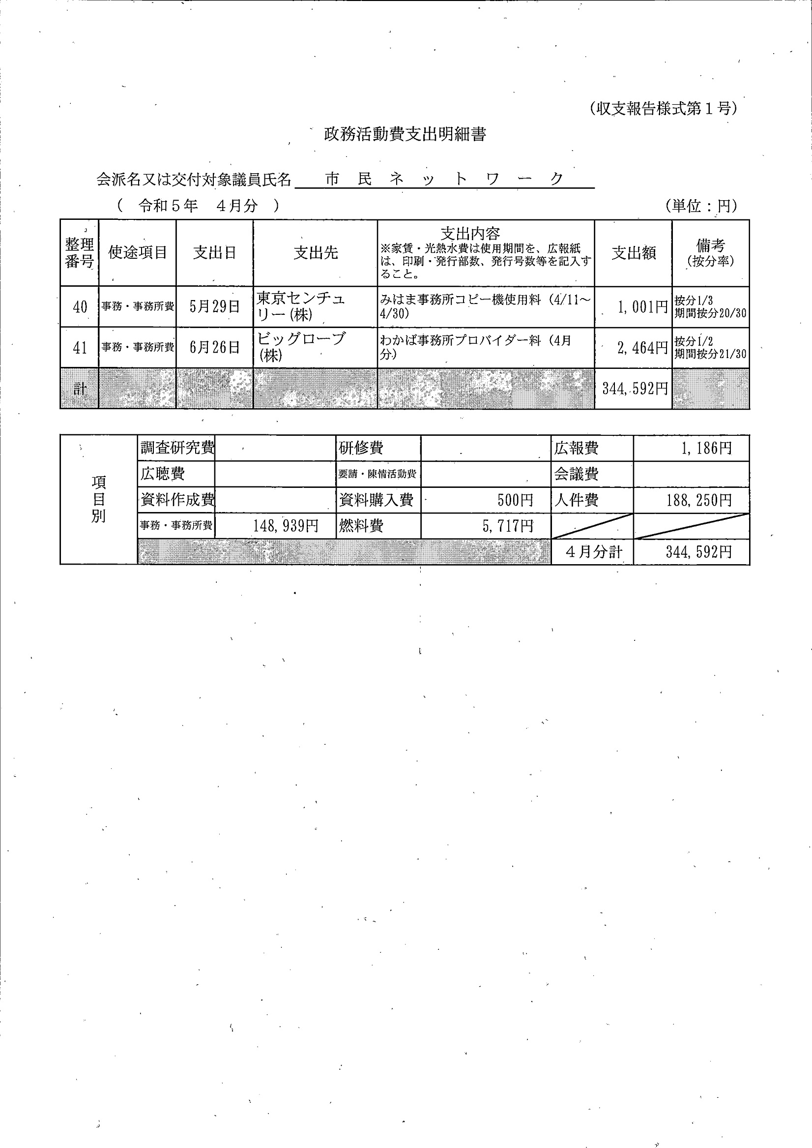 千葉市議会トップページ > 広報・情報公開 > 政務活動費 > 令和5年度交付分(政務活動費収支報告書)