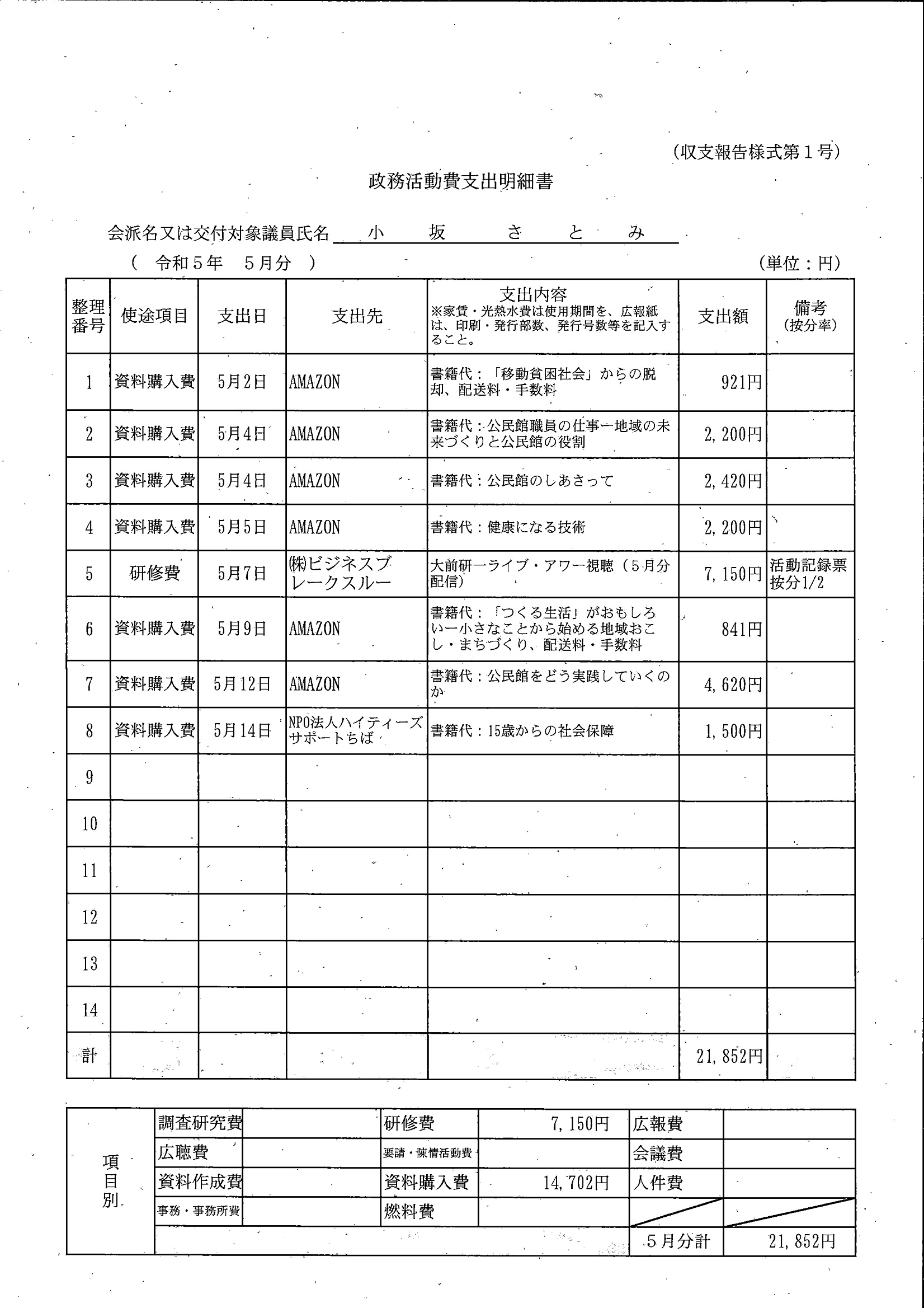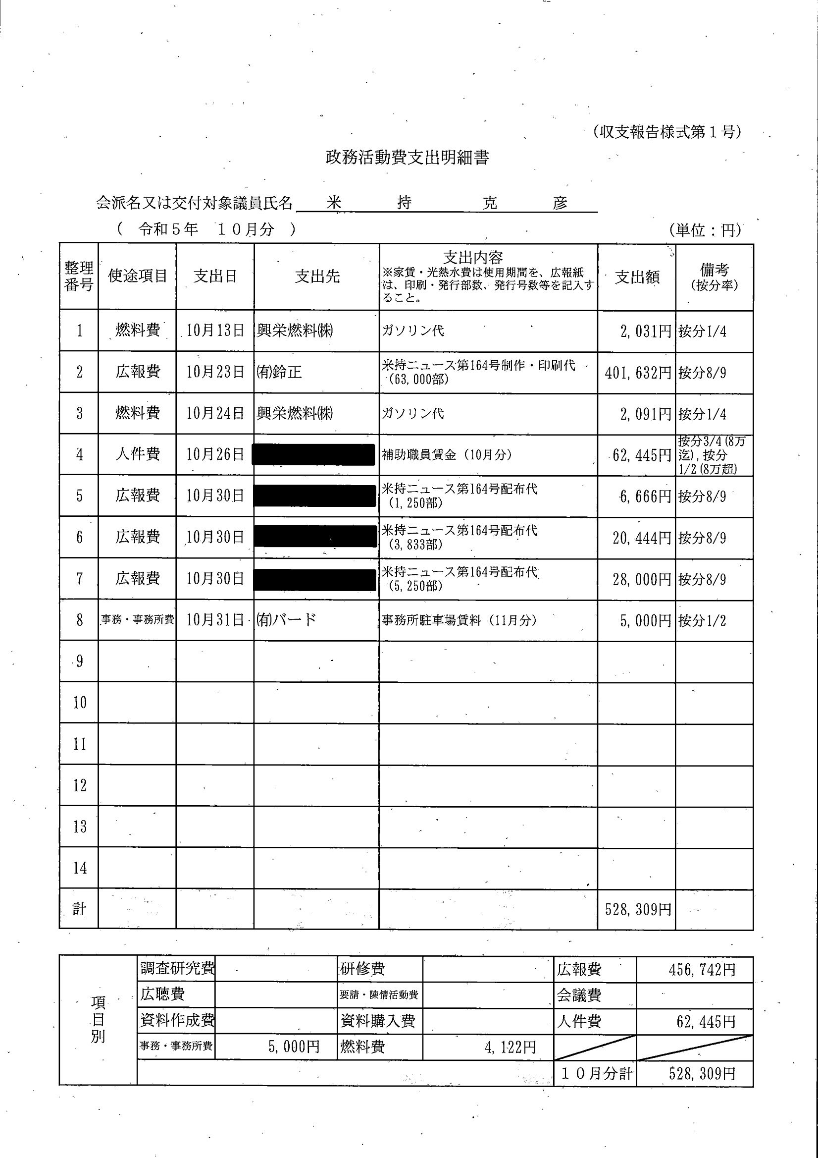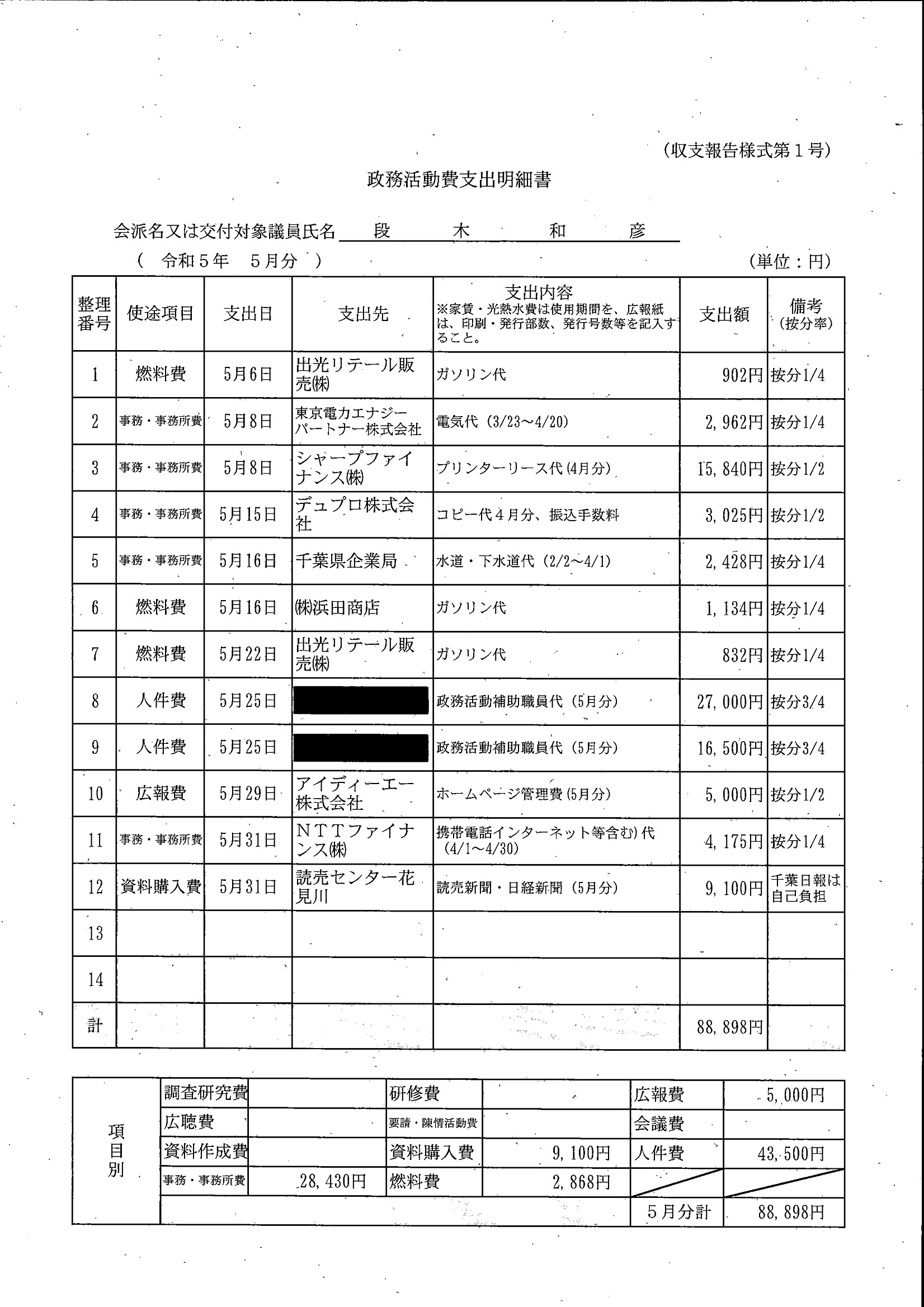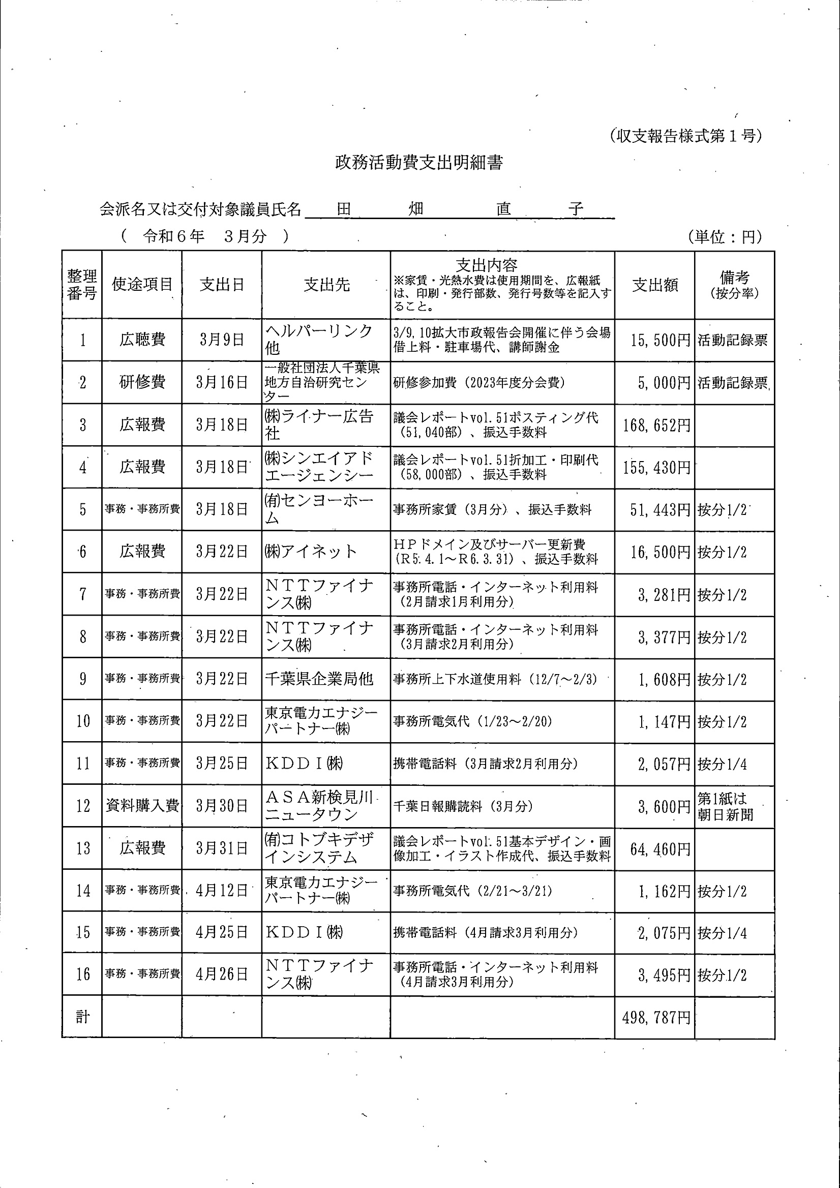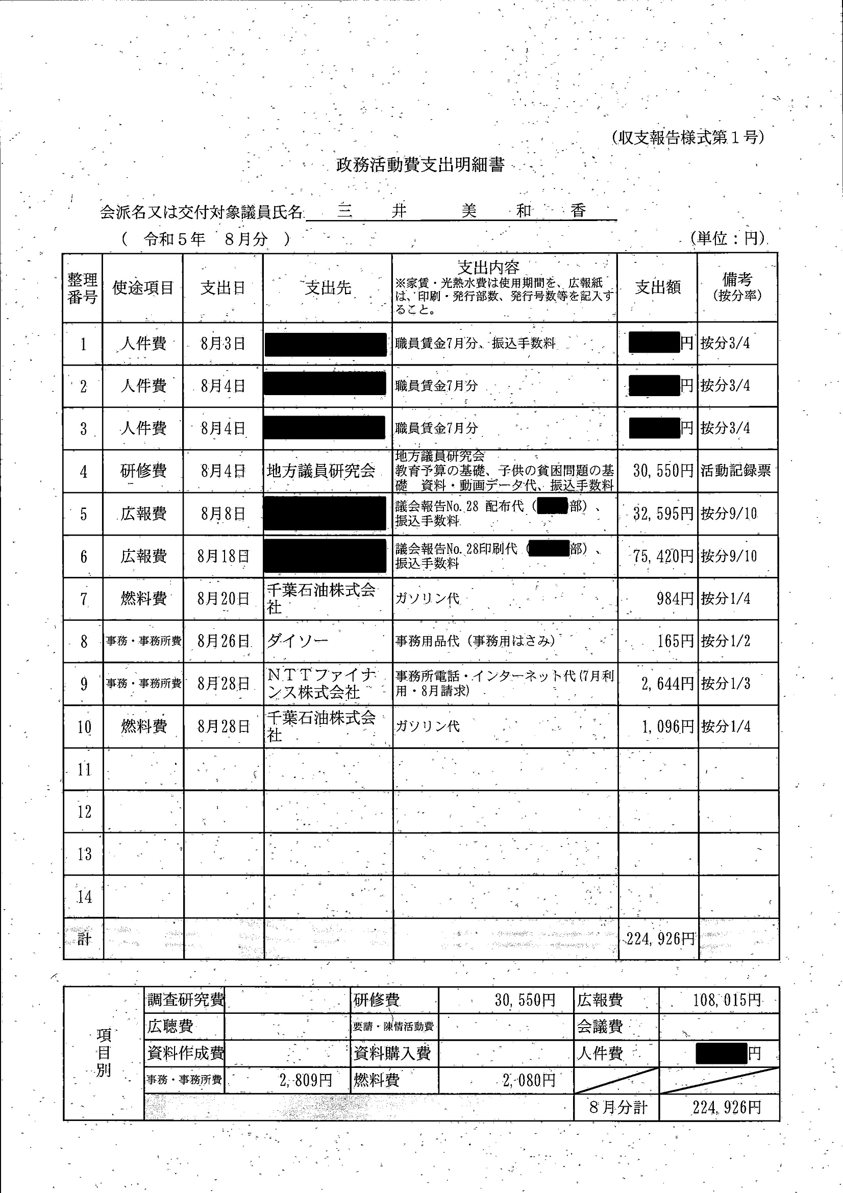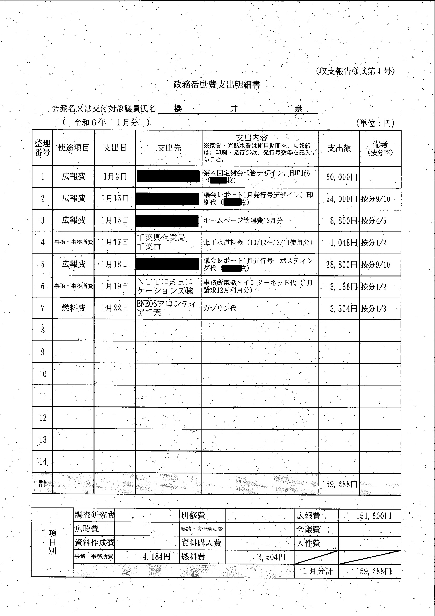 千葉市議会トップページ > 広報・情報公開 > 政務活動費 > 令和5年度交付分(政務活動費収支報告書)