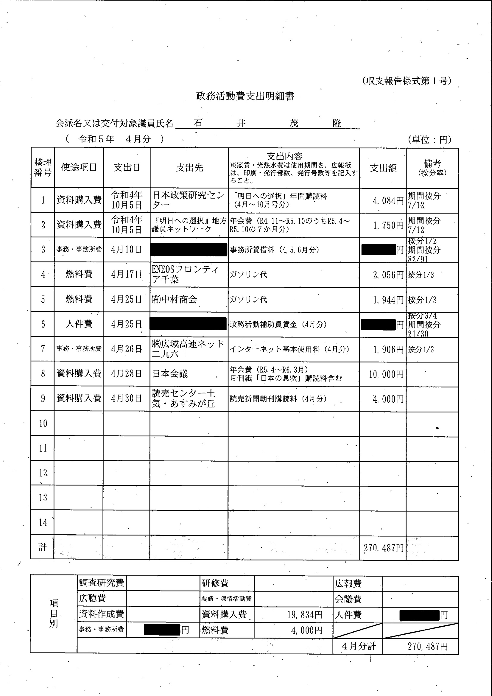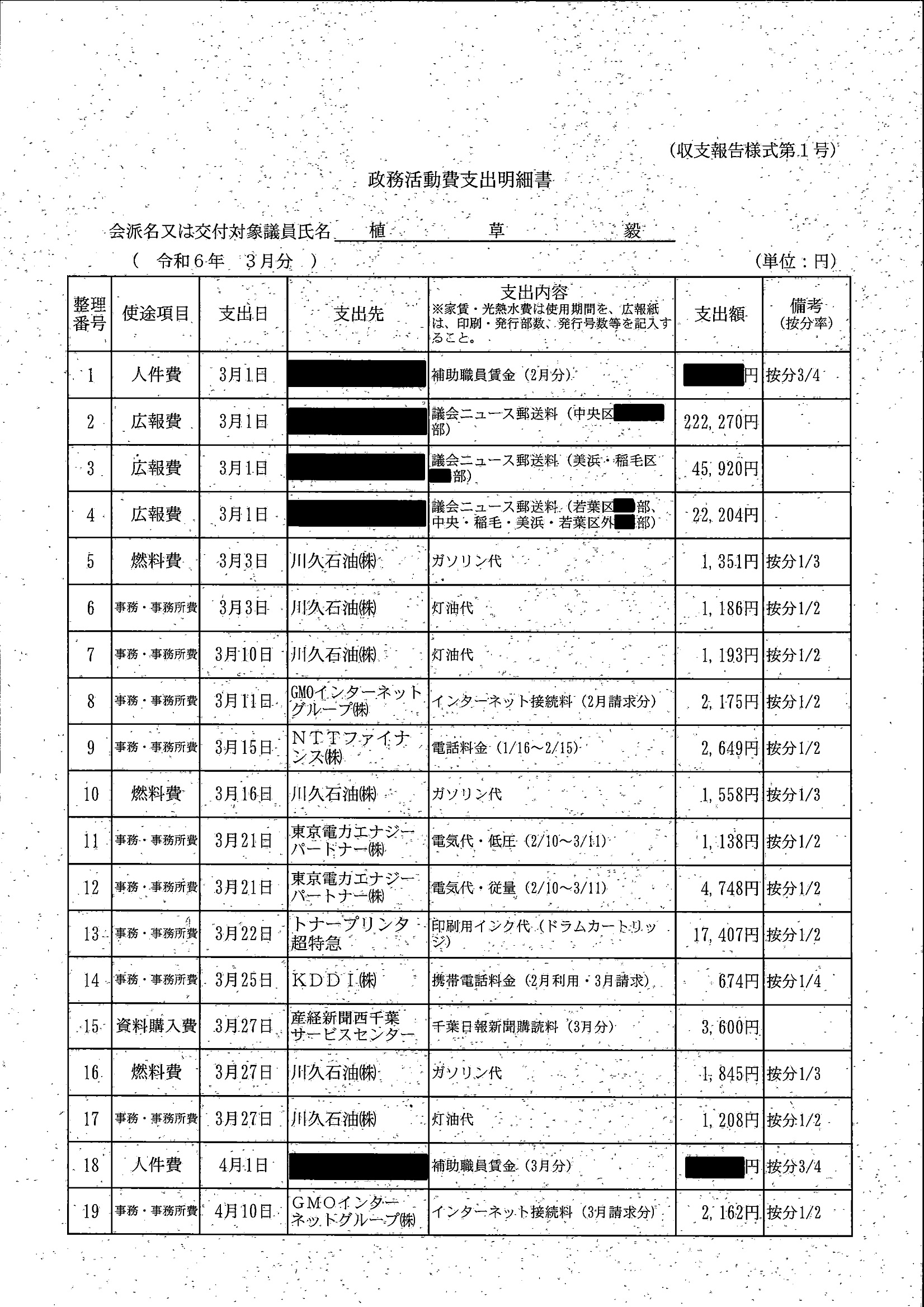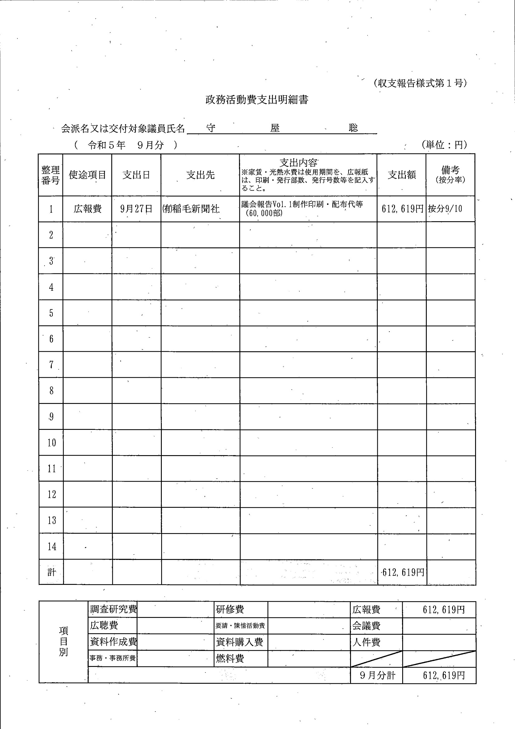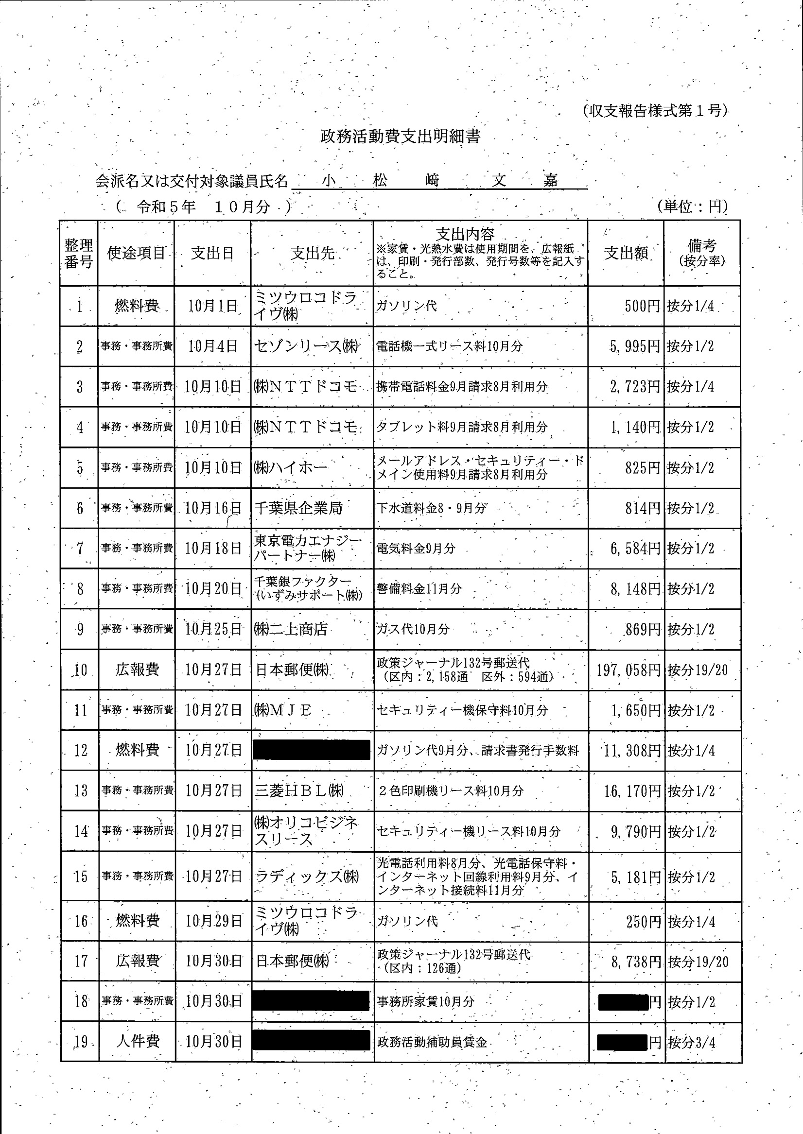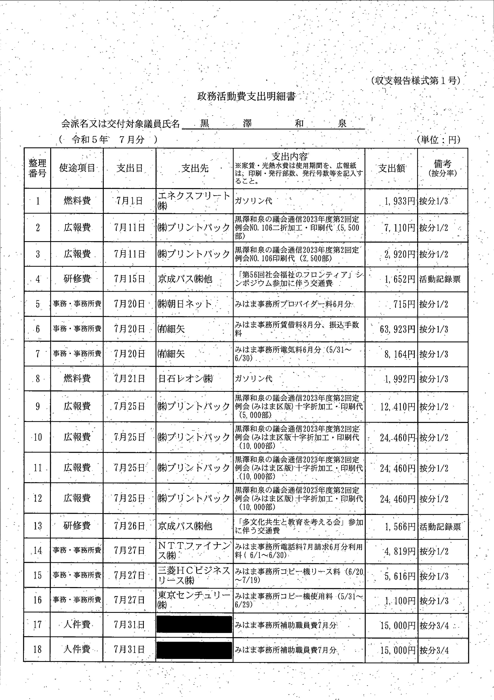 千葉市議会トップページ > 広報・情報公開 > 政務活動費 > 令和5年度交付分(政務活動費収支報告書)
