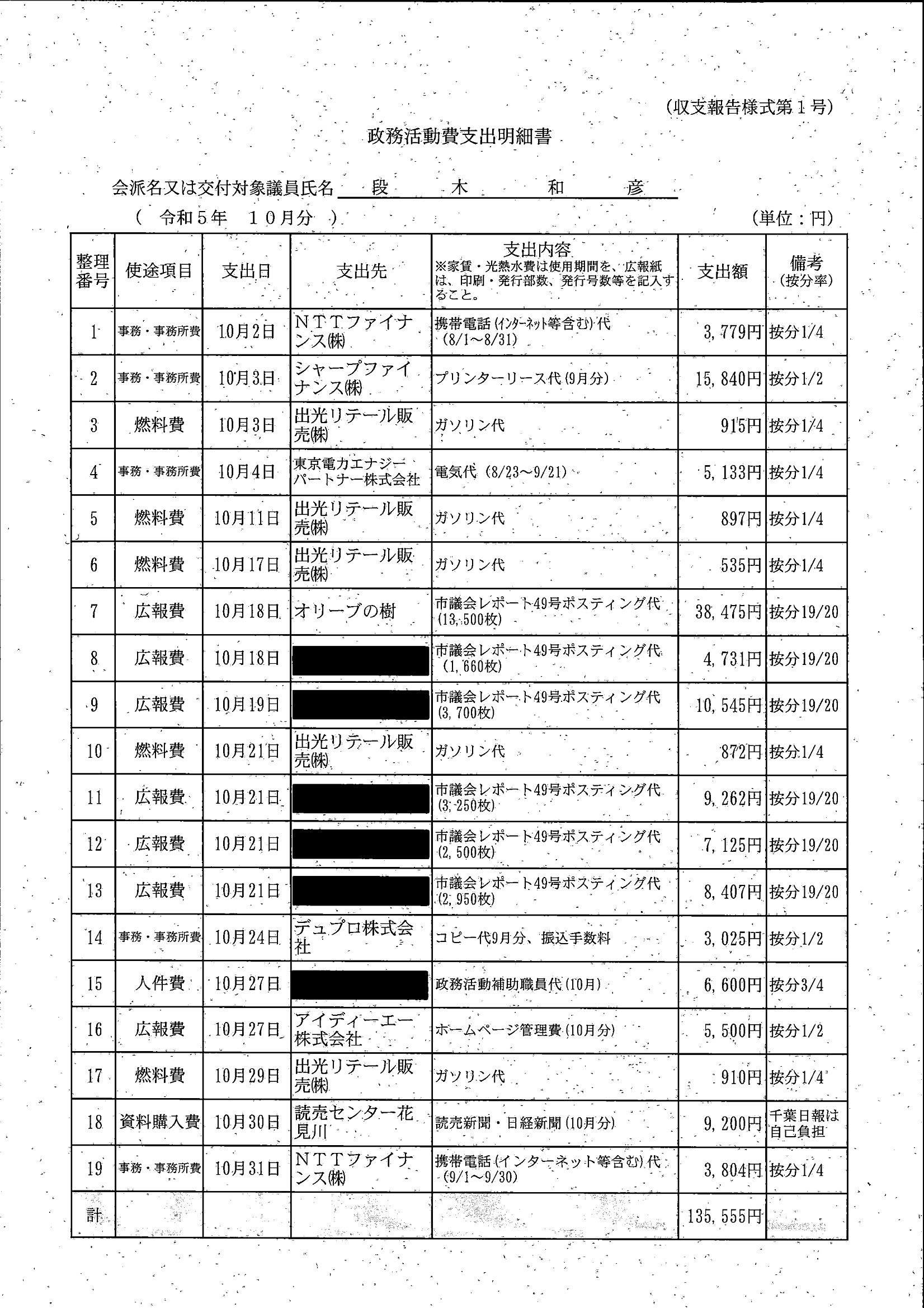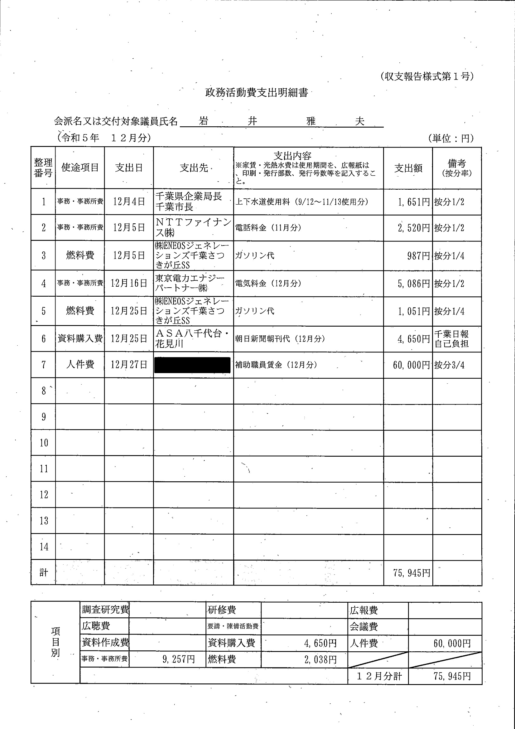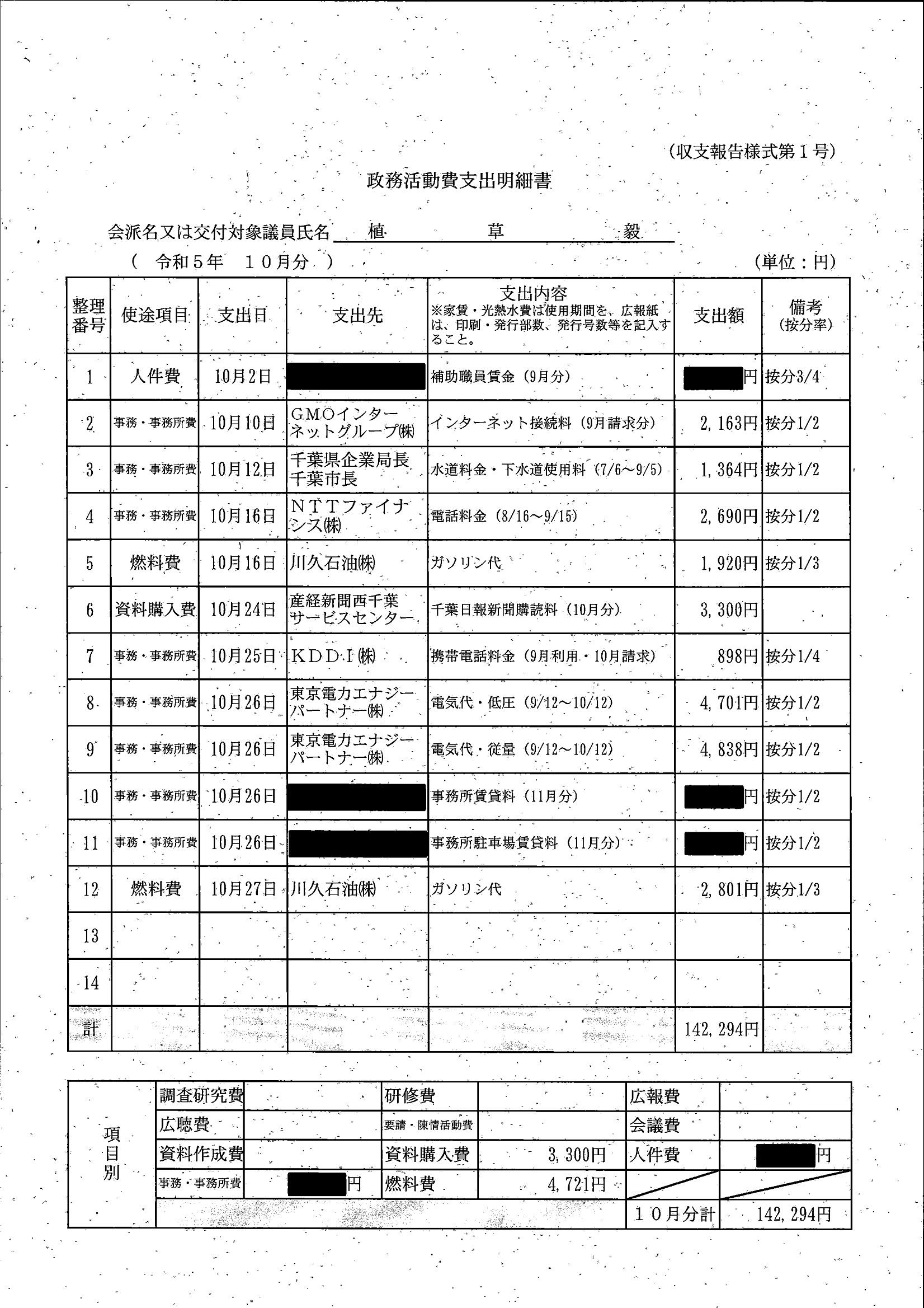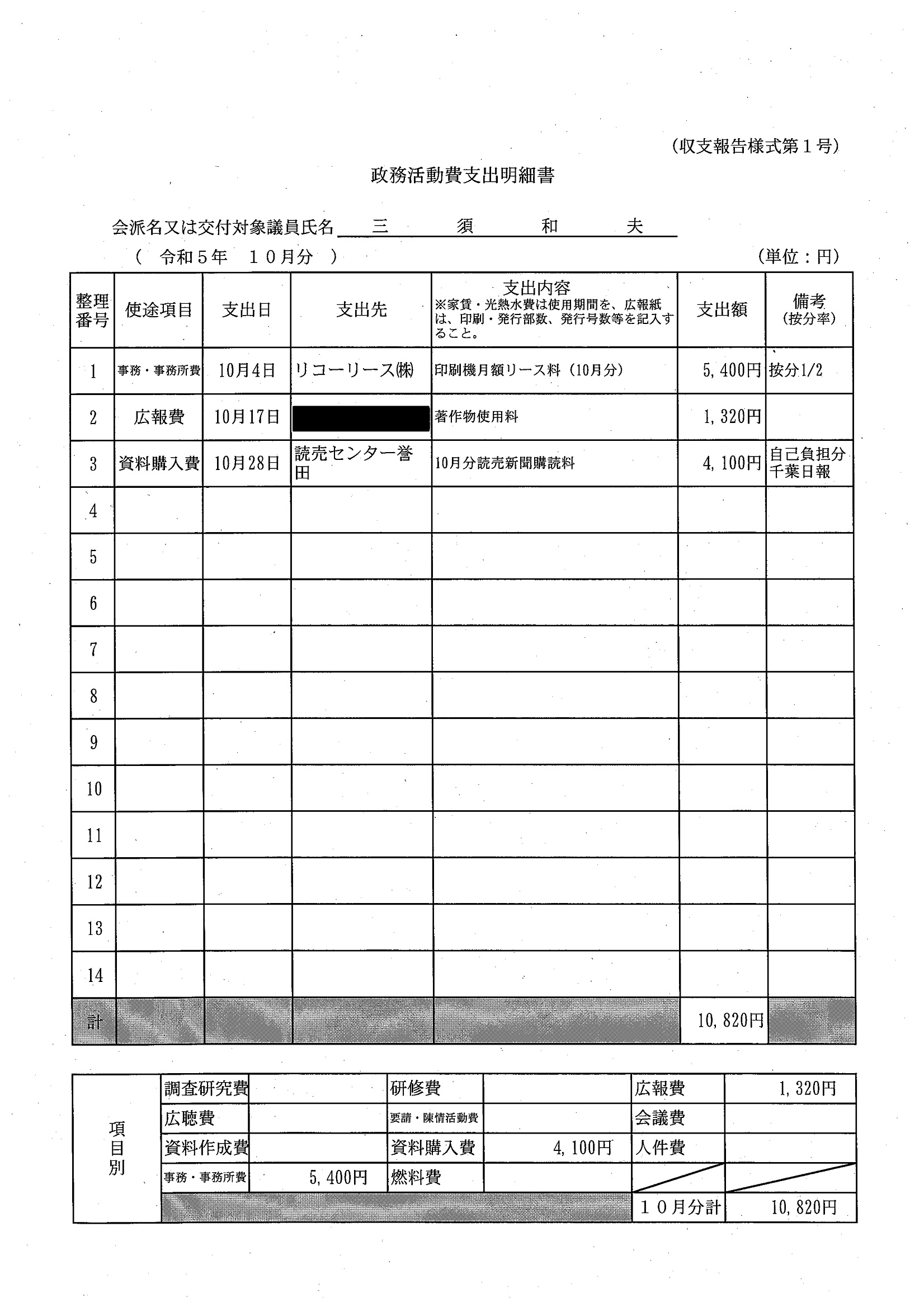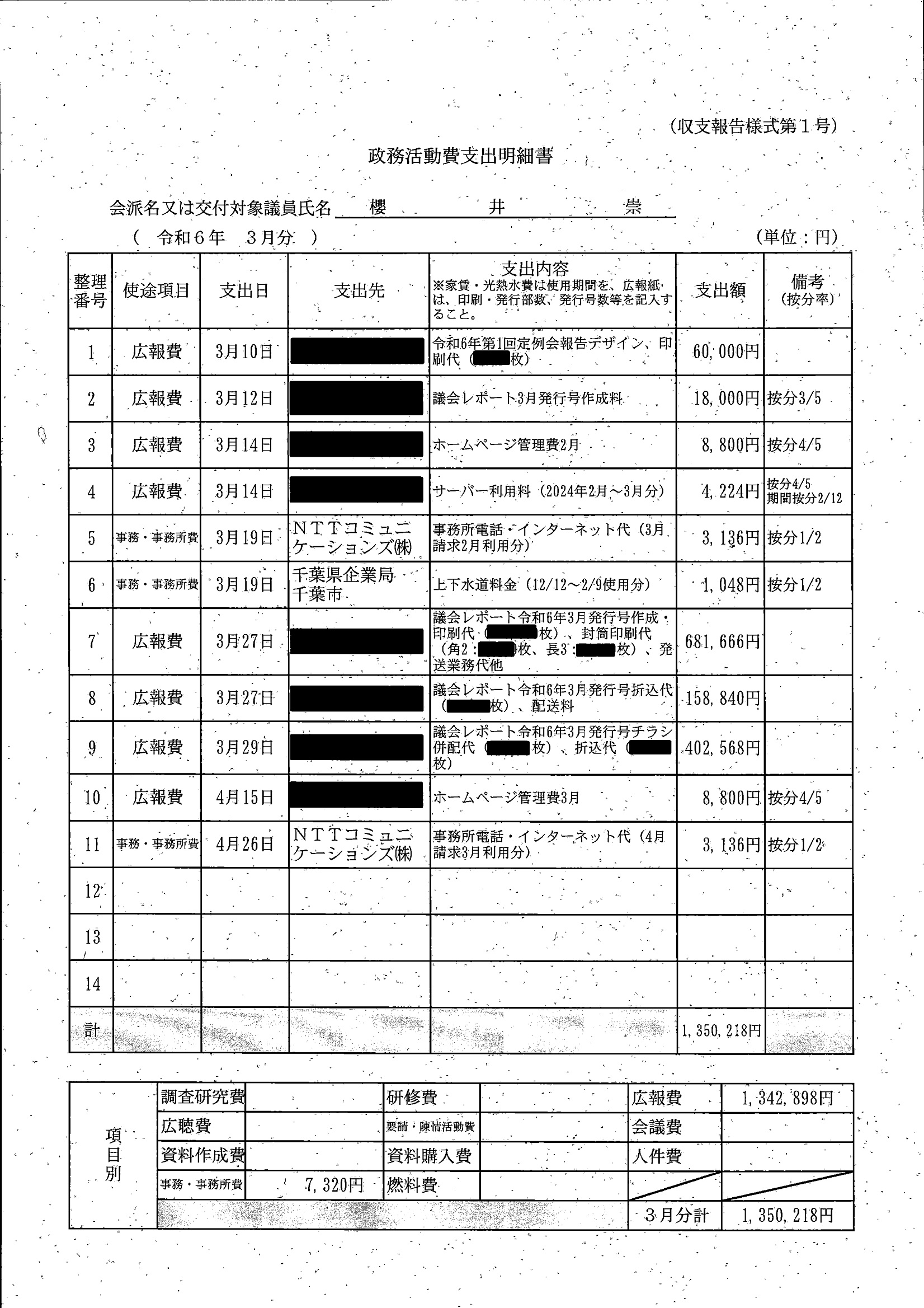 千葉市議会トップページ > 広報・情報公開 > 政務活動費 > 令和5年度交付分(政務活動費収支報告書)
