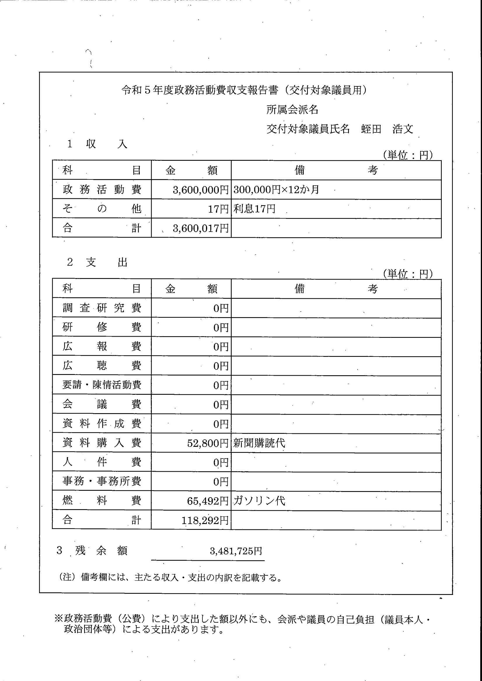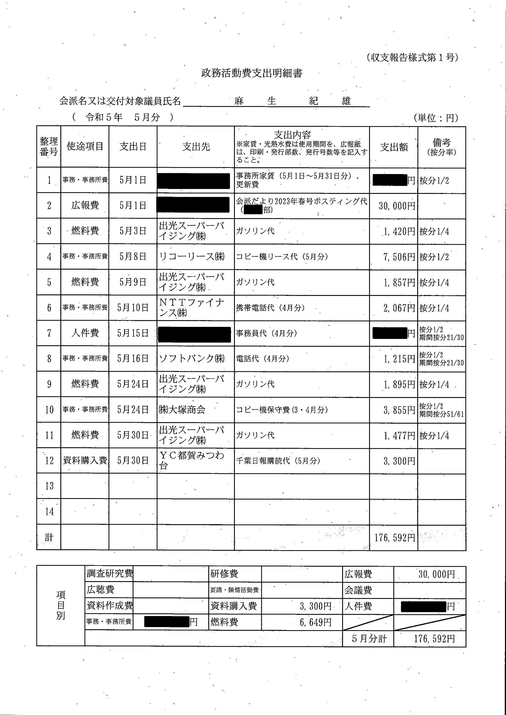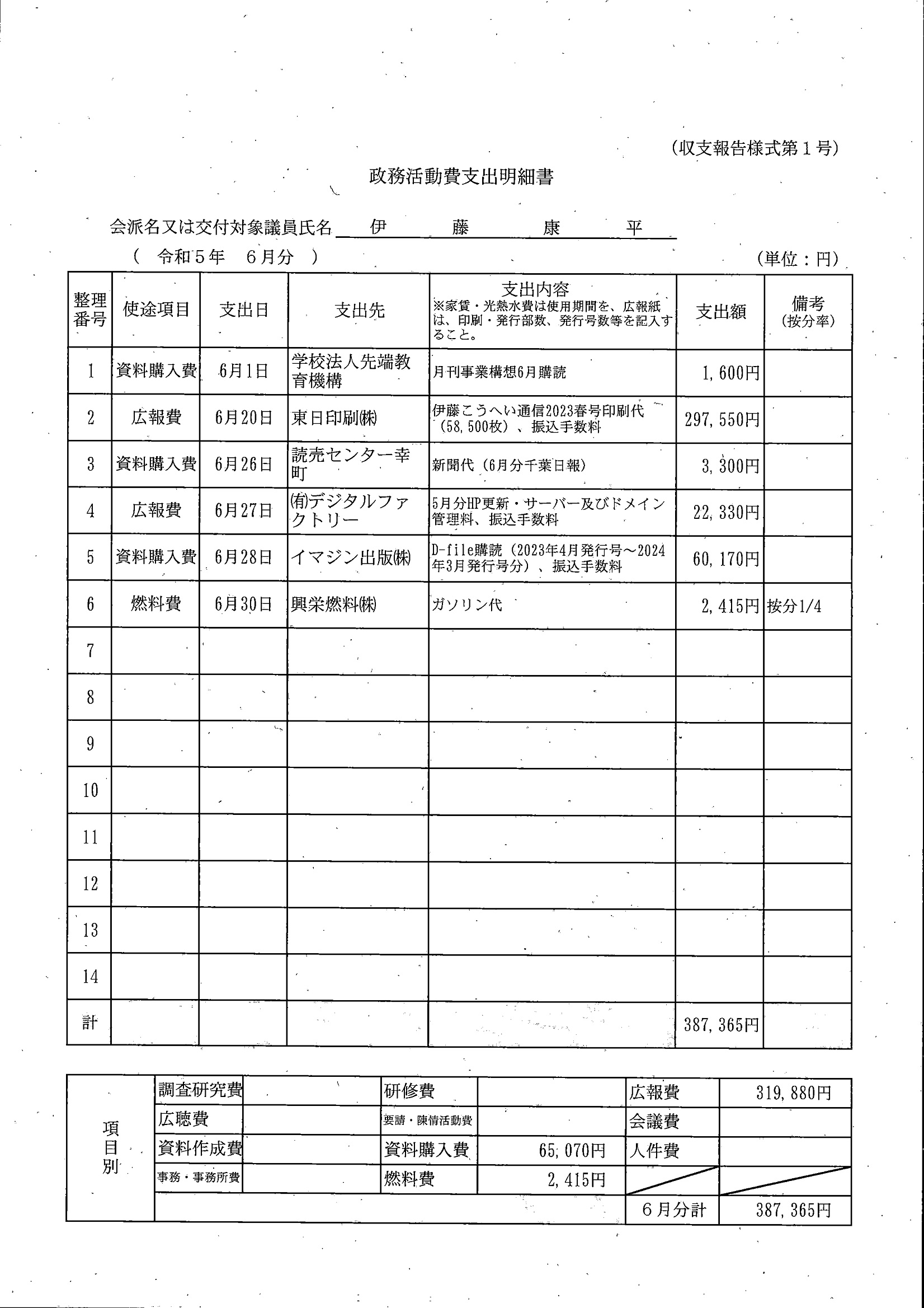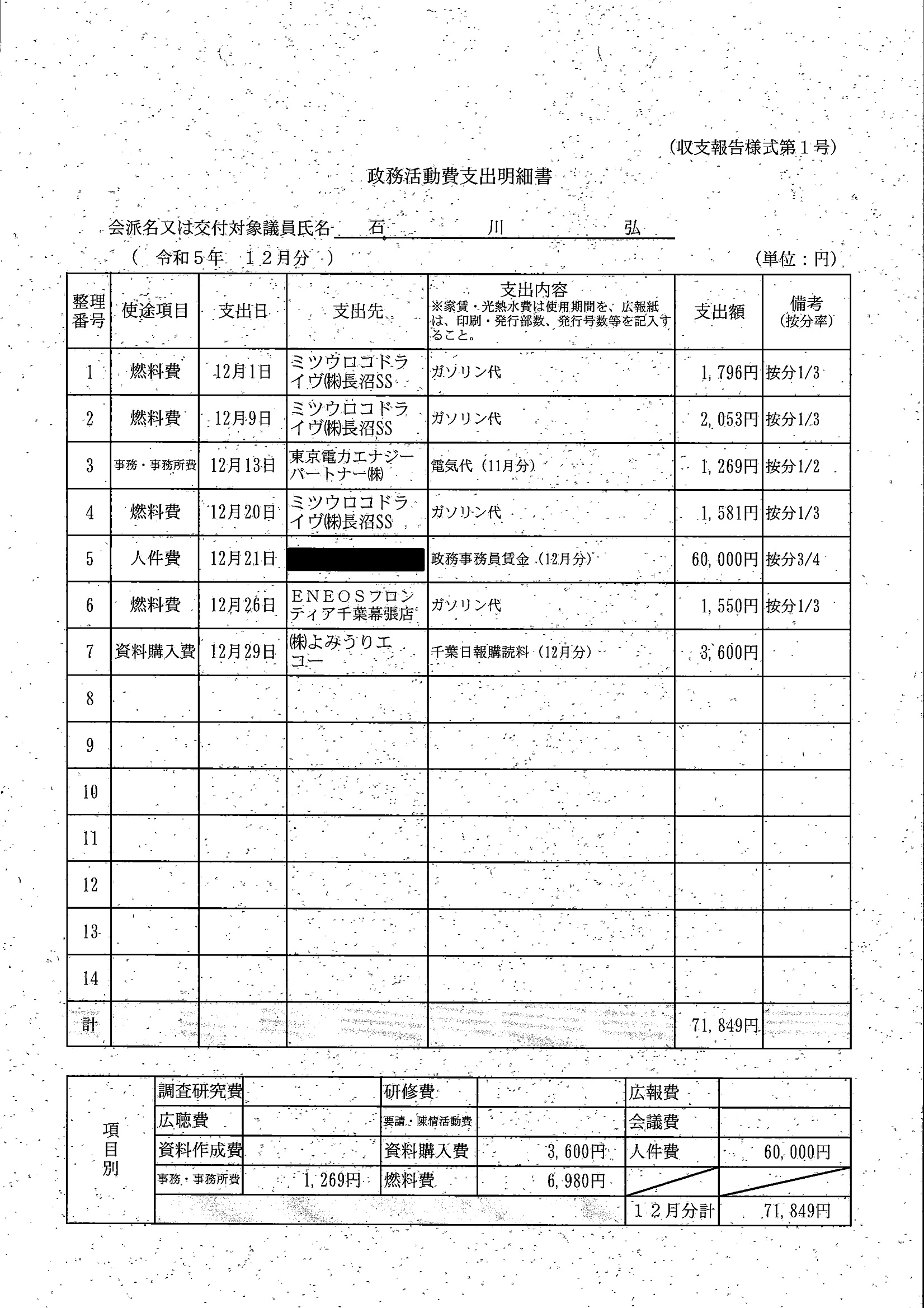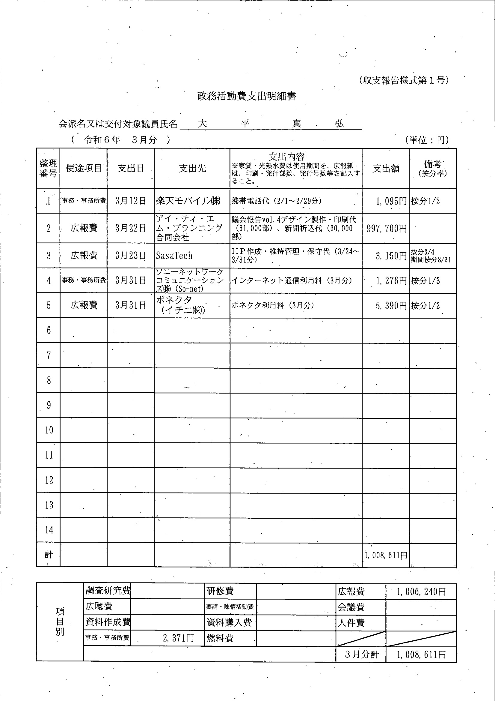 千葉市議会トップページ > 広報・情報公開 > 政務活動費 > 令和5年度交付分(政務活動費収支報告書)