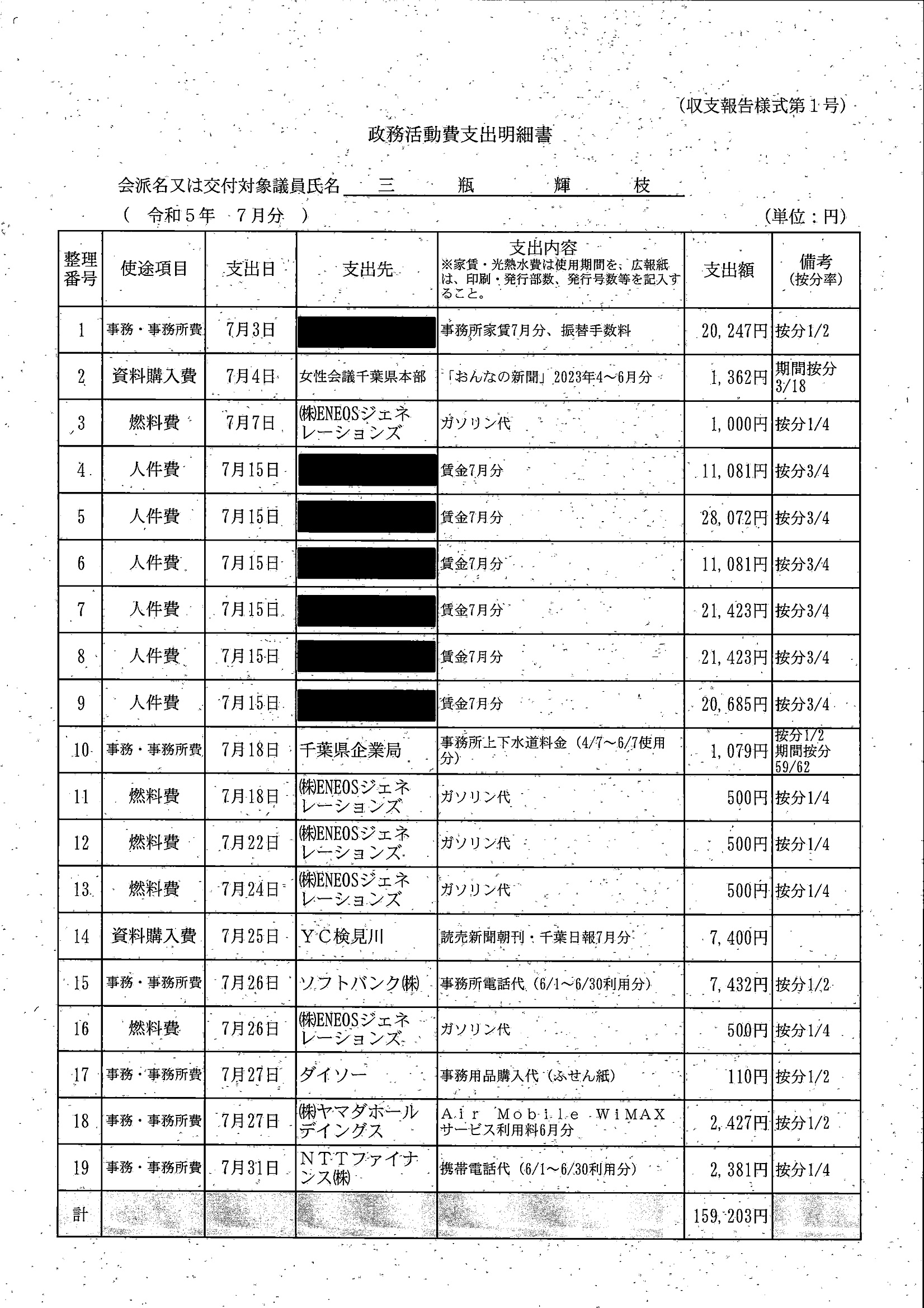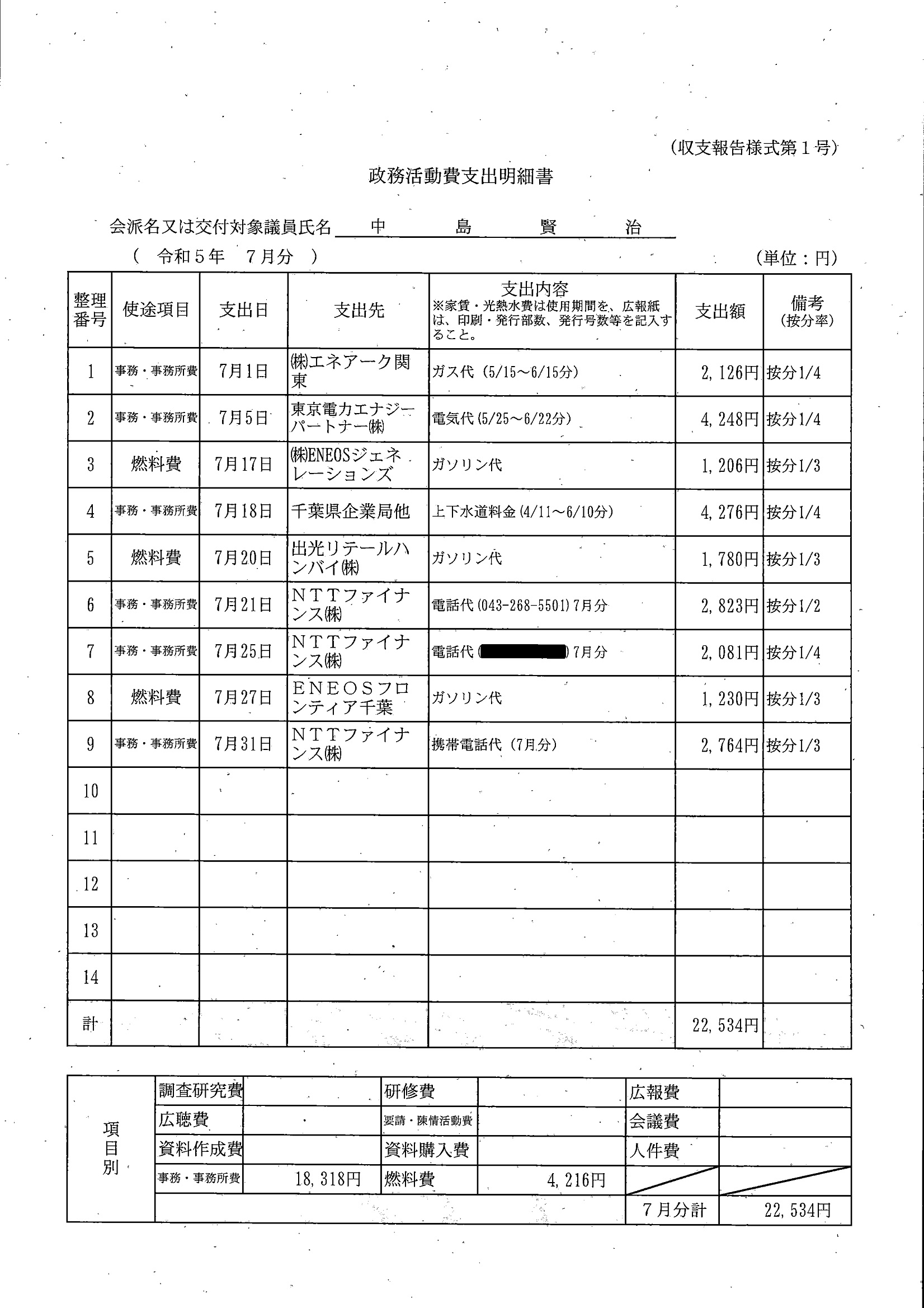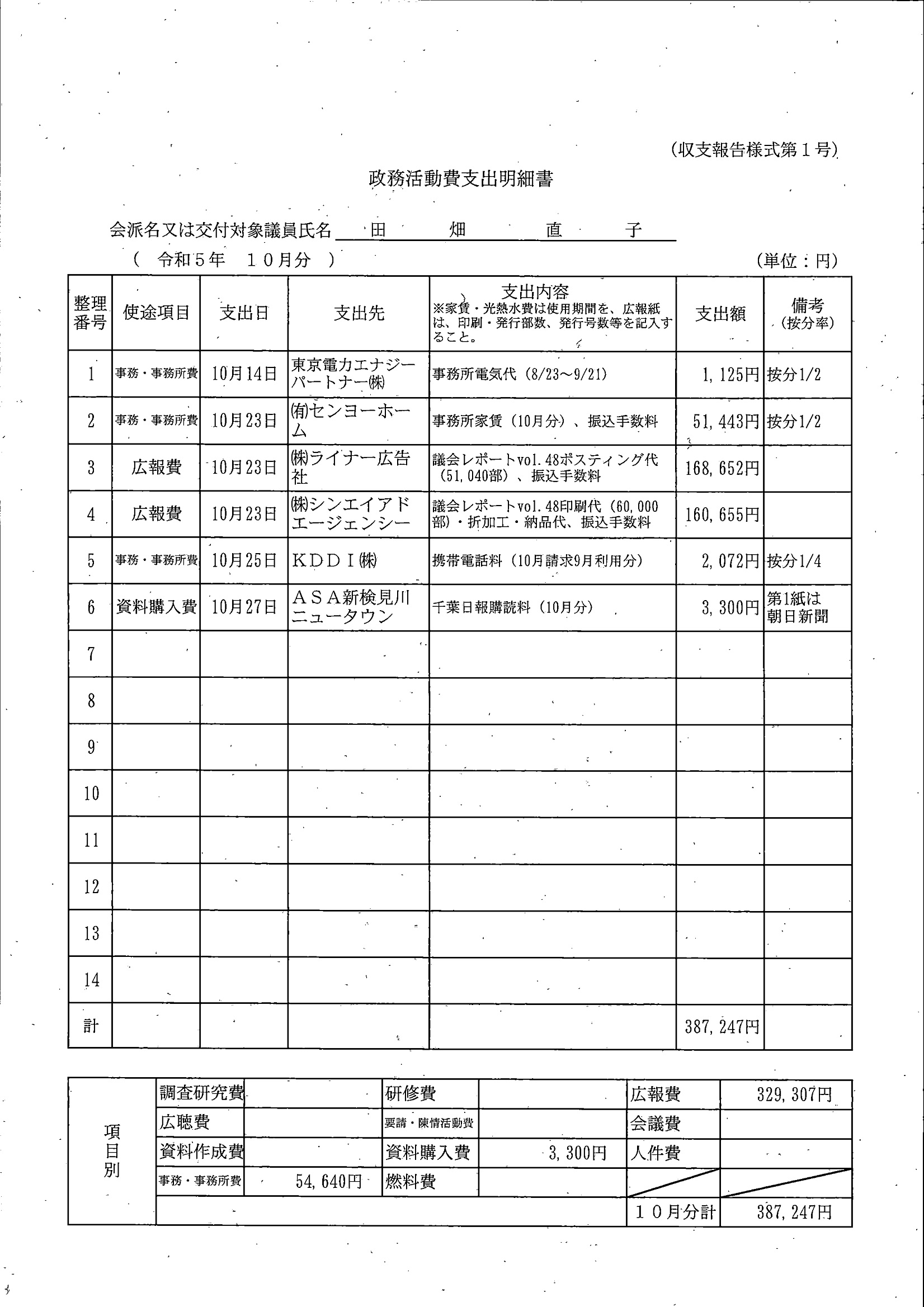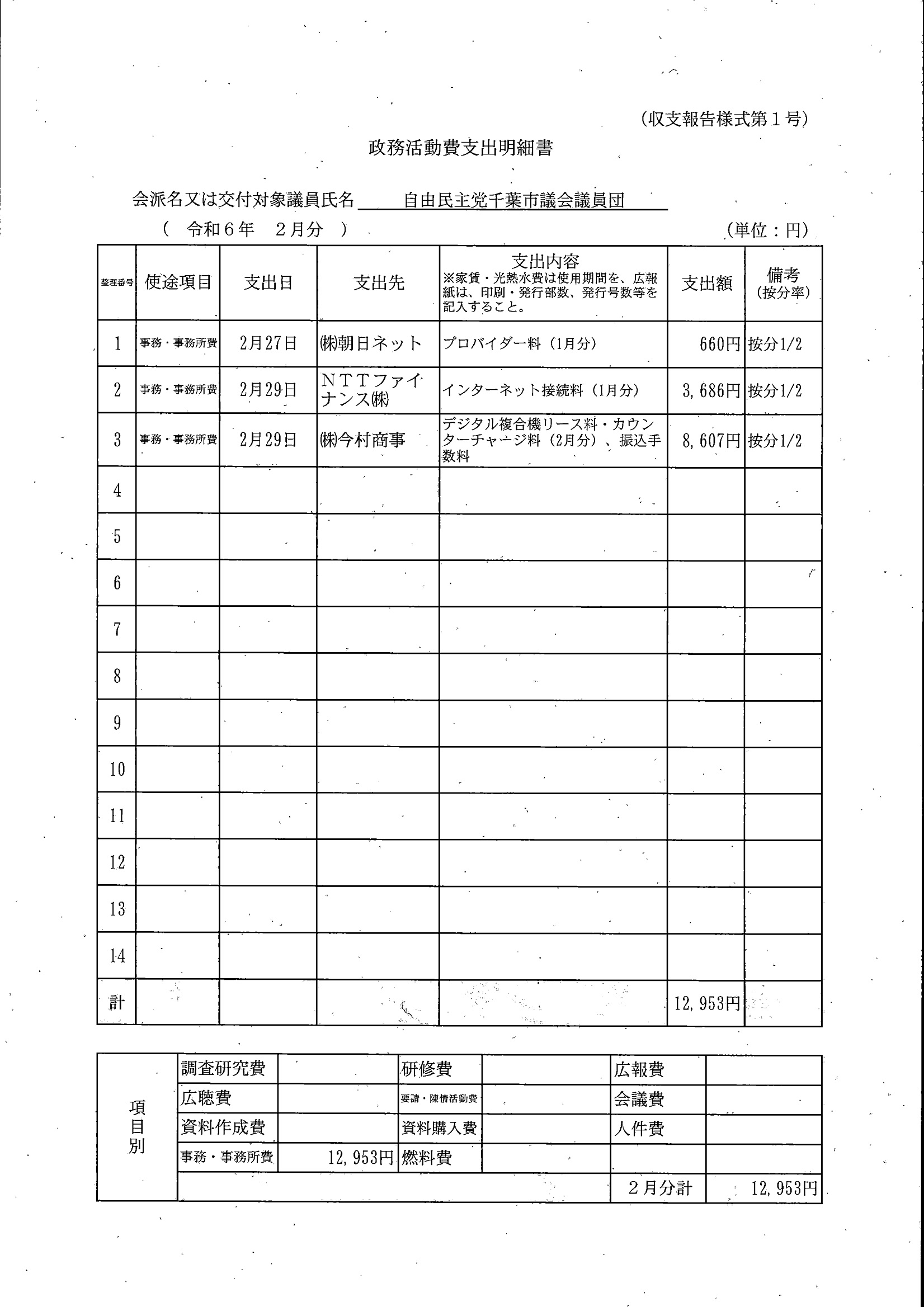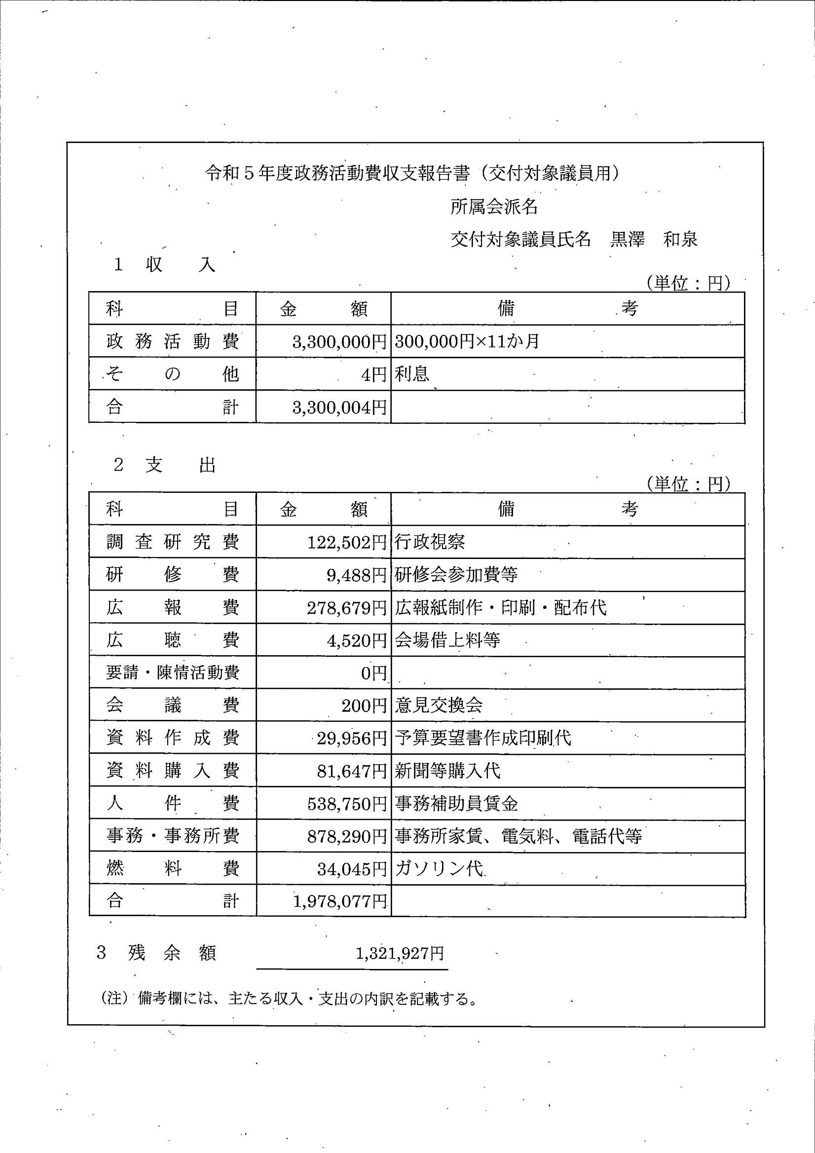 千葉市議会トップページ > 広報・情報公開 > 政務活動費 > 令和5年度交付分(政務活動費収支報告書)