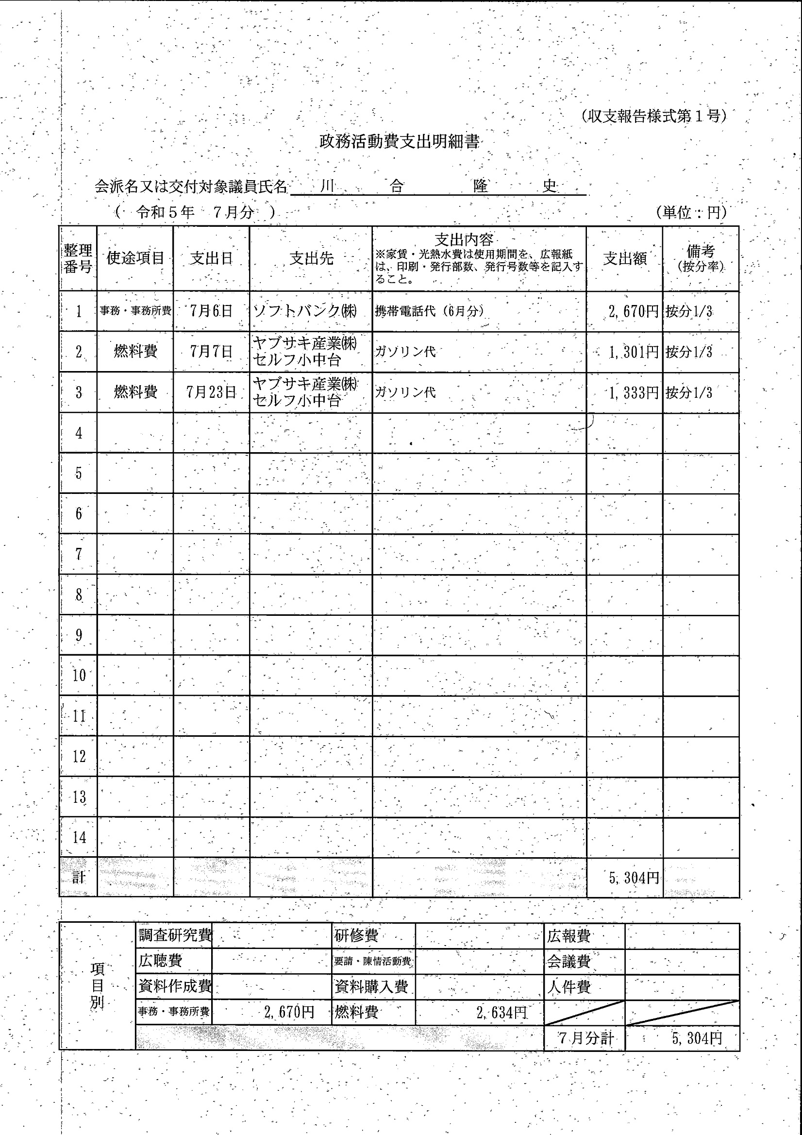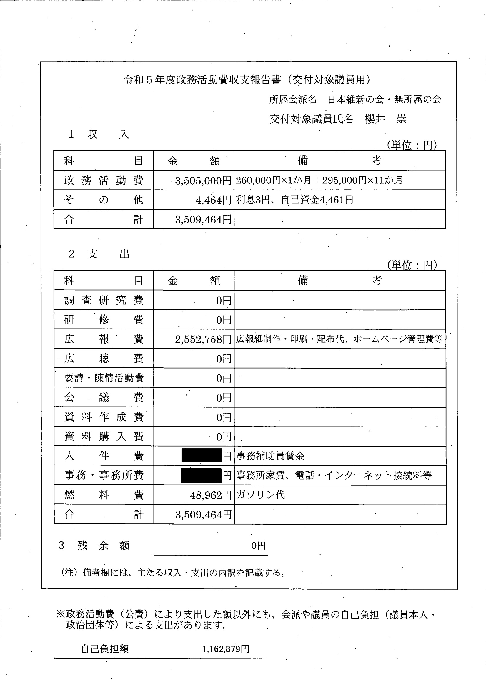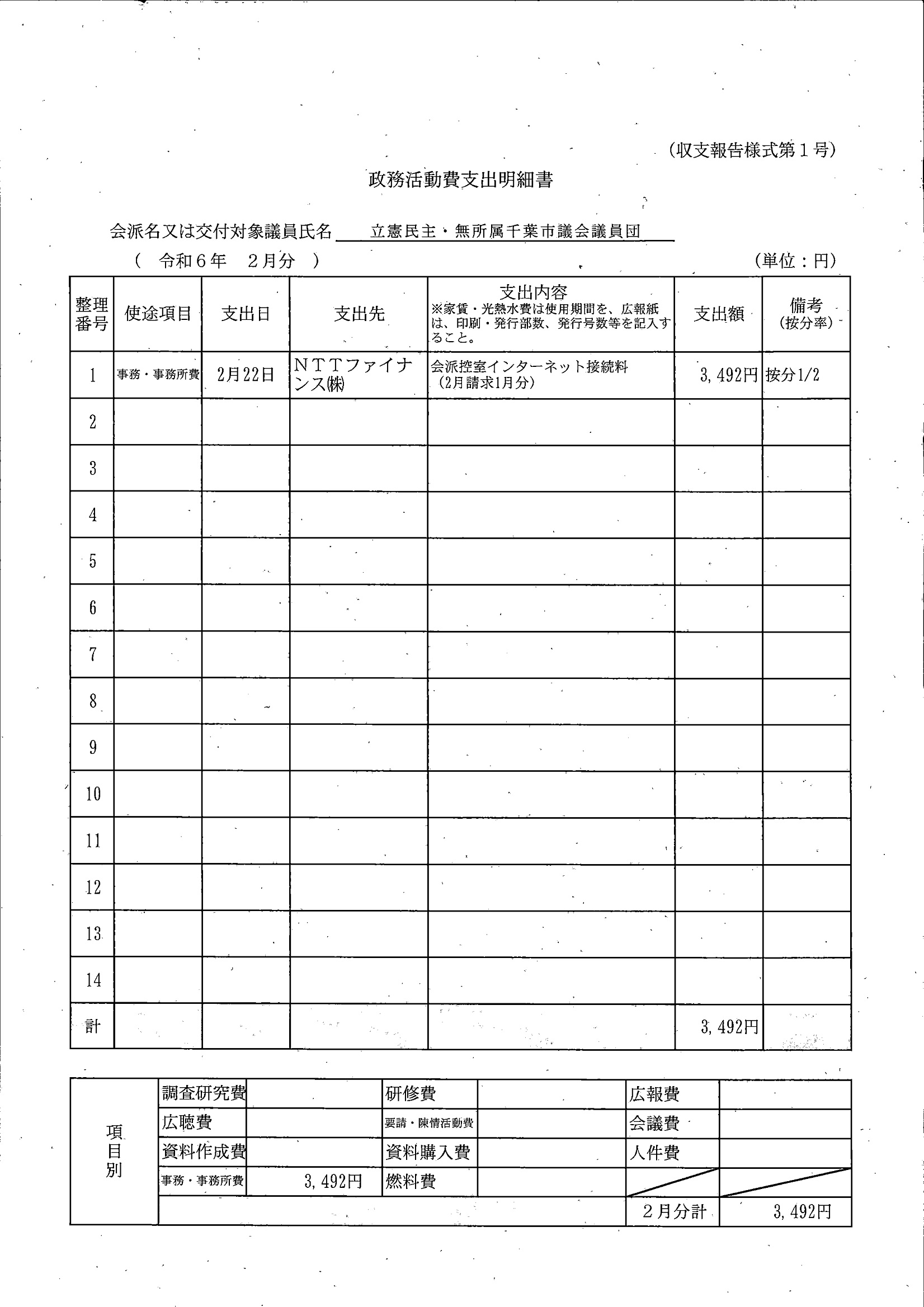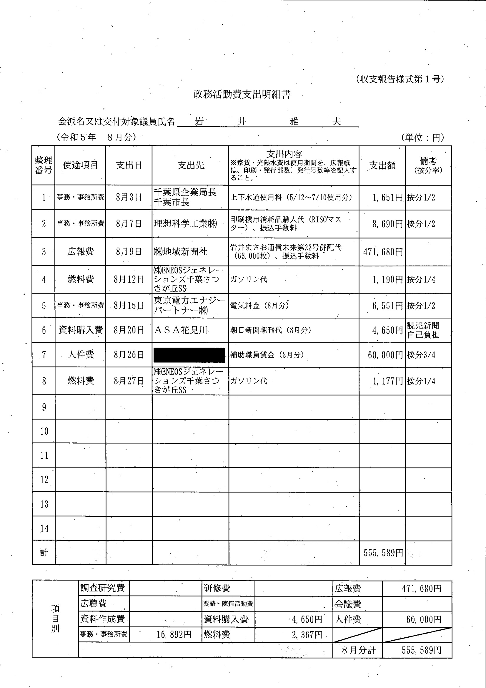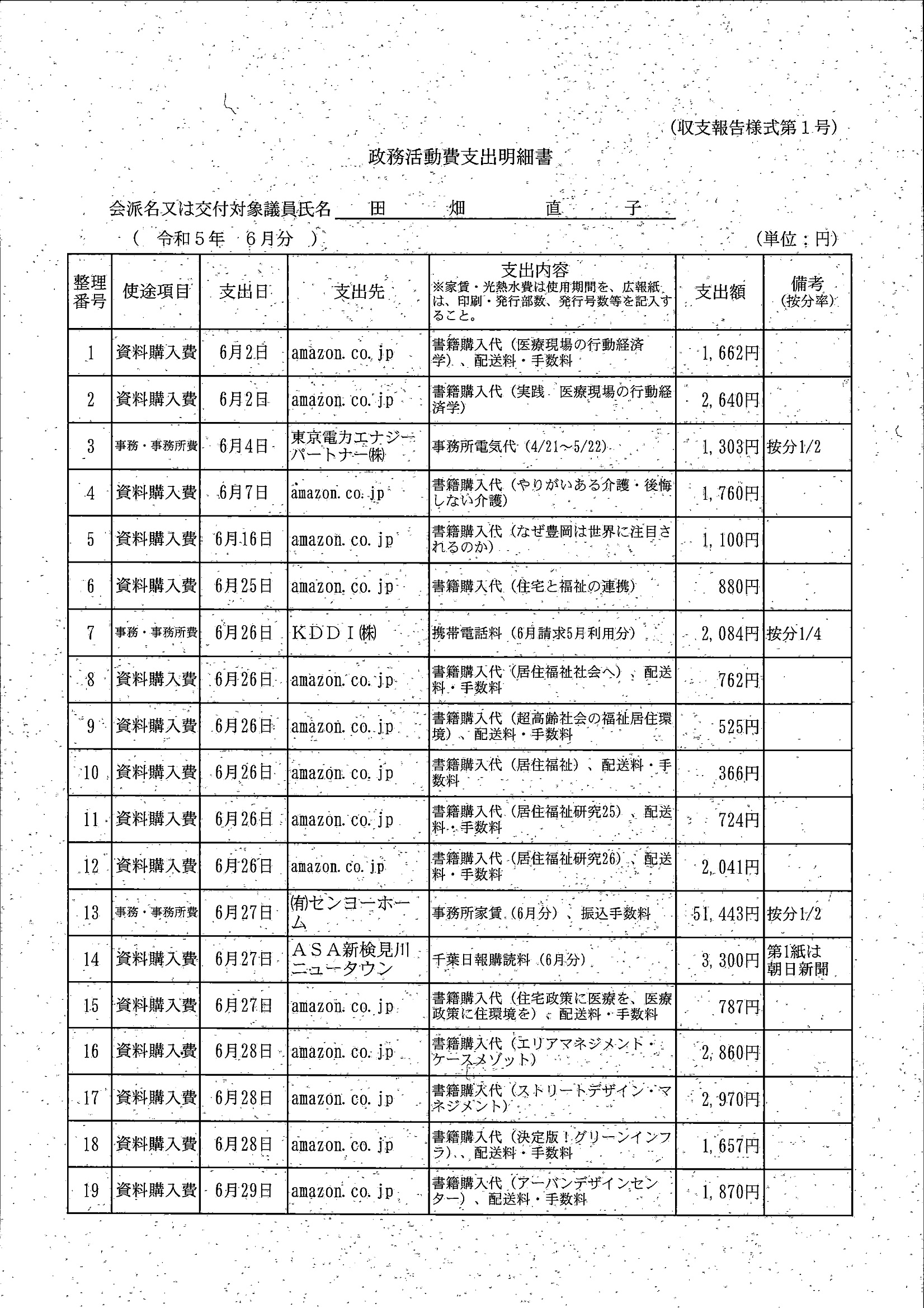 千葉市議会トップページ > 広報・情報公開 > 政務活動費 > 令和5年度交付分(政務活動費収支報告書)