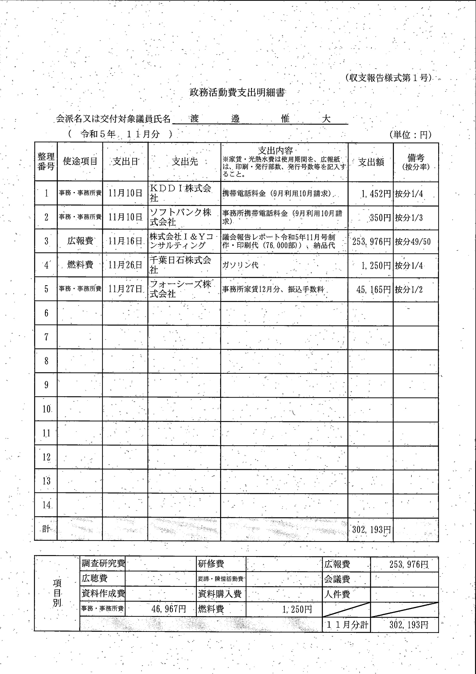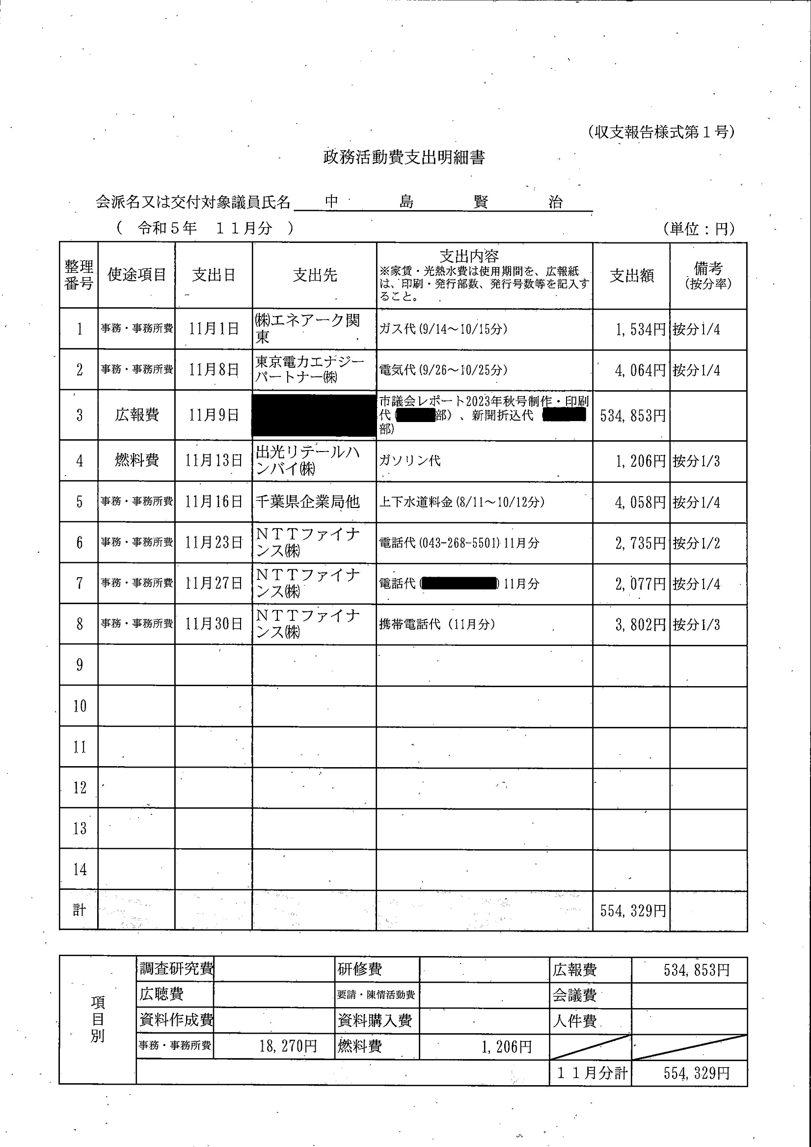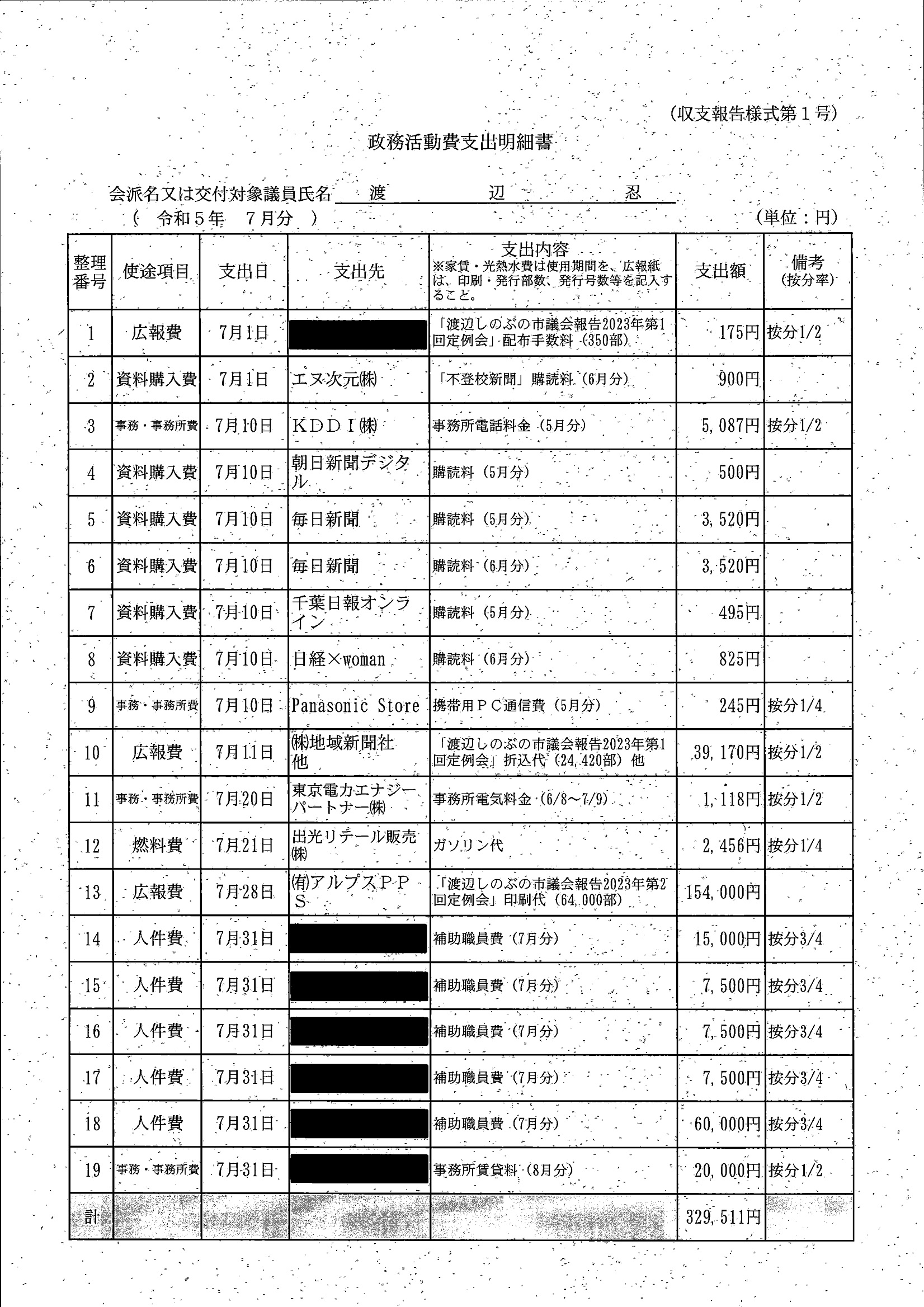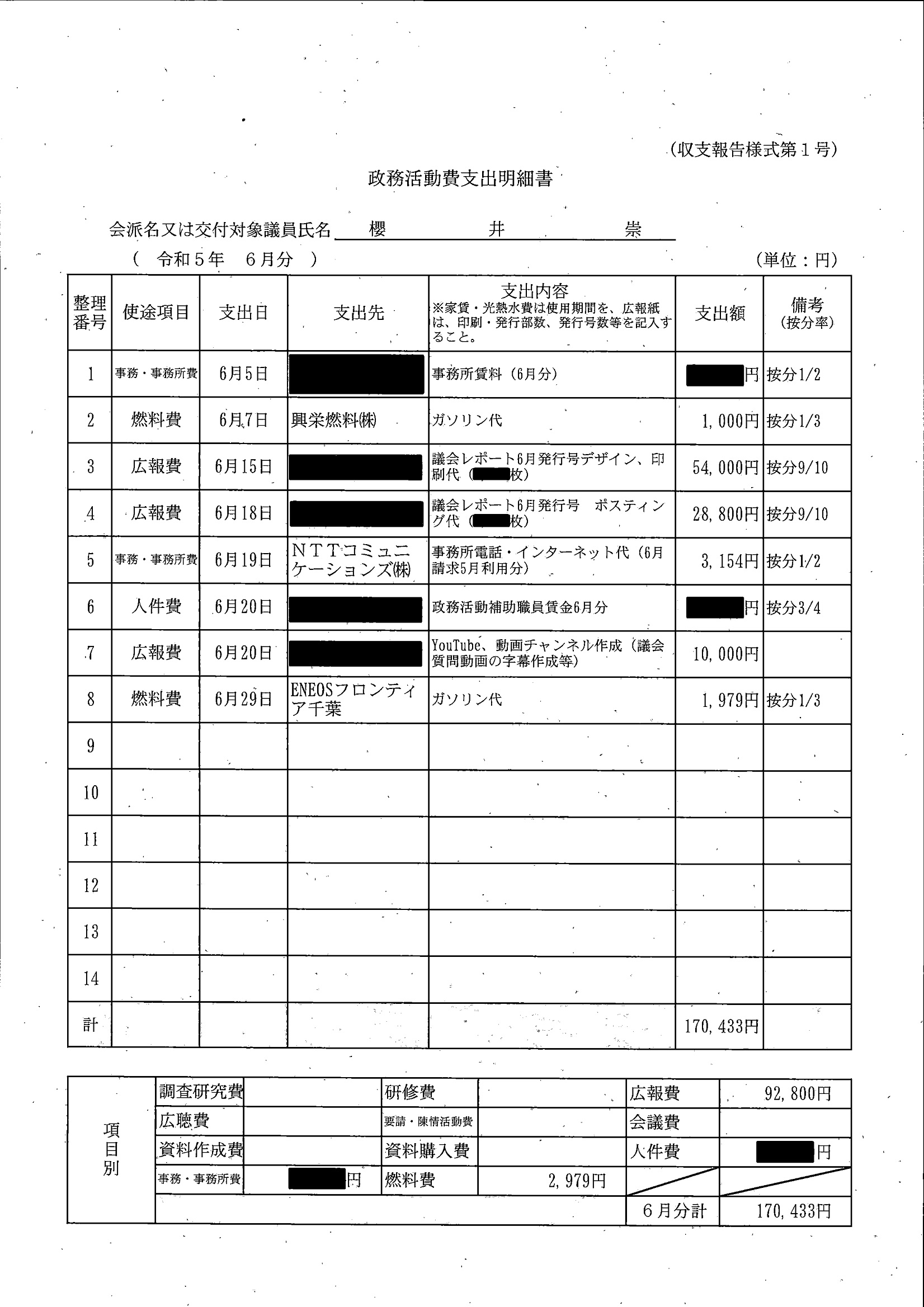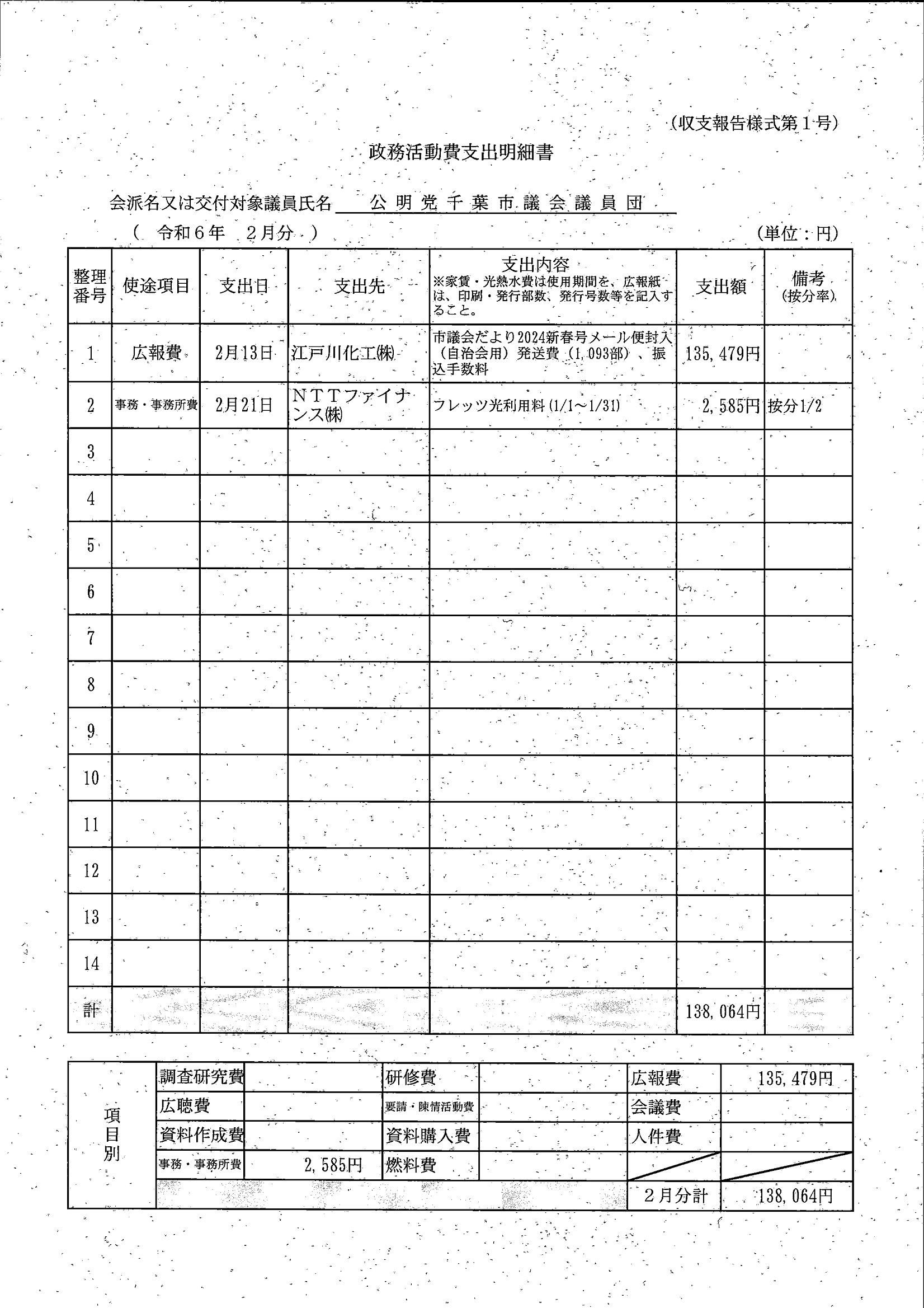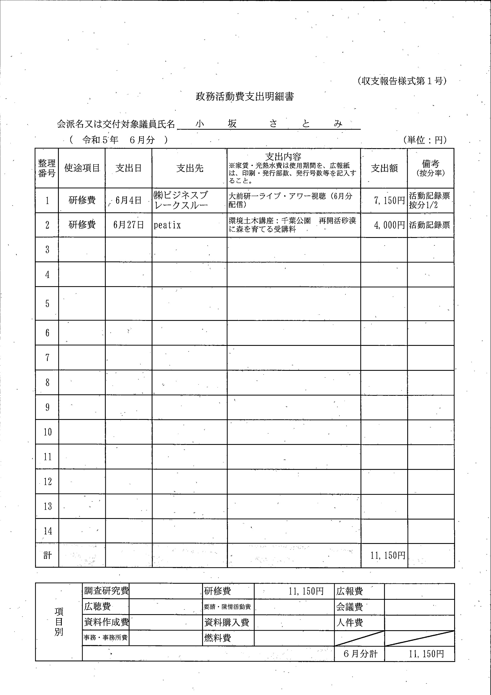 千葉市議会トップページ > 広報・情報公開 > 政務活動費 > 令和5年度交付分(政務活動費収支報告書)
