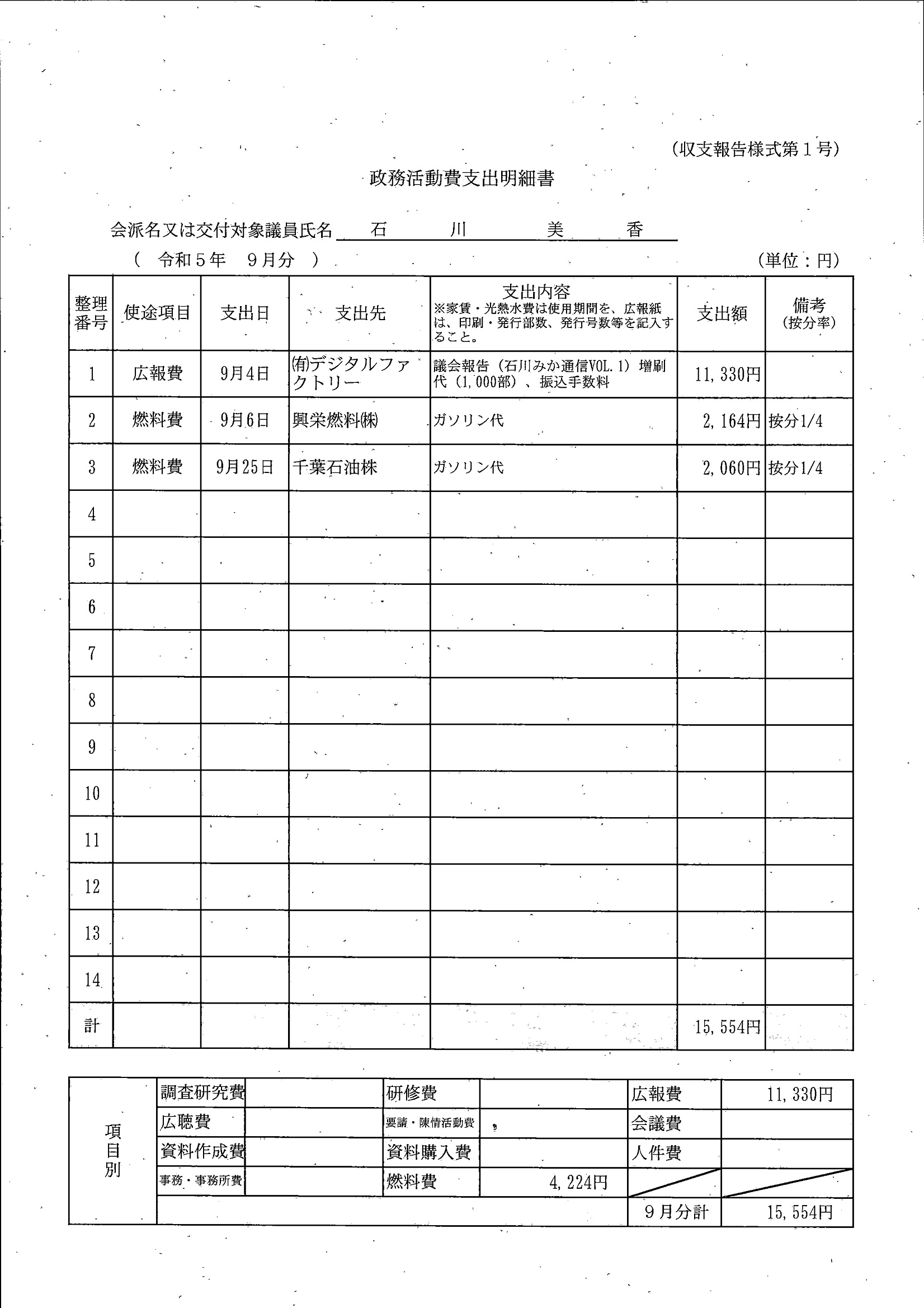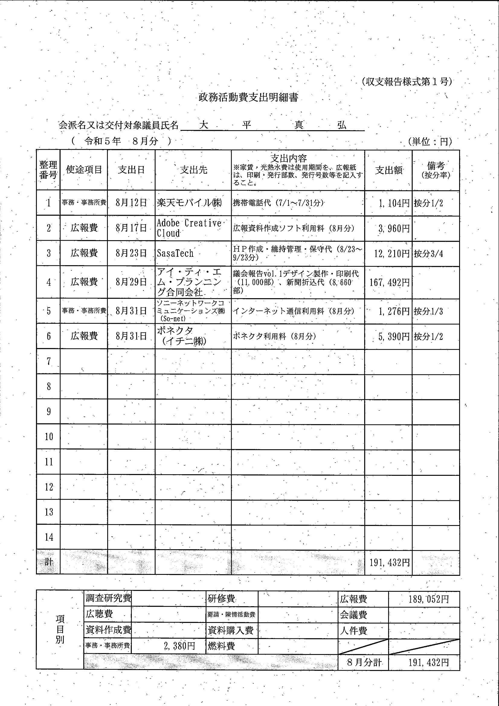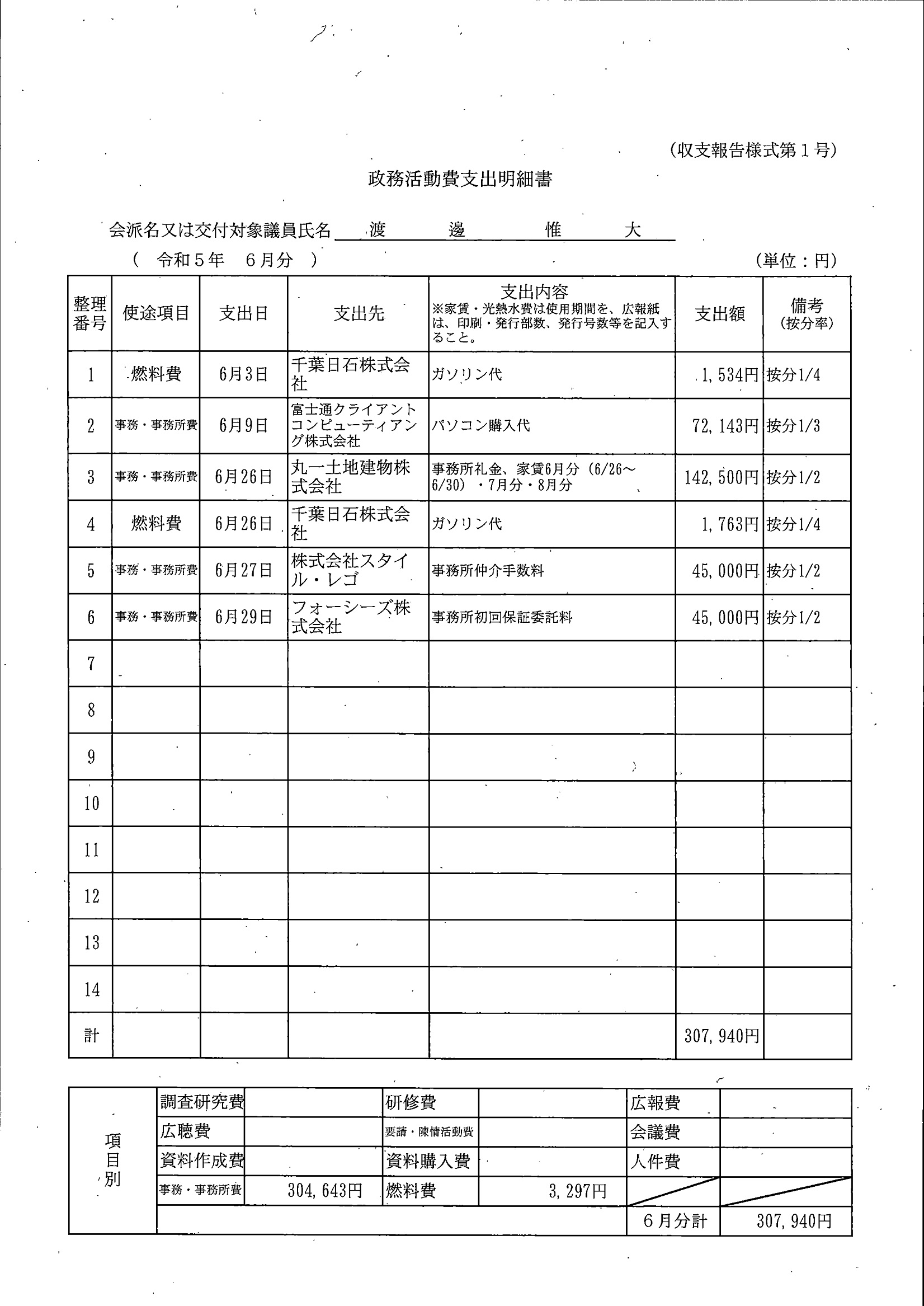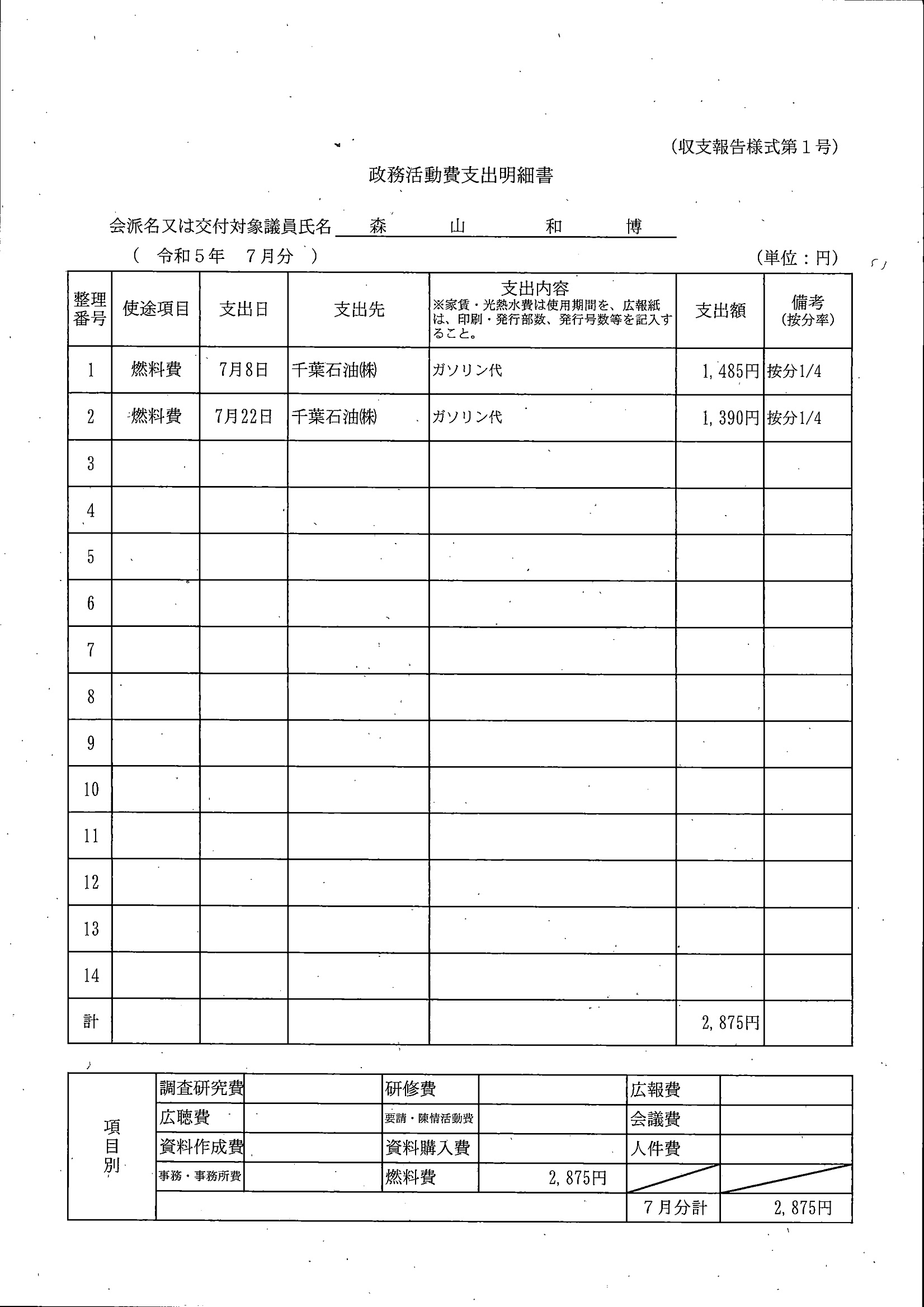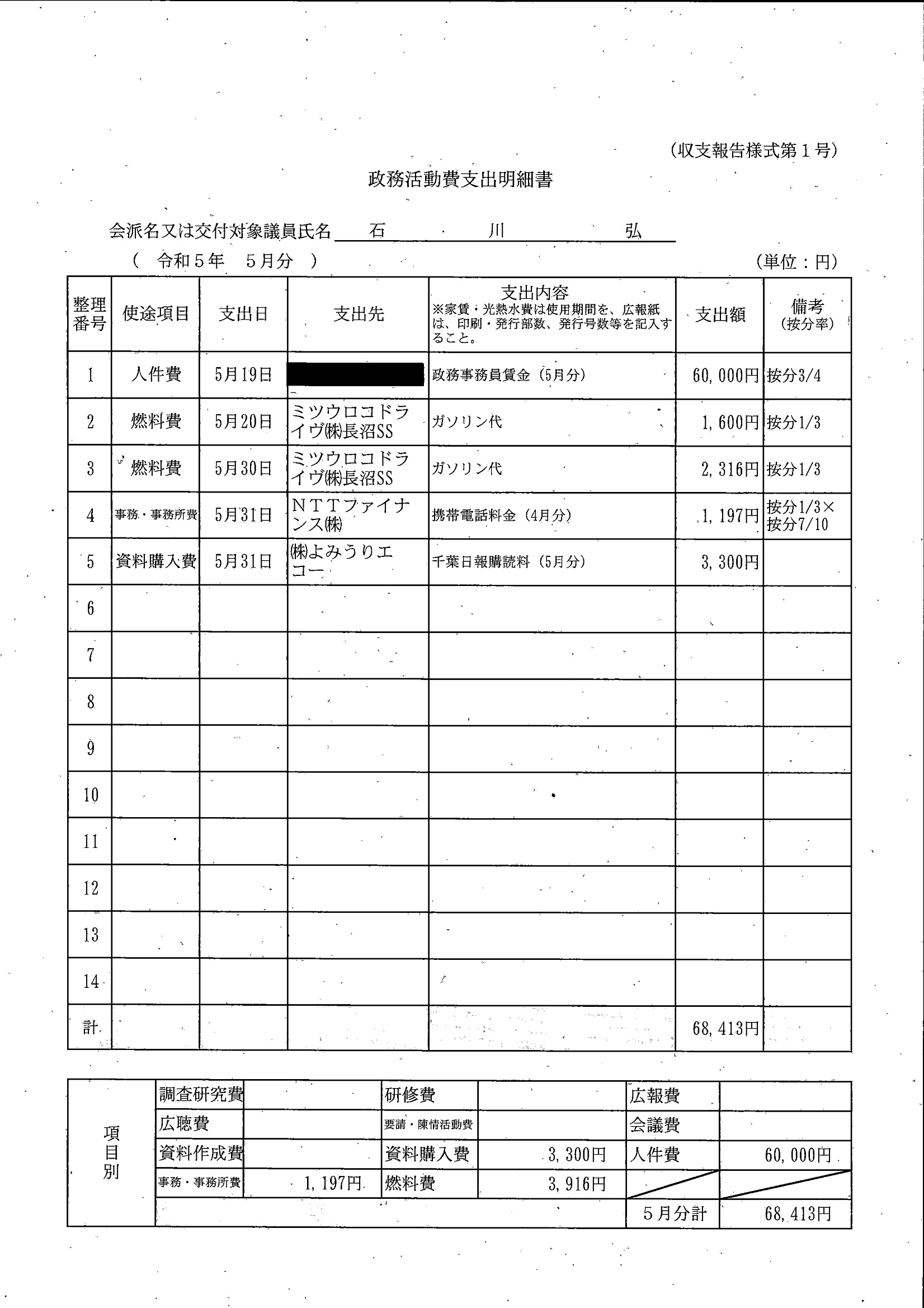 千葉市議会トップページ > 広報・情報公開 > 政務活動費 > 令和5年度交付分(政務活動費収支報告書)