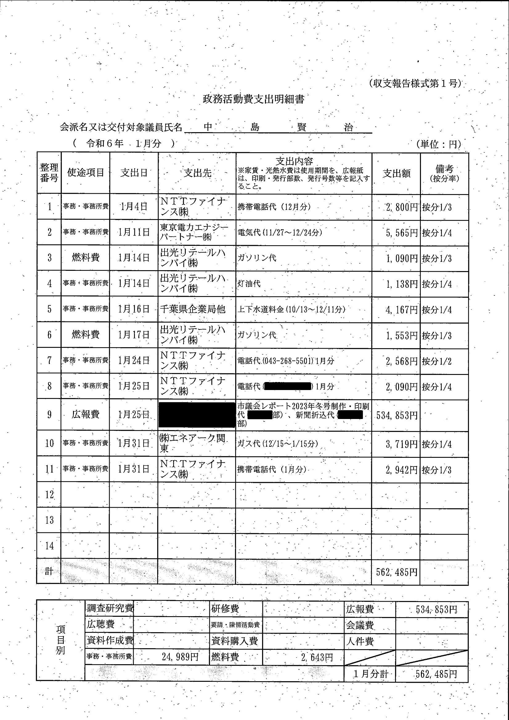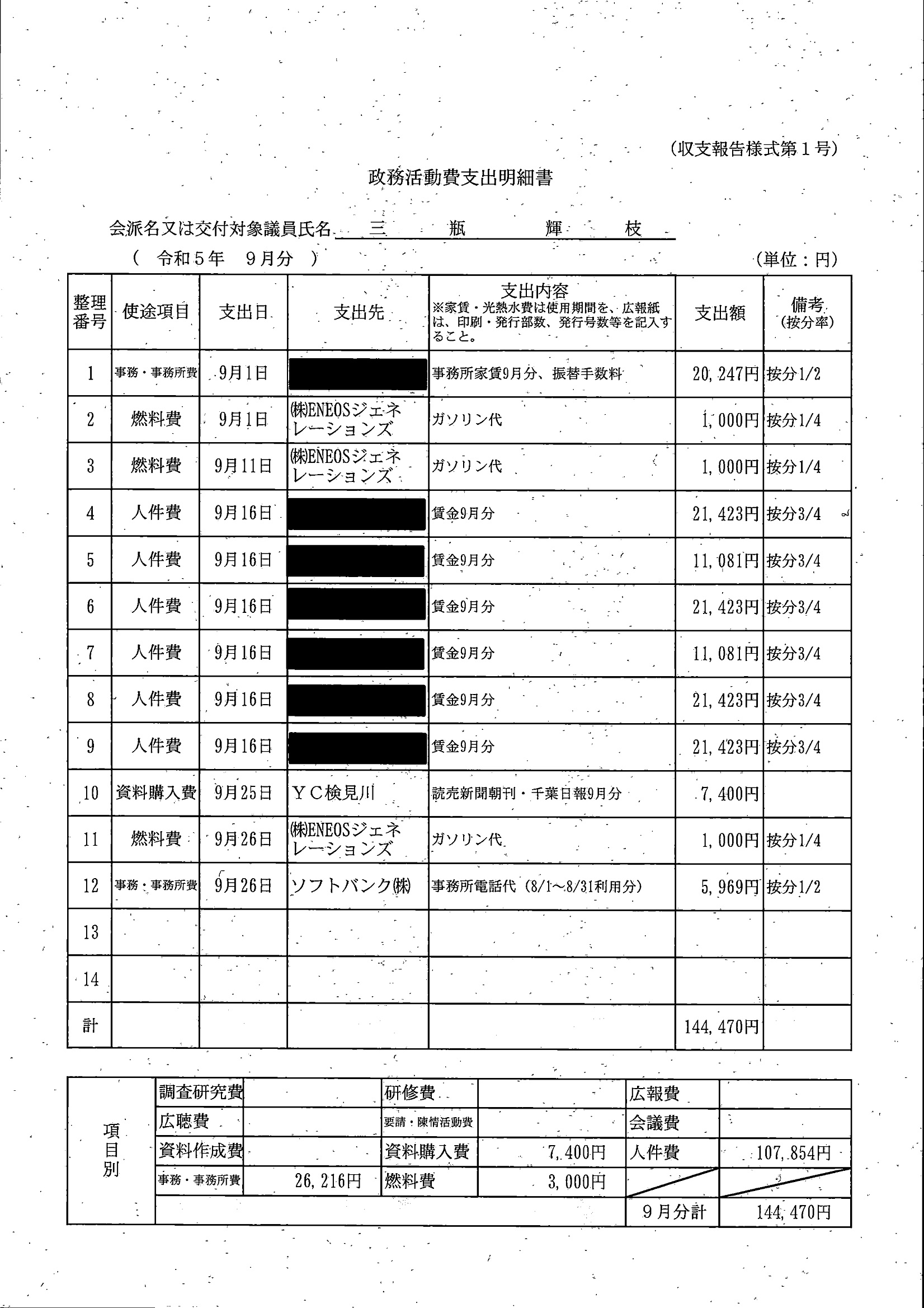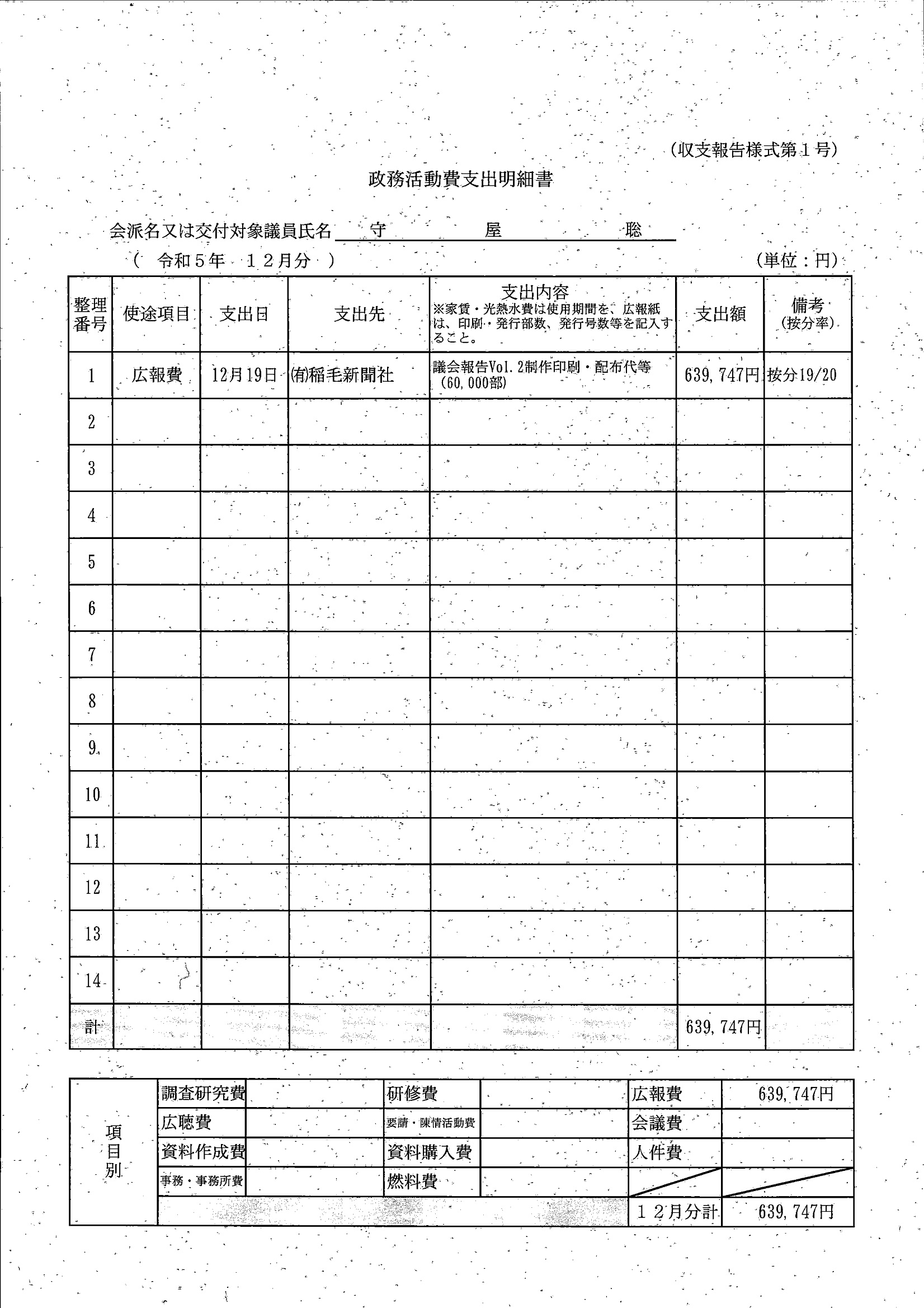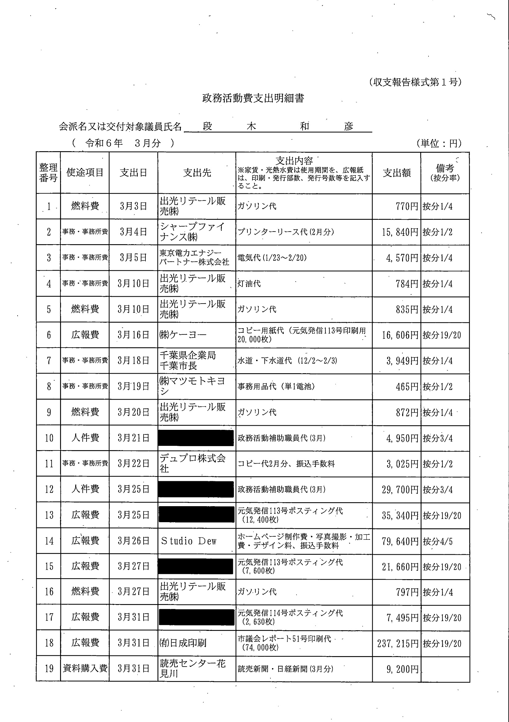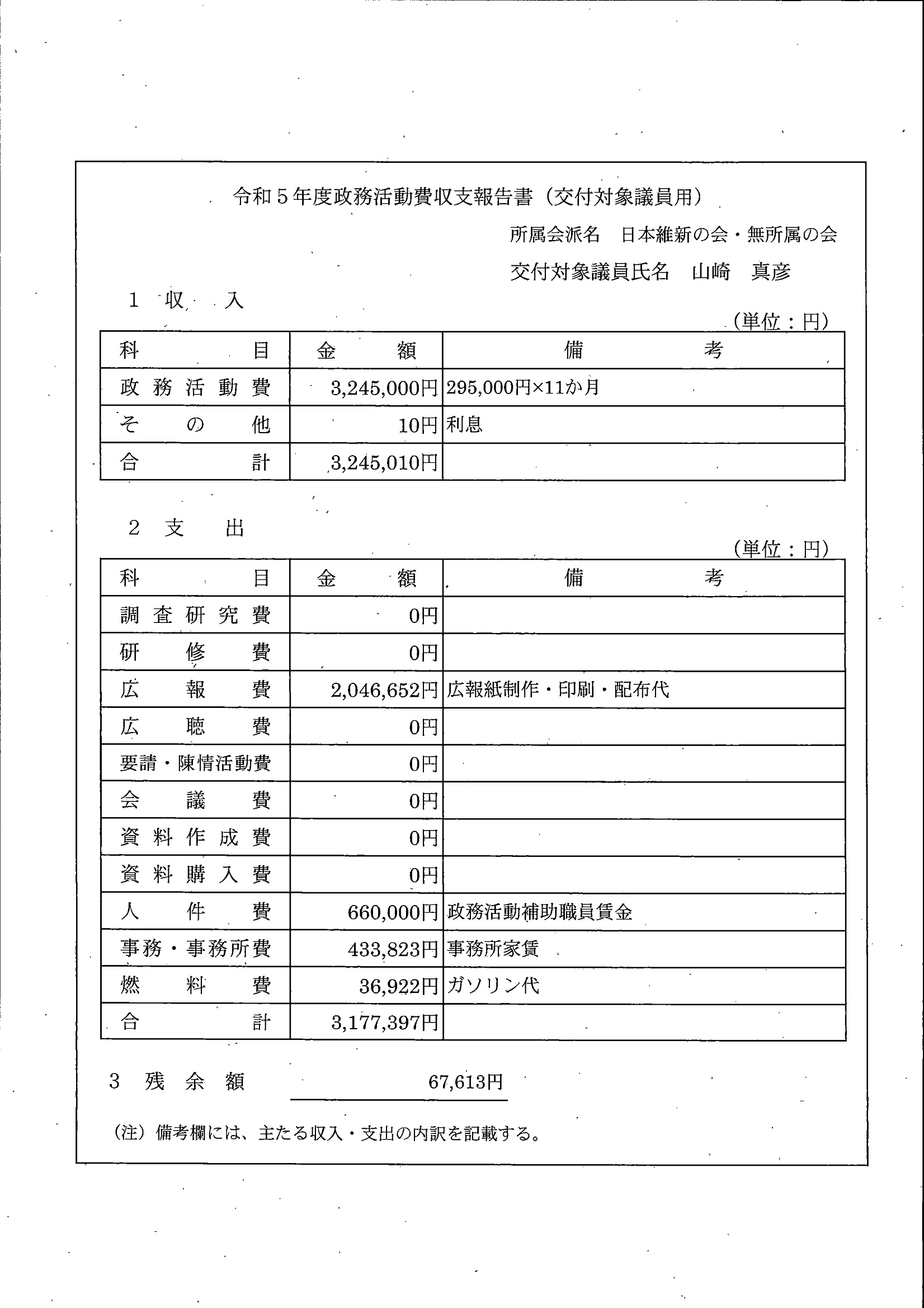 千葉市議会トップページ > 広報・情報公開 > 政務活動費 > 令和5年度交付分(政務活動費収支報告書)