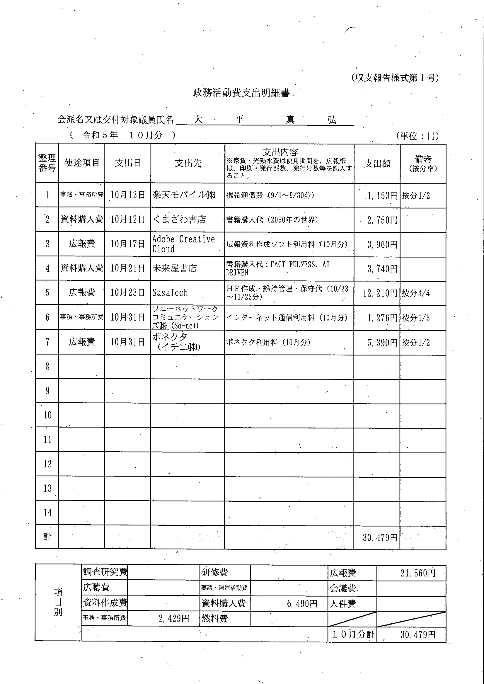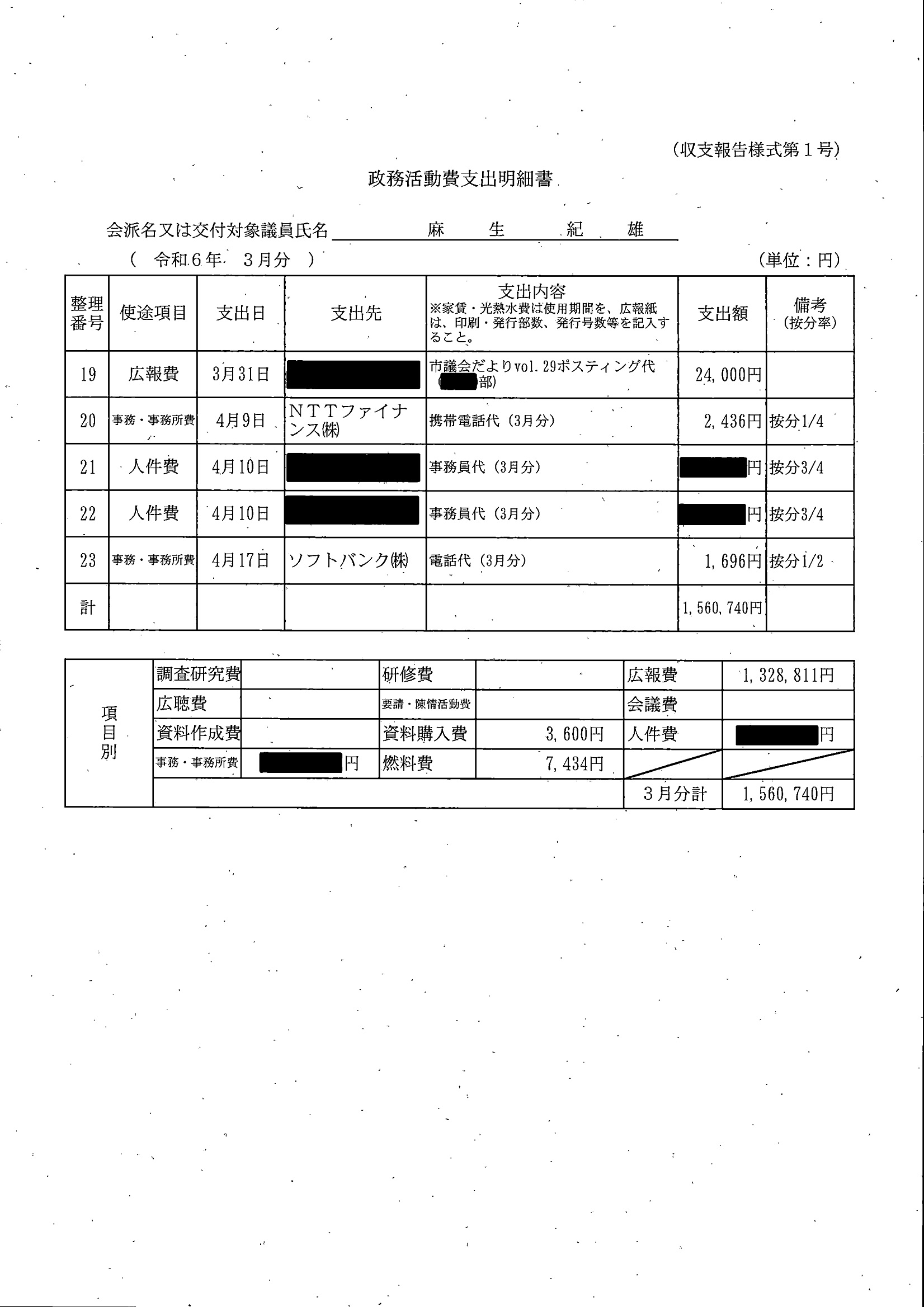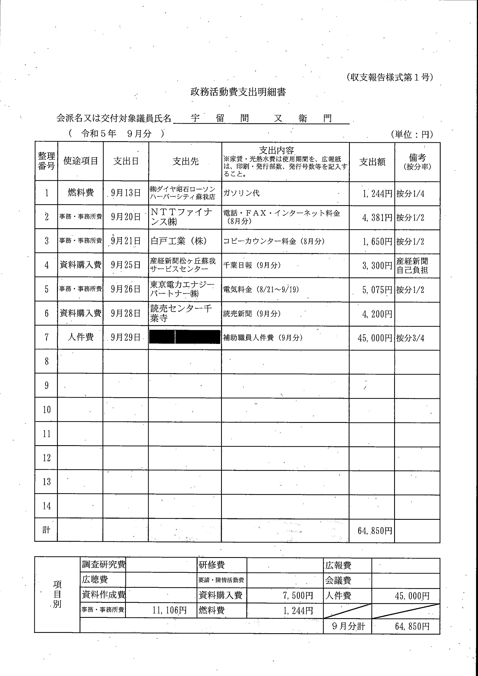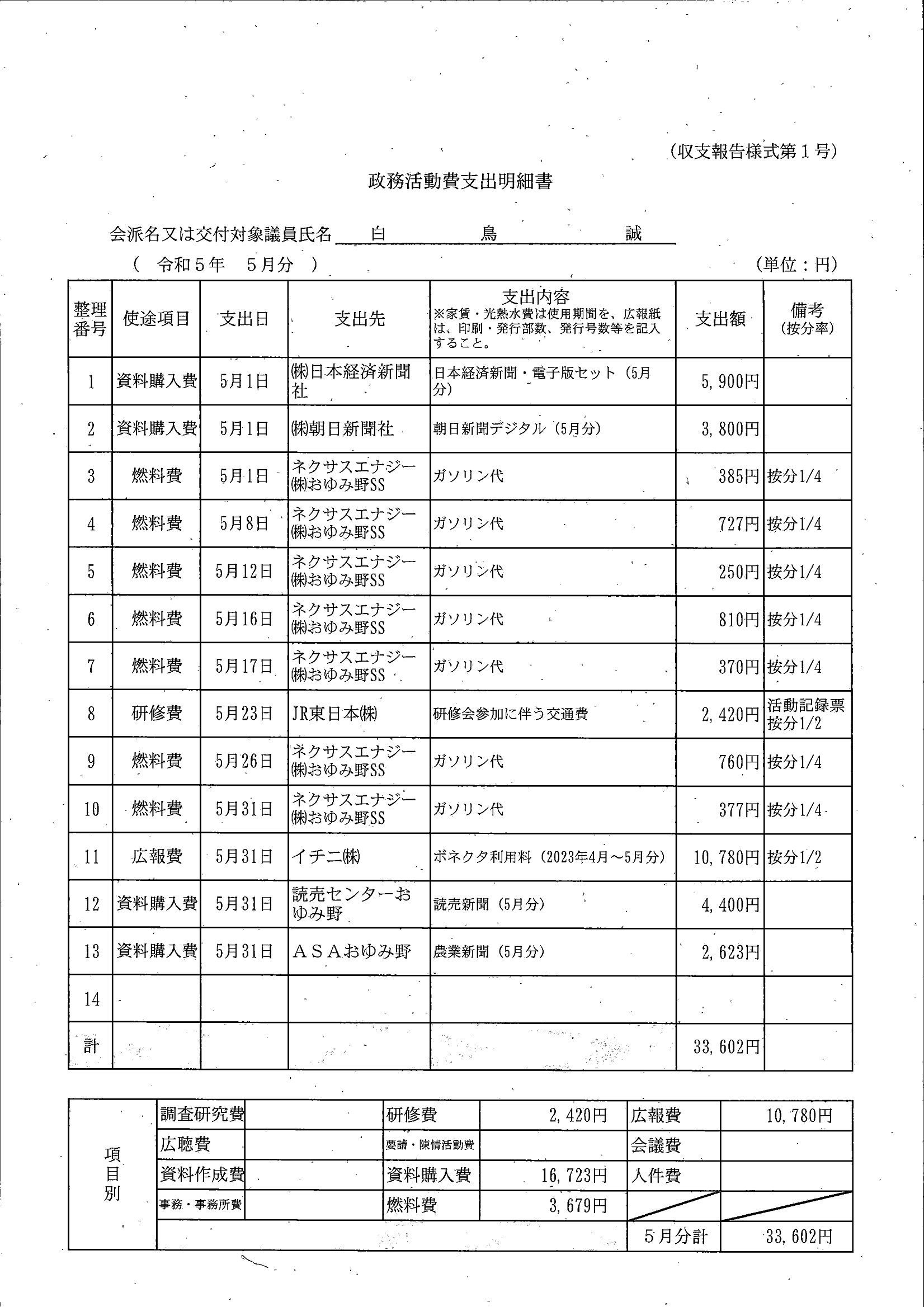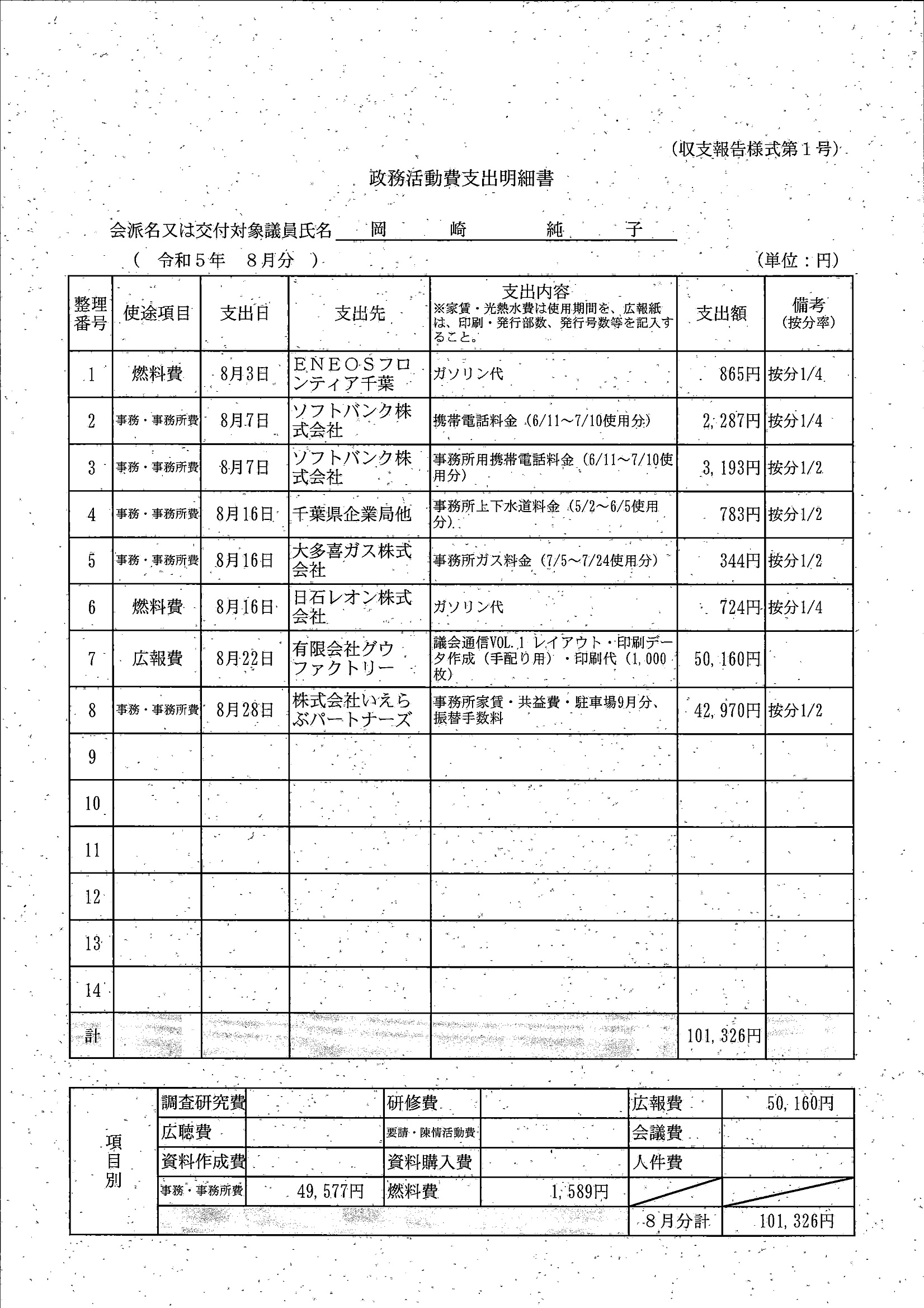 千葉市議会トップページ > 広報・情報公開 > 政務活動費 > 令和5年度交付分(政務活動費収支報告書)
